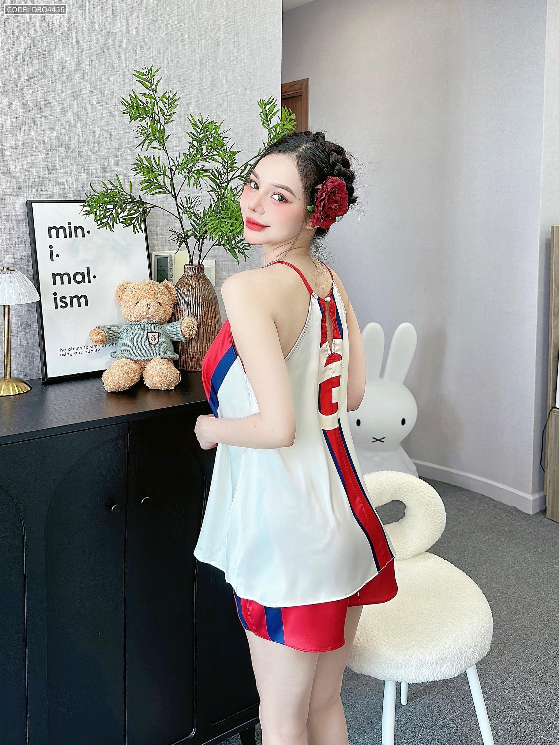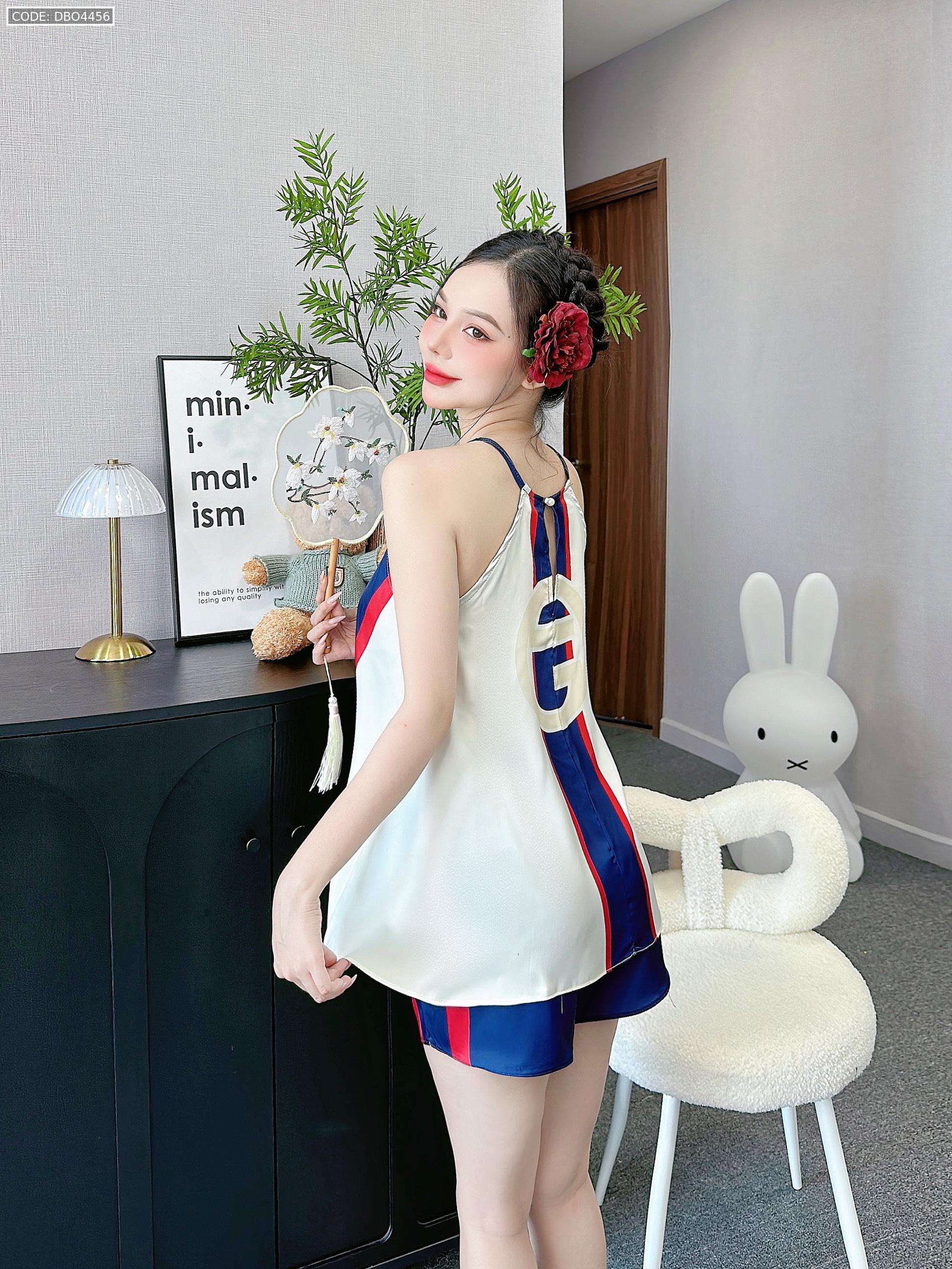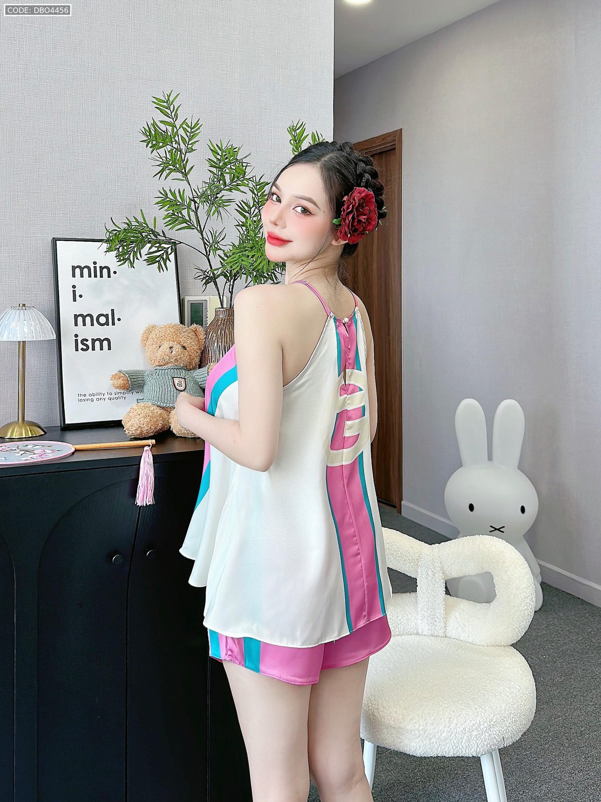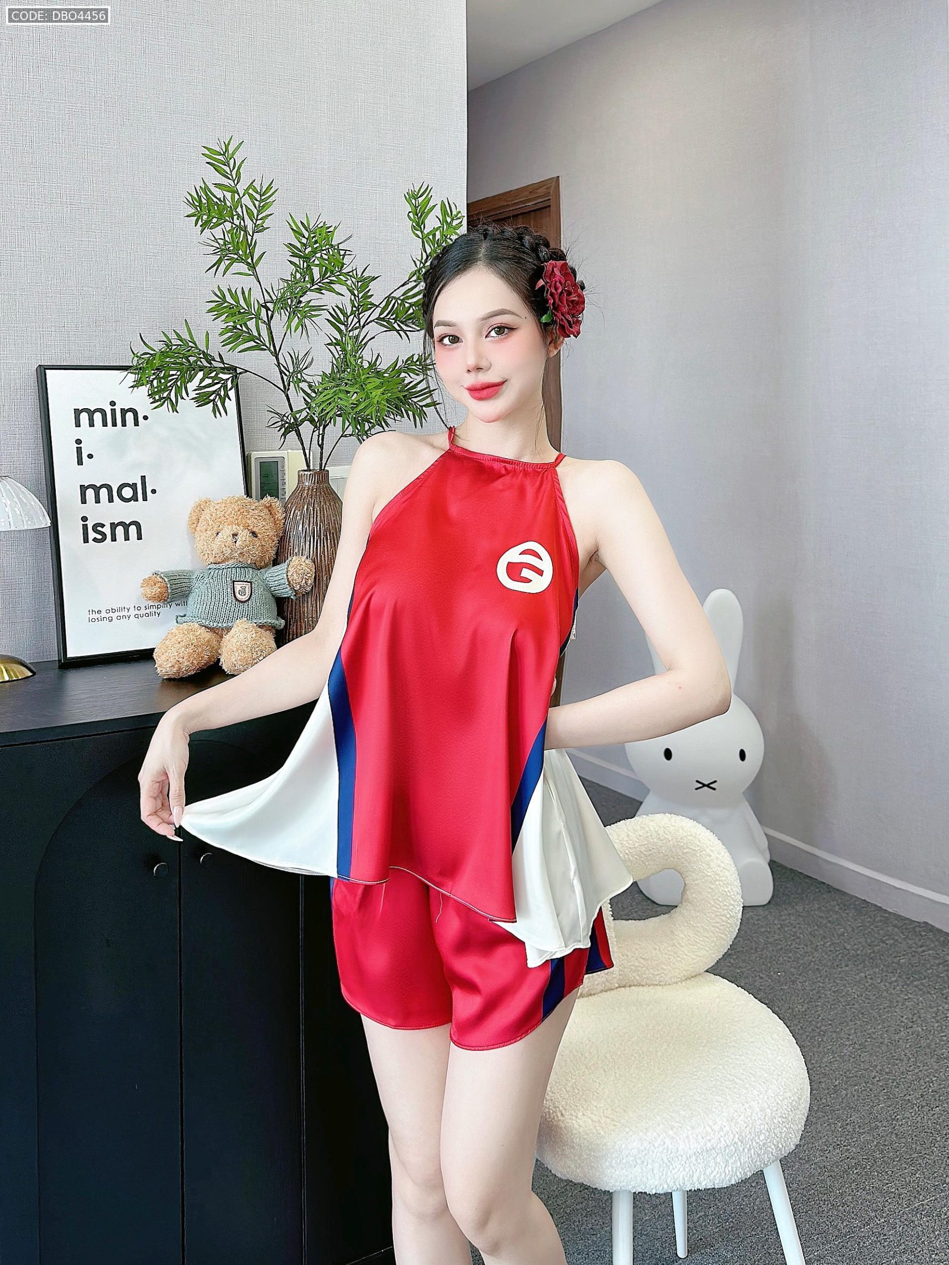 Đồ bộ mặc nhà siêu mát quần đùi latin áo yếm in hình