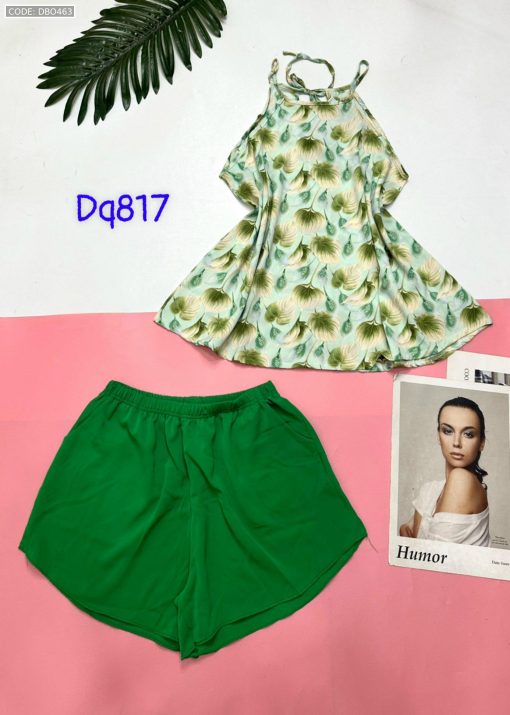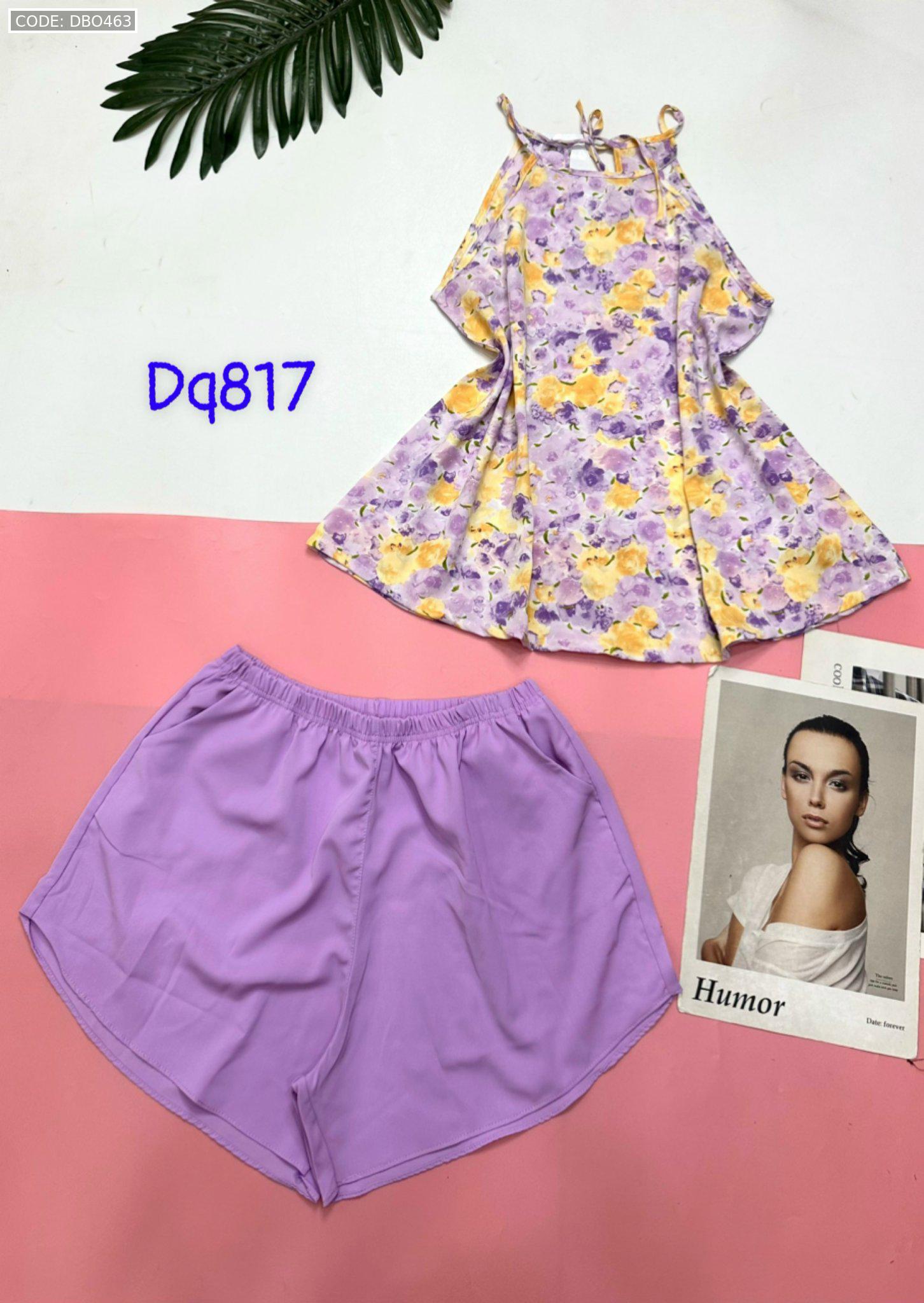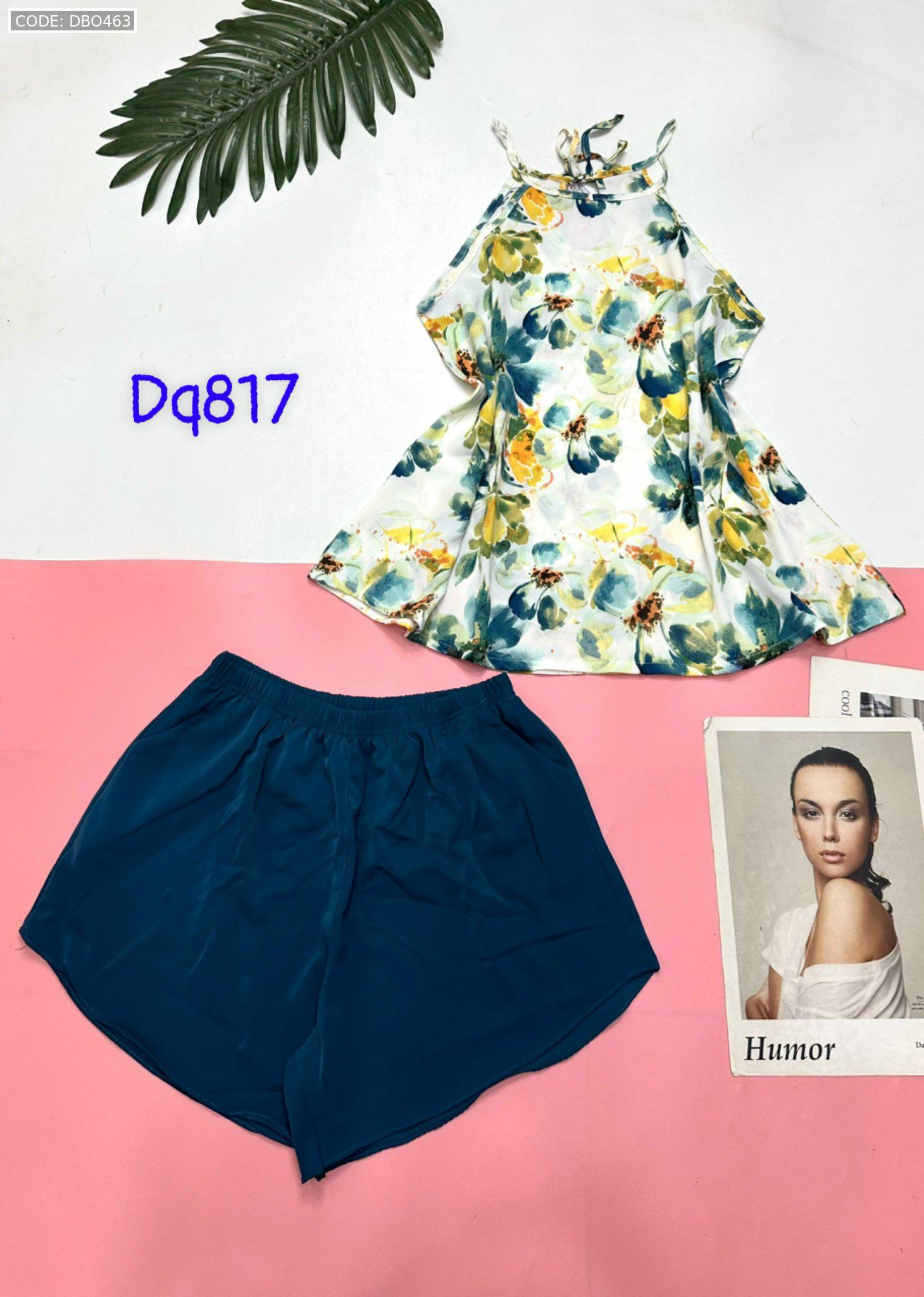 Đồ bộ mặc nhà siêu mát quần đùi trơn áo yếm nhiều hoạ tiết