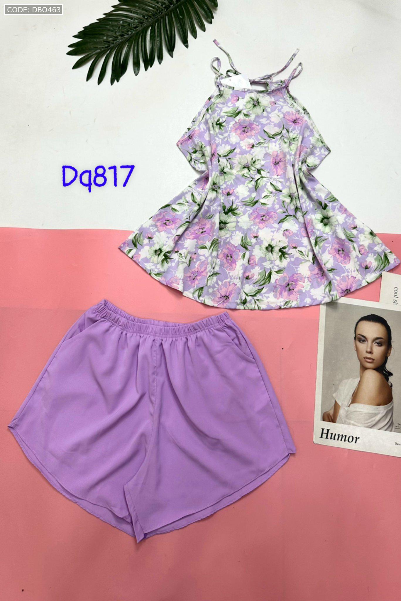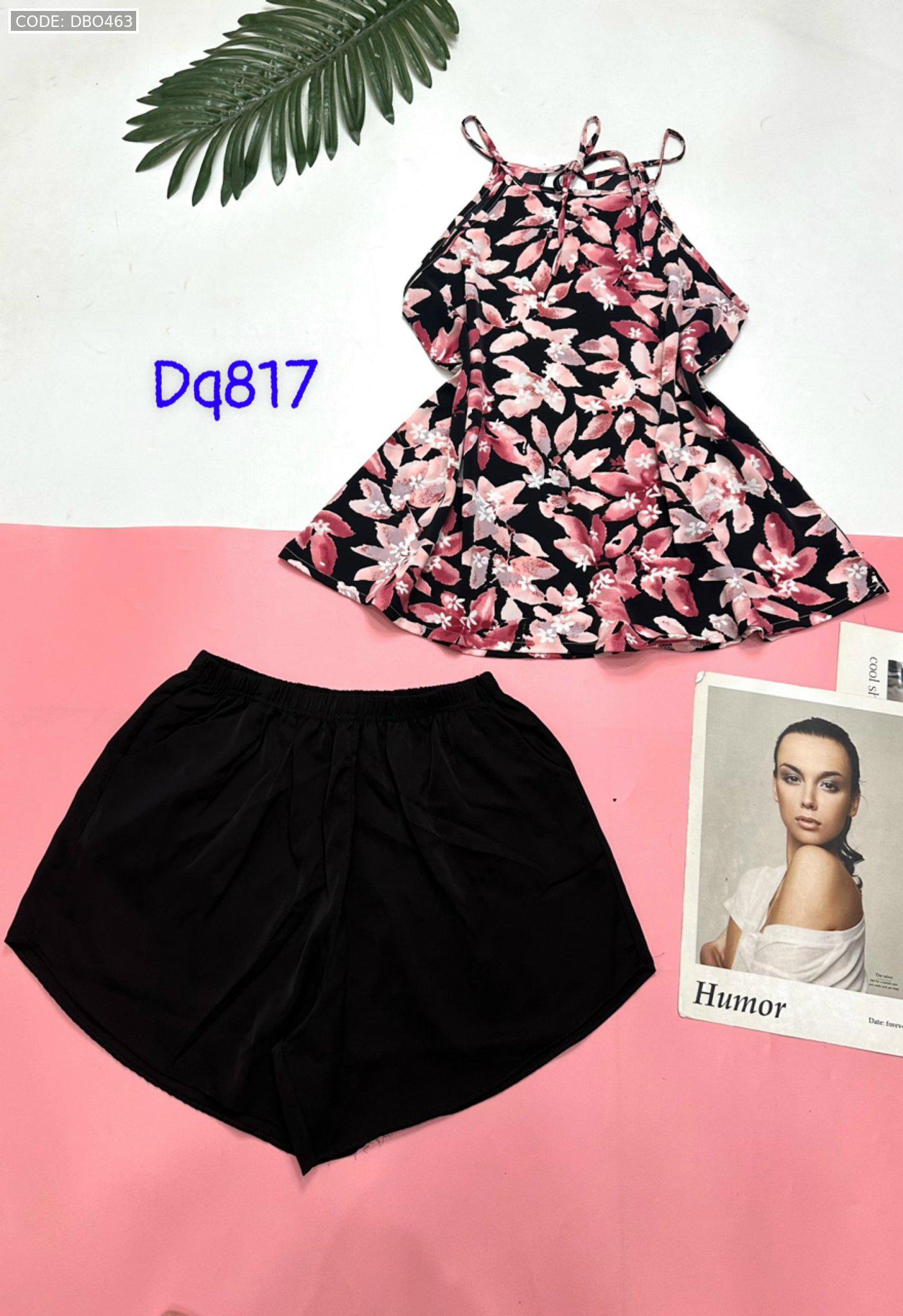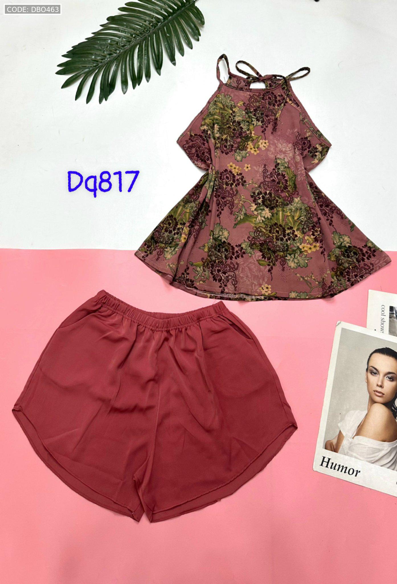 Đồ bộ mặc nhà siêu mát quần đùi trơn áo yếm nhiều hoạ tiết