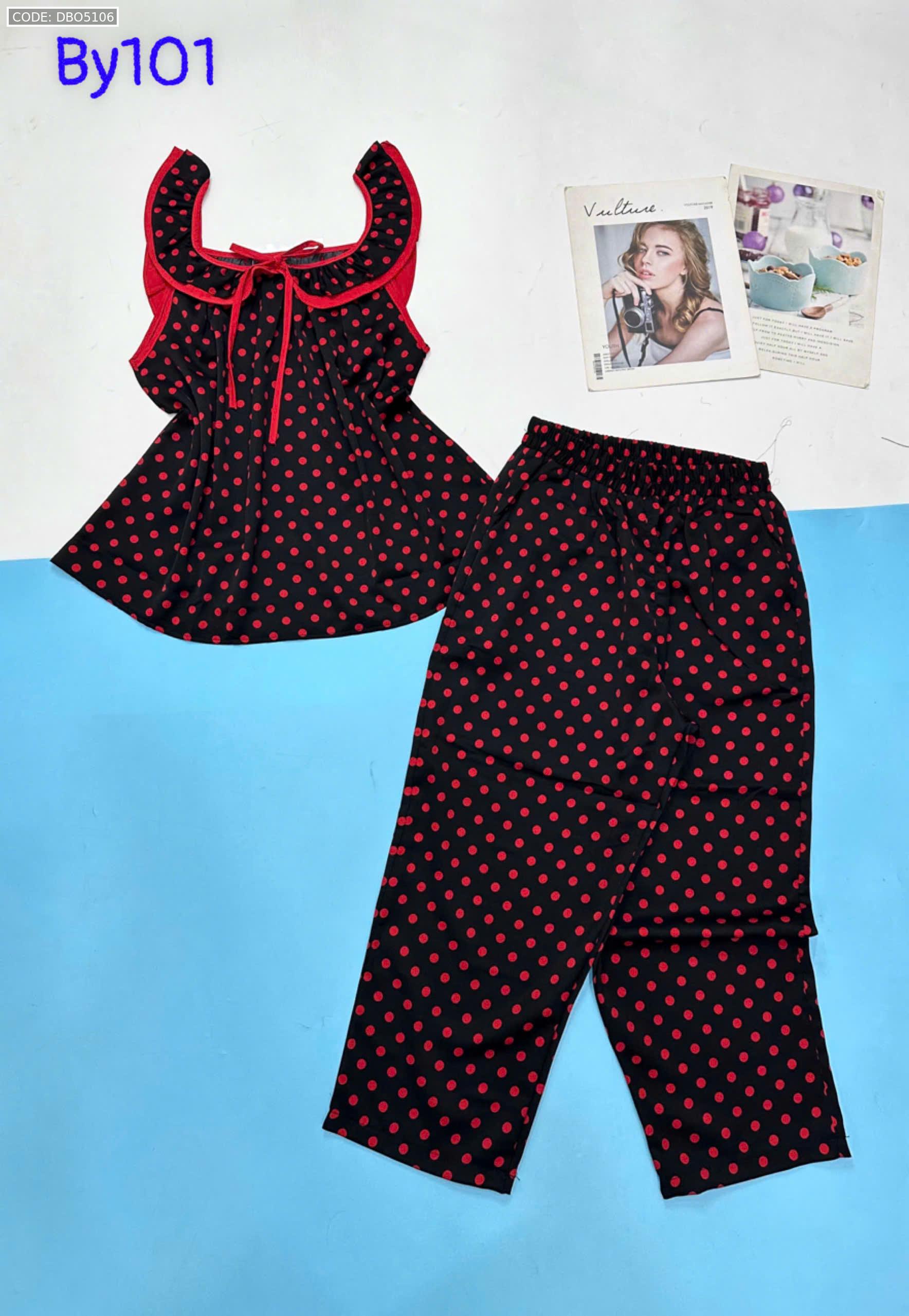 Đồ bộ mango áo dây bèo quần dài chấm bi