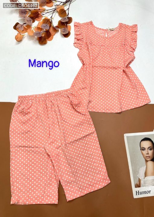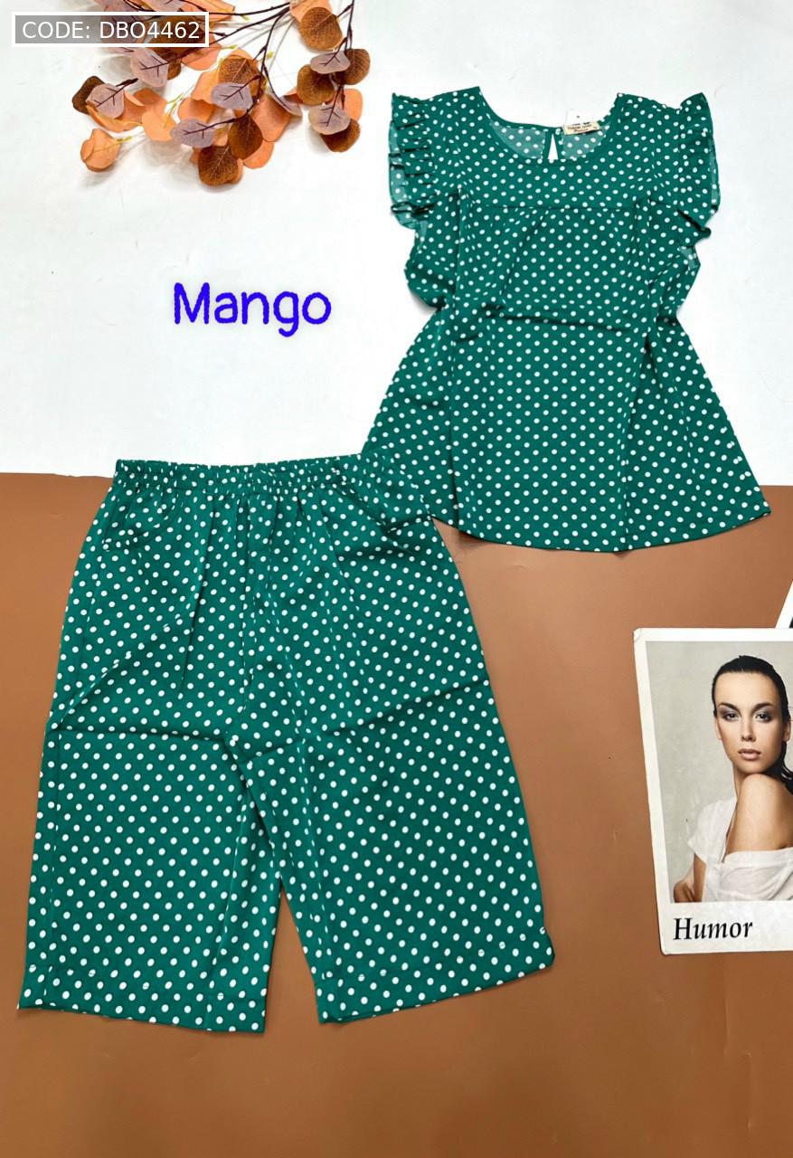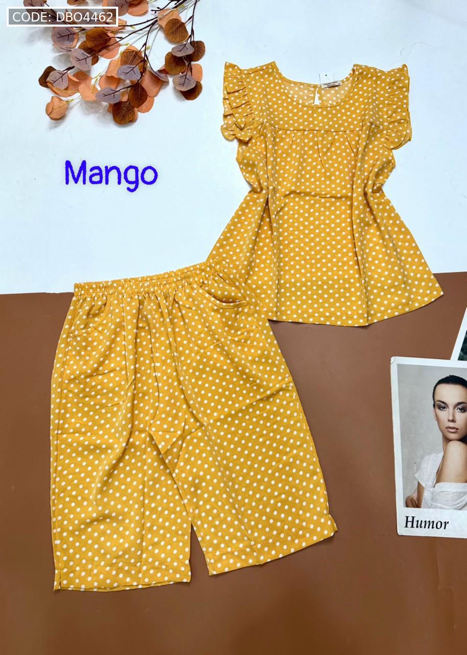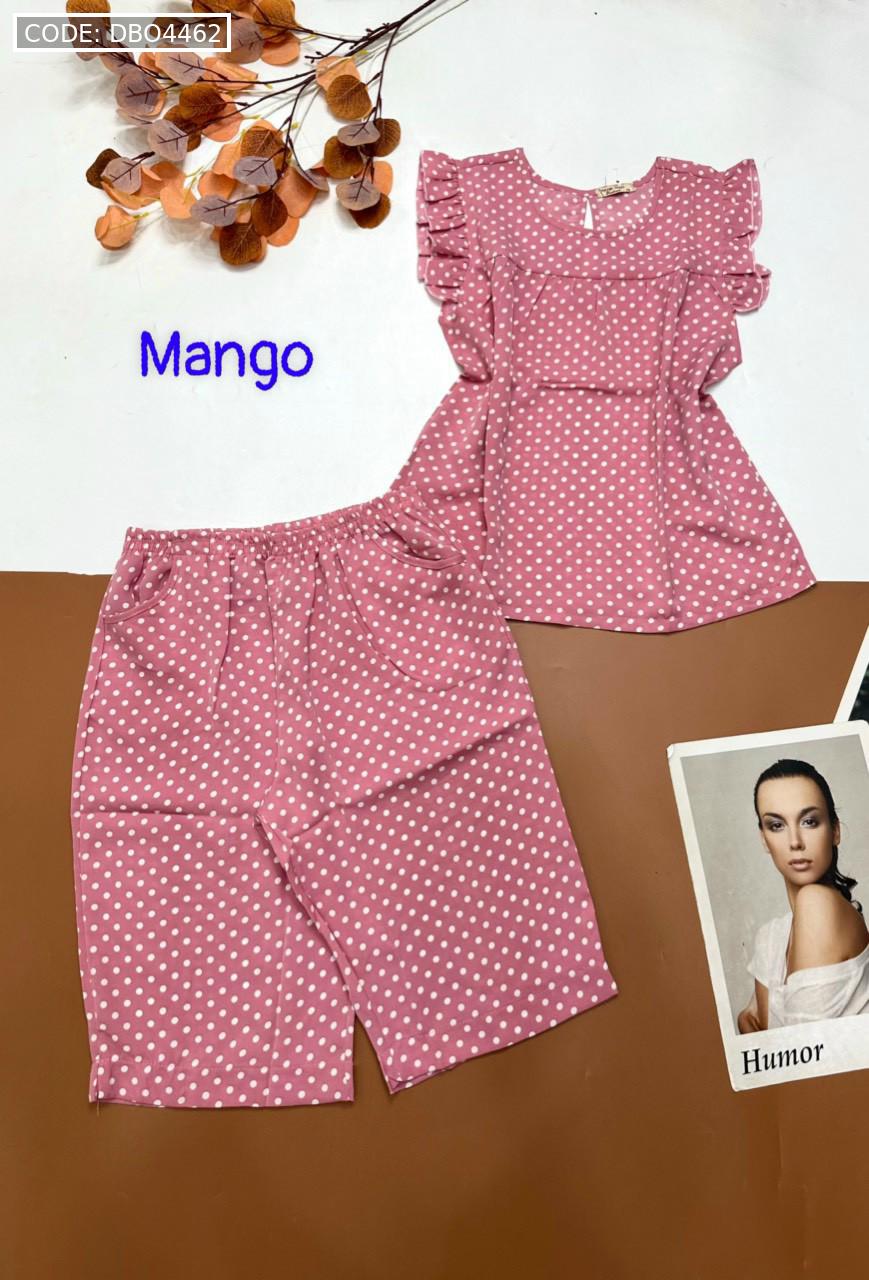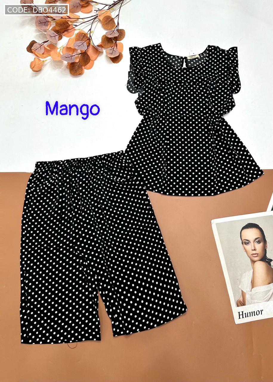 Đồ bộ mango chấm bi quần lửng áo sát nách viền bèo
