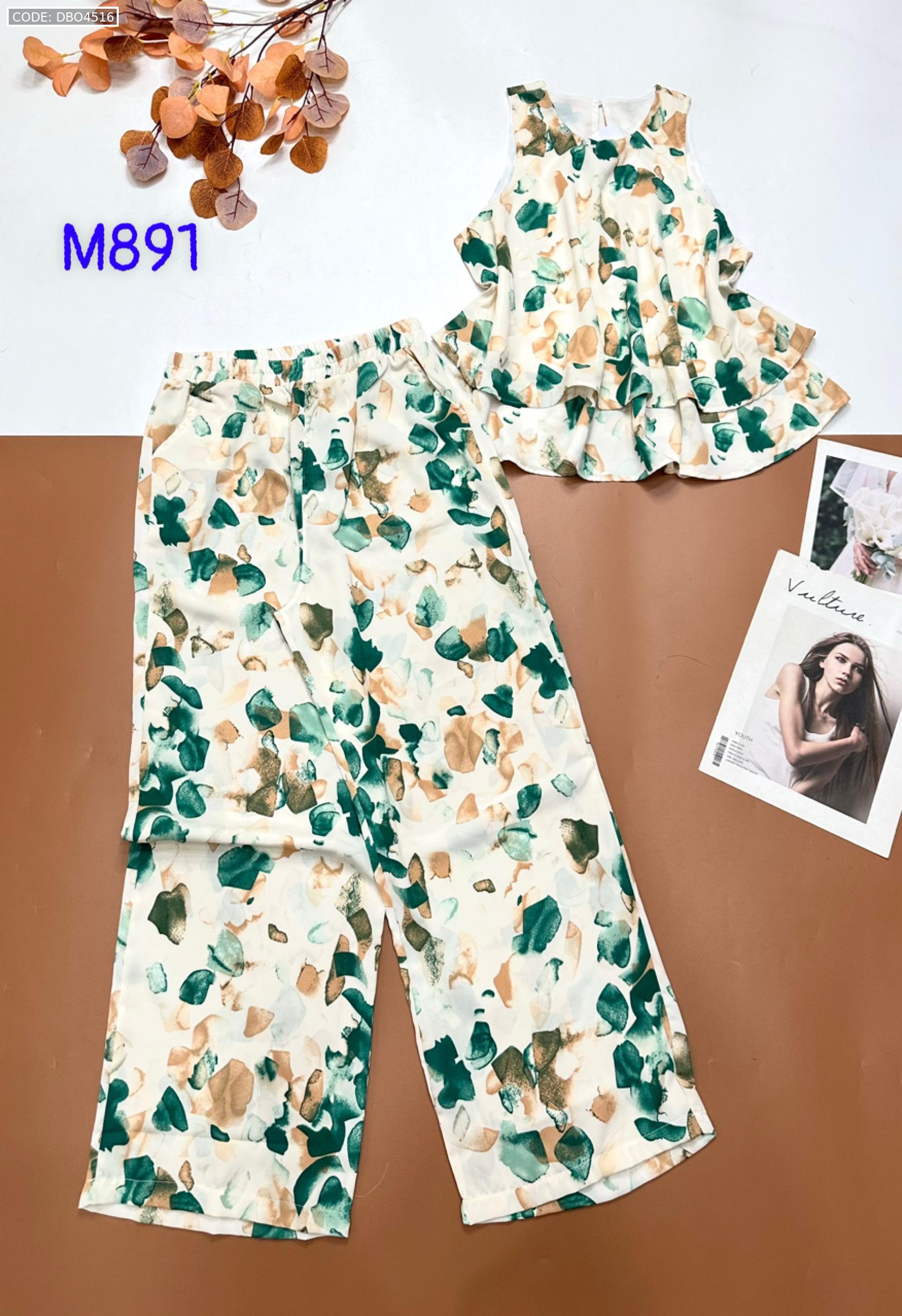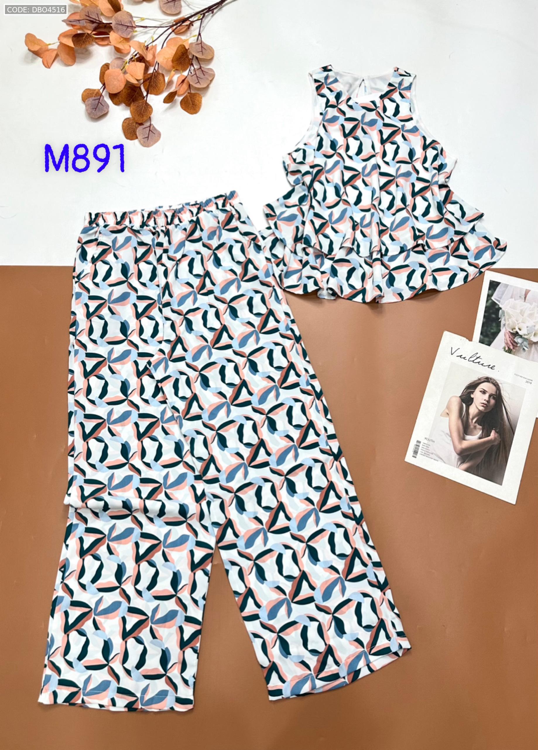 Đồ bộ mango mặc nhà quần dài áo sát nách hai tần in nhiều hoạ tiết