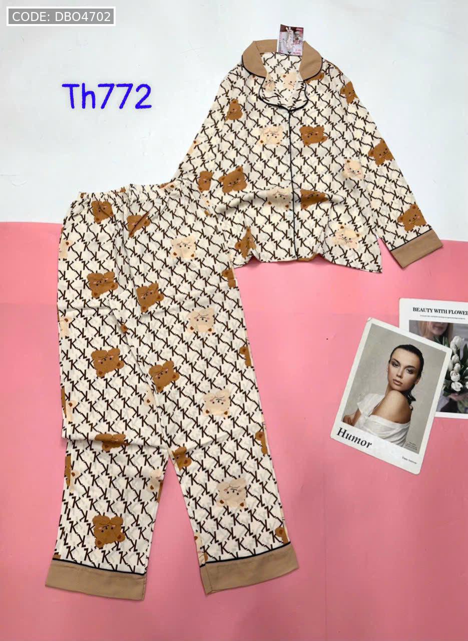 Đồ bộ mango mặc nhà quần dài áo tay dài in nhiều hoạ tiết