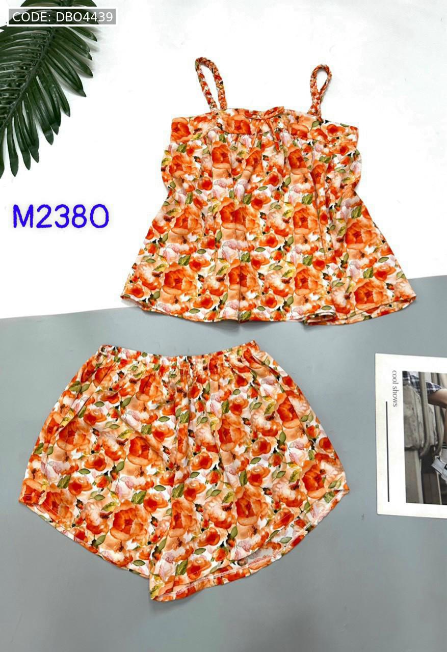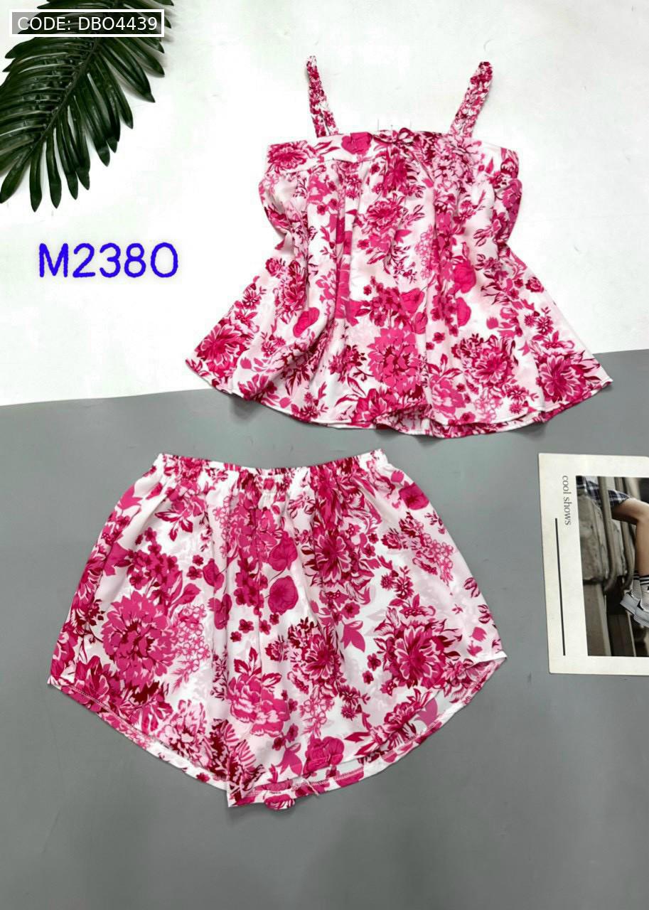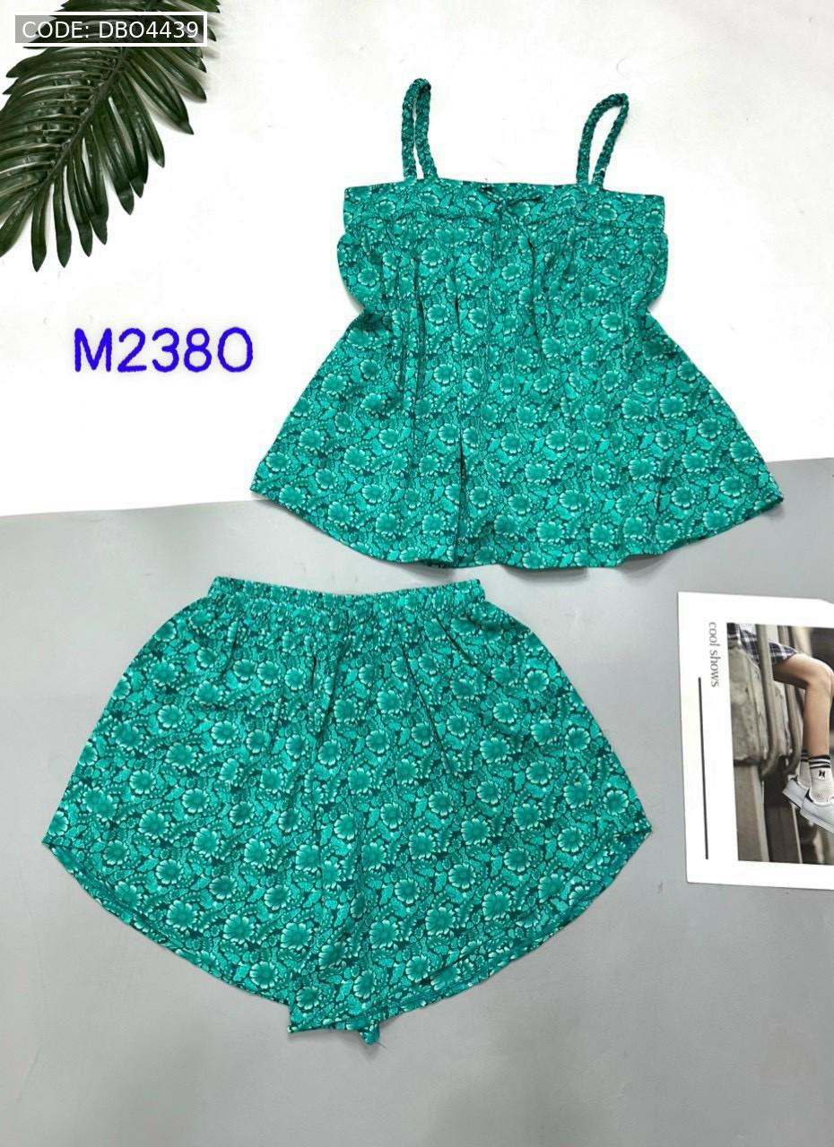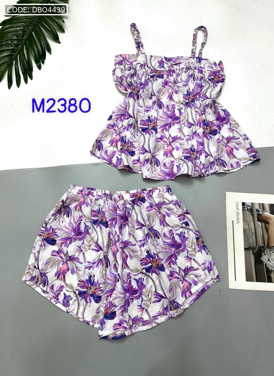 Đồ bộ mango mặc nhà quần đùi áo hai dây siêu mát in bông