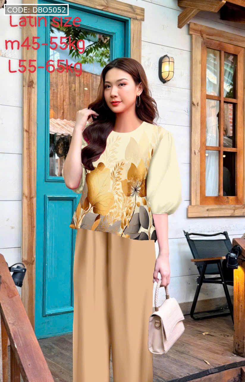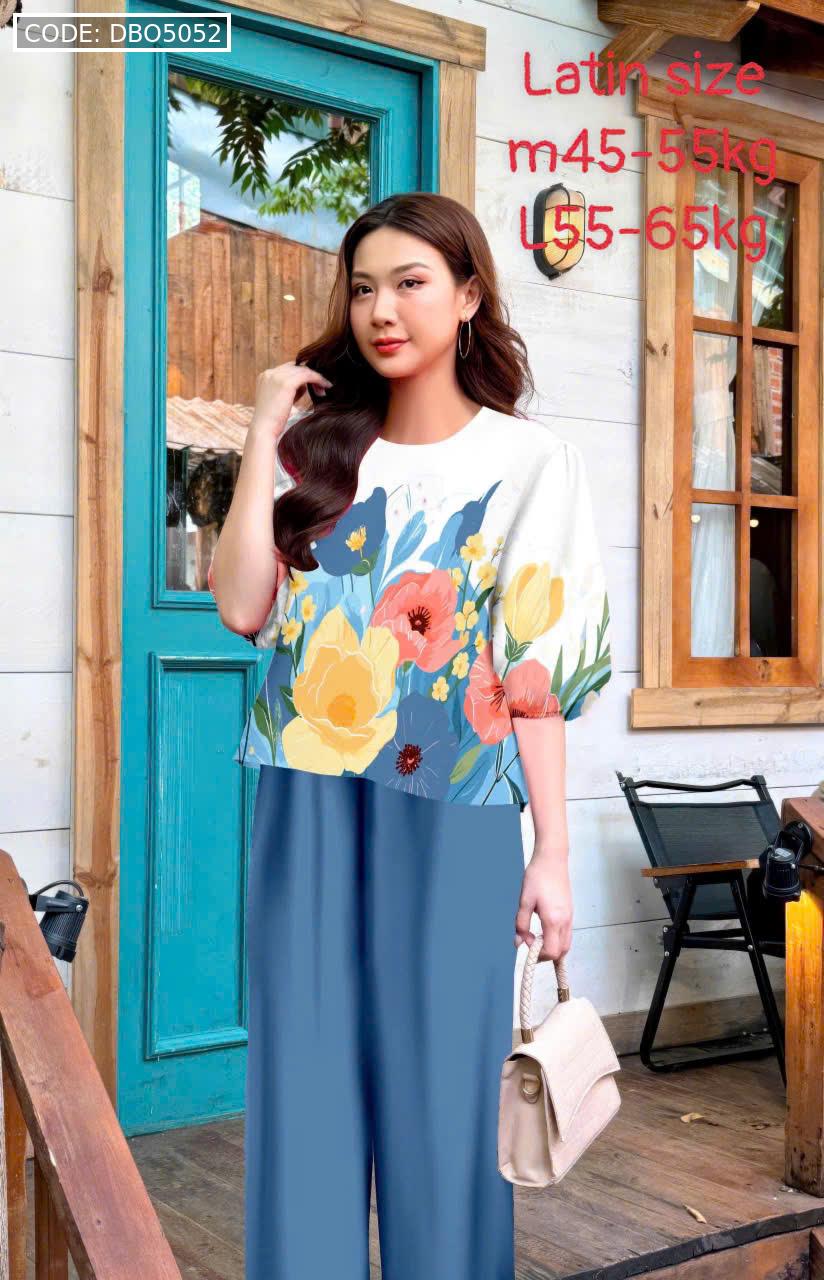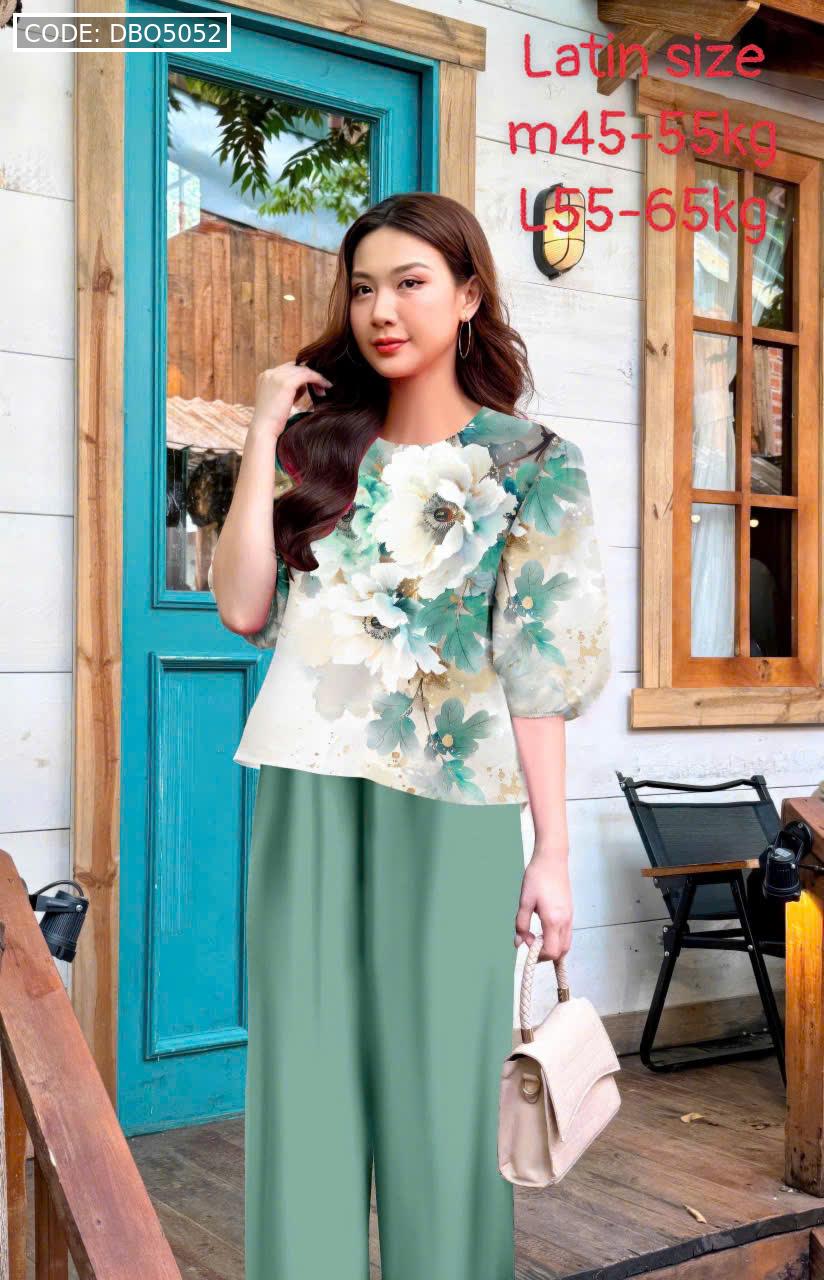 Đồ bộ mango quần dài áo tay phồng nhiều hoa đẹp