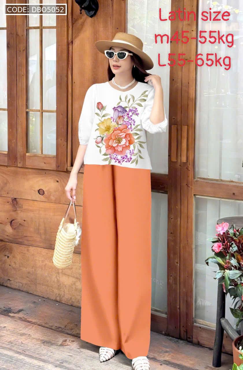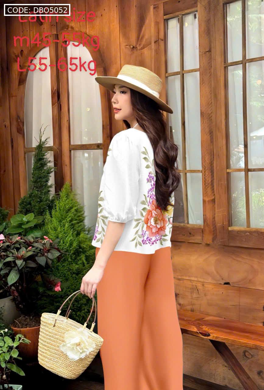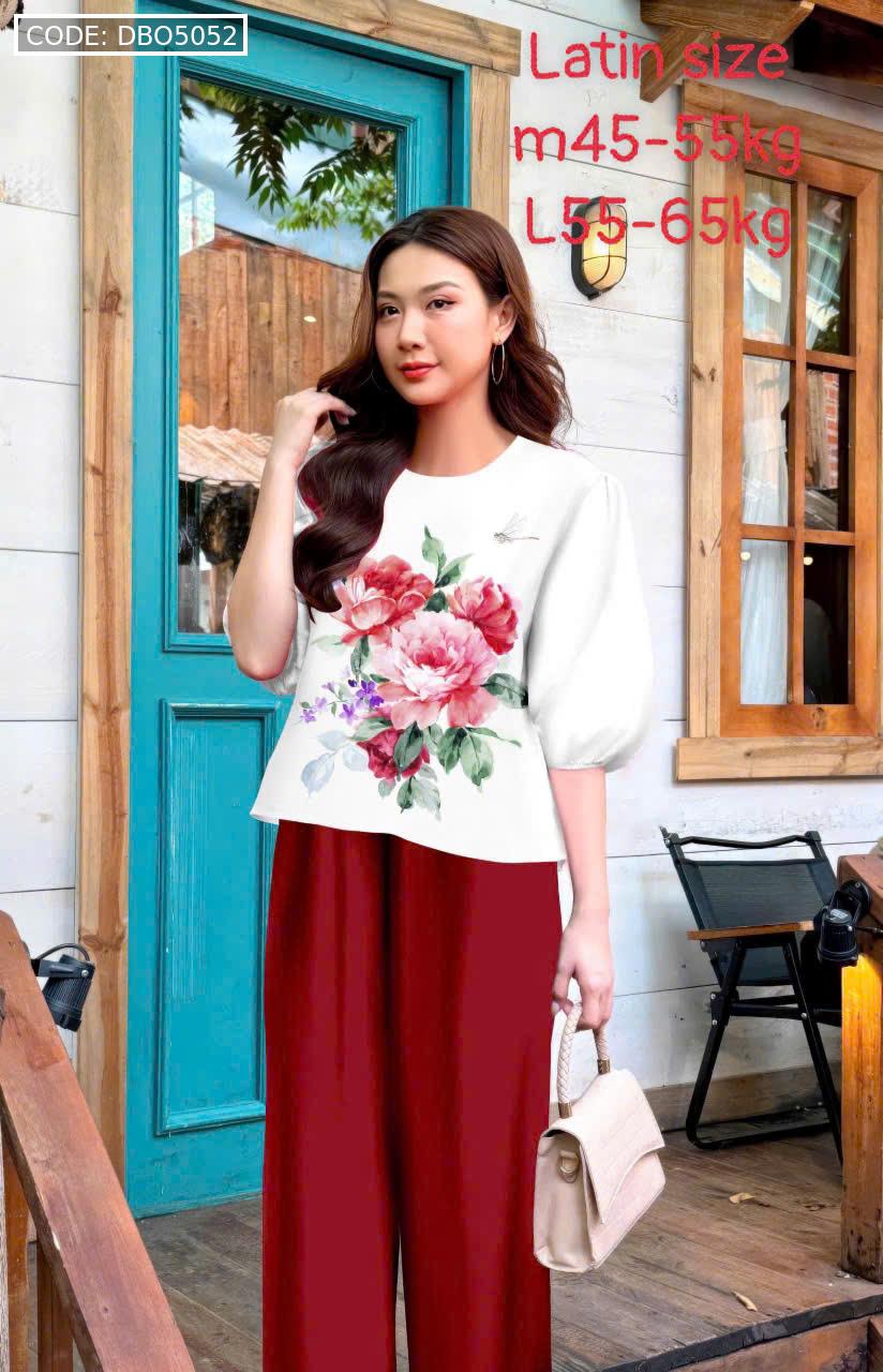 Đồ bộ mango quần dài áo tay phồng nhiều hoa đẹp