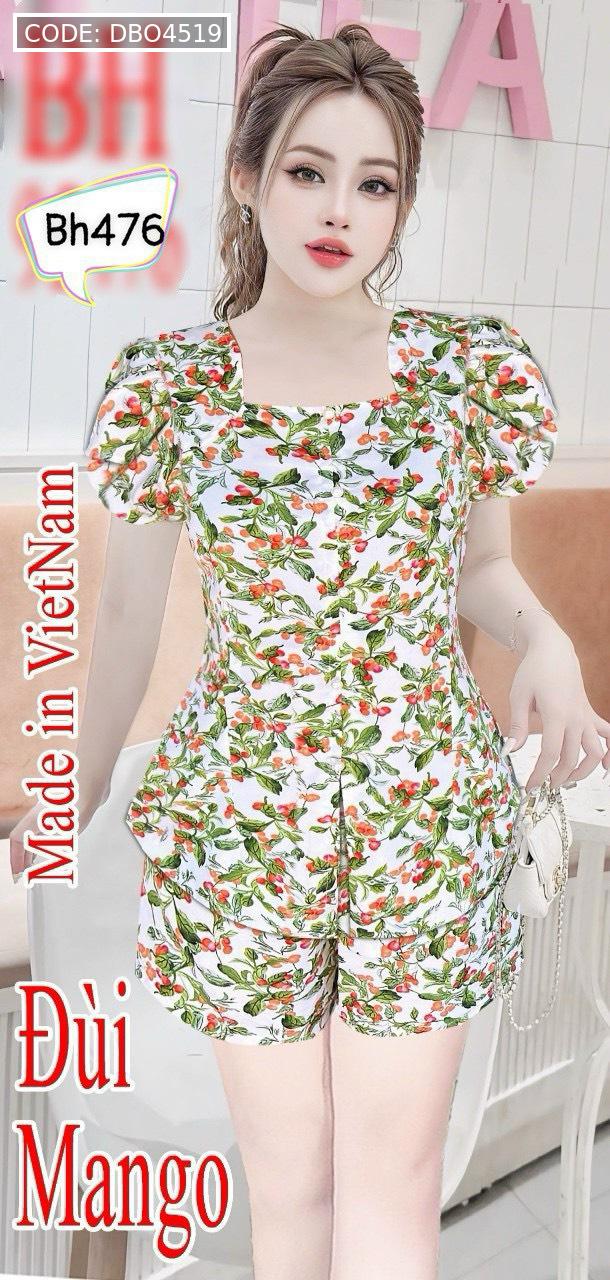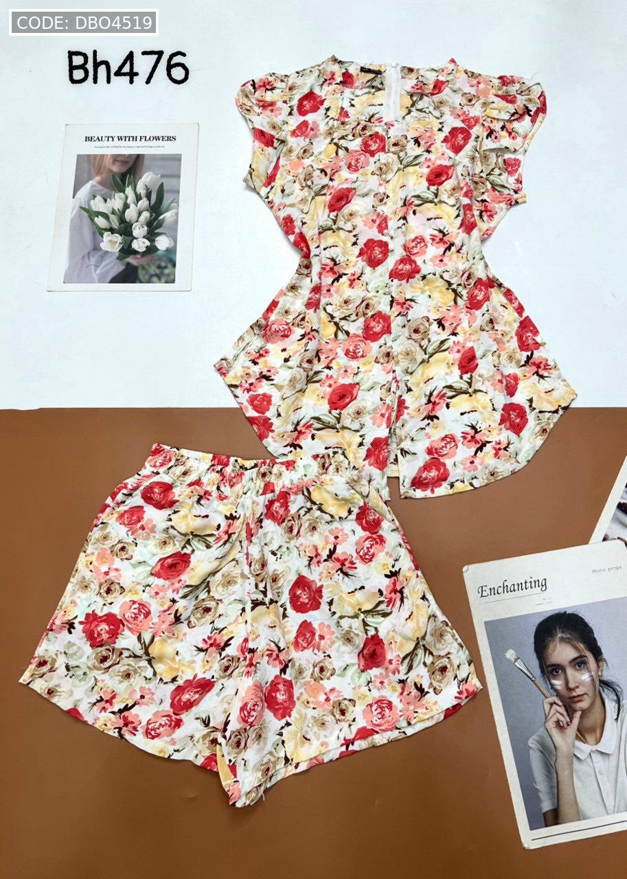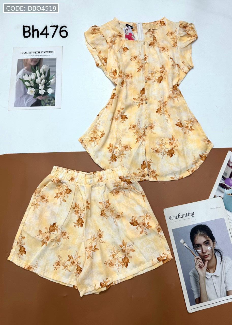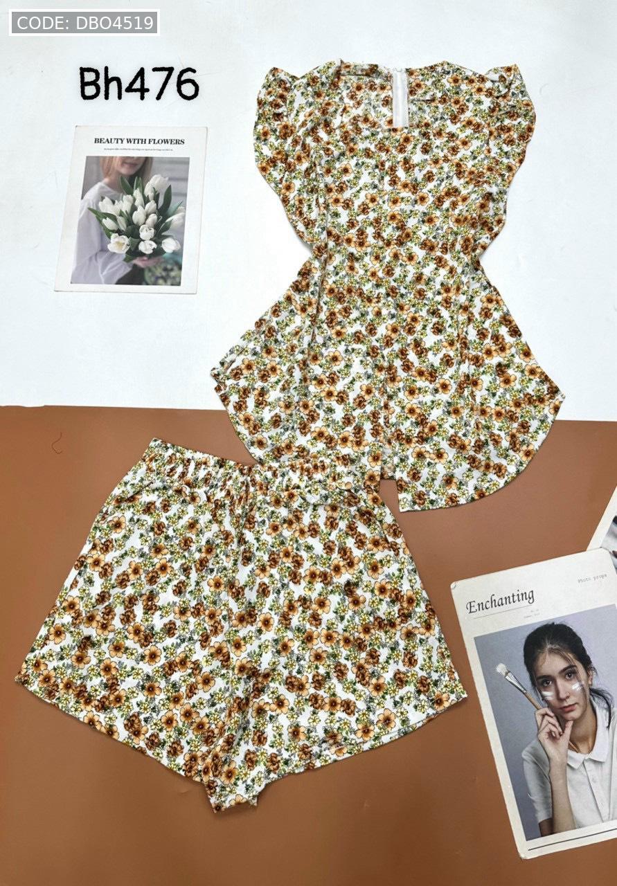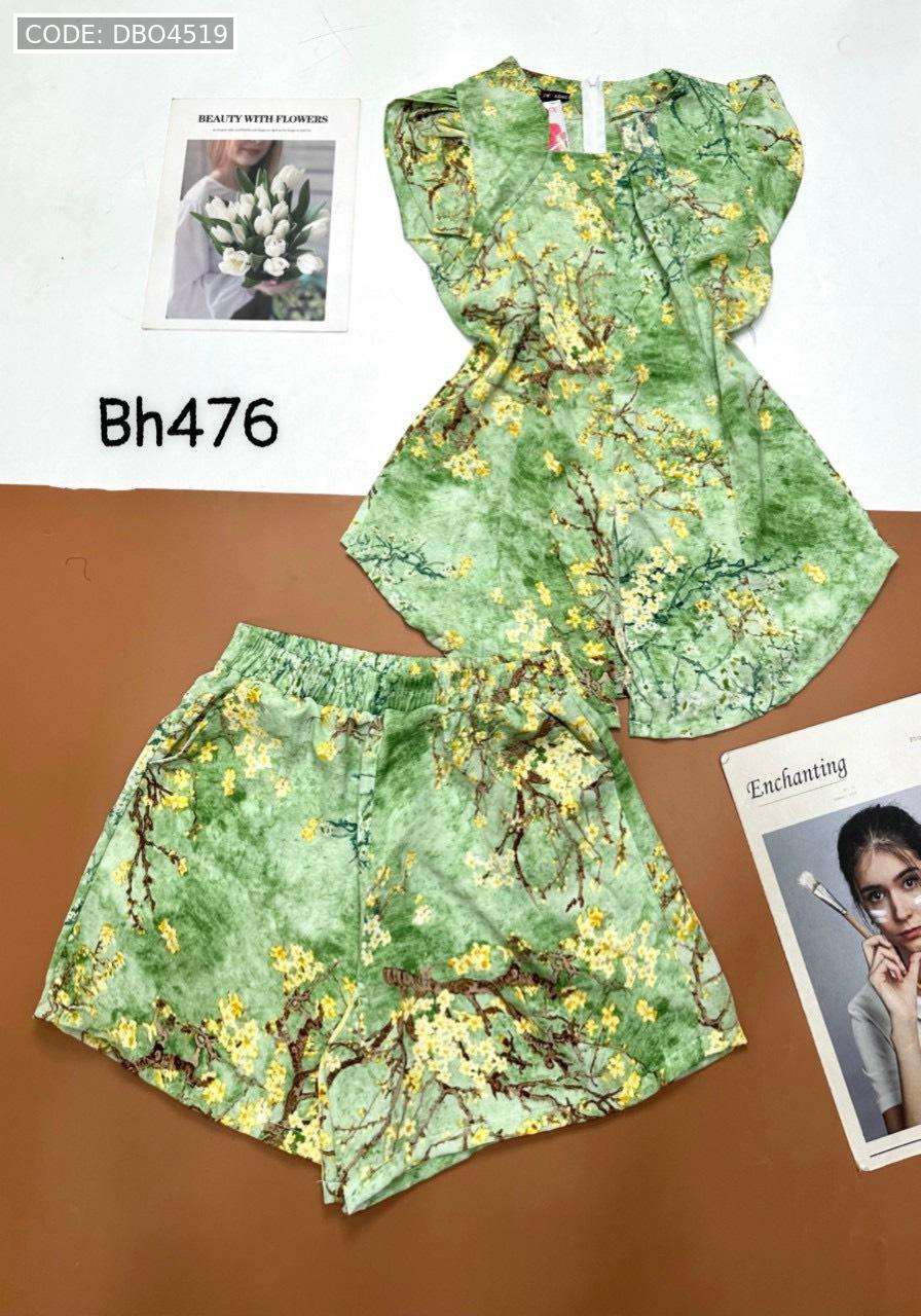 Đồ bộ mango quần đùi áo cổ vuông tay bèo nhiều hoạ tiết siêu sang
