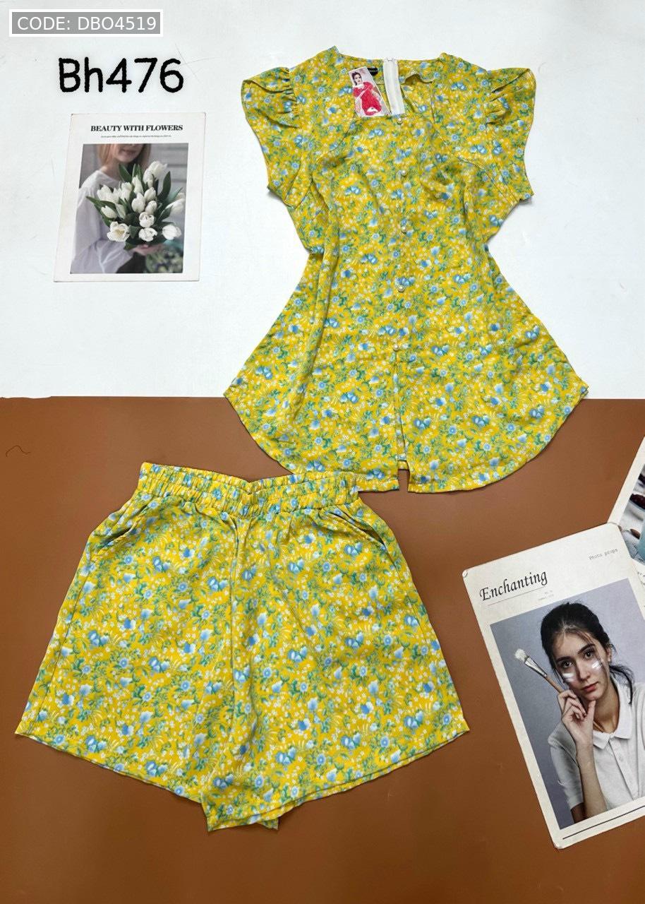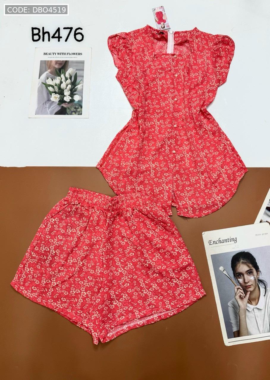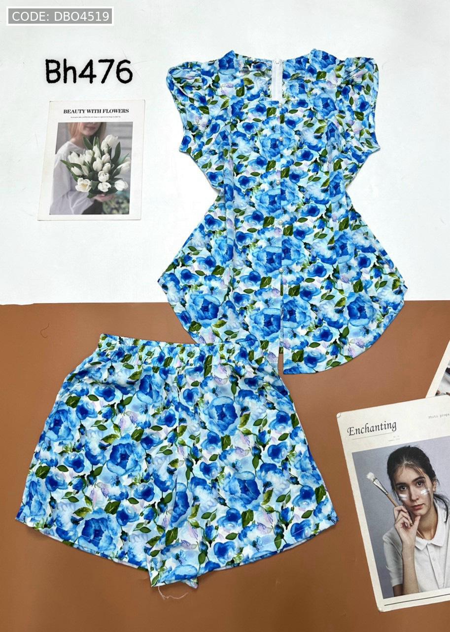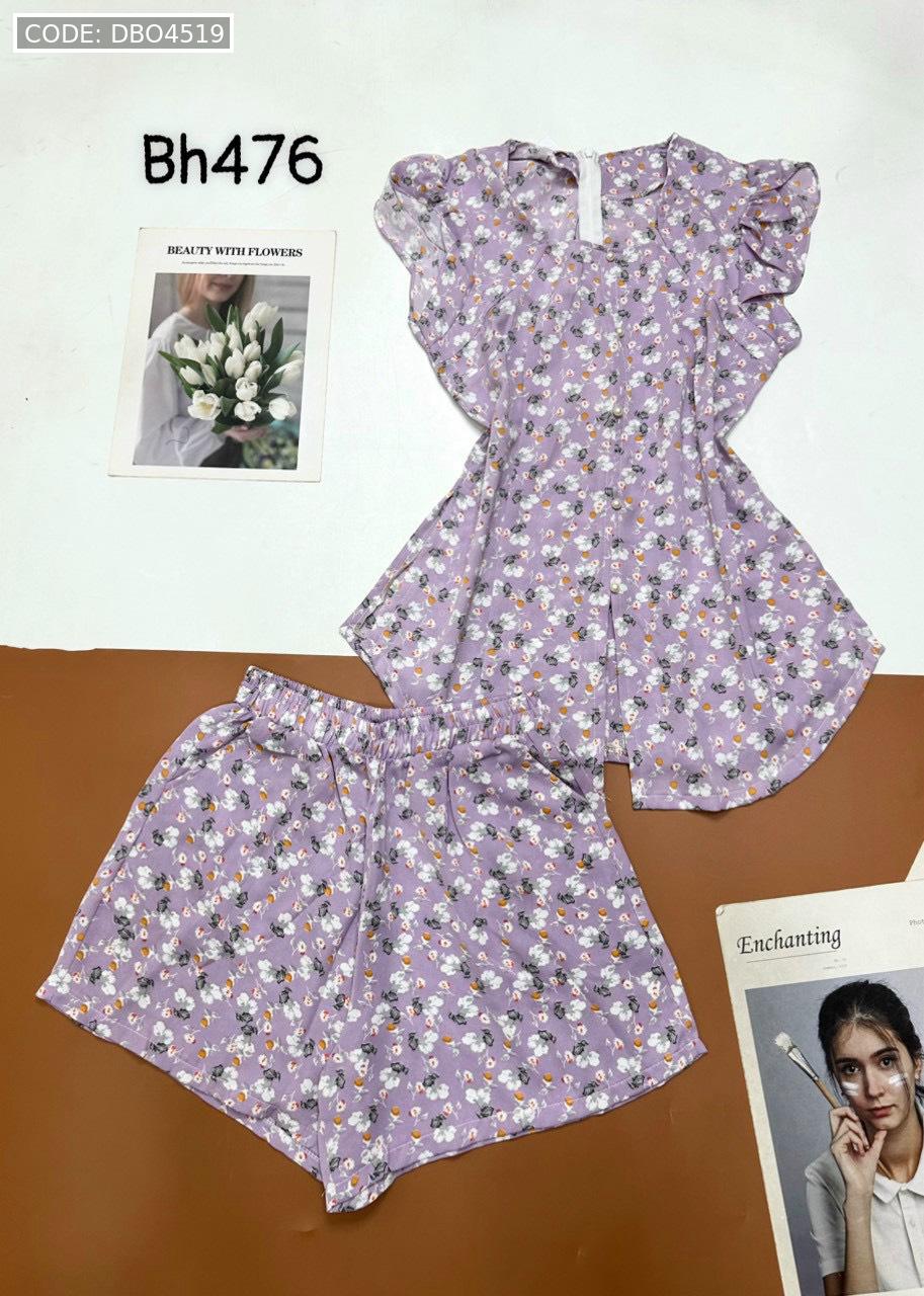 Đồ bộ mango quần đùi áo cổ vuông tay bèo nhiều hoạ tiết siêu sang