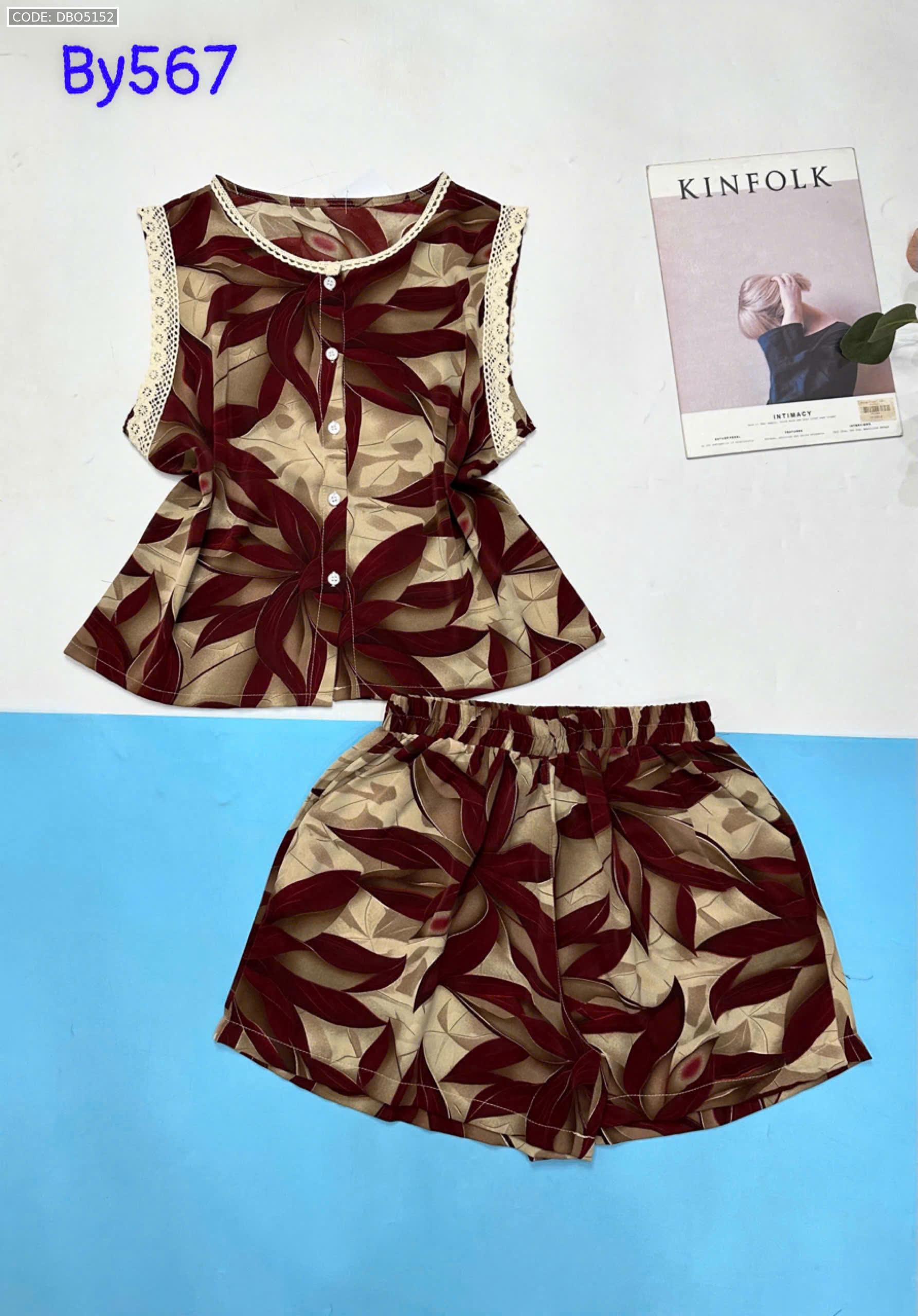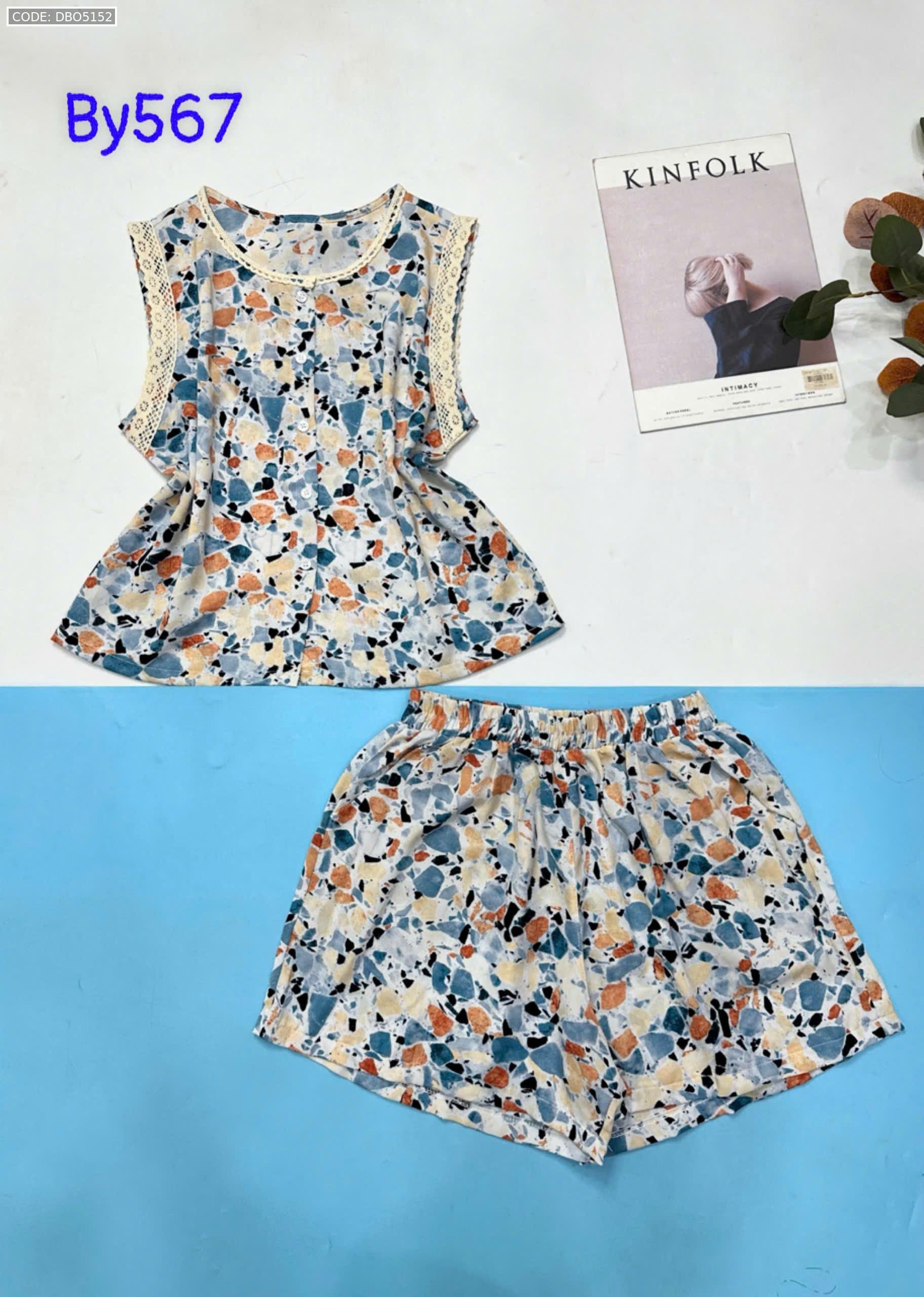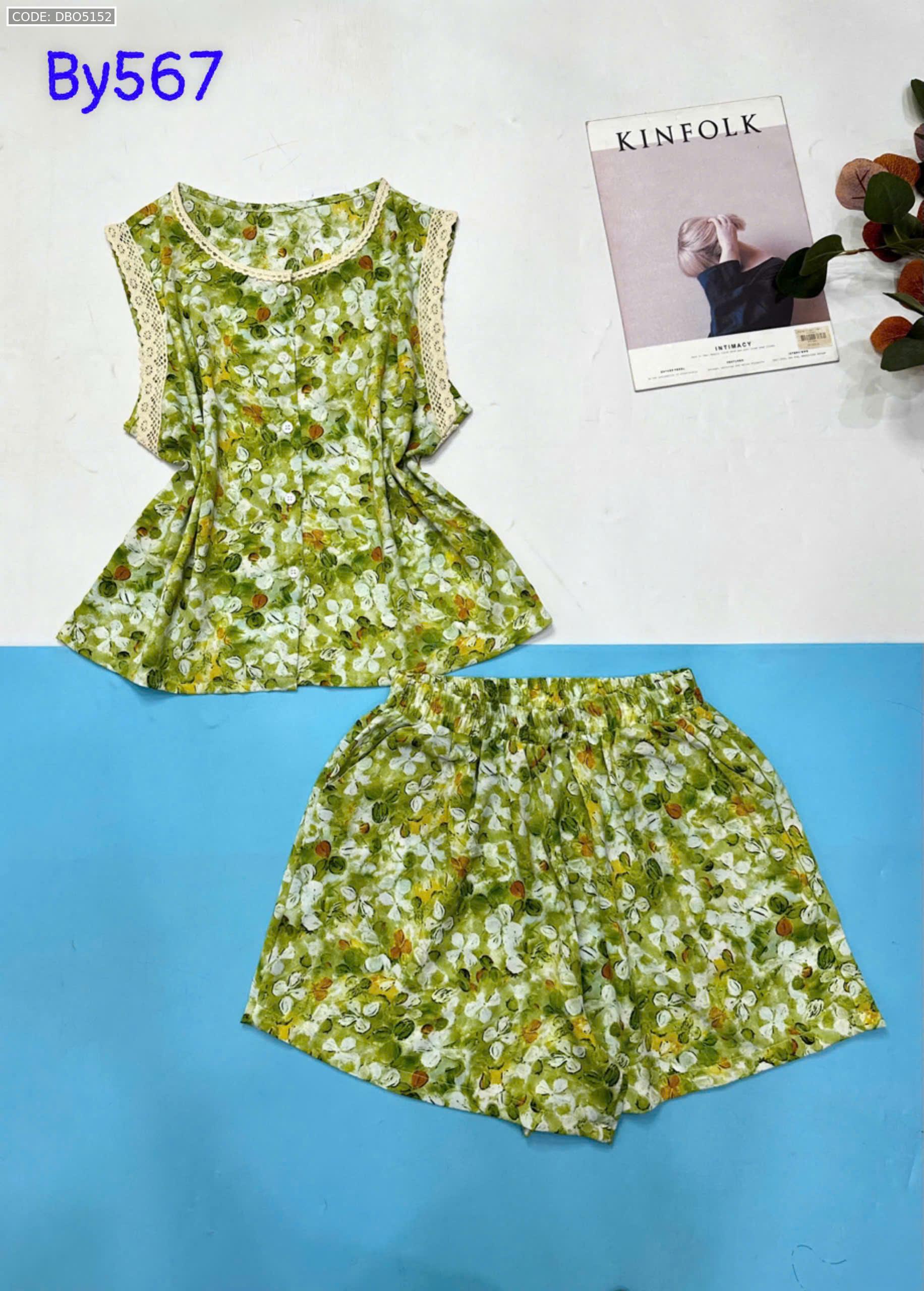 Đồ bộ mango quần đùi áo sát nách phối ren