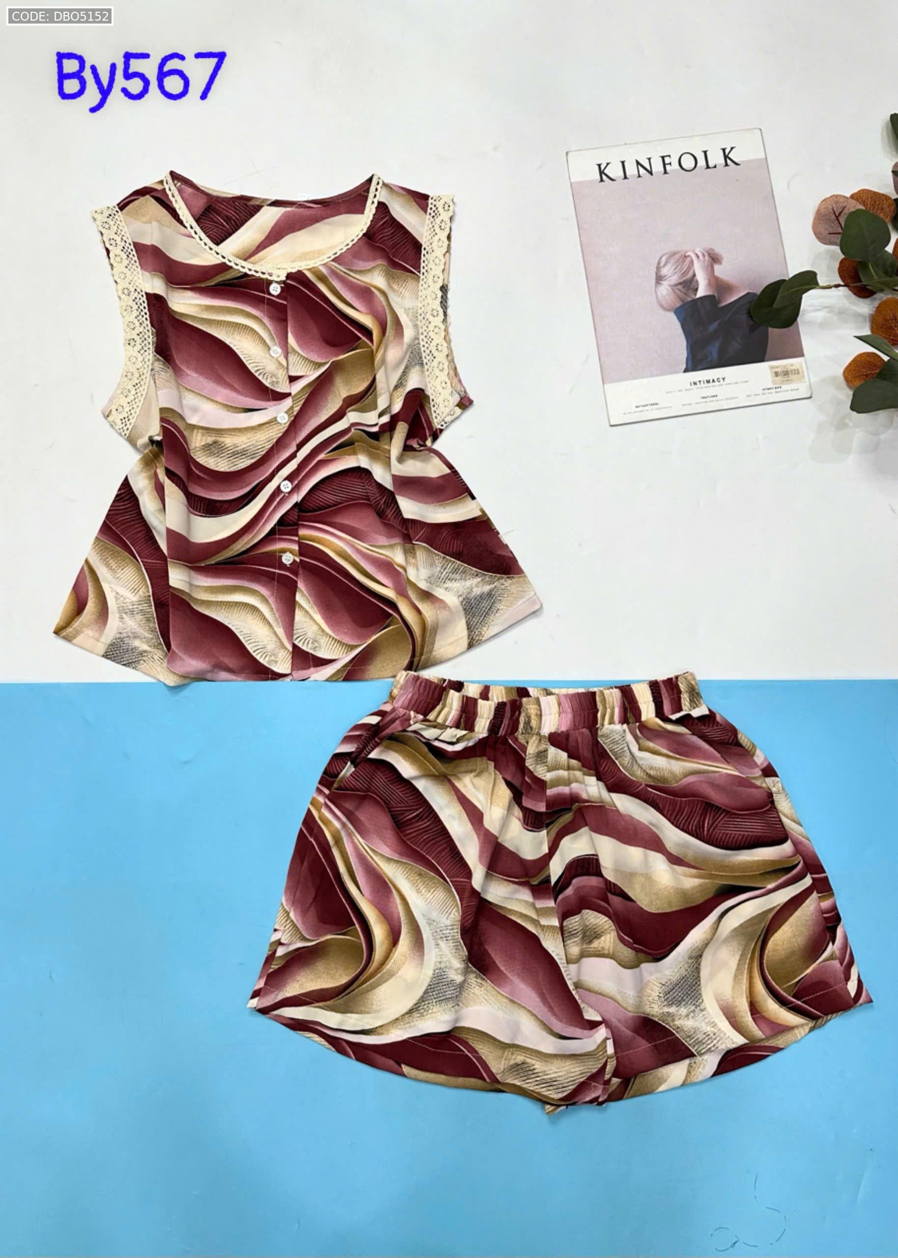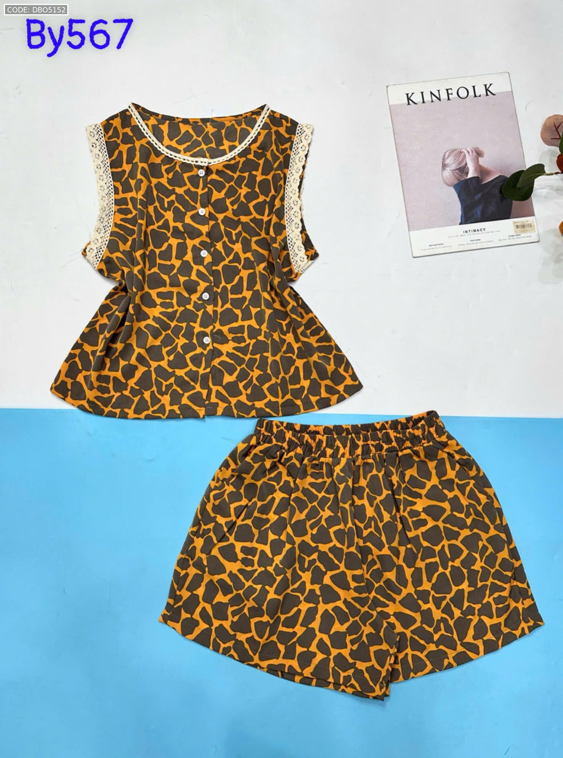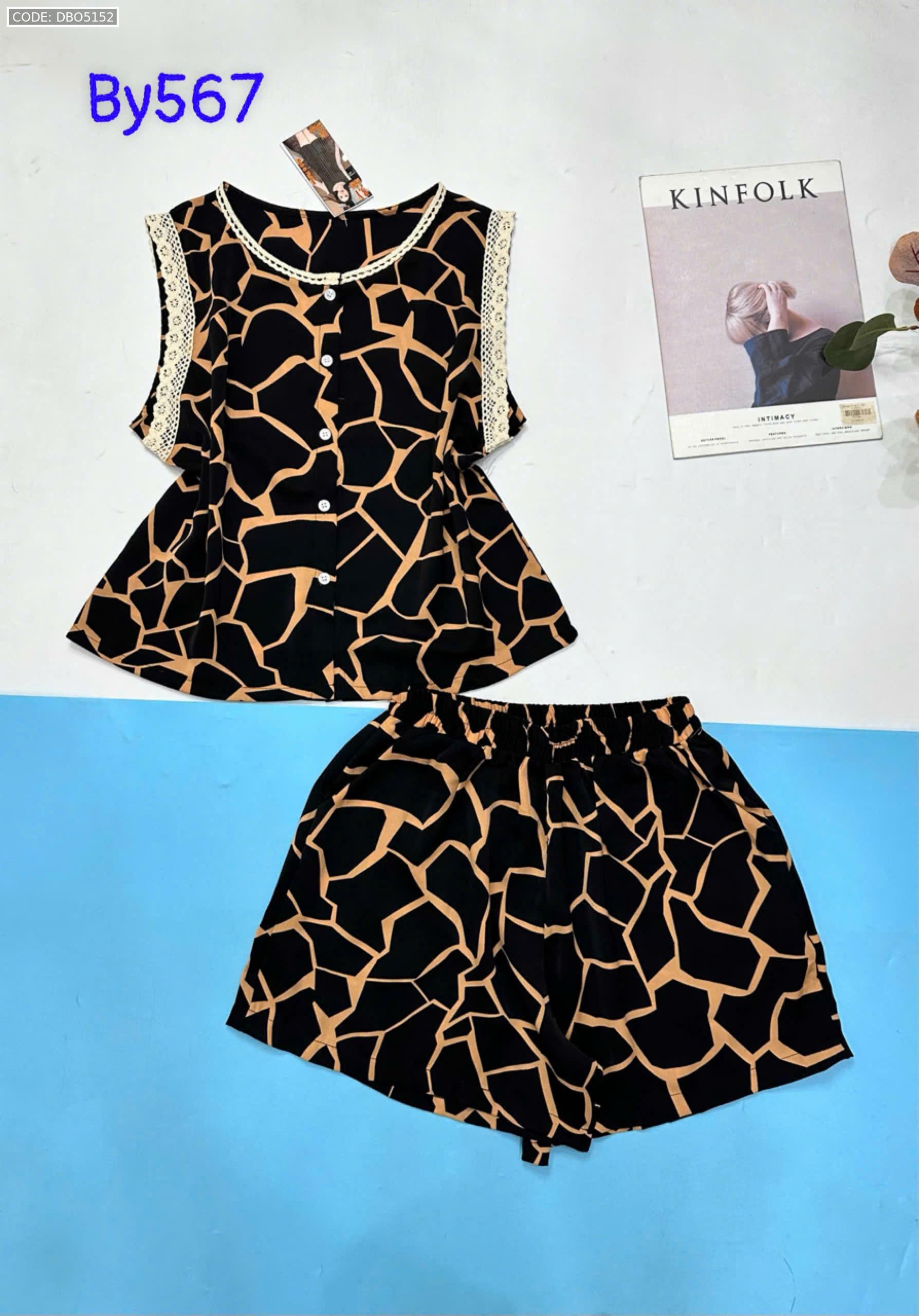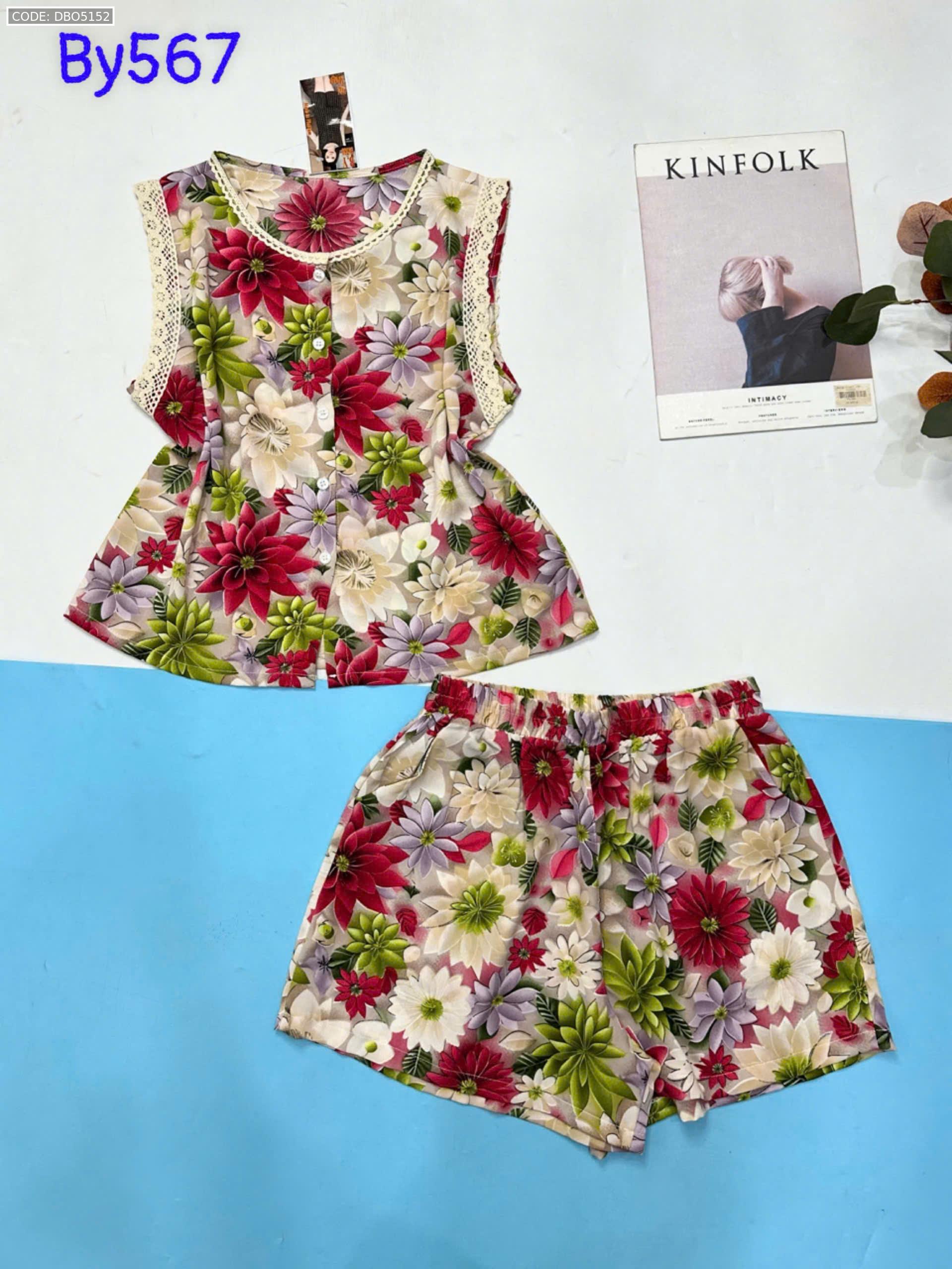 Đồ bộ mango quần đùi áo sát nách phối ren