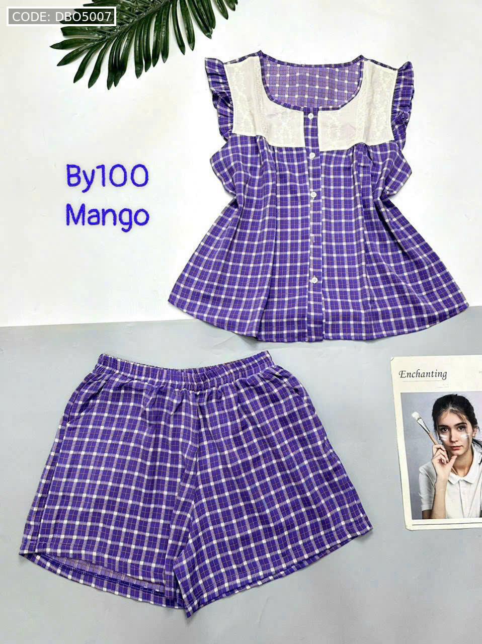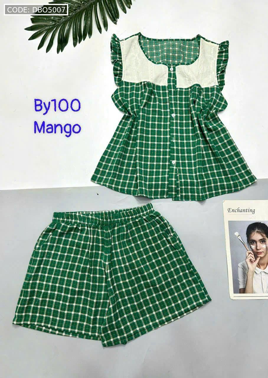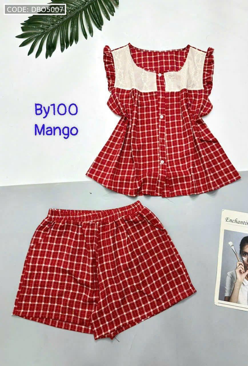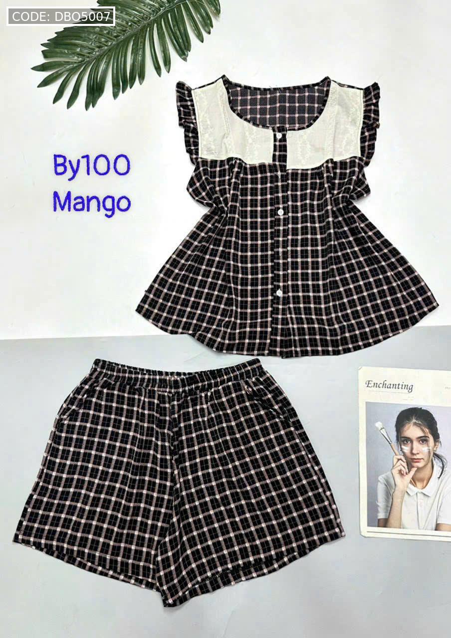 Đồ bộ mango quần đùi caro áo sát nách phối ren