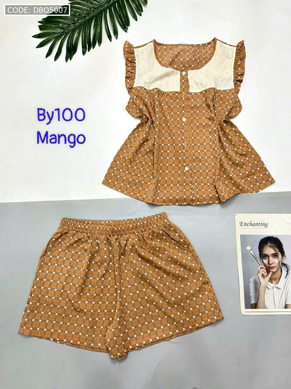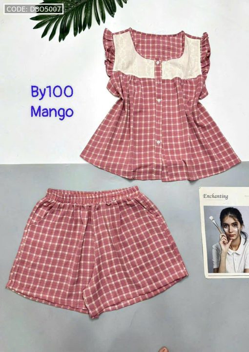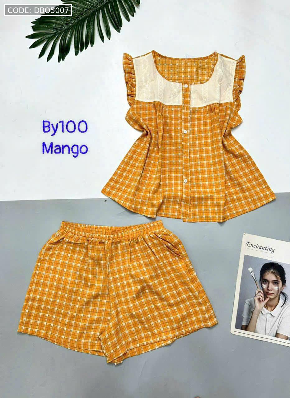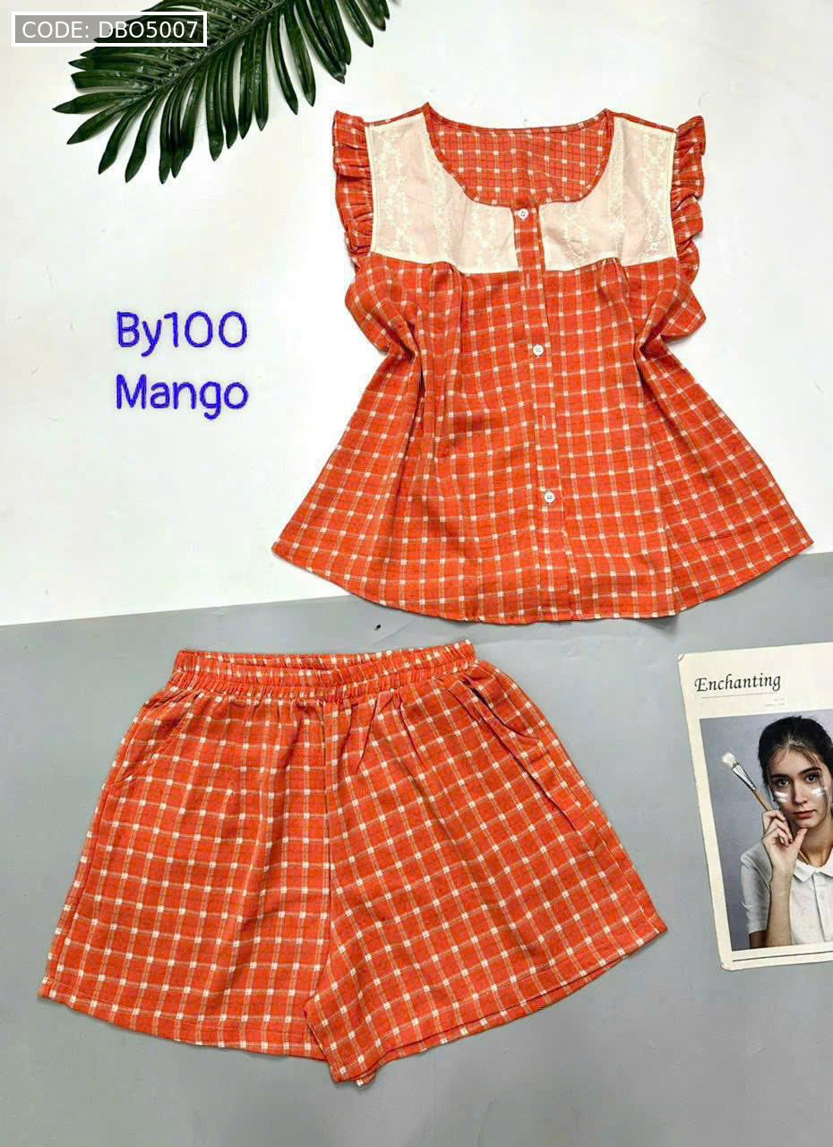 Đồ bộ mango quần đùi caro áo sát nách phối ren