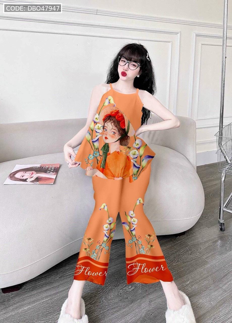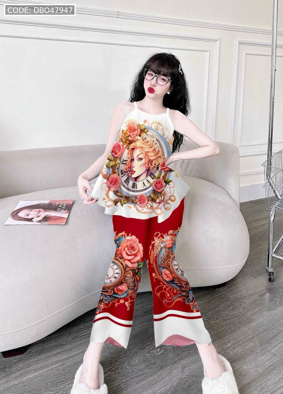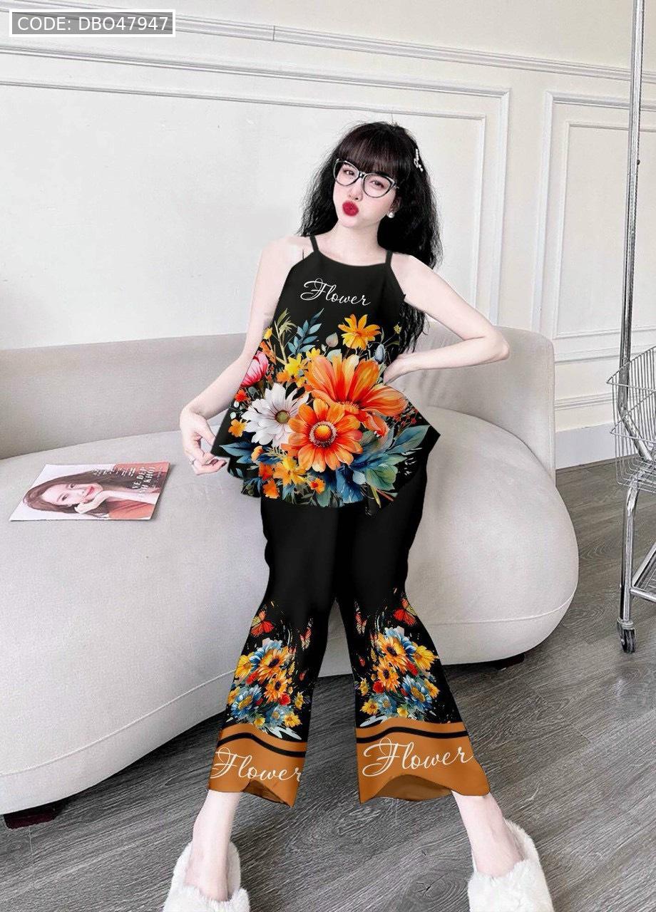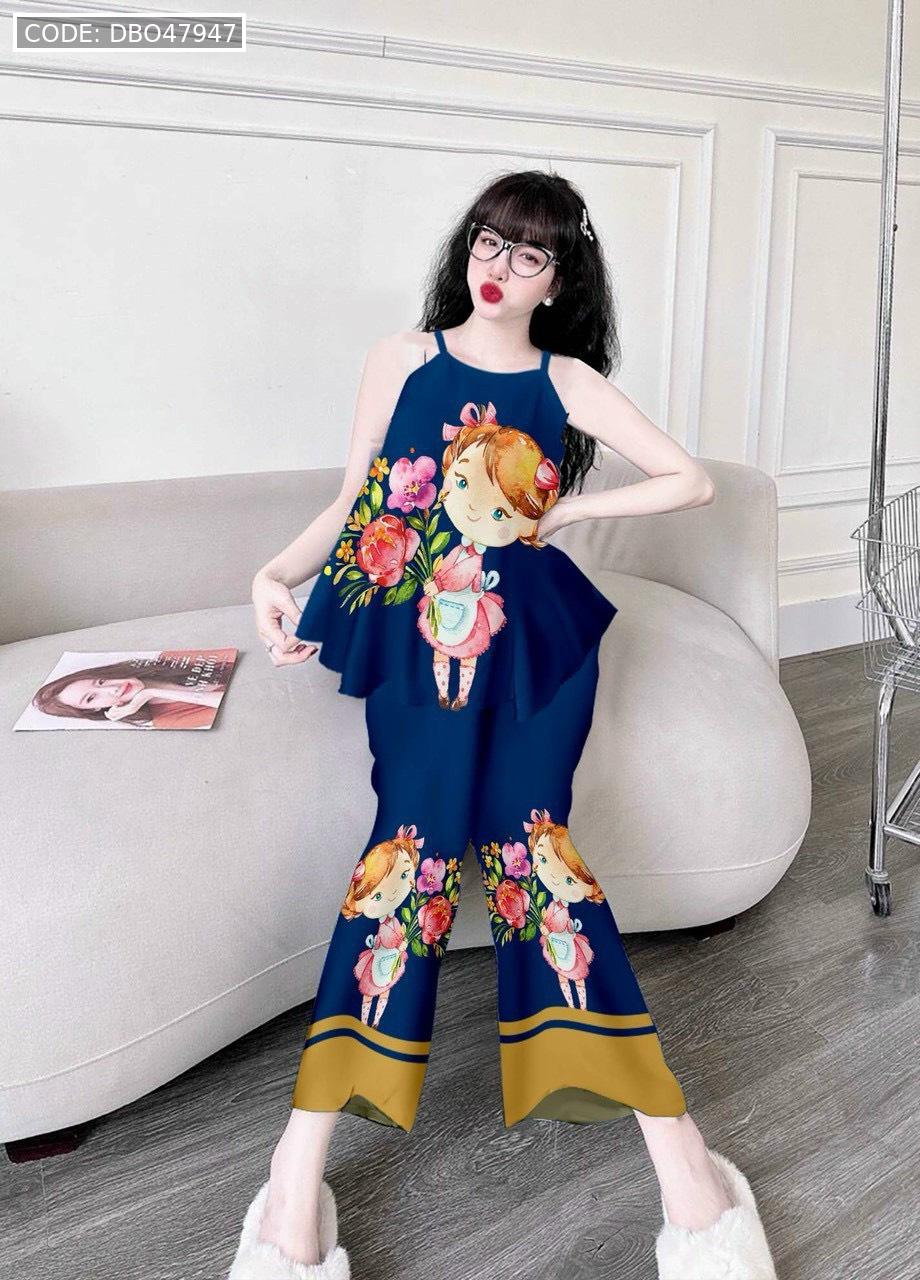 Đồ bộ mango siêu mát quần dài áo yếm nhiều hoạ tiết
