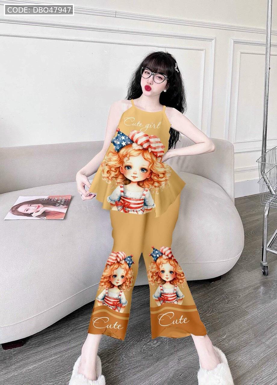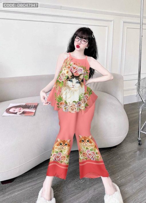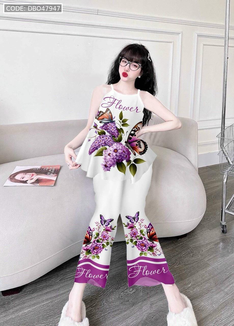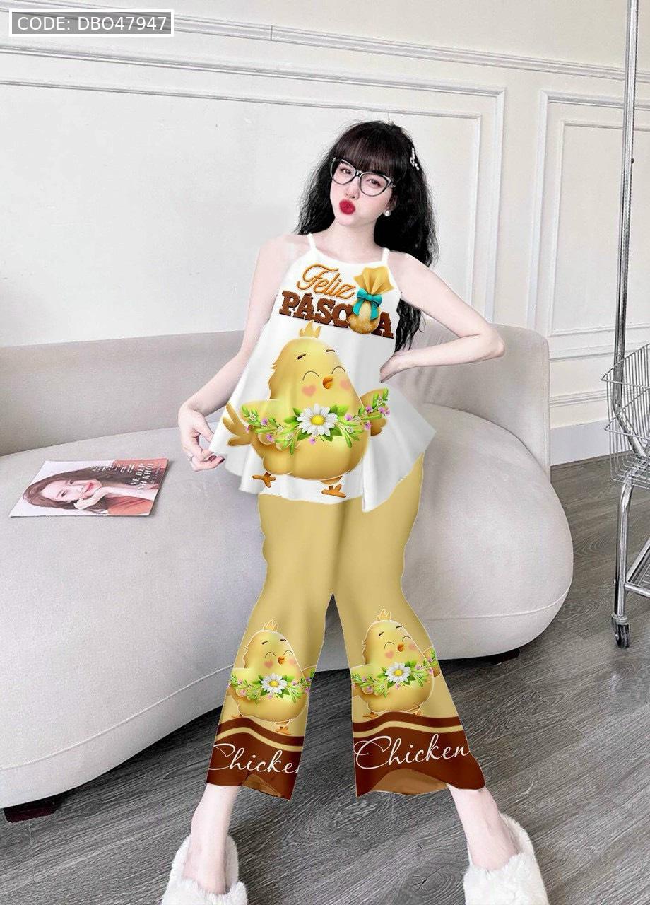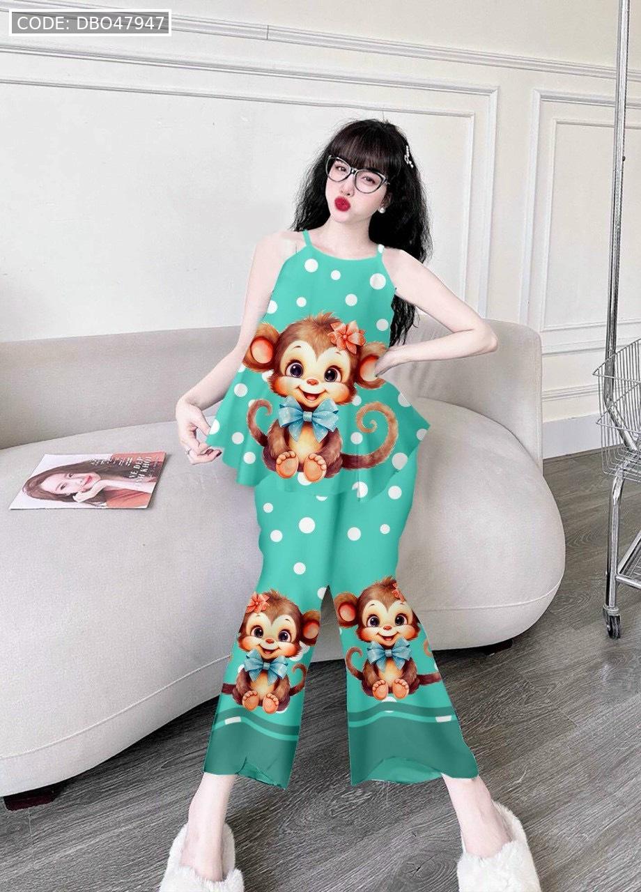 Đồ bộ mango siêu mát quần dài áo yếm nhiều hoạ tiết
