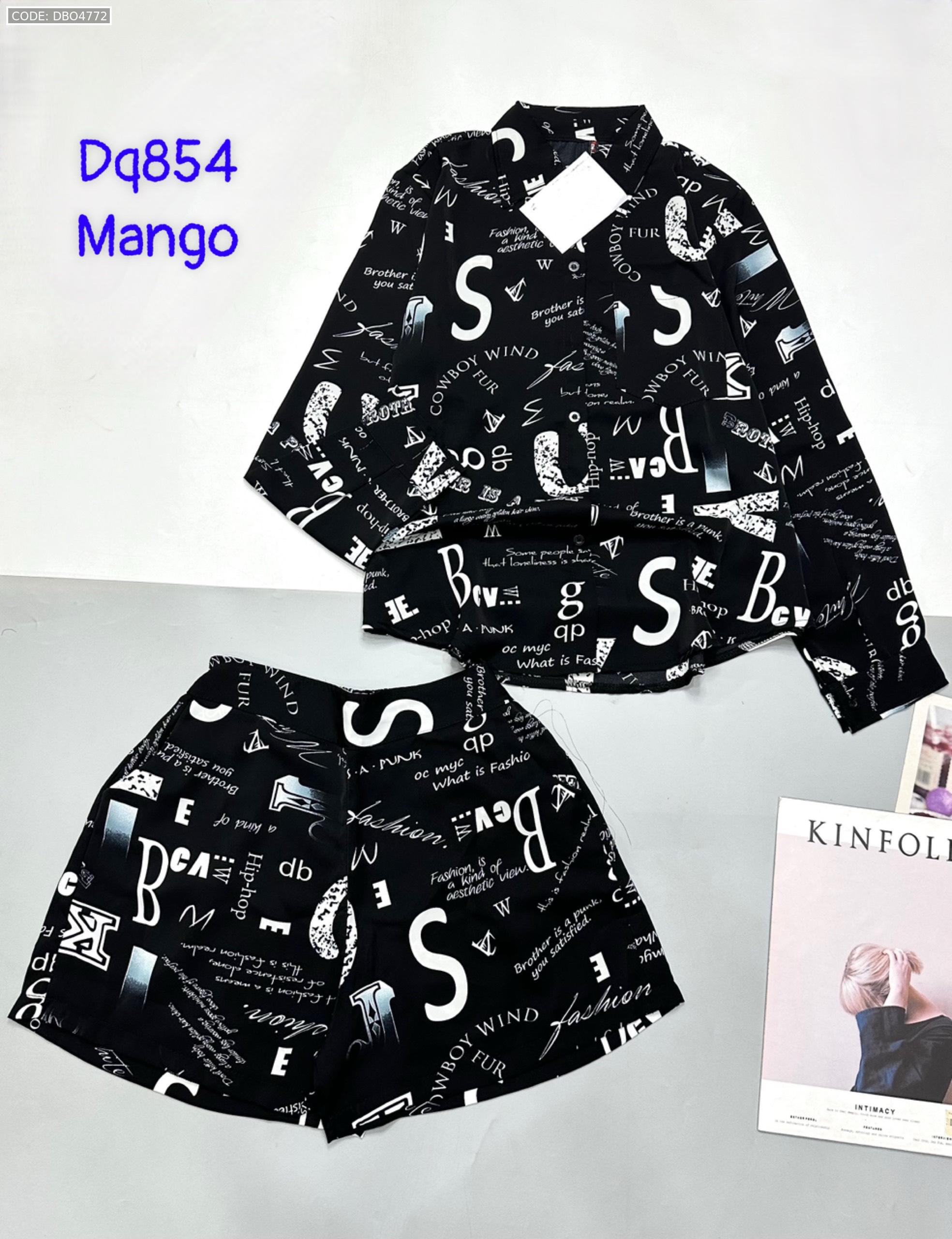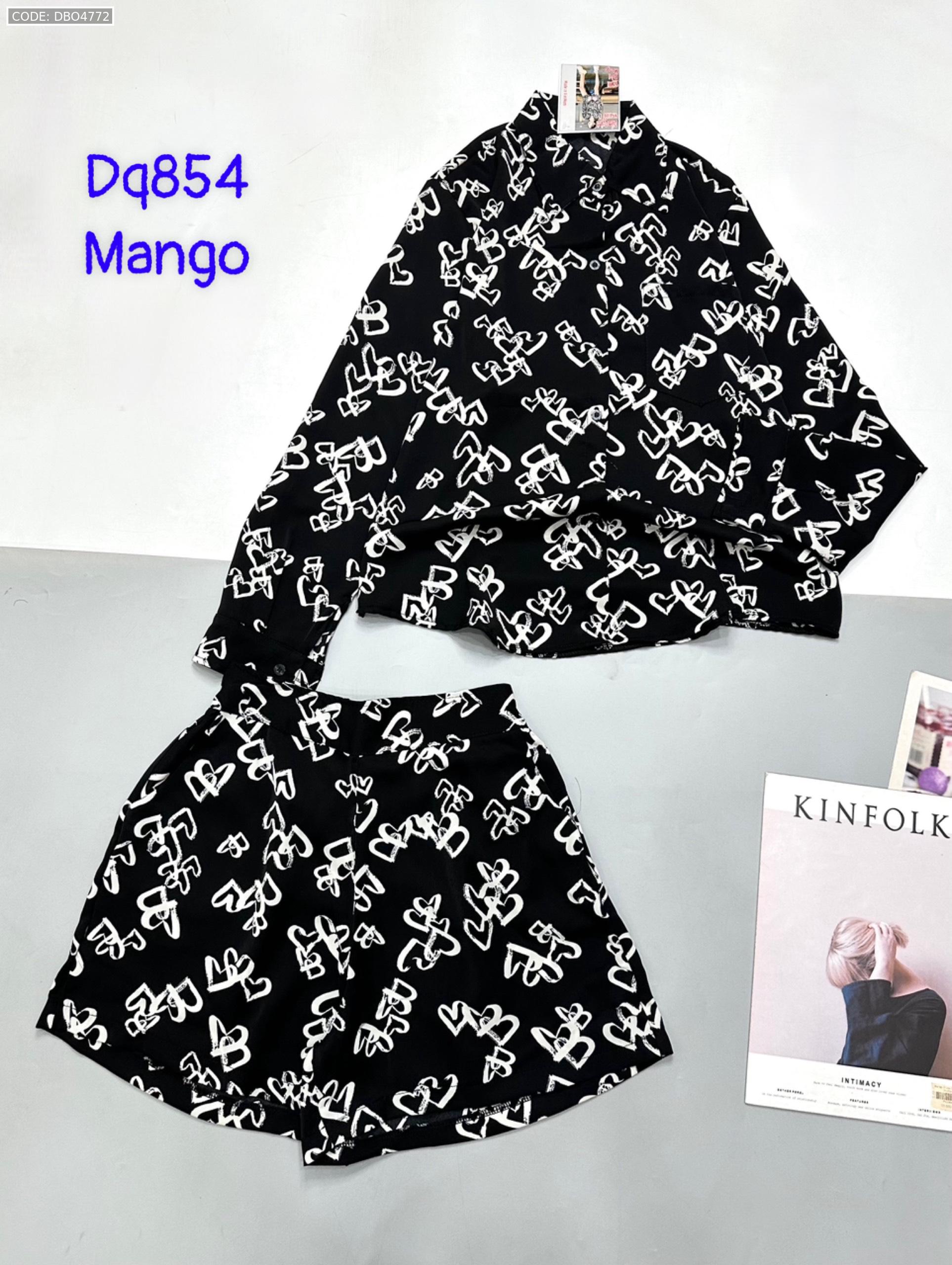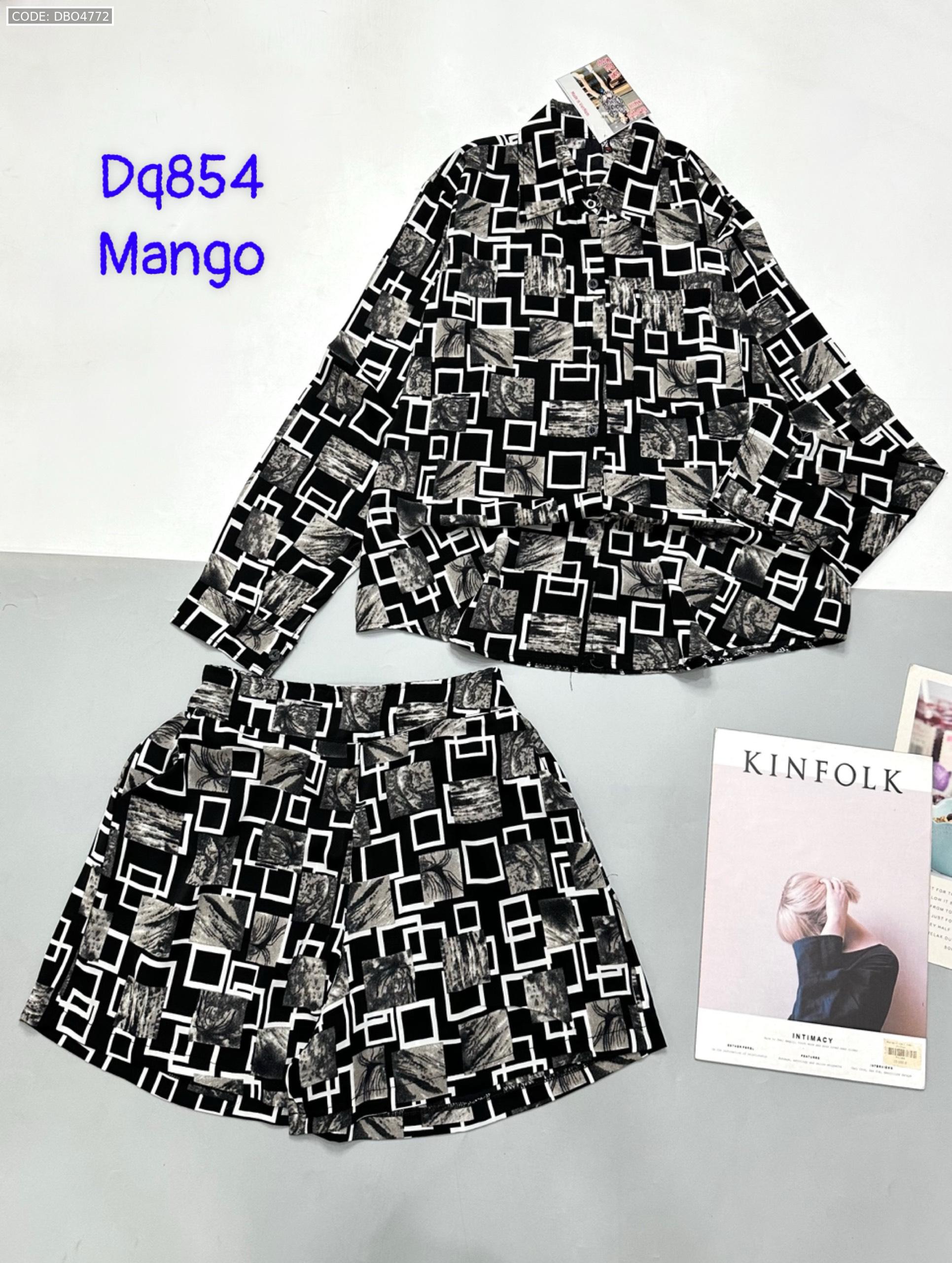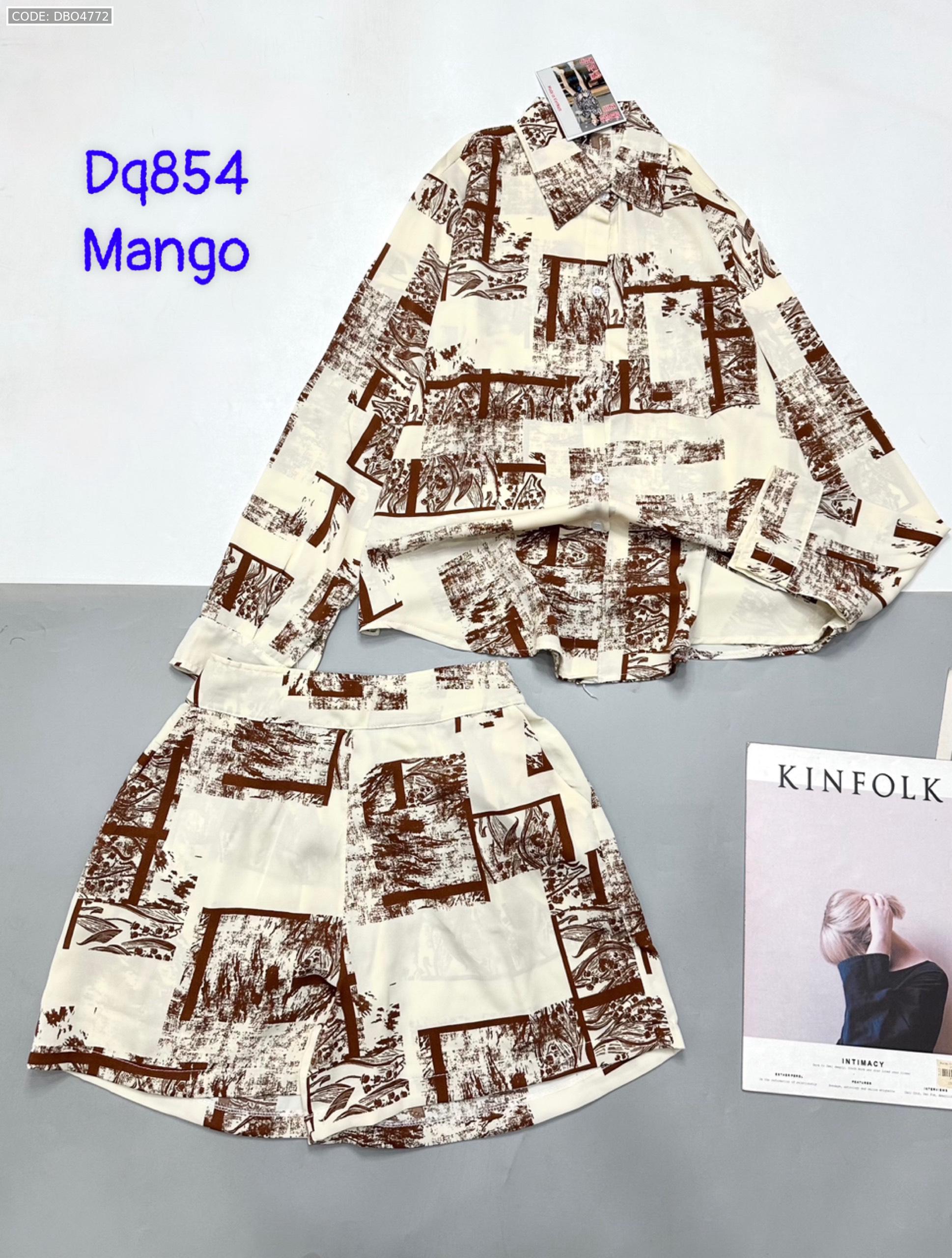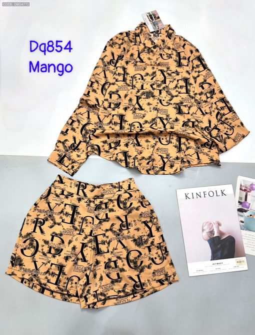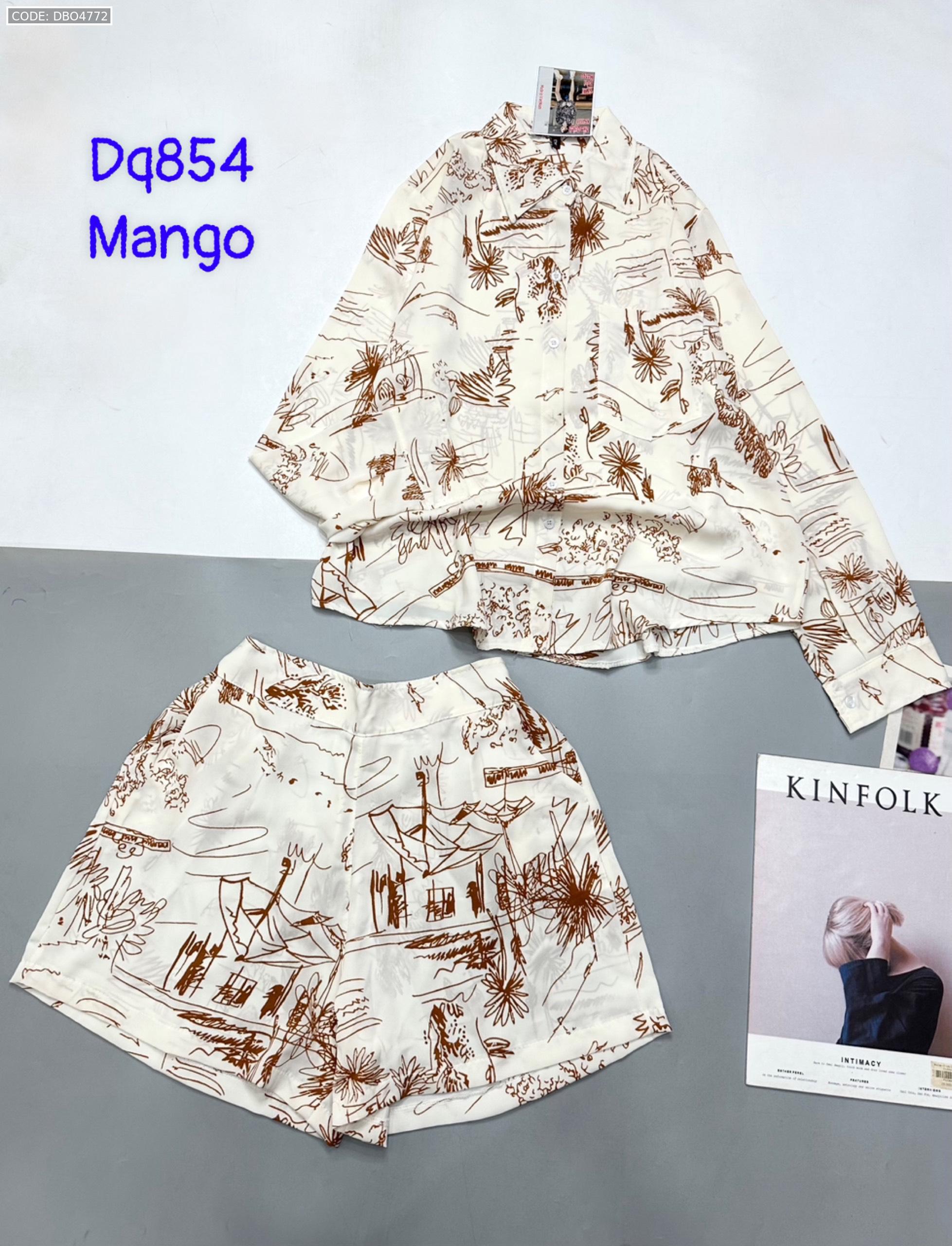 Đồ bộ mango siêu mát quần đùi áo sơ mi tay dài dấu quần
