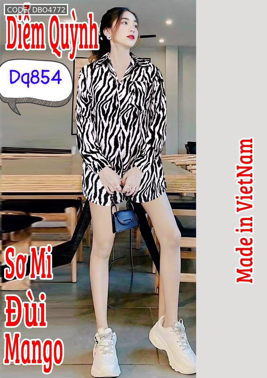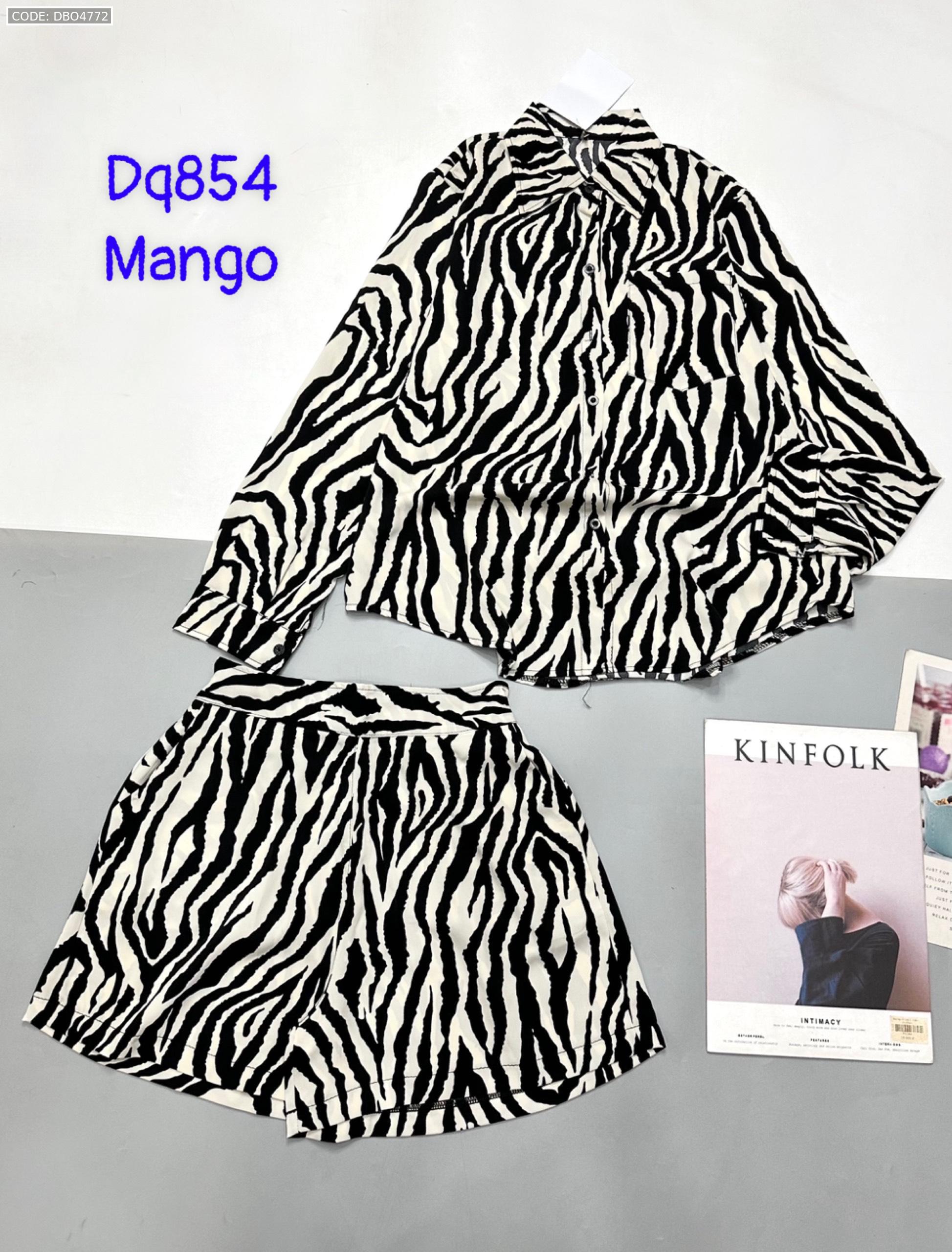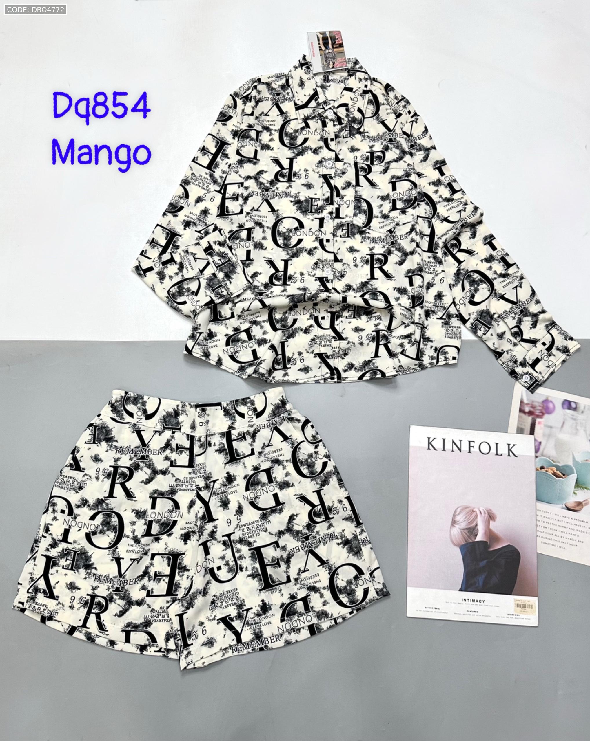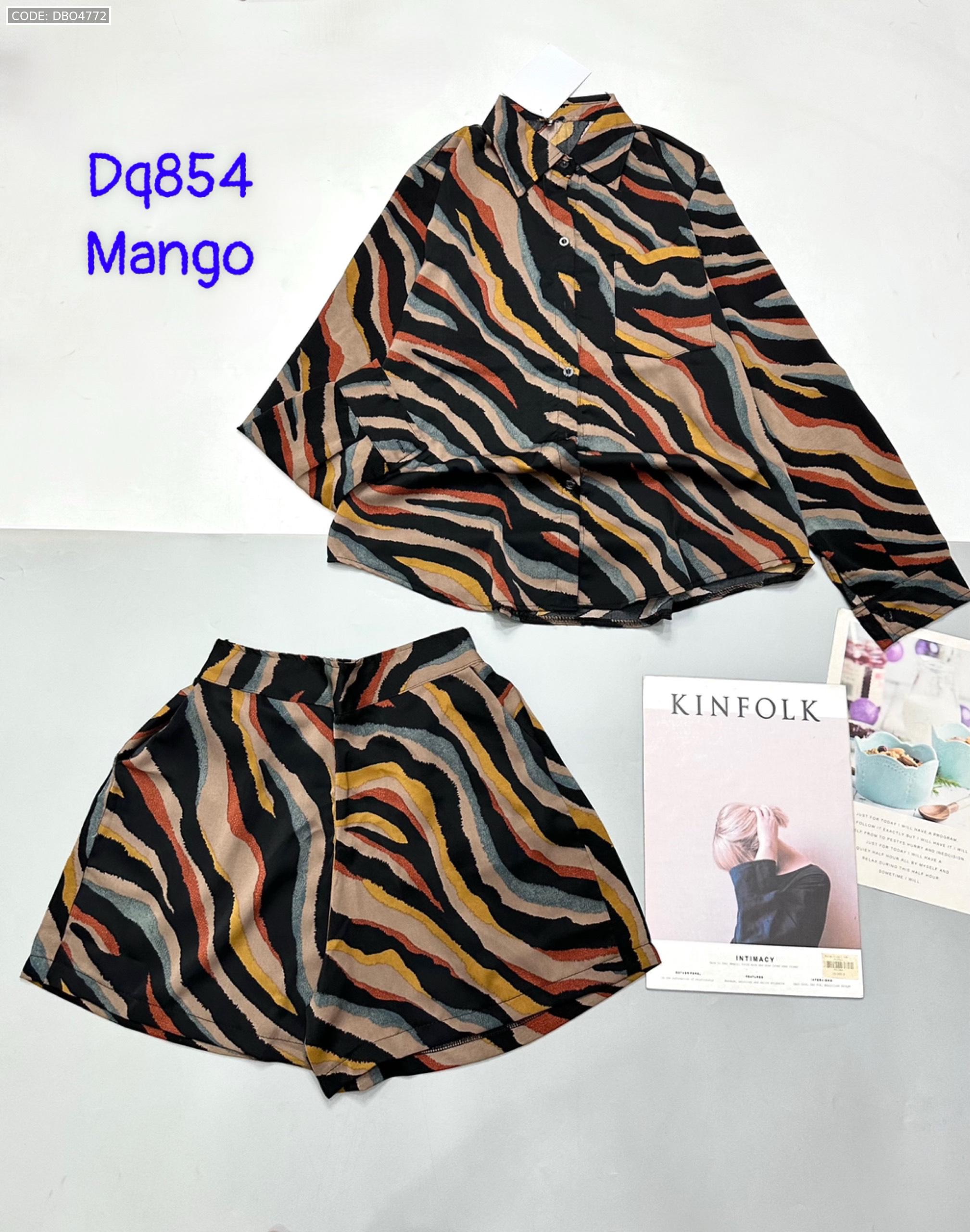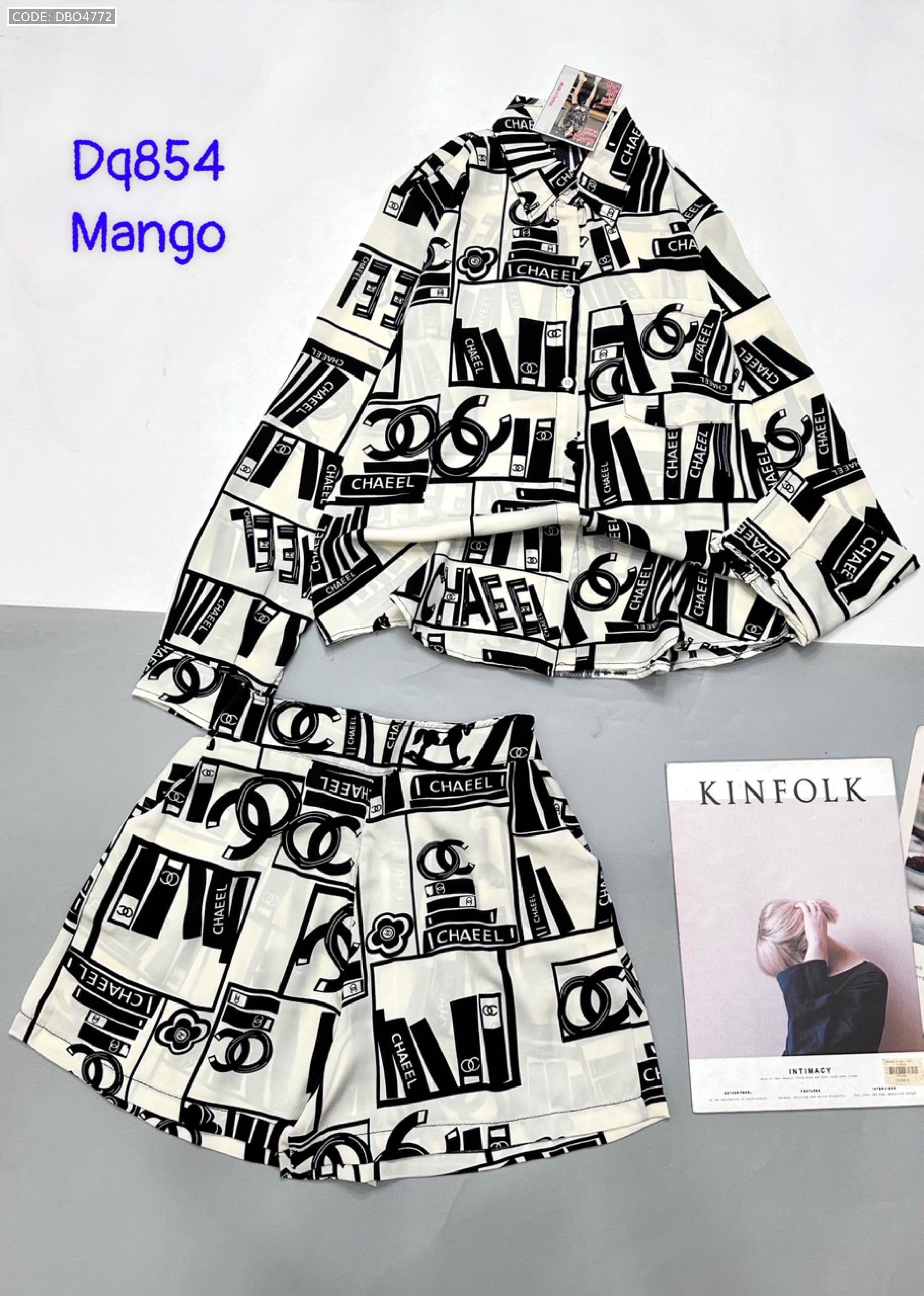 Đồ bộ mango siêu mát quần đùi áo sơ mi tay dài dấu quần