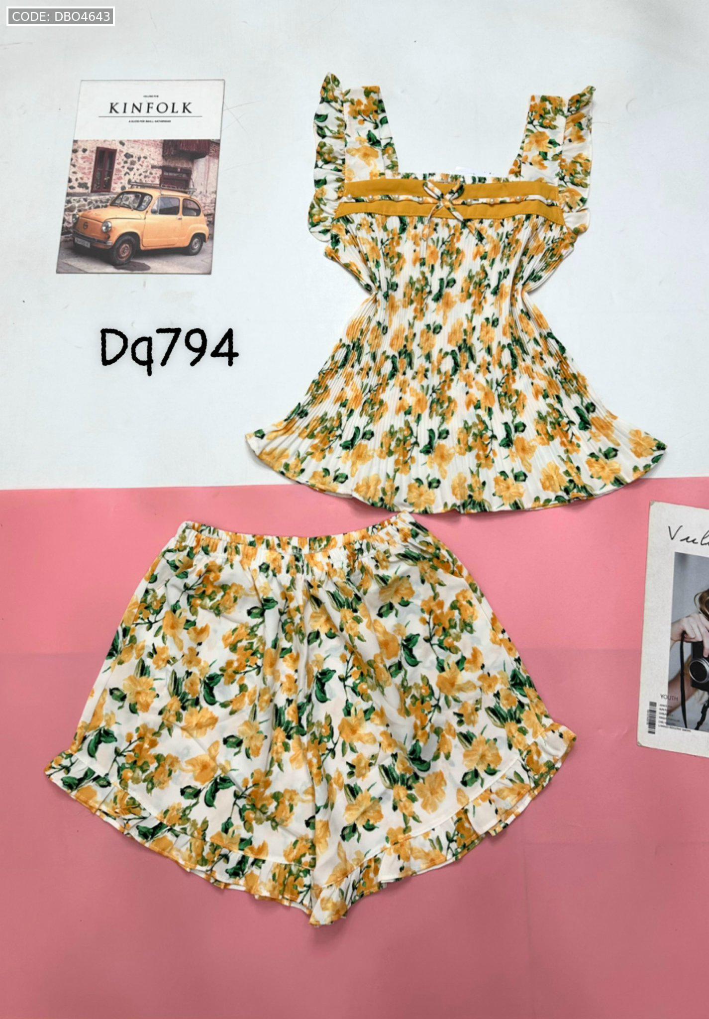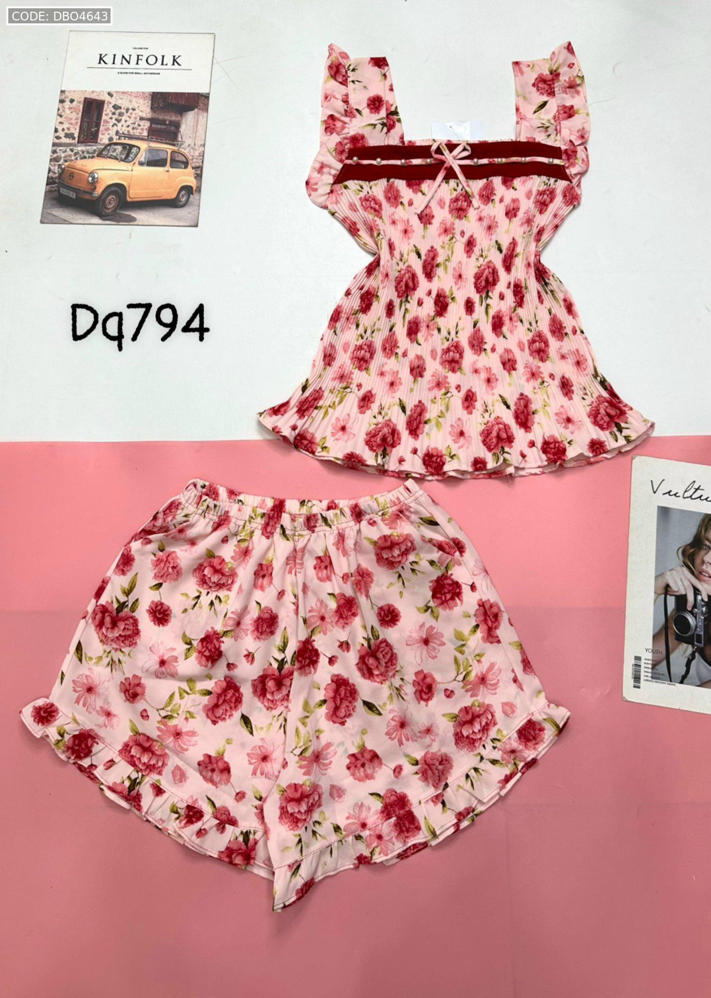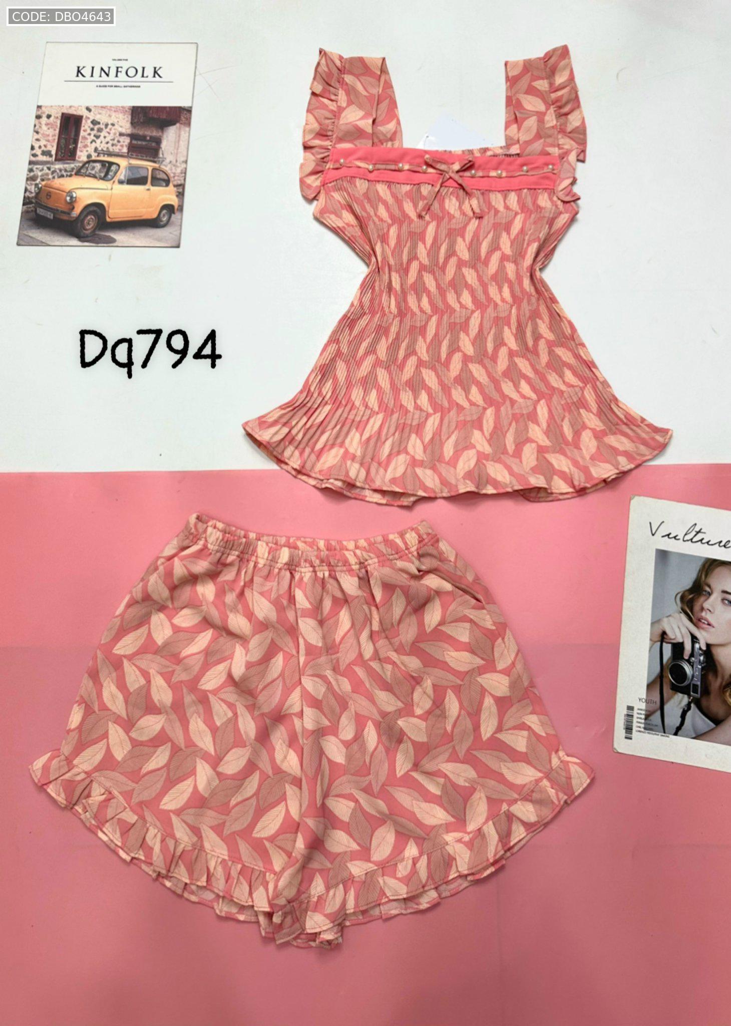 Đồ bộ mango siêu mát quần đùi áo tay bèo cổ vuông có nơ thắt