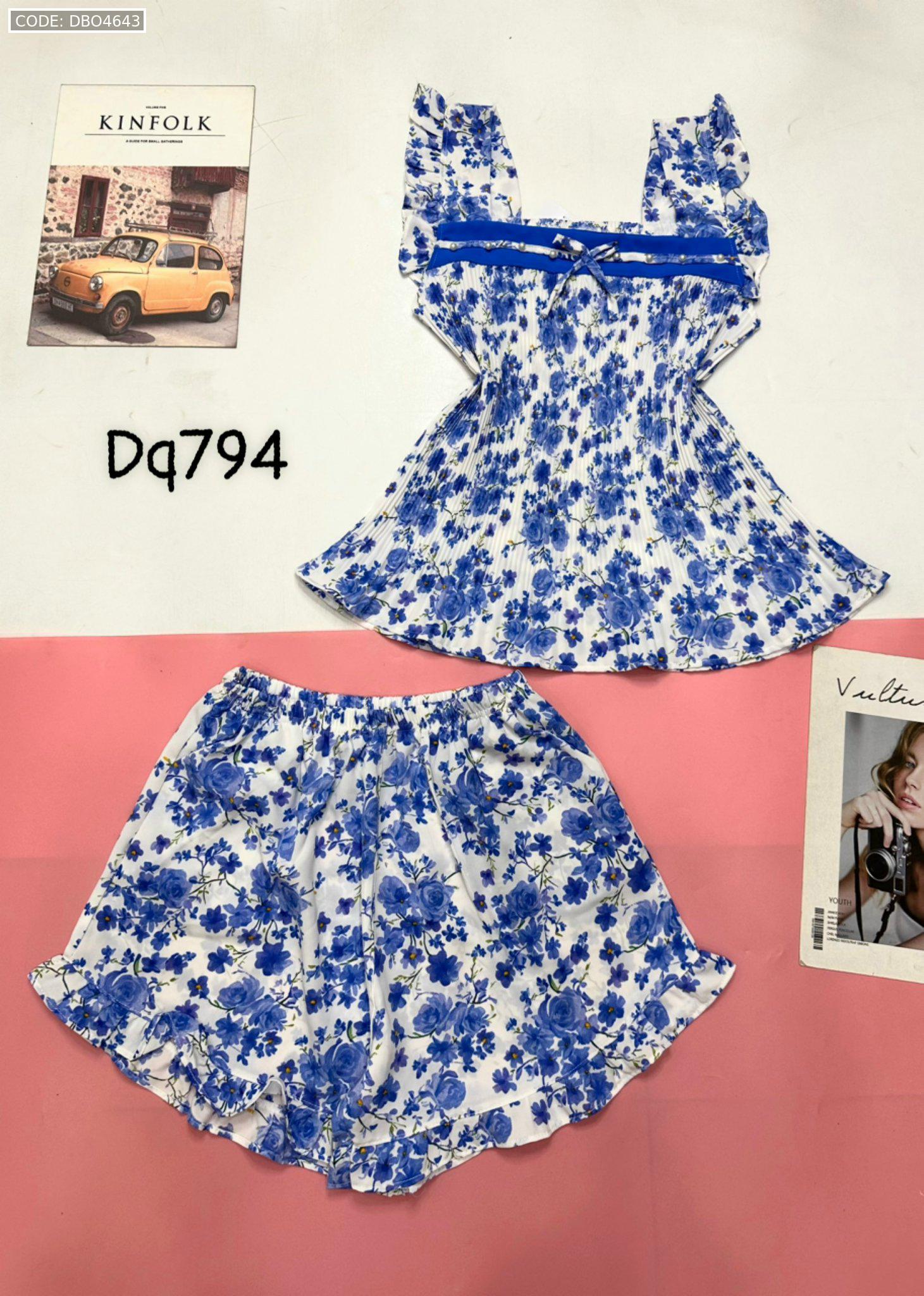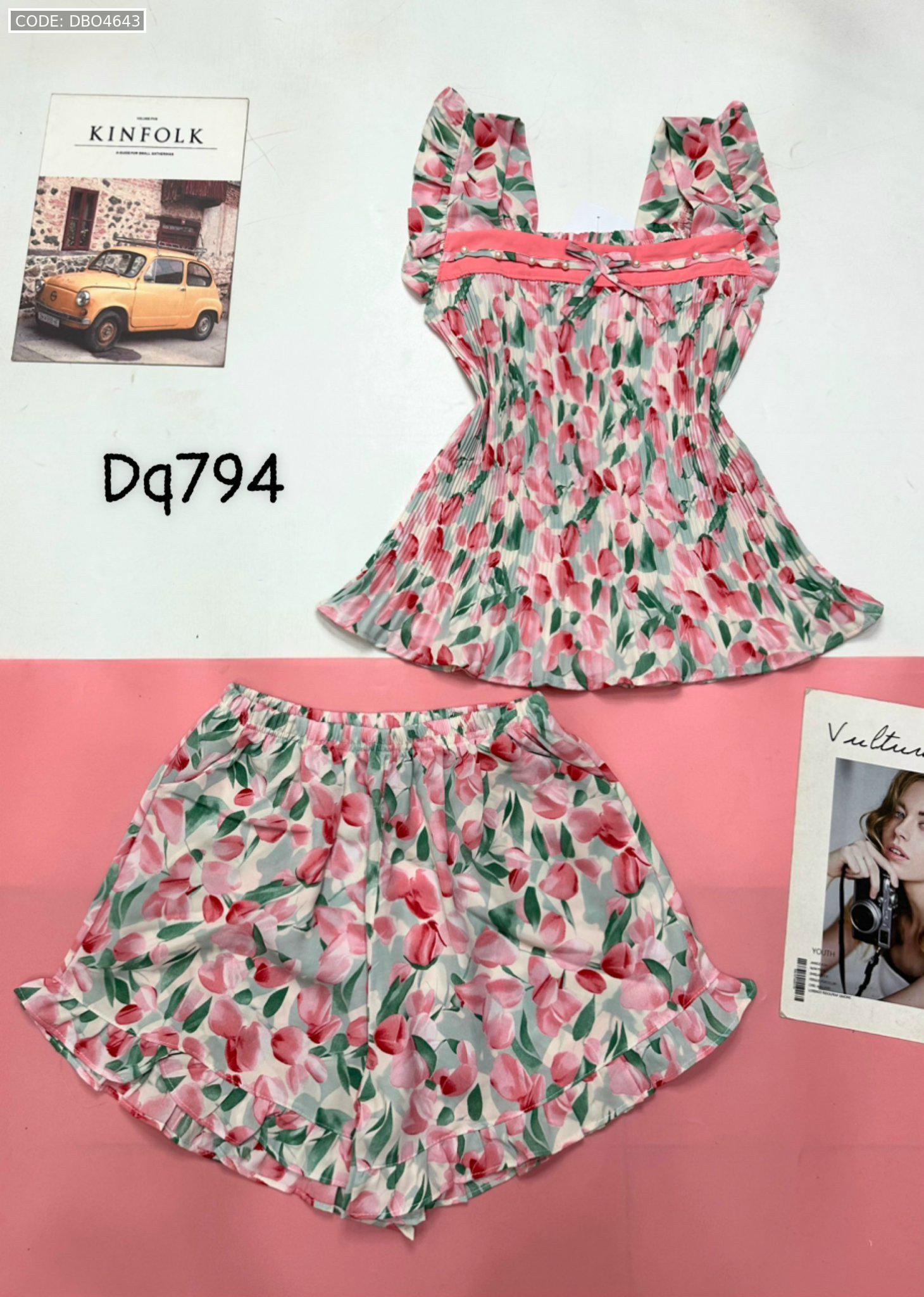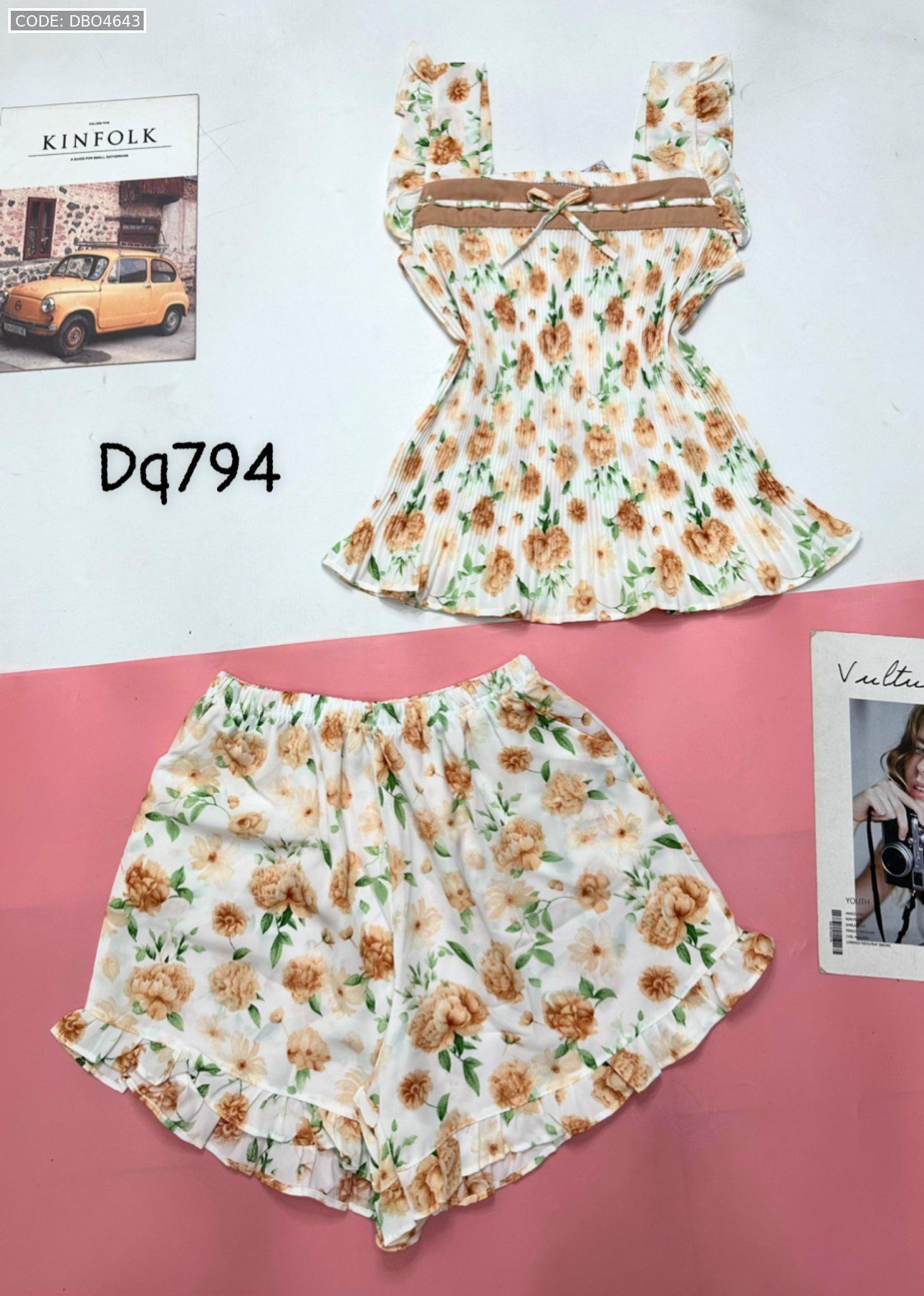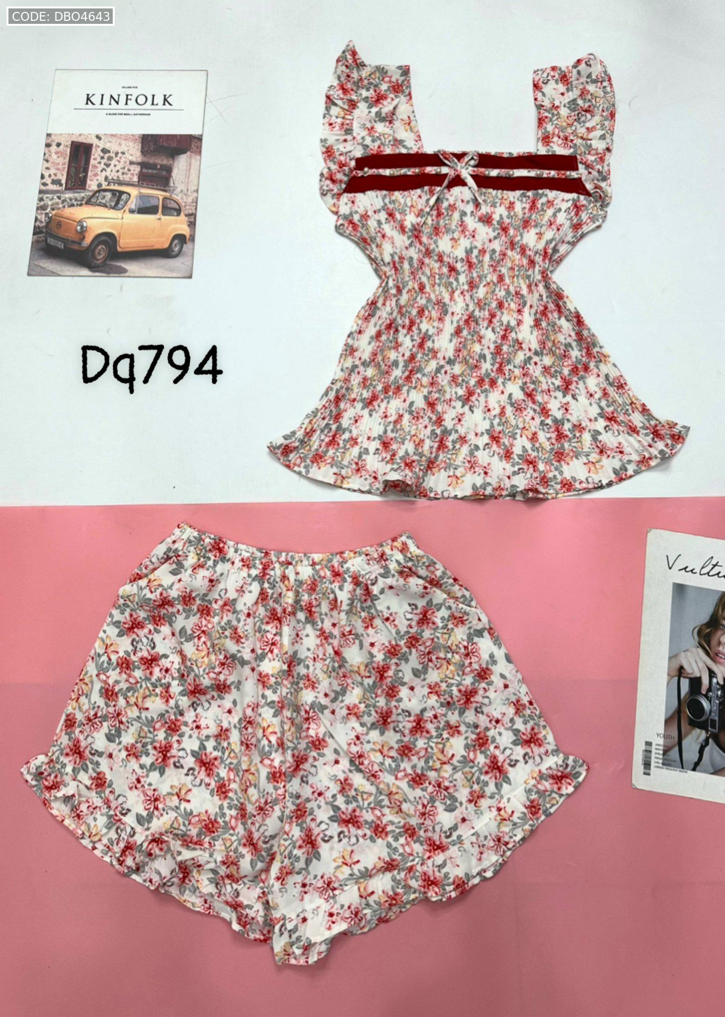 Đồ bộ mango siêu mát quần đùi áo tay bèo cổ vuông có nơ thắt