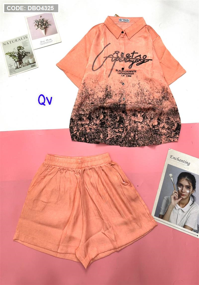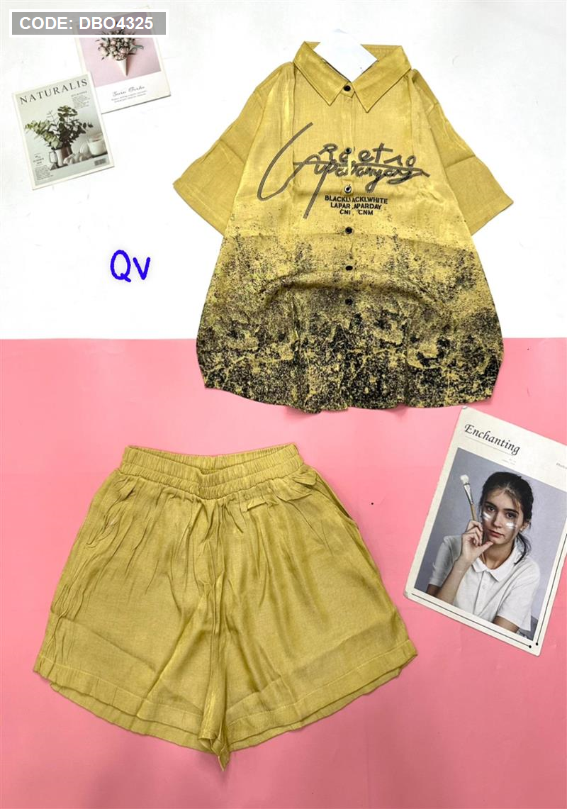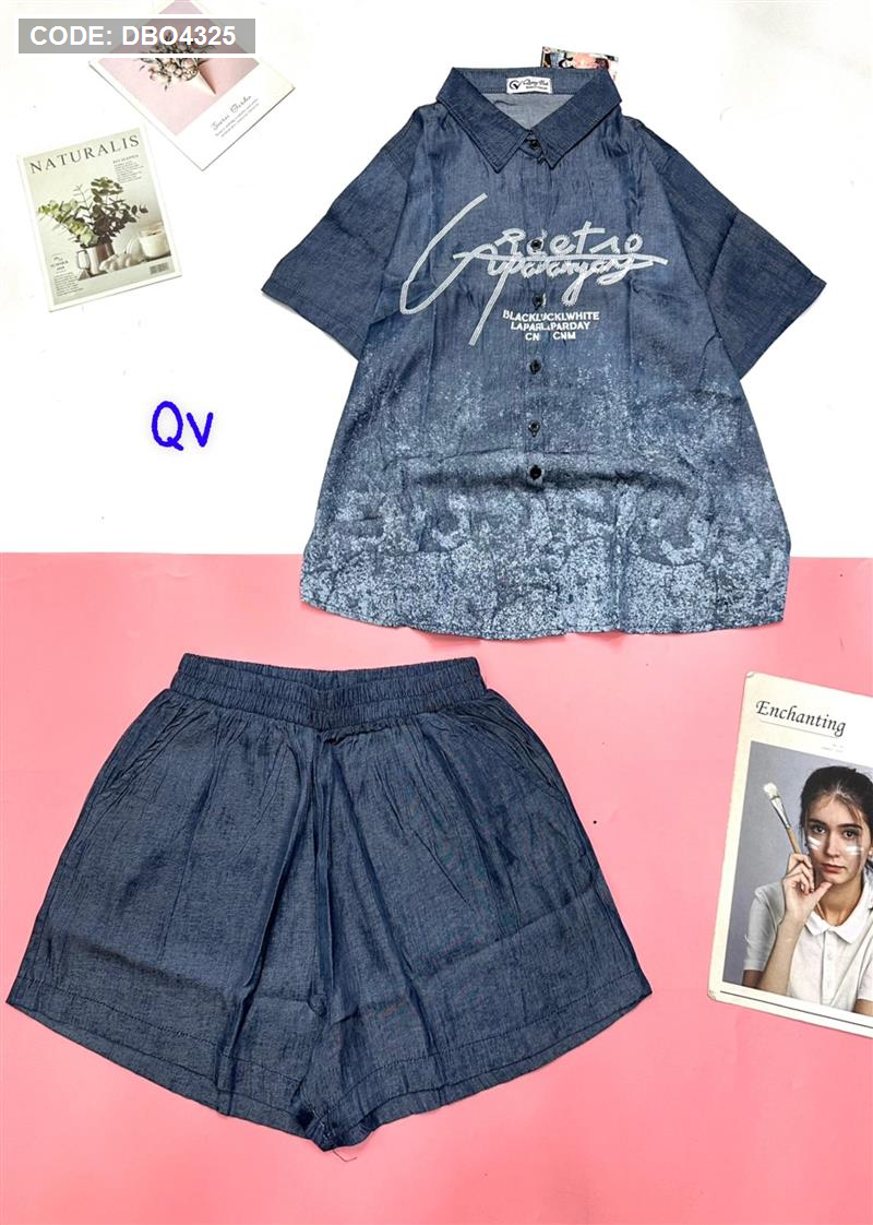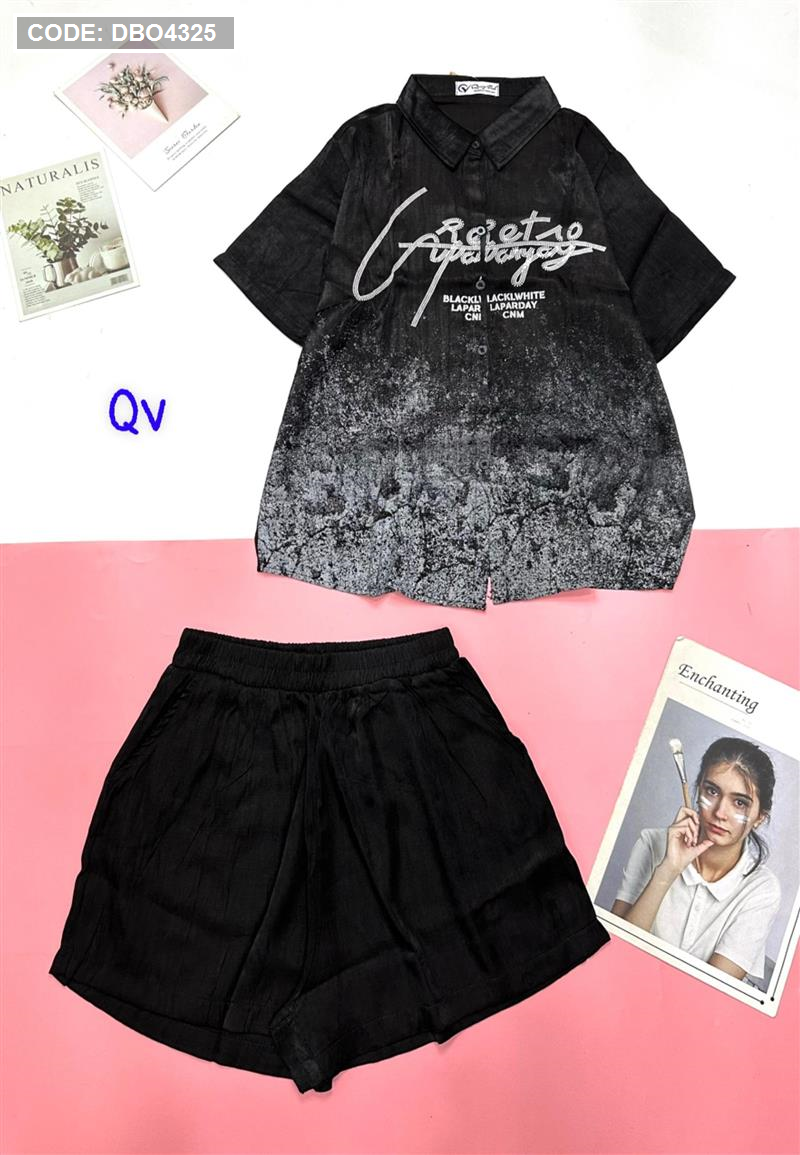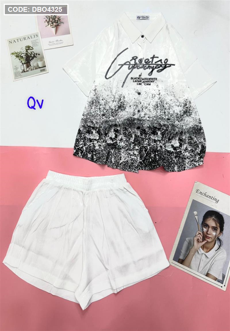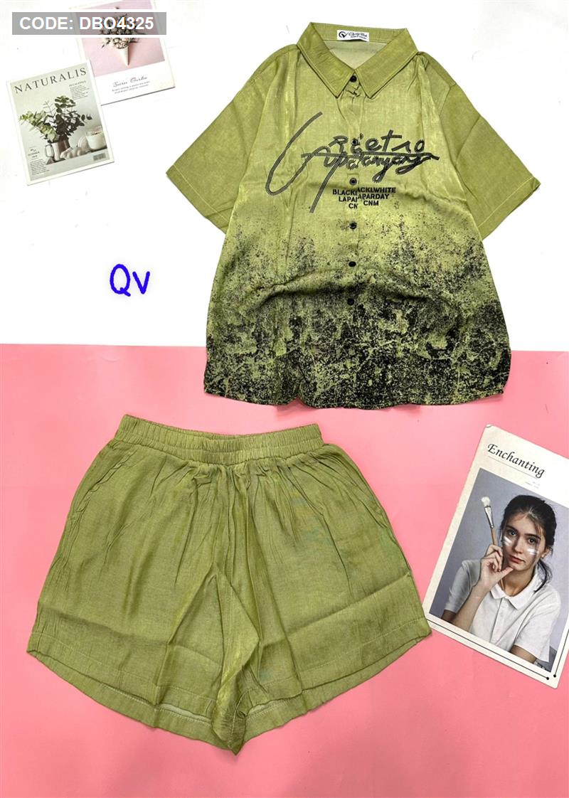 Đồ bộ màu quần đùi áo sơ mi tay ngắn cổ bẻ in chữ