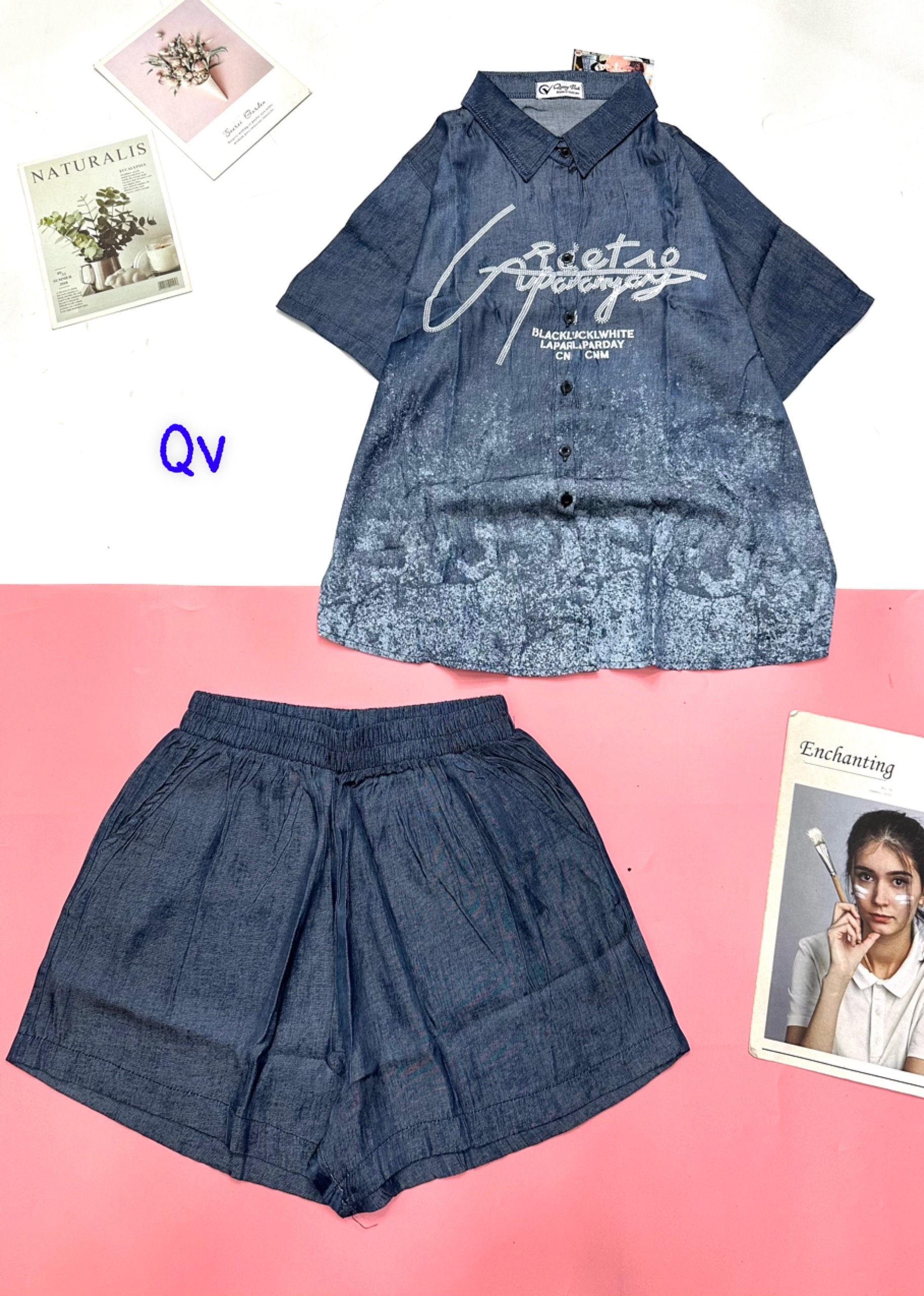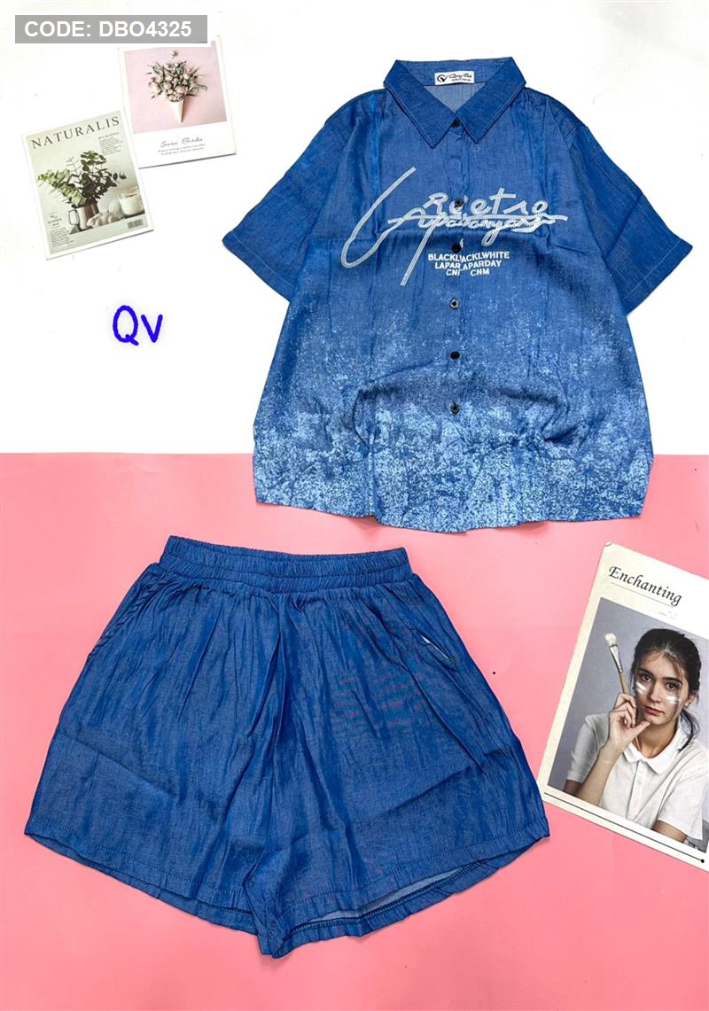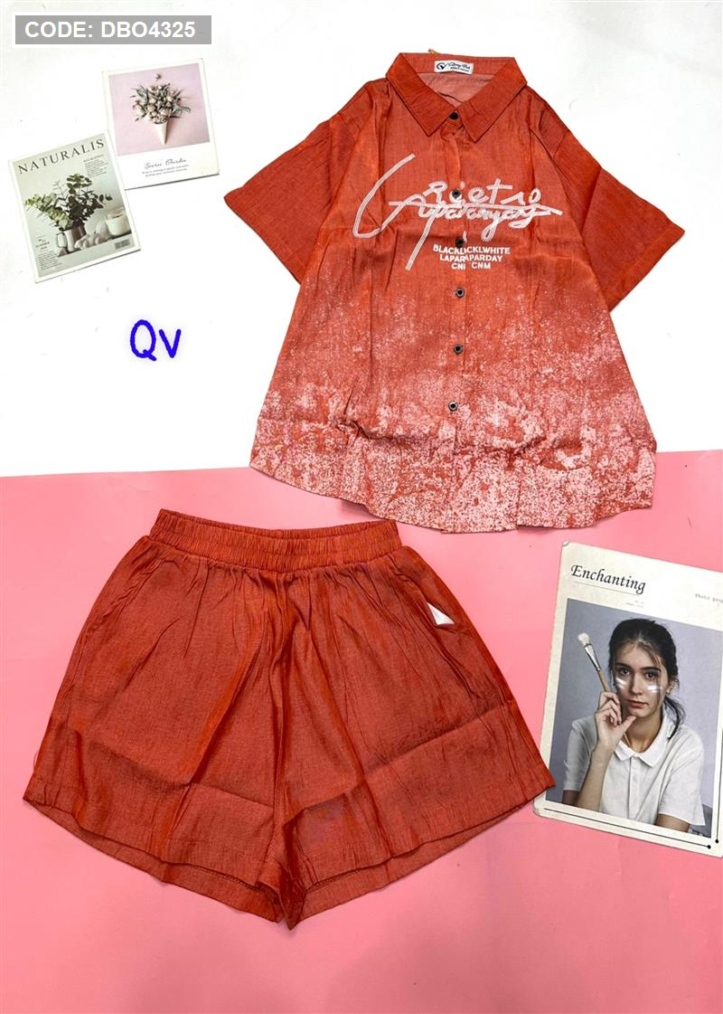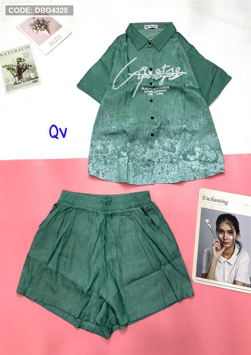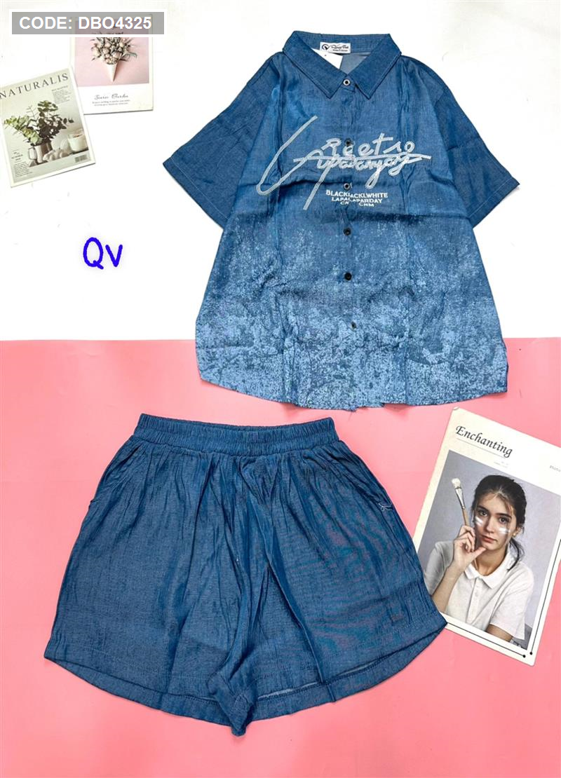 Đồ bộ màu quần đùi áo sơ mi tay ngắn cổ bẻ in chữ