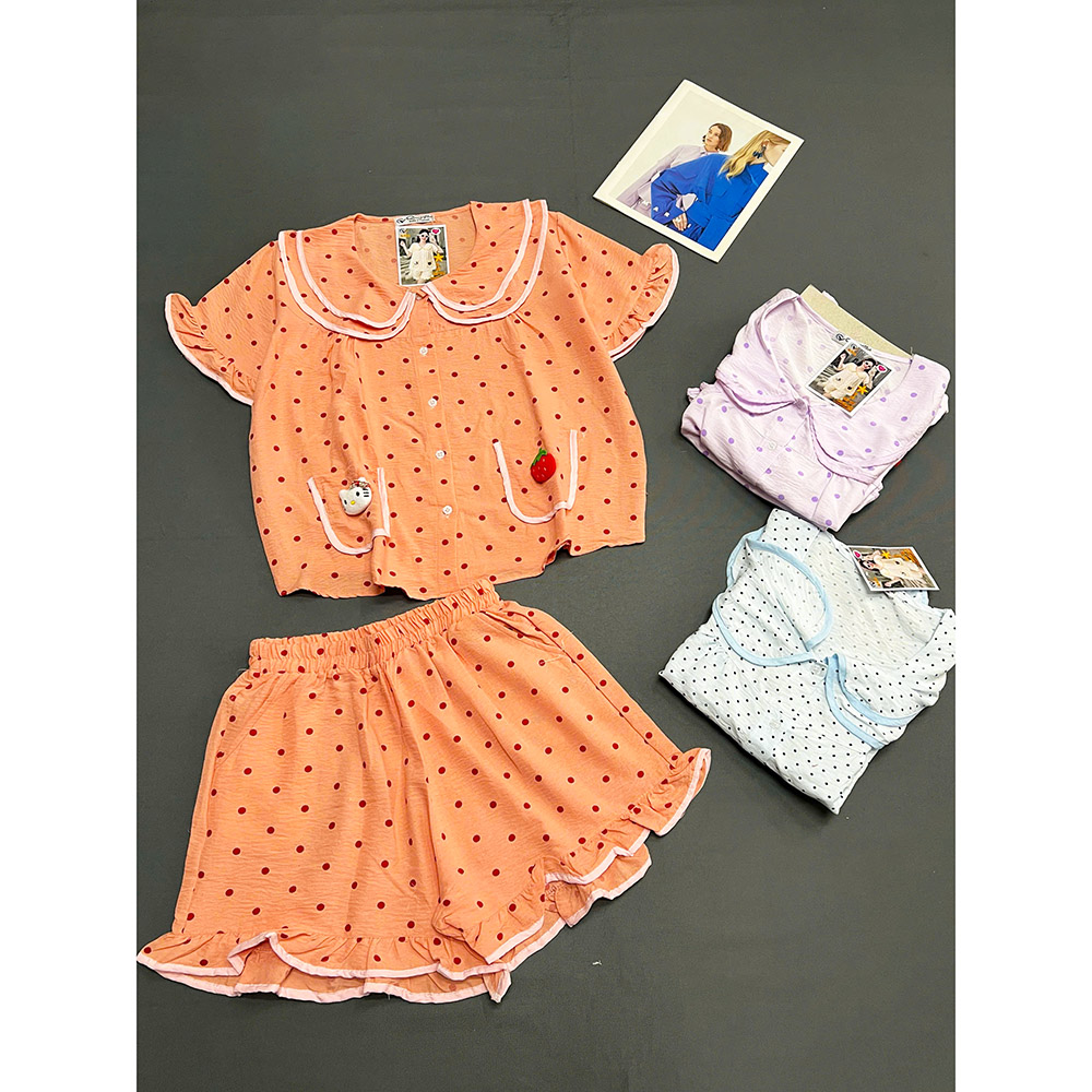 Đồ Bộ Nữ Áo Cổ Sen Tay Ngắn Quần Đùi Họa Tiết Chấm Bi Vải Cotton Hàn Mịn Mát Size 45-62kg