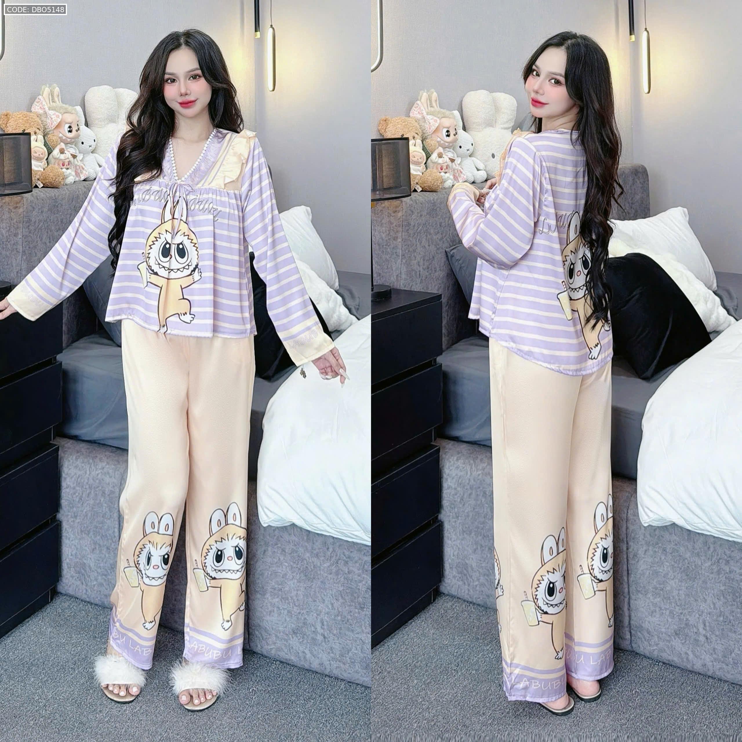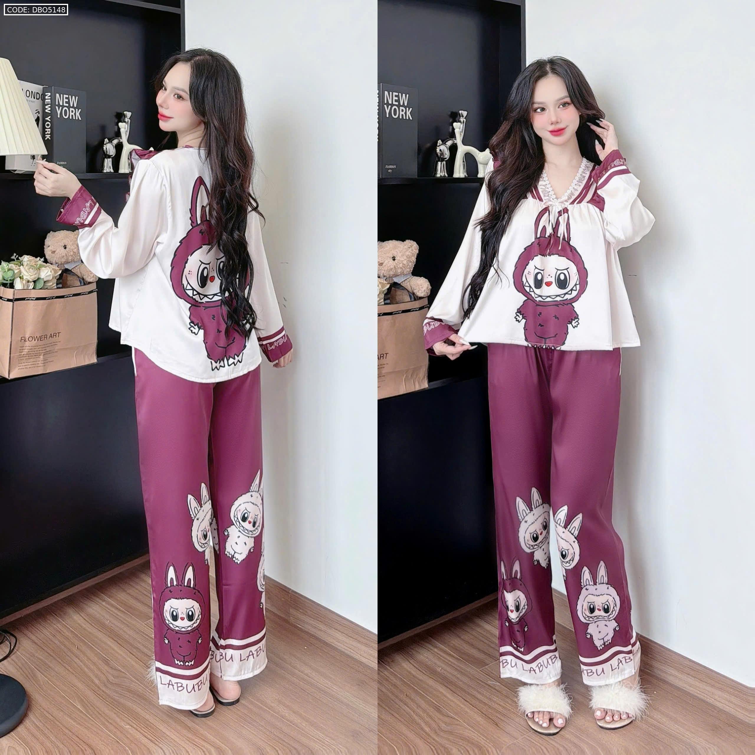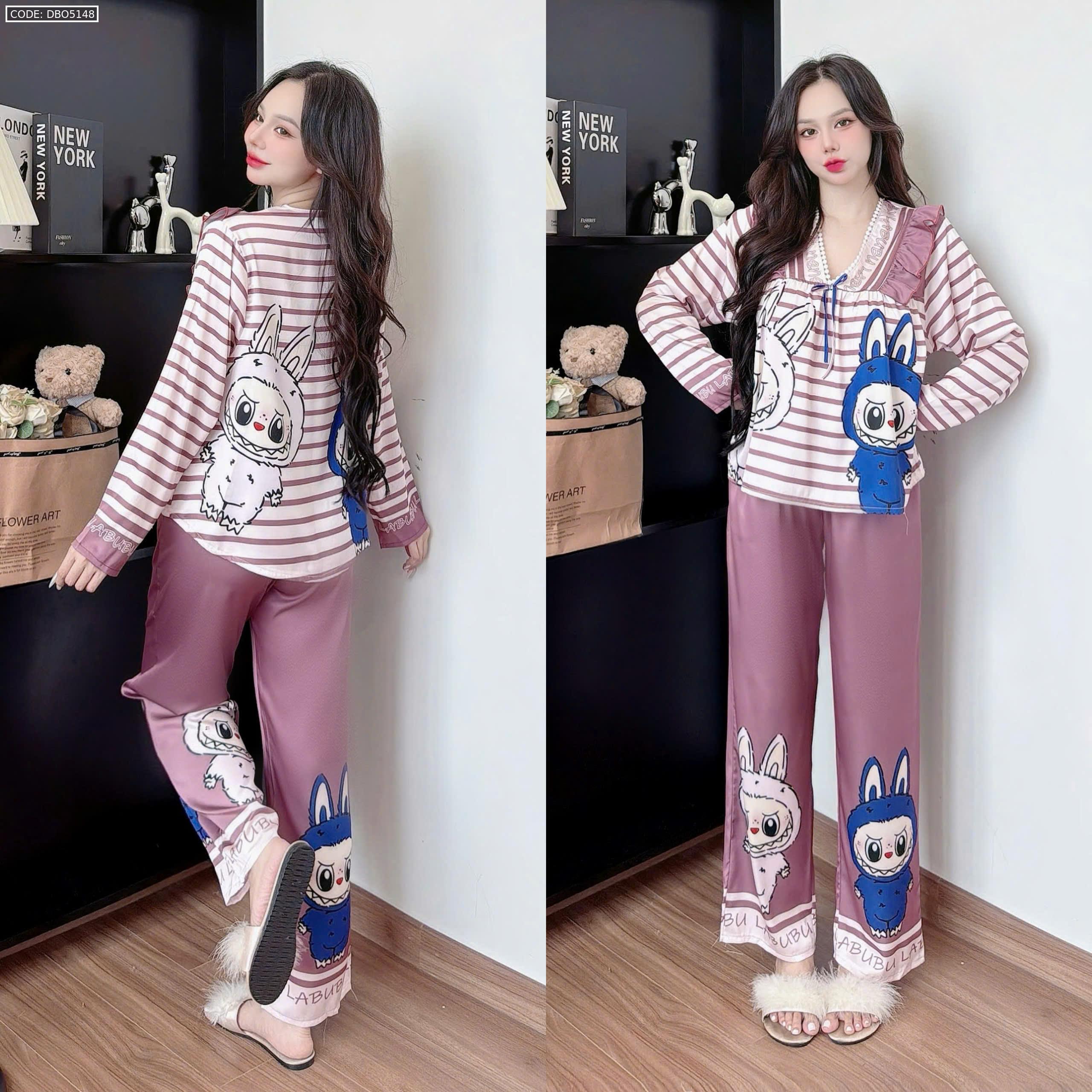 Đồ bộ pijama latin quần dài áo tay dài in hình labubu
