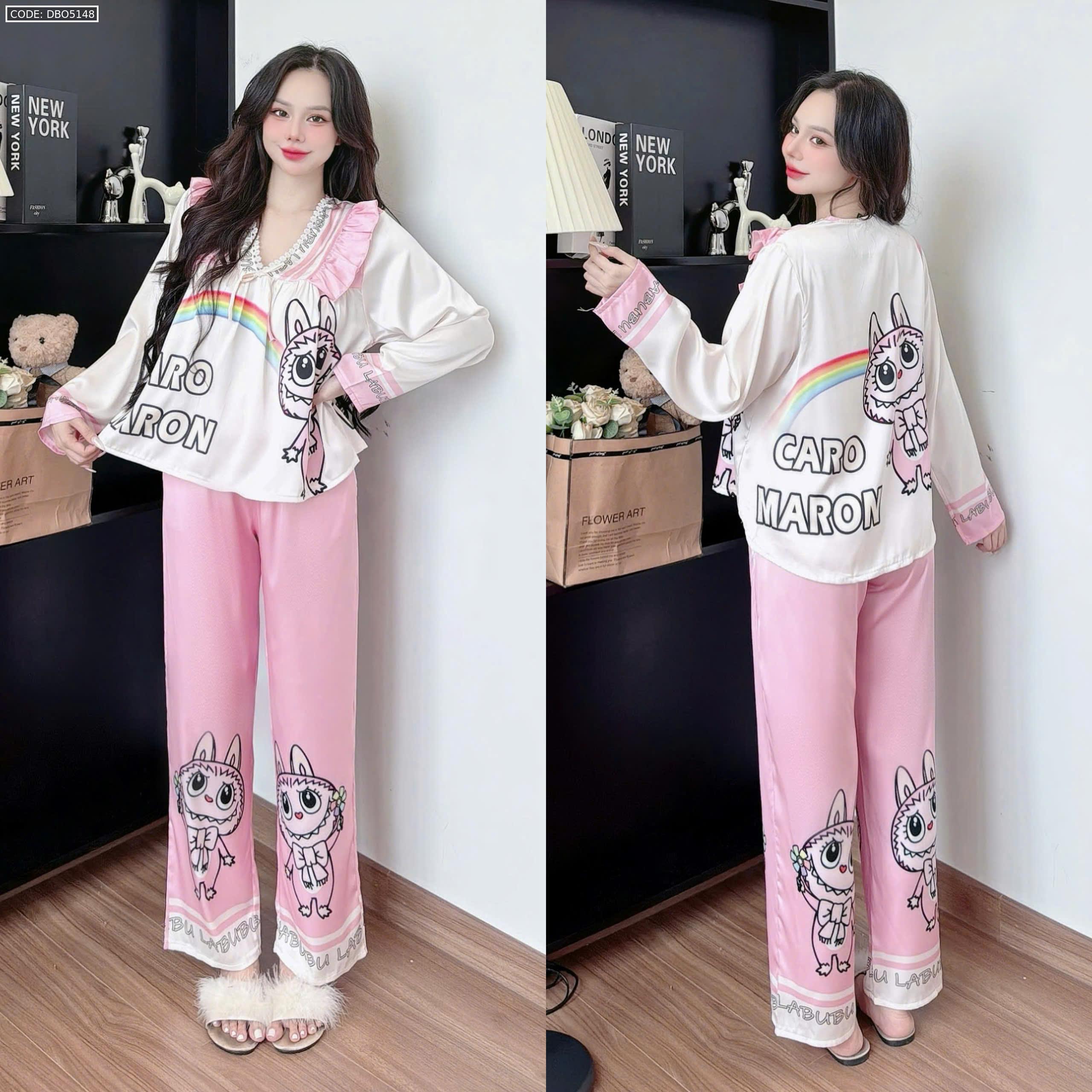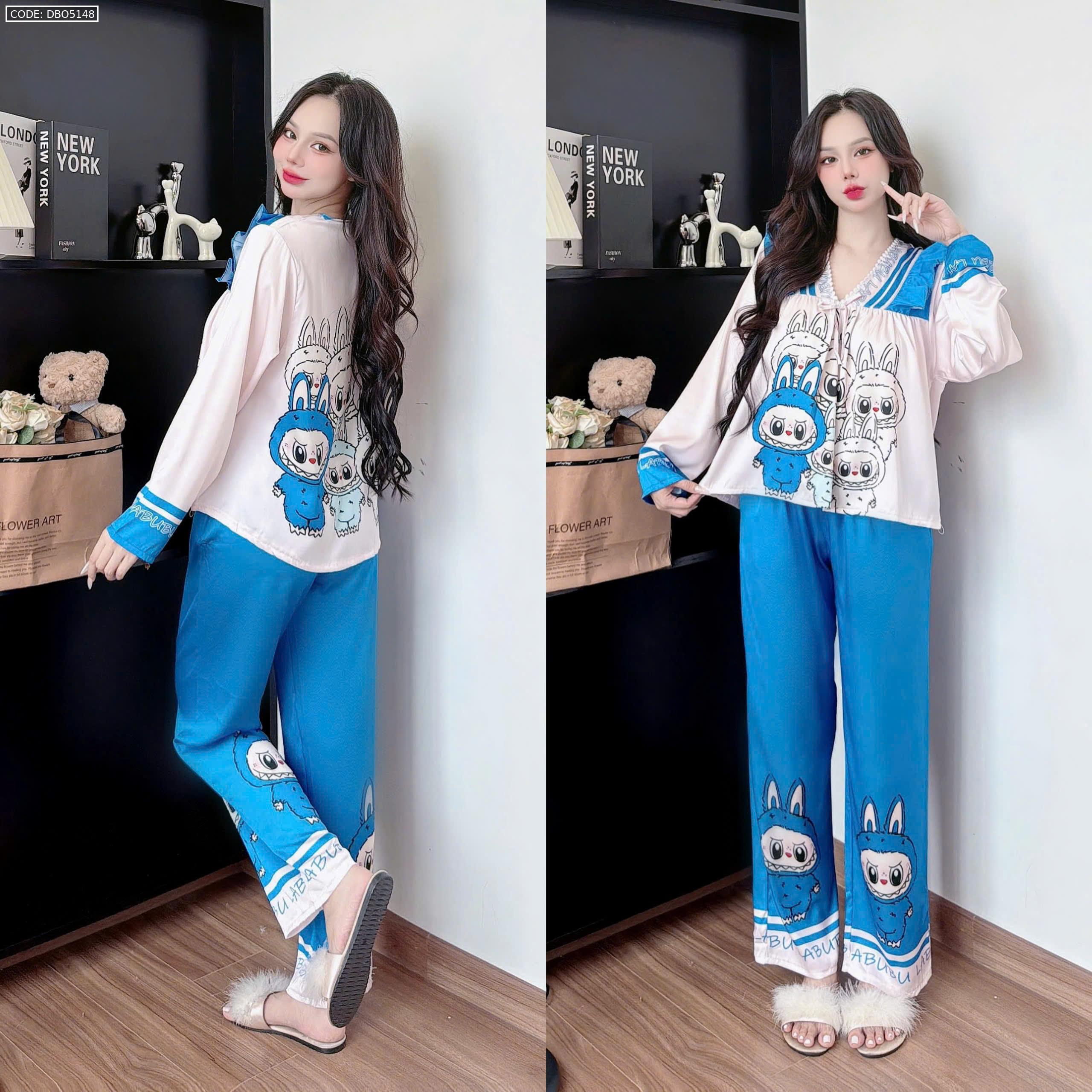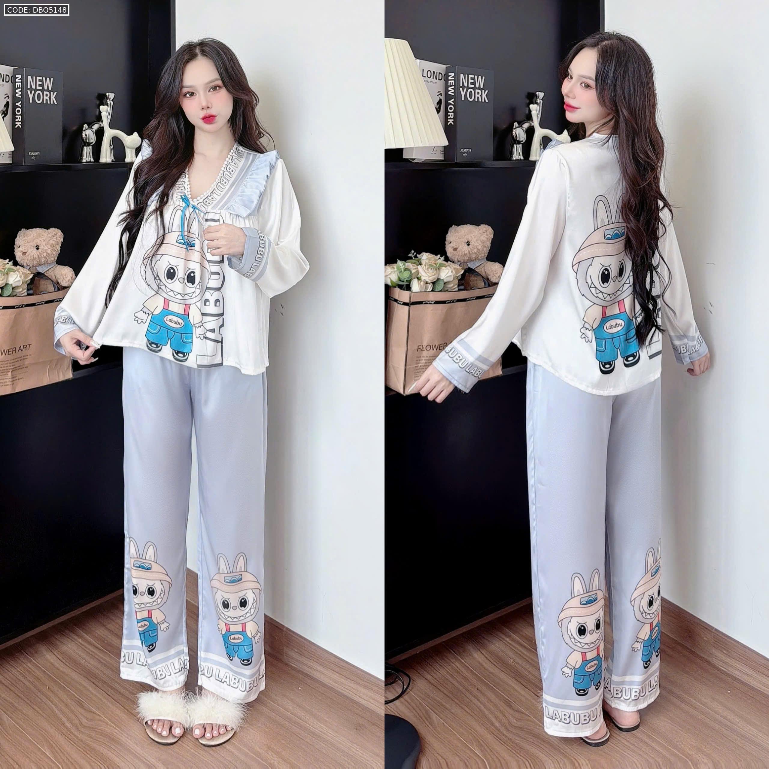 Đồ bộ pijama latin quần dài áo tay dài in hình labubu