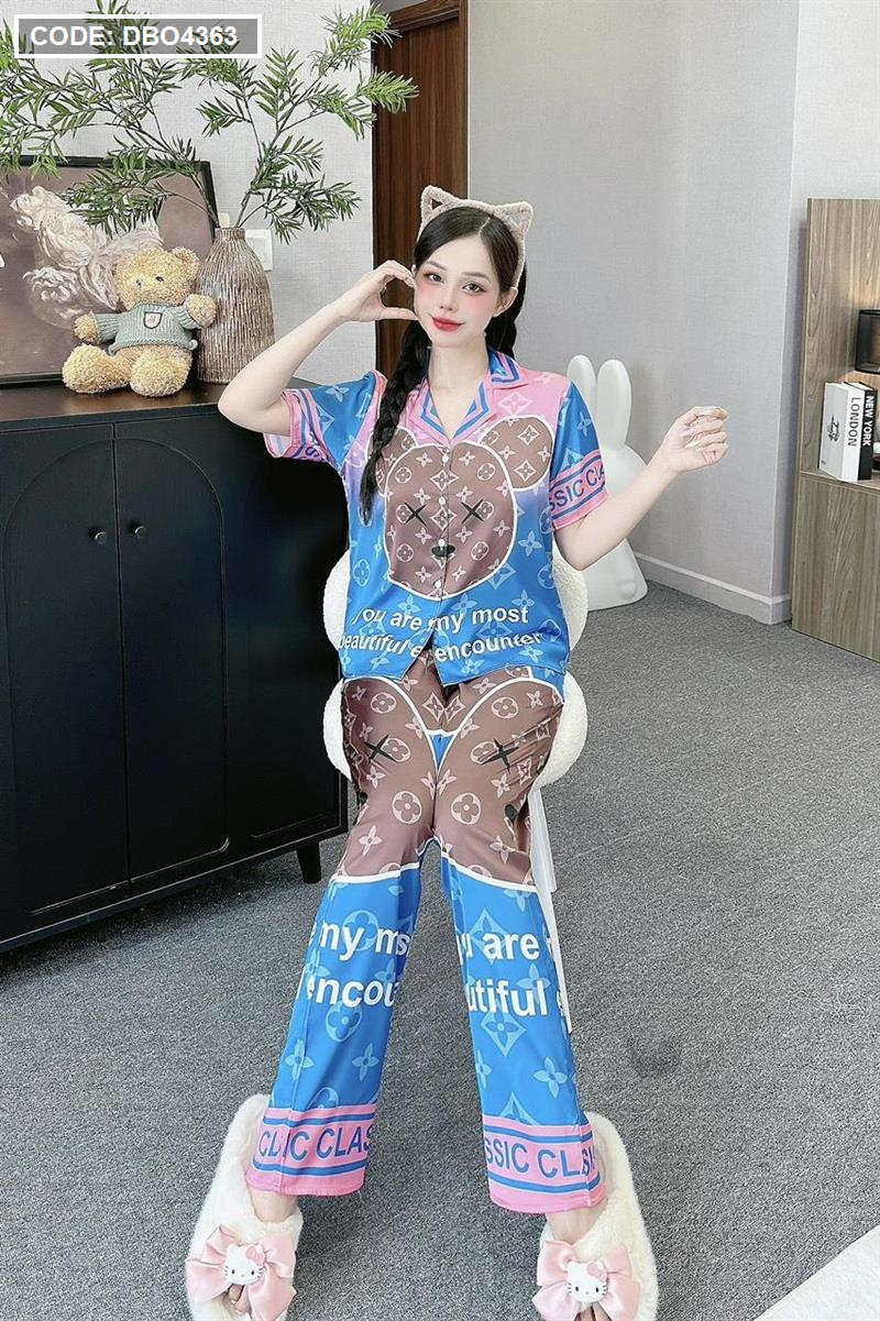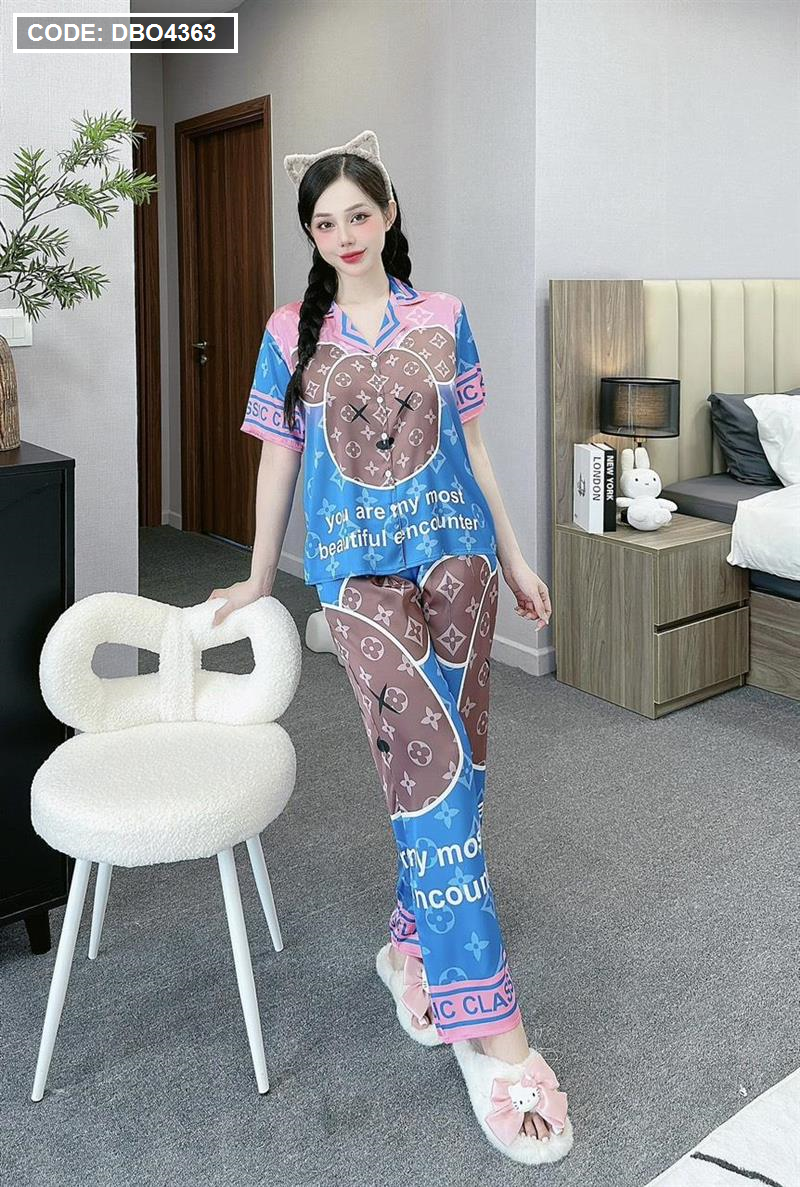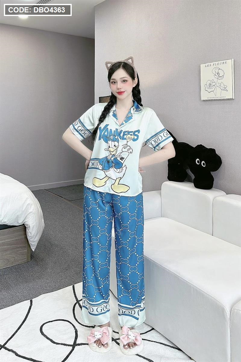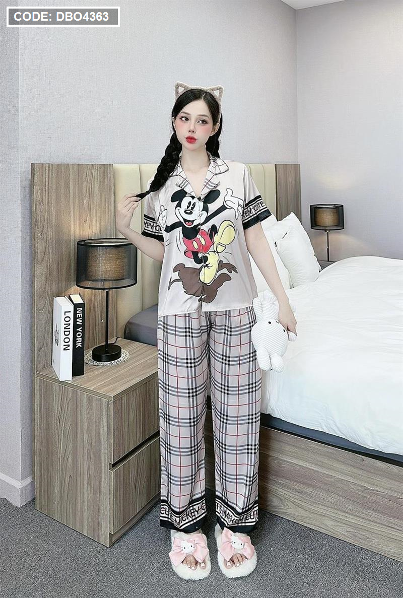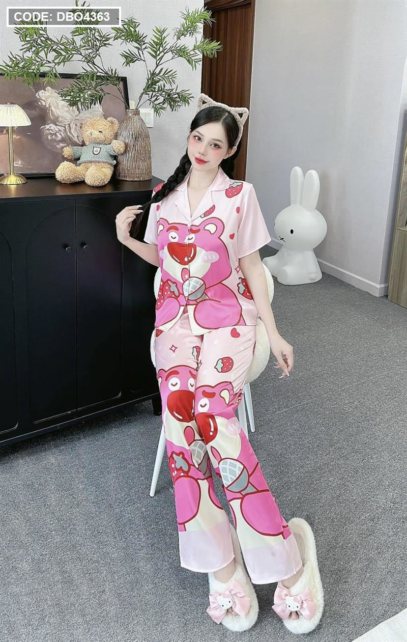 Đồ bộ pijama latin quần dài áo tay ngắn cổ bẻ in hình dể thương