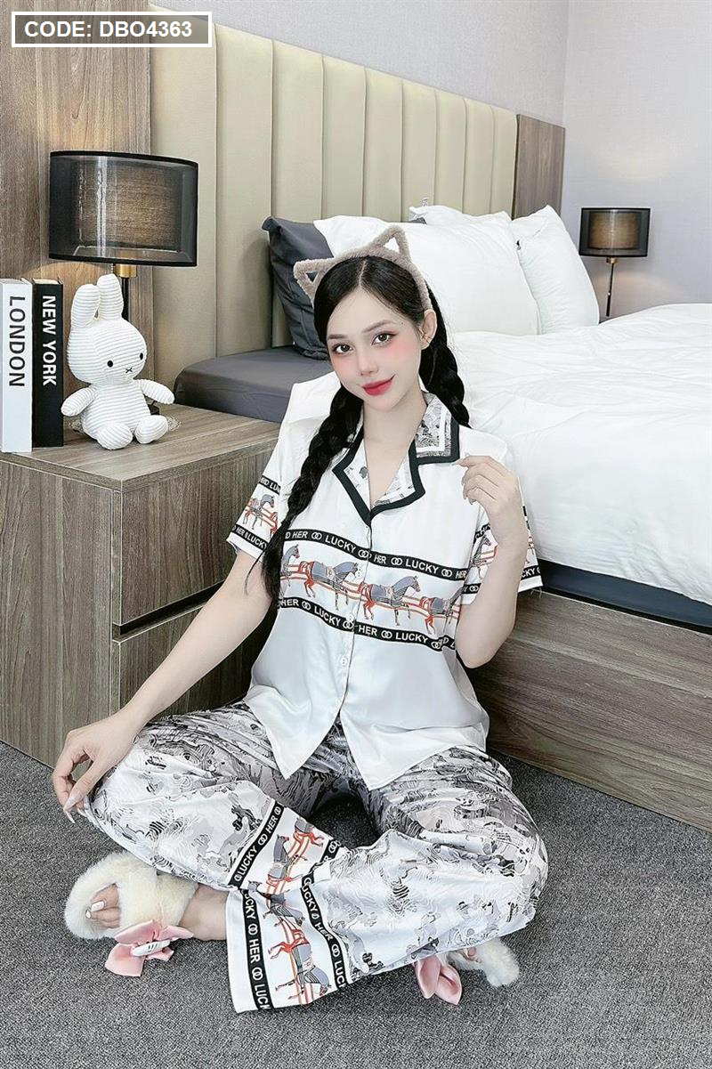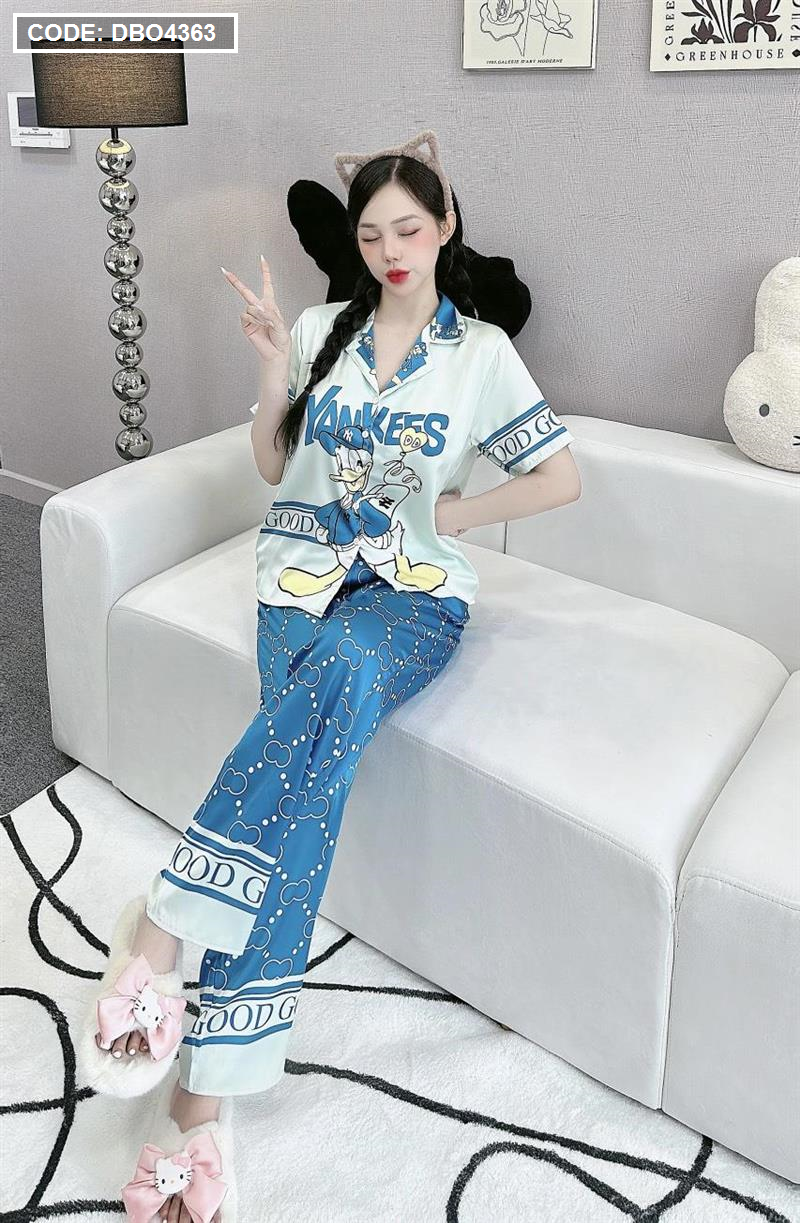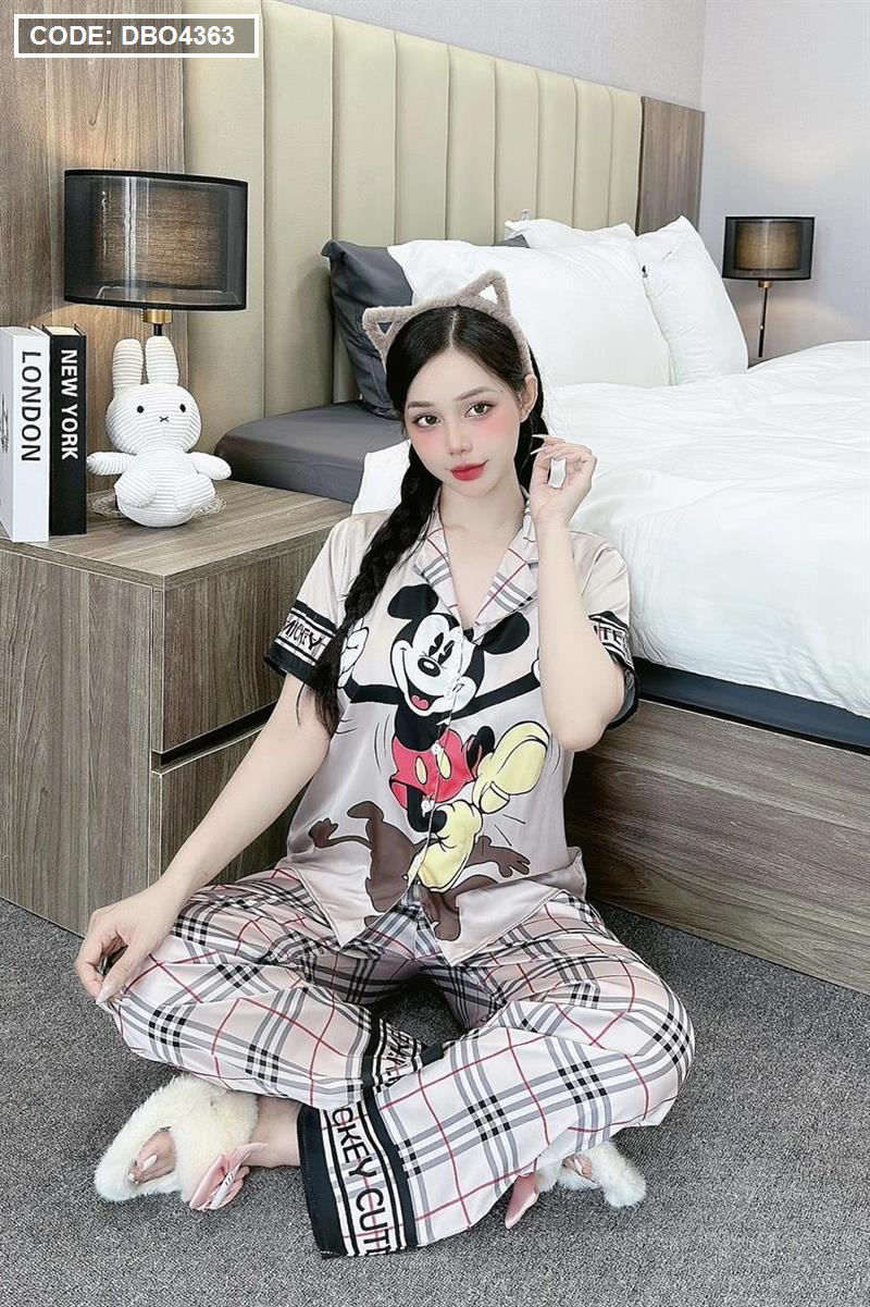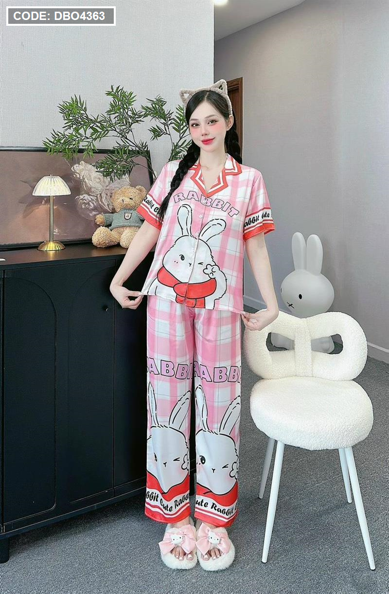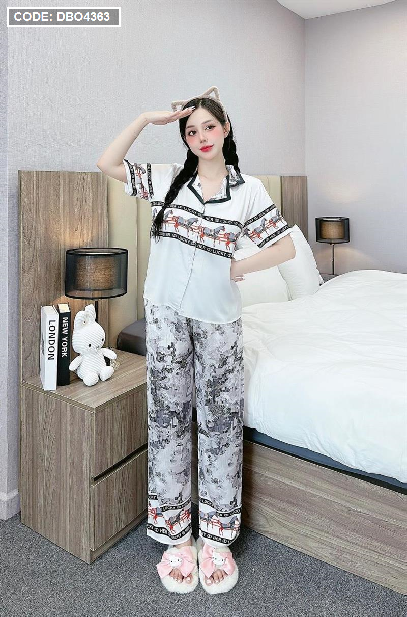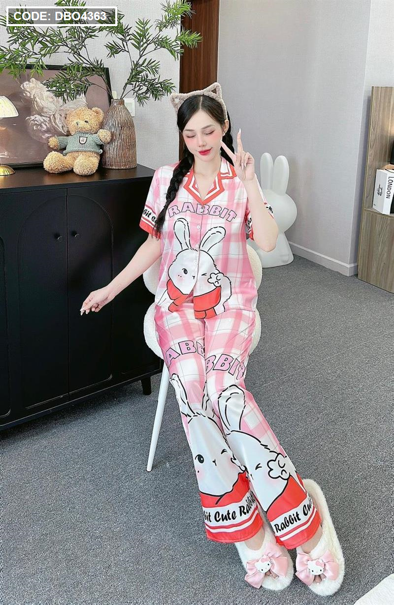 Đồ bộ pijama latin quần dài áo tay ngắn cổ bẻ in hình dể thương