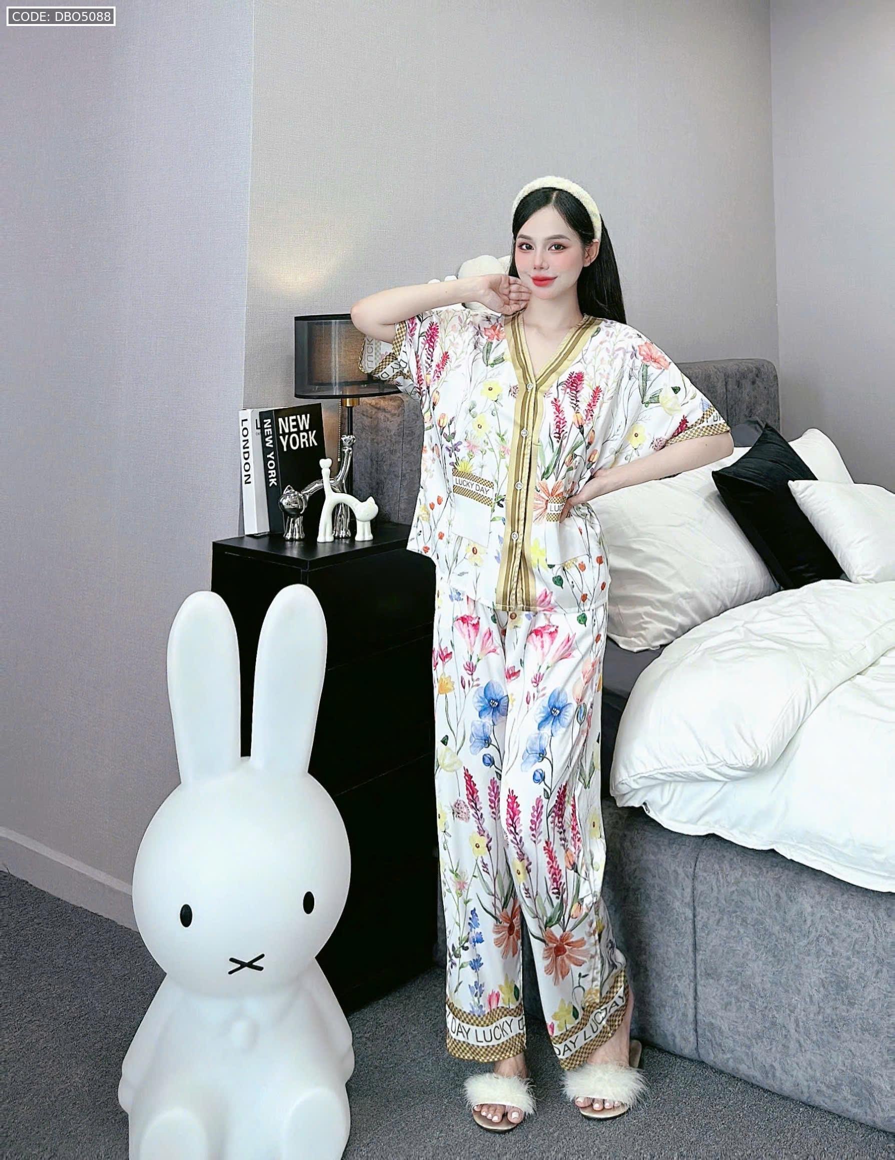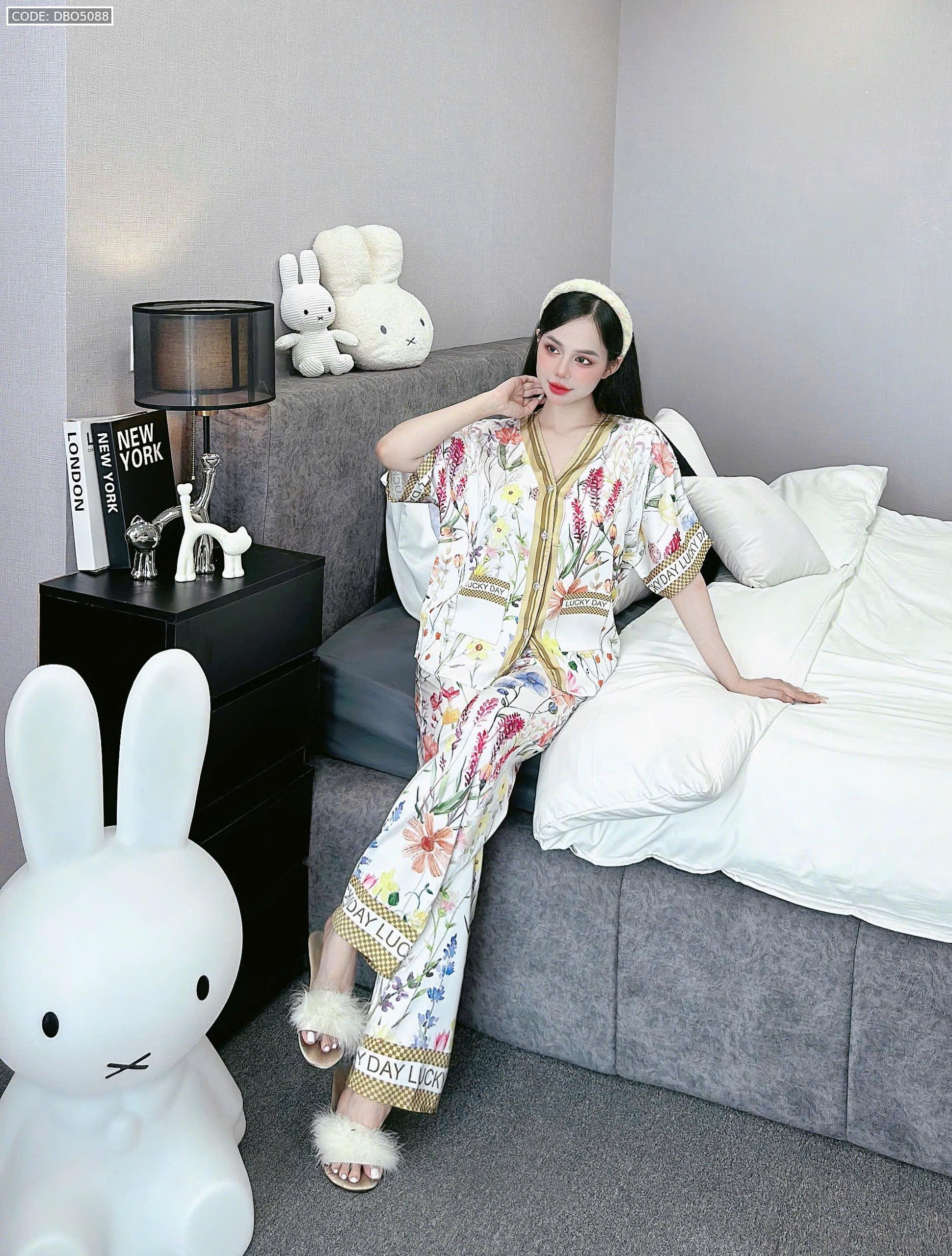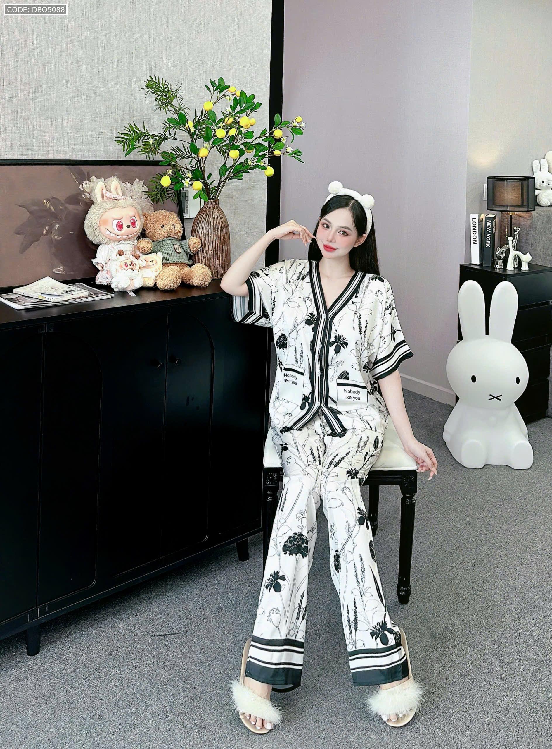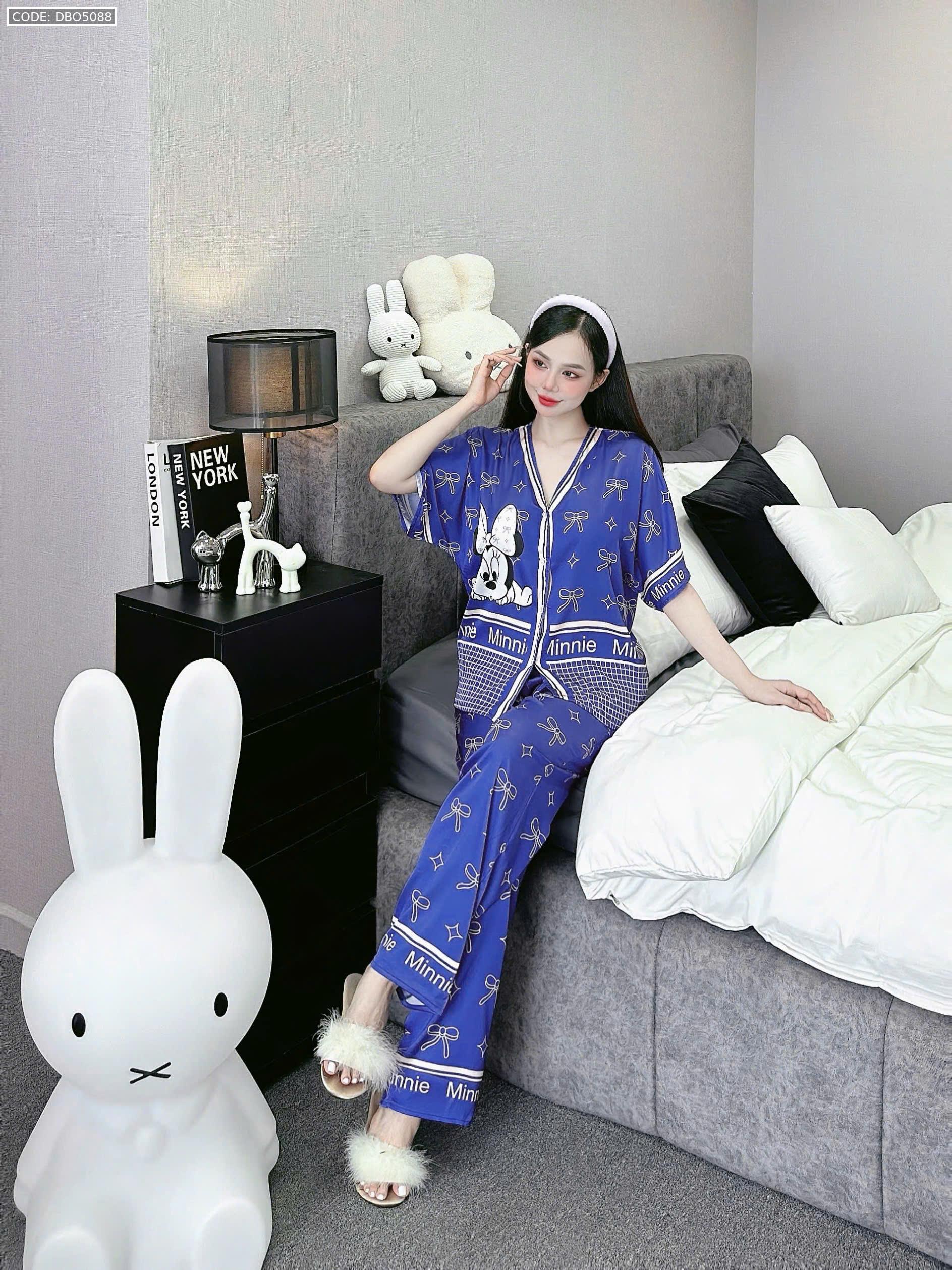 đồ bộ pijama quần dài áo tay ngắn cổ V nhiều hình khác nhau