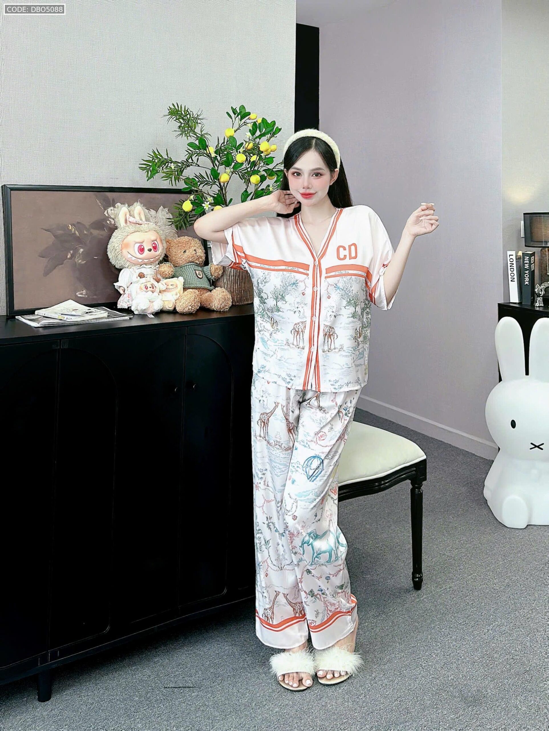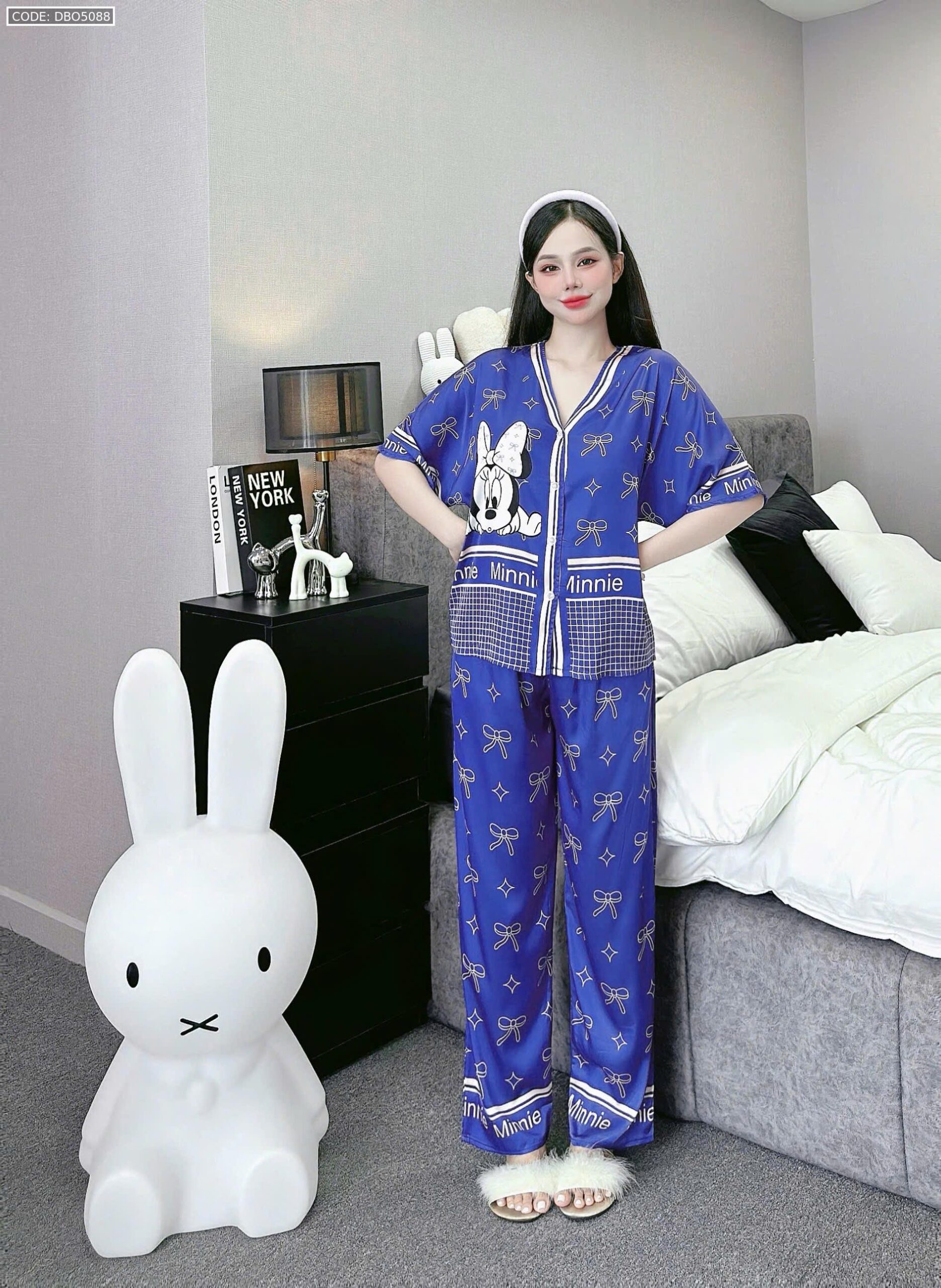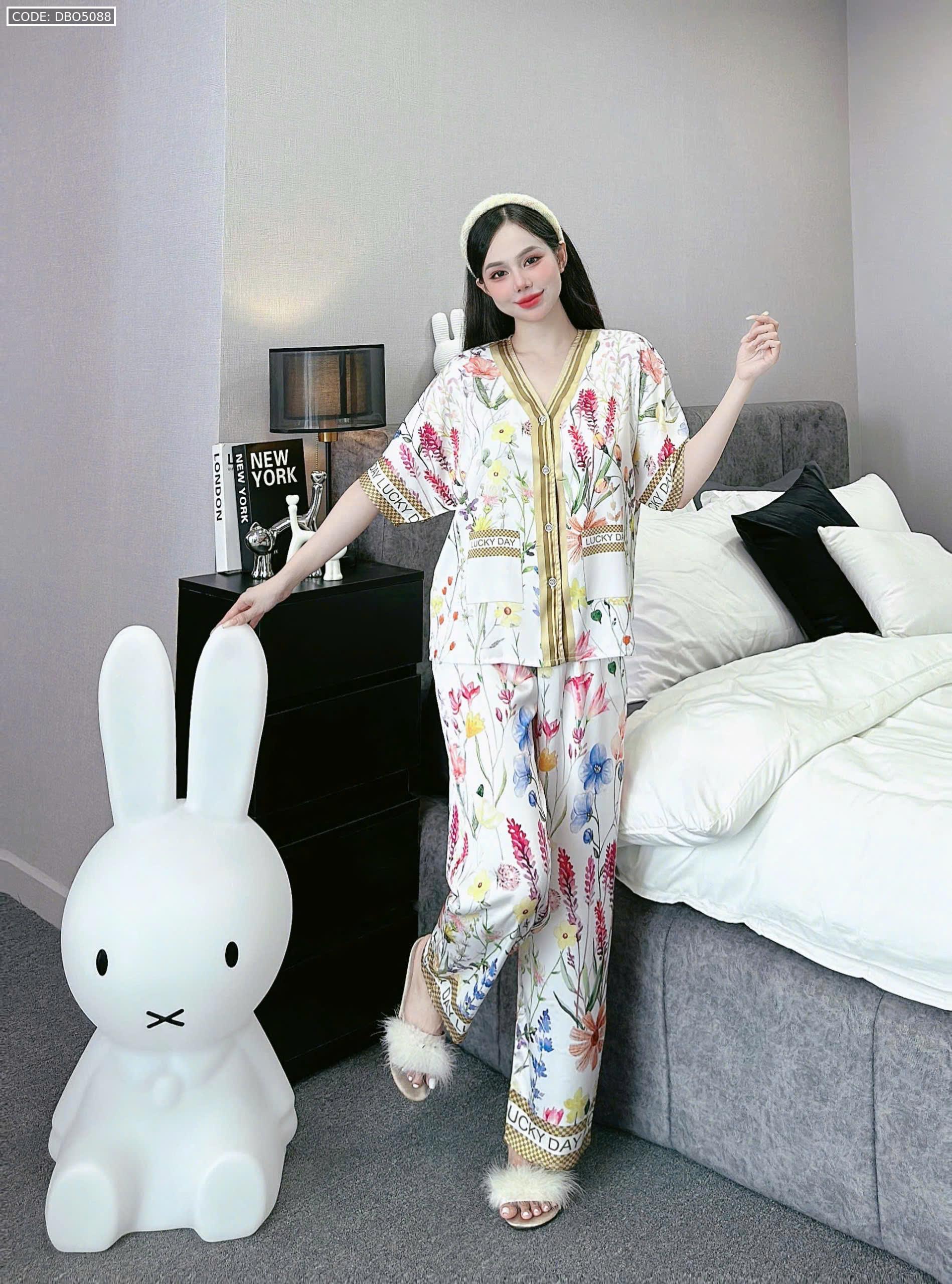 đồ bộ pijama quần dài áo tay ngắn cổ V nhiều hình khác nhau