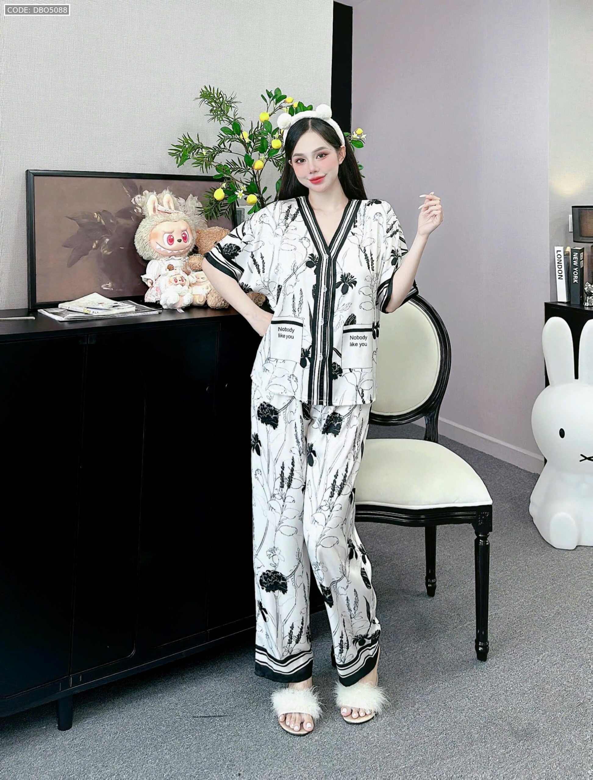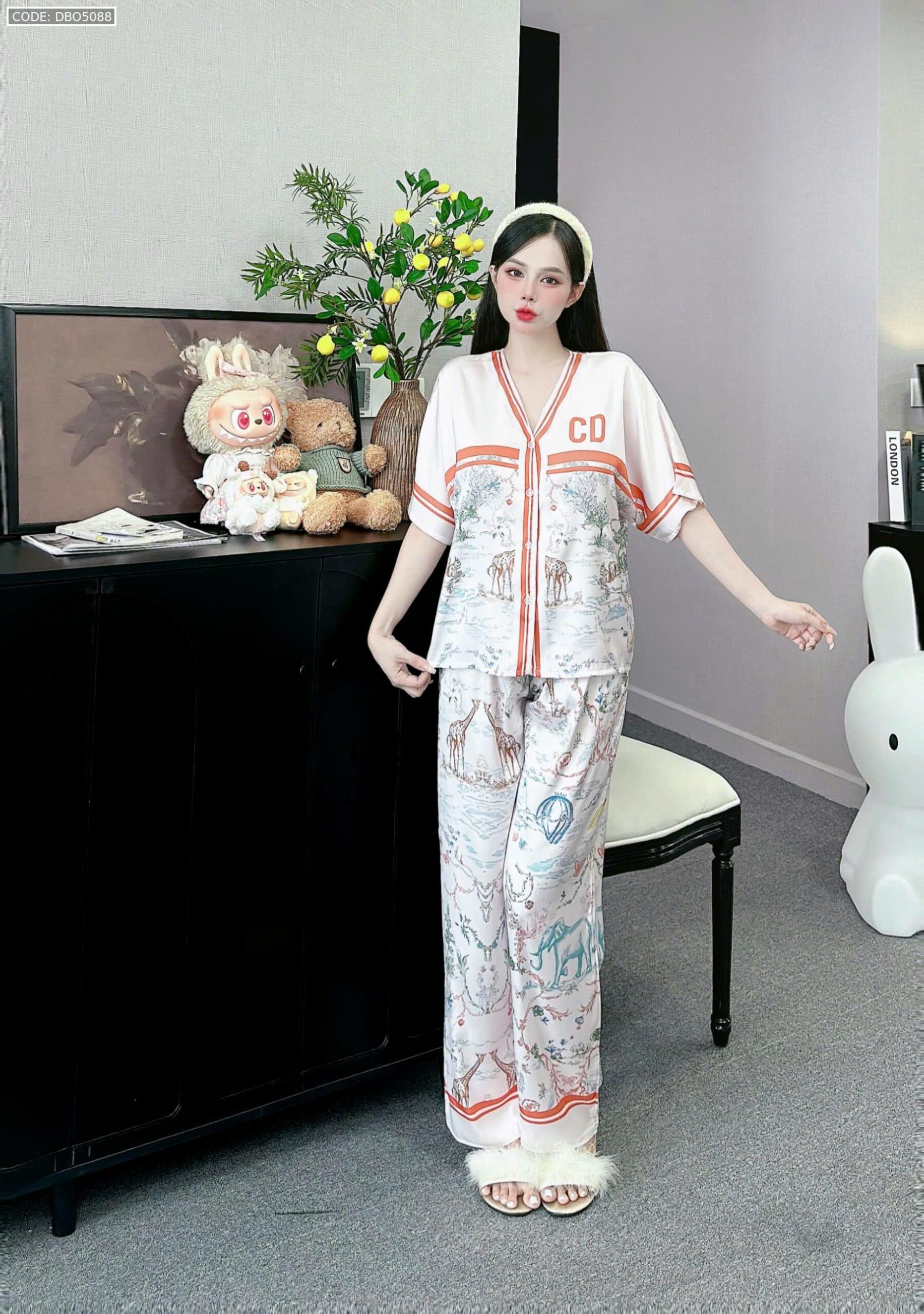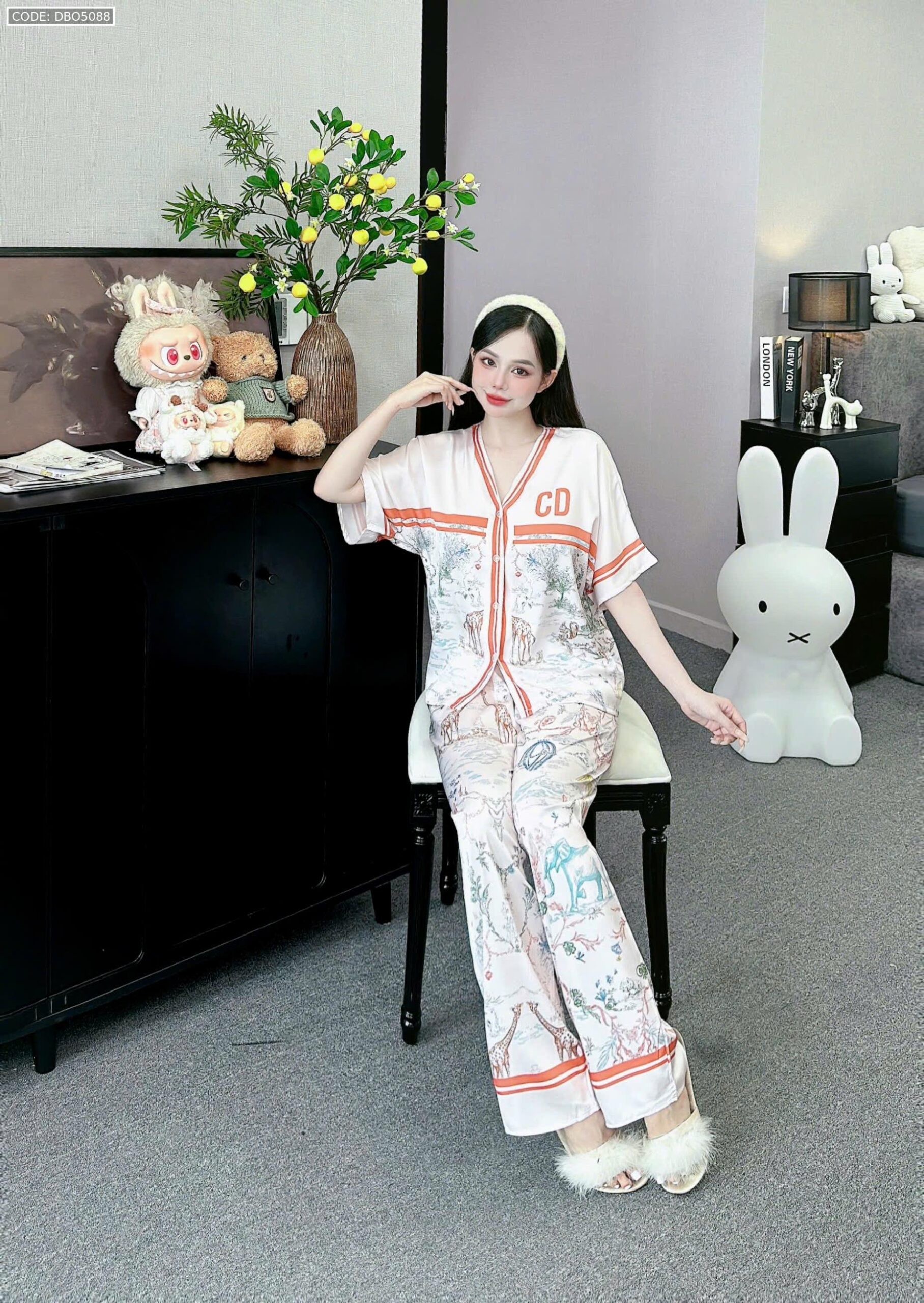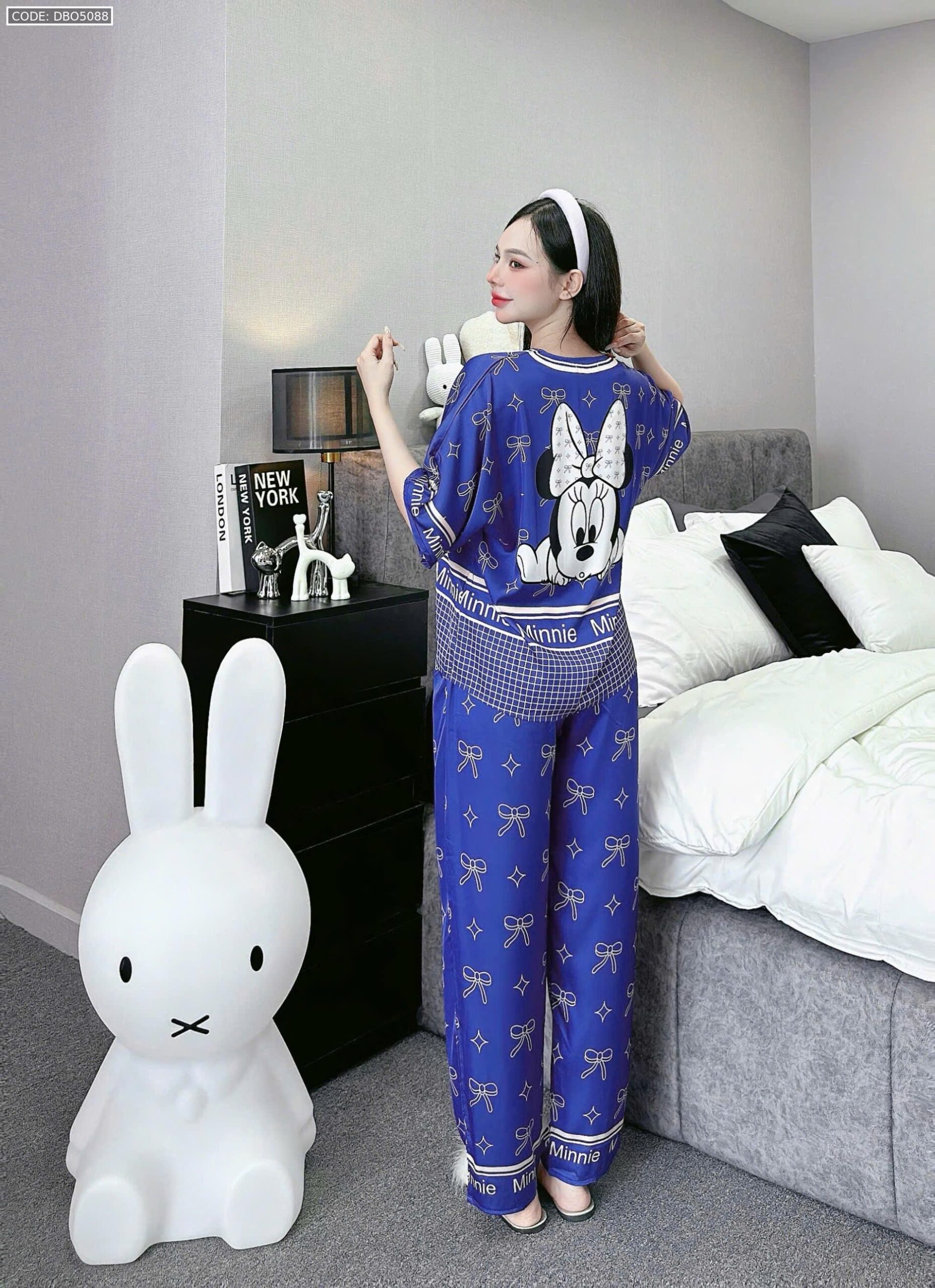 đồ bộ pijama quần dài áo tay ngắn cổ V nhiều hình khác nhau