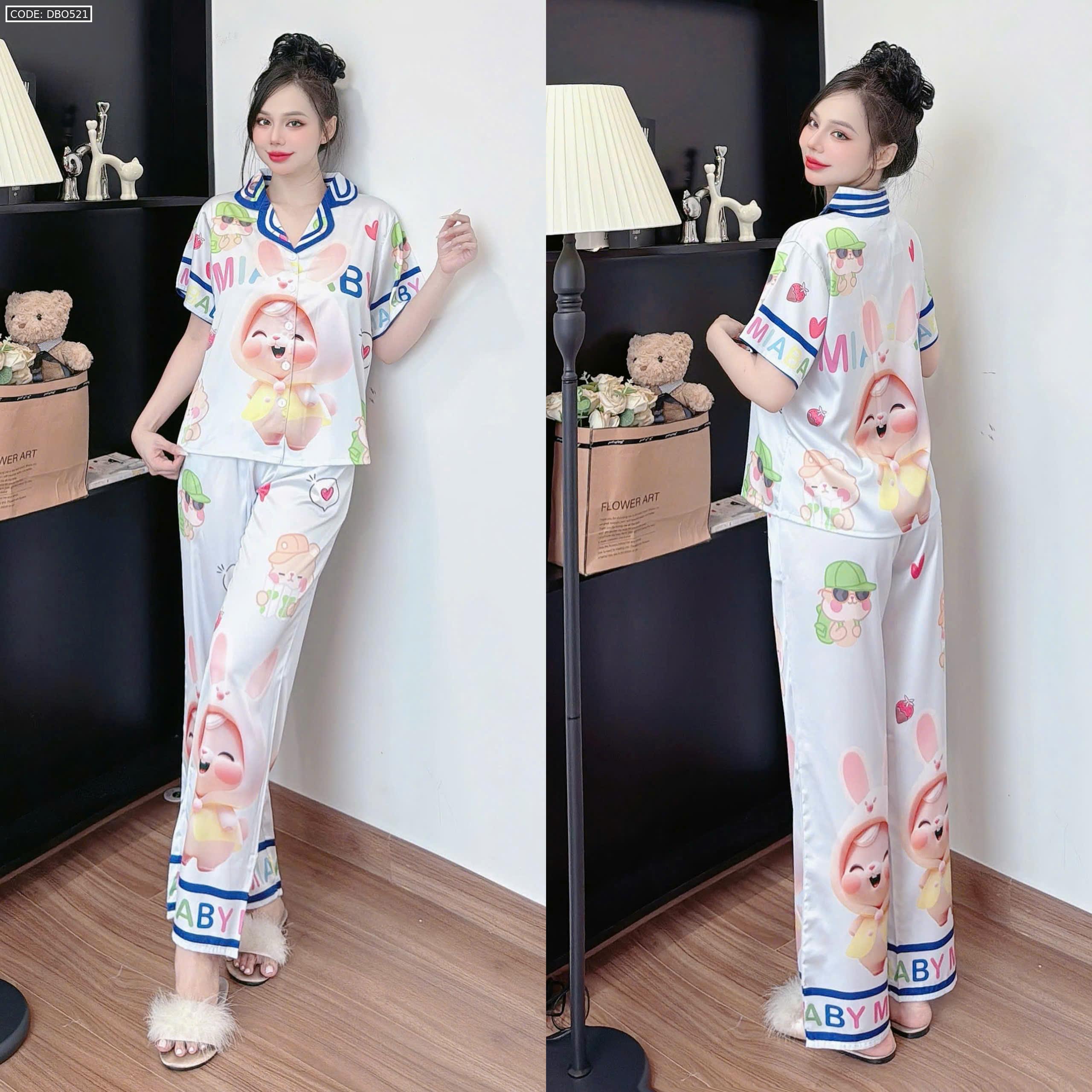 Đồ bộ pijama quần dài áo tay ngắn in nhiều hình dễ thương