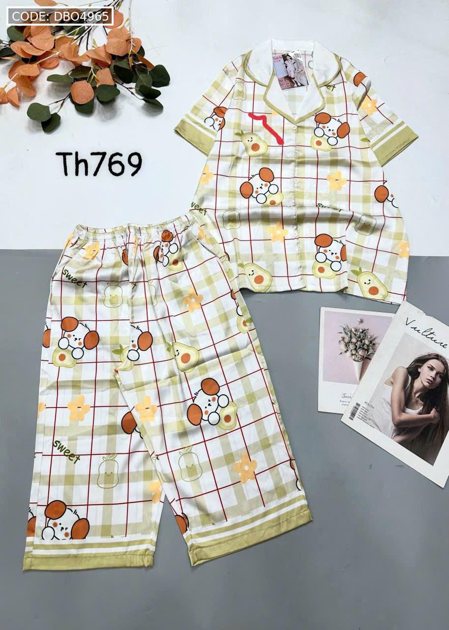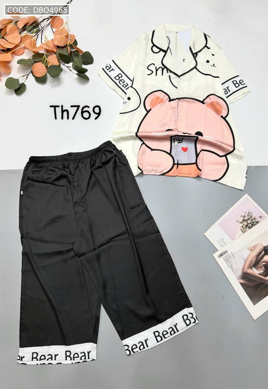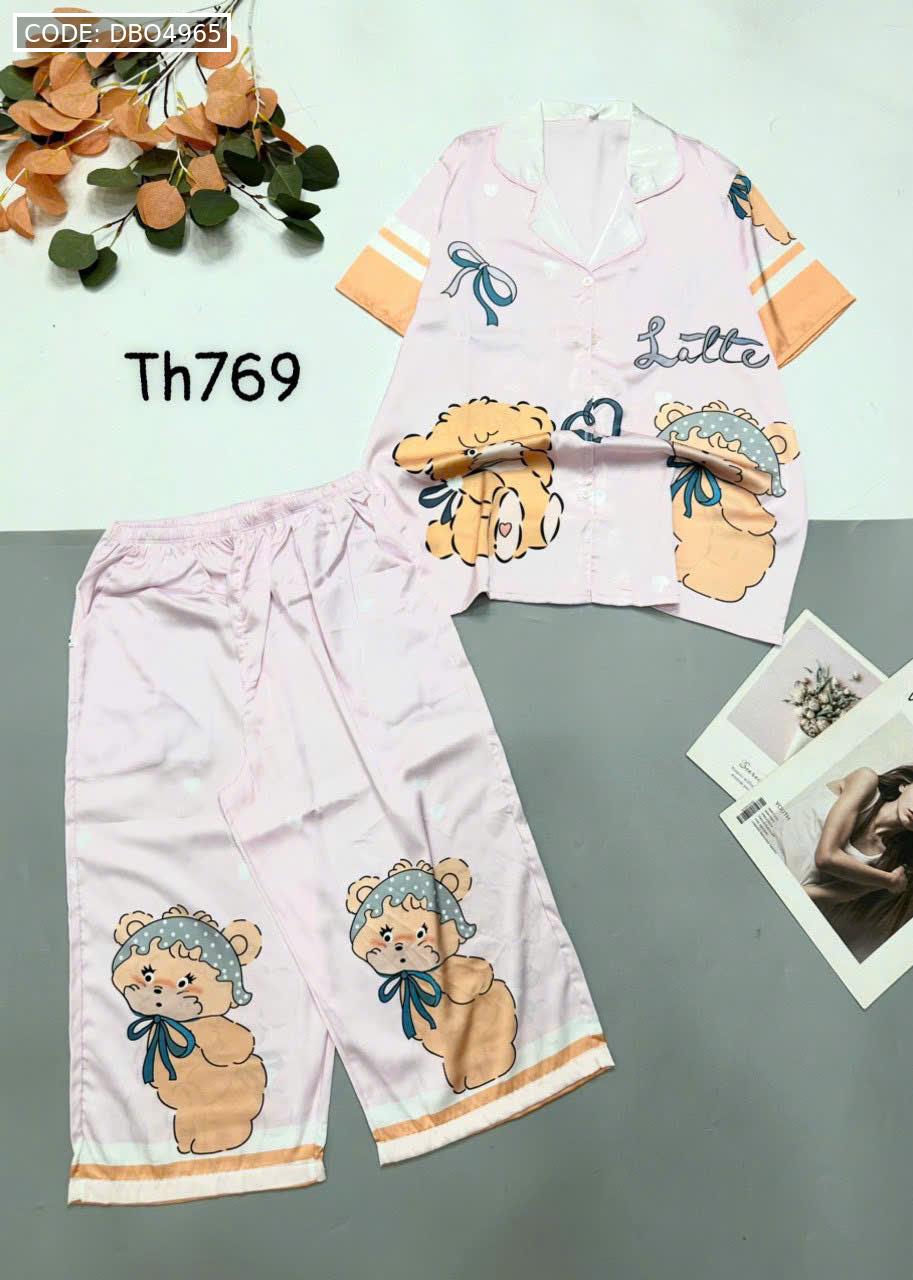 Đồ bộ pijama siêu mát quần lửng áo tay ngắn in hình thú