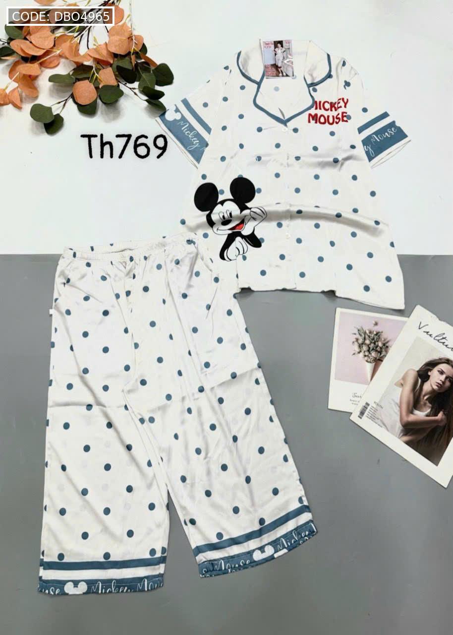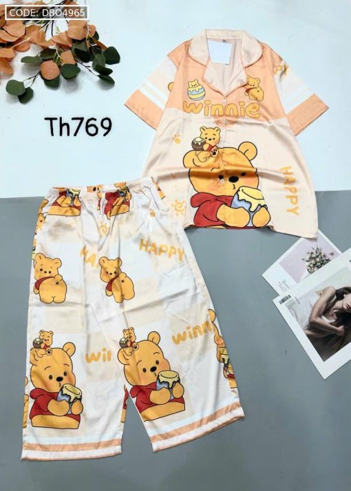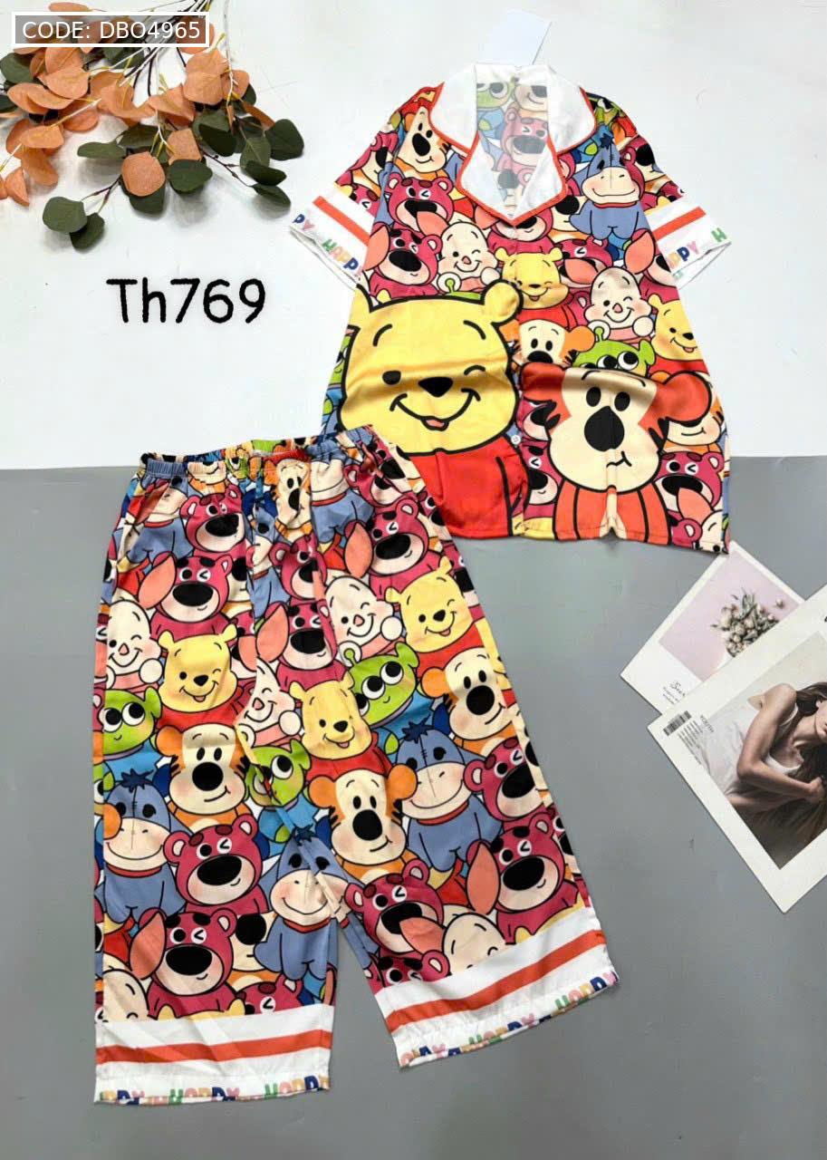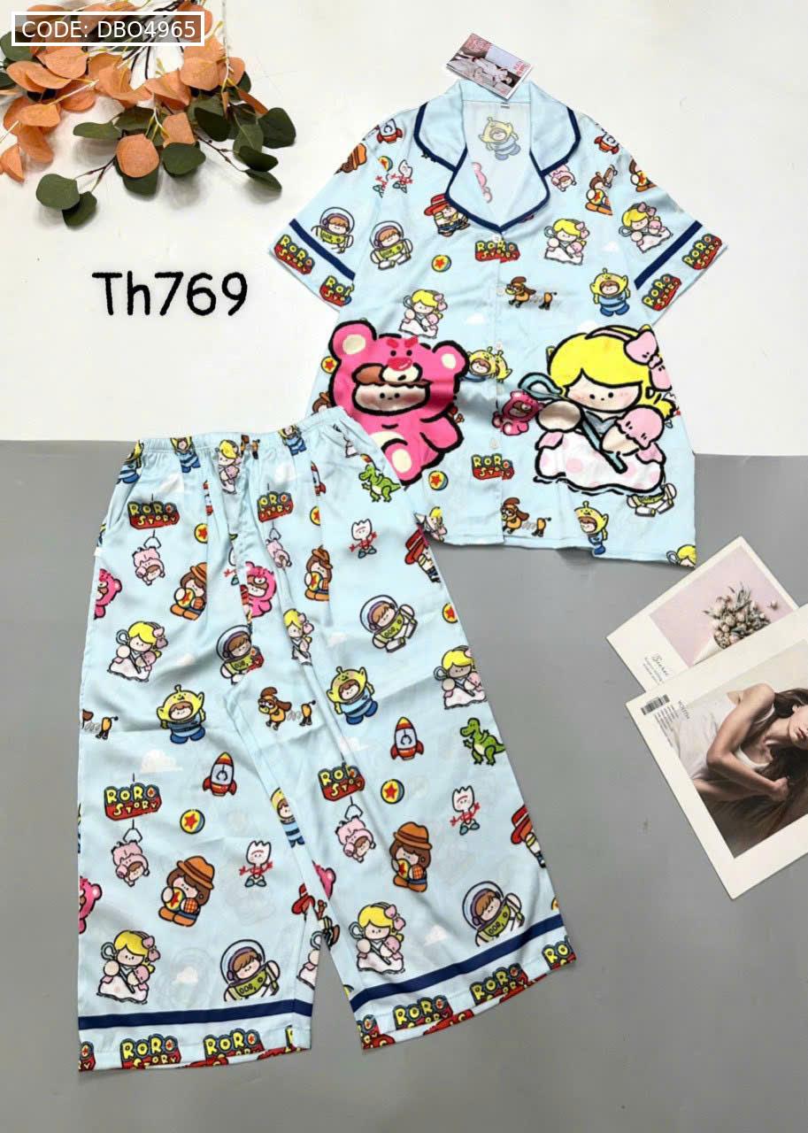 Đồ bộ pijama siêu mát quần lửng áo tay ngắn in hình thú
