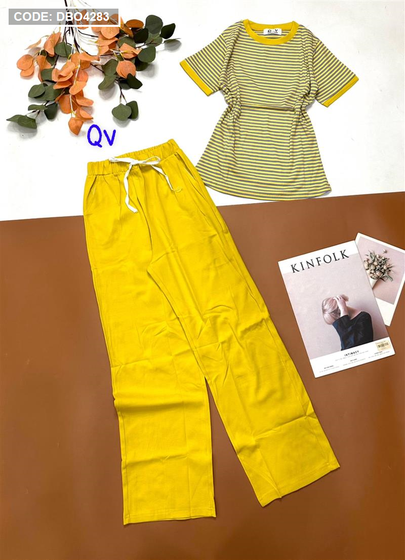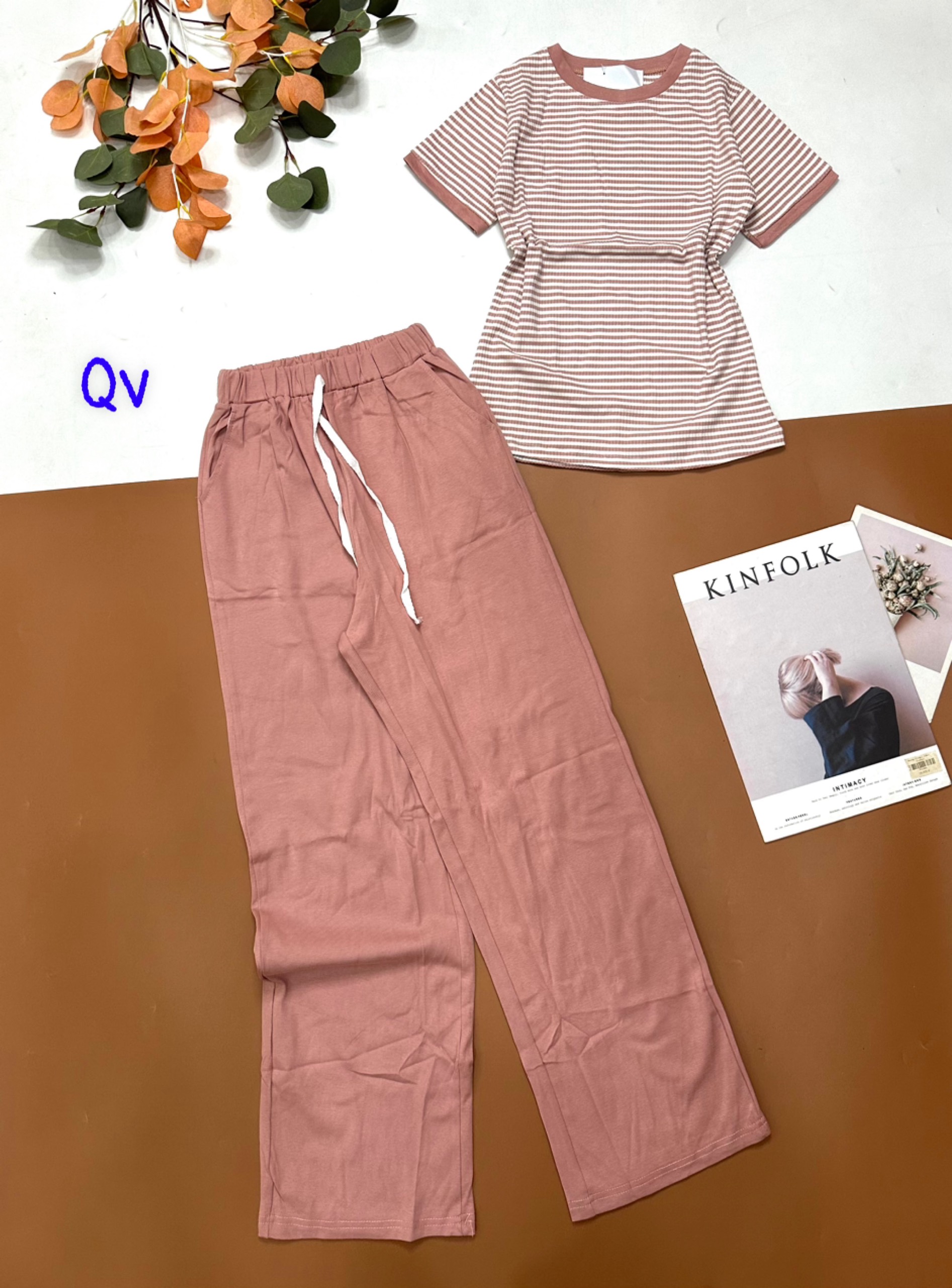 Đồ bộ quần dài áo cổ tròn sọc tay ngắn