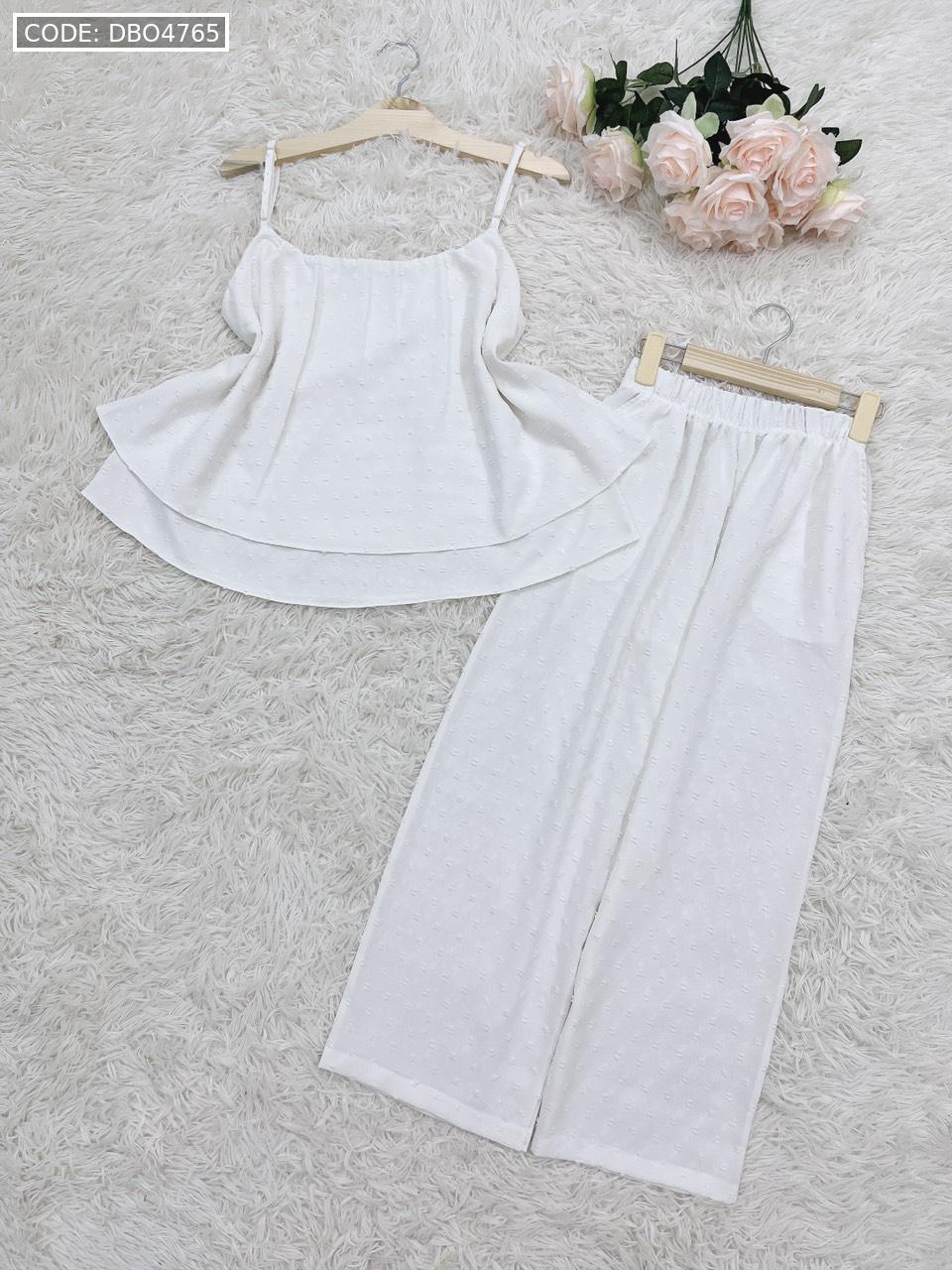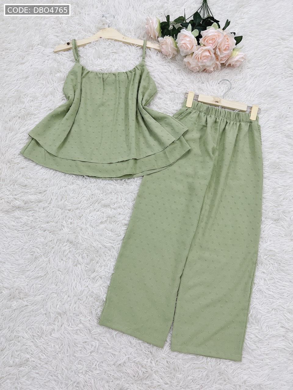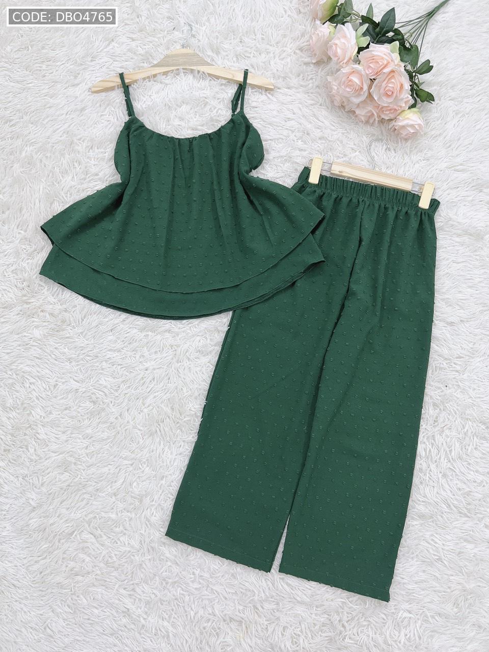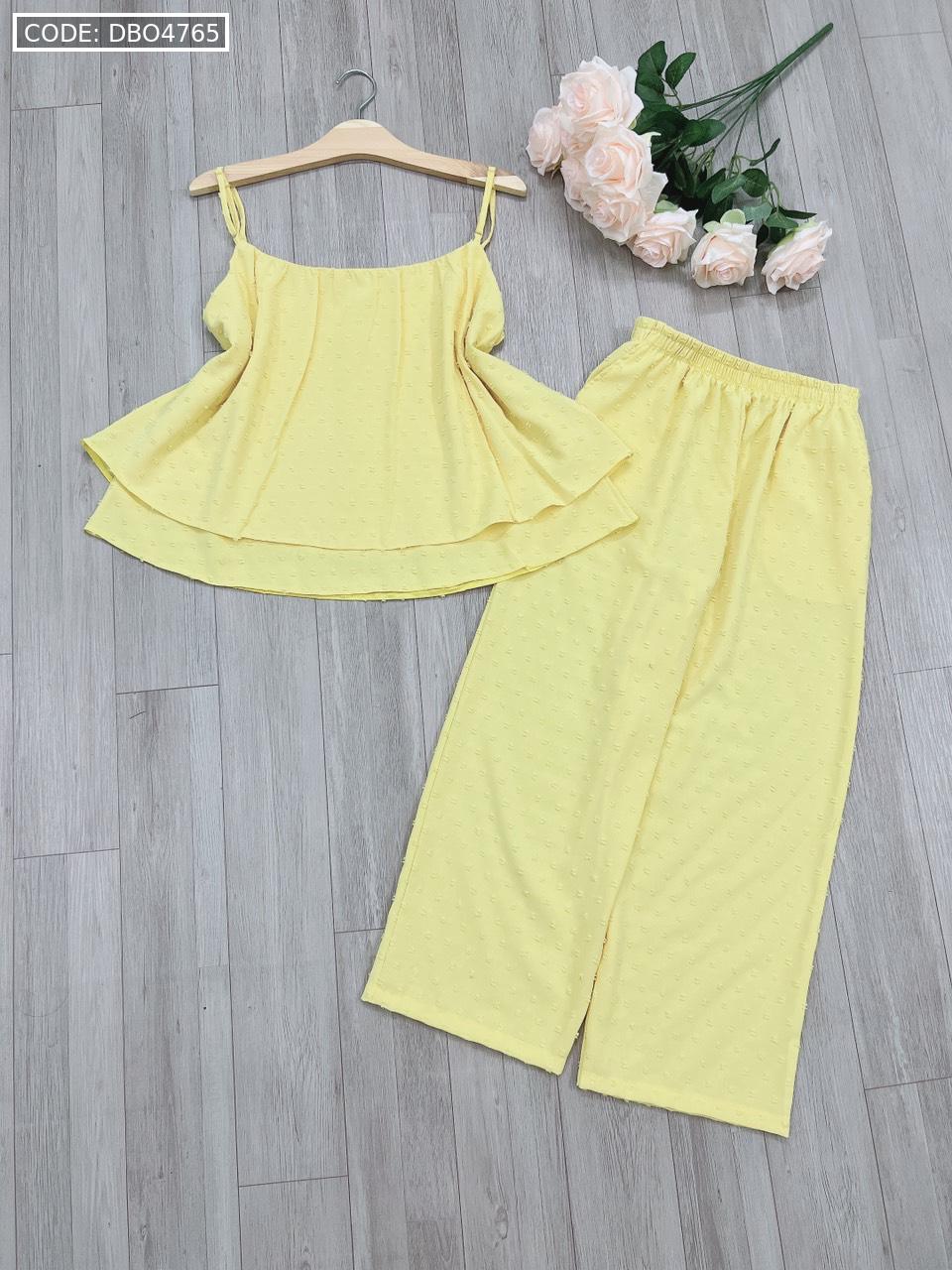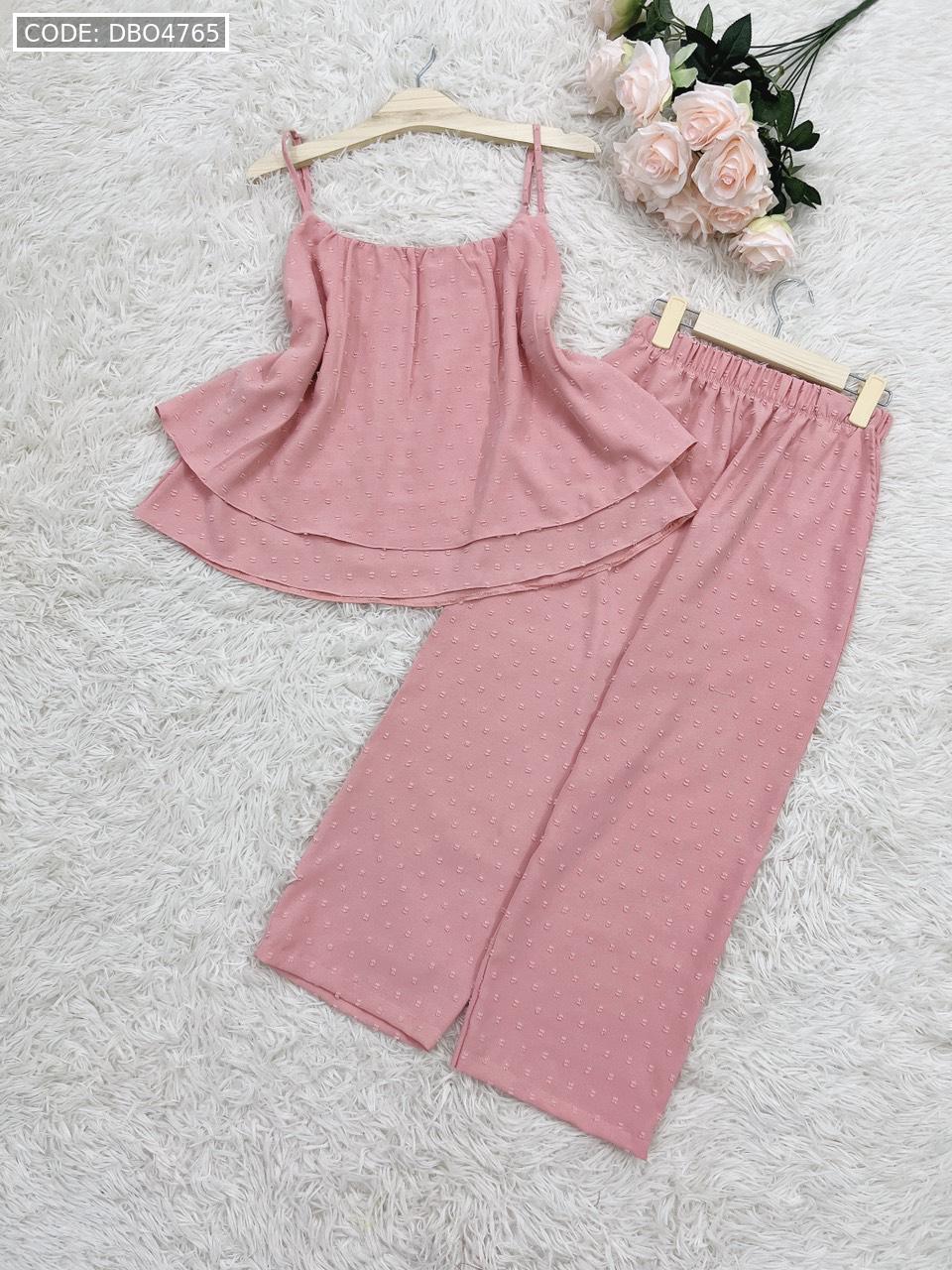 Đồ bộ quần dài áo hai dây đũi hạt trơn