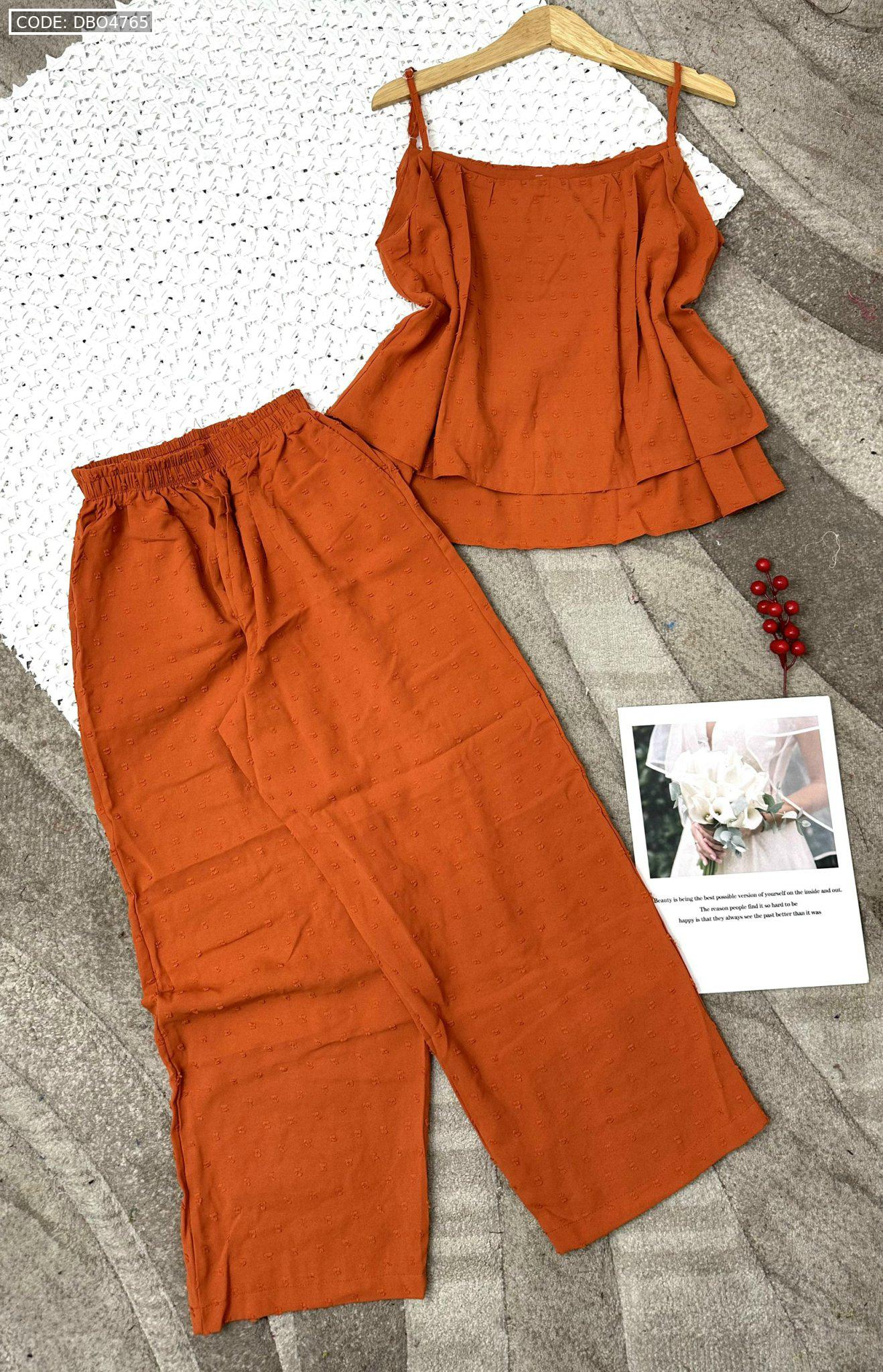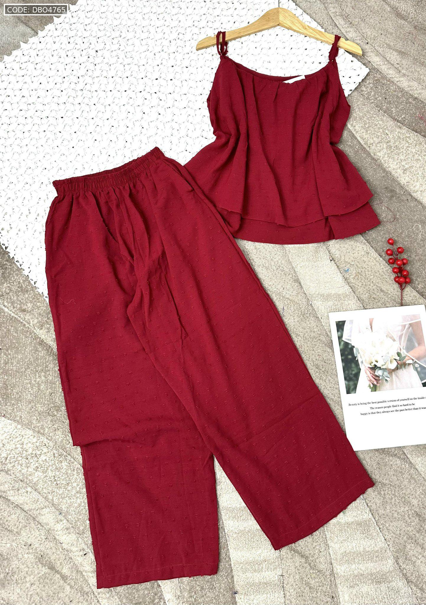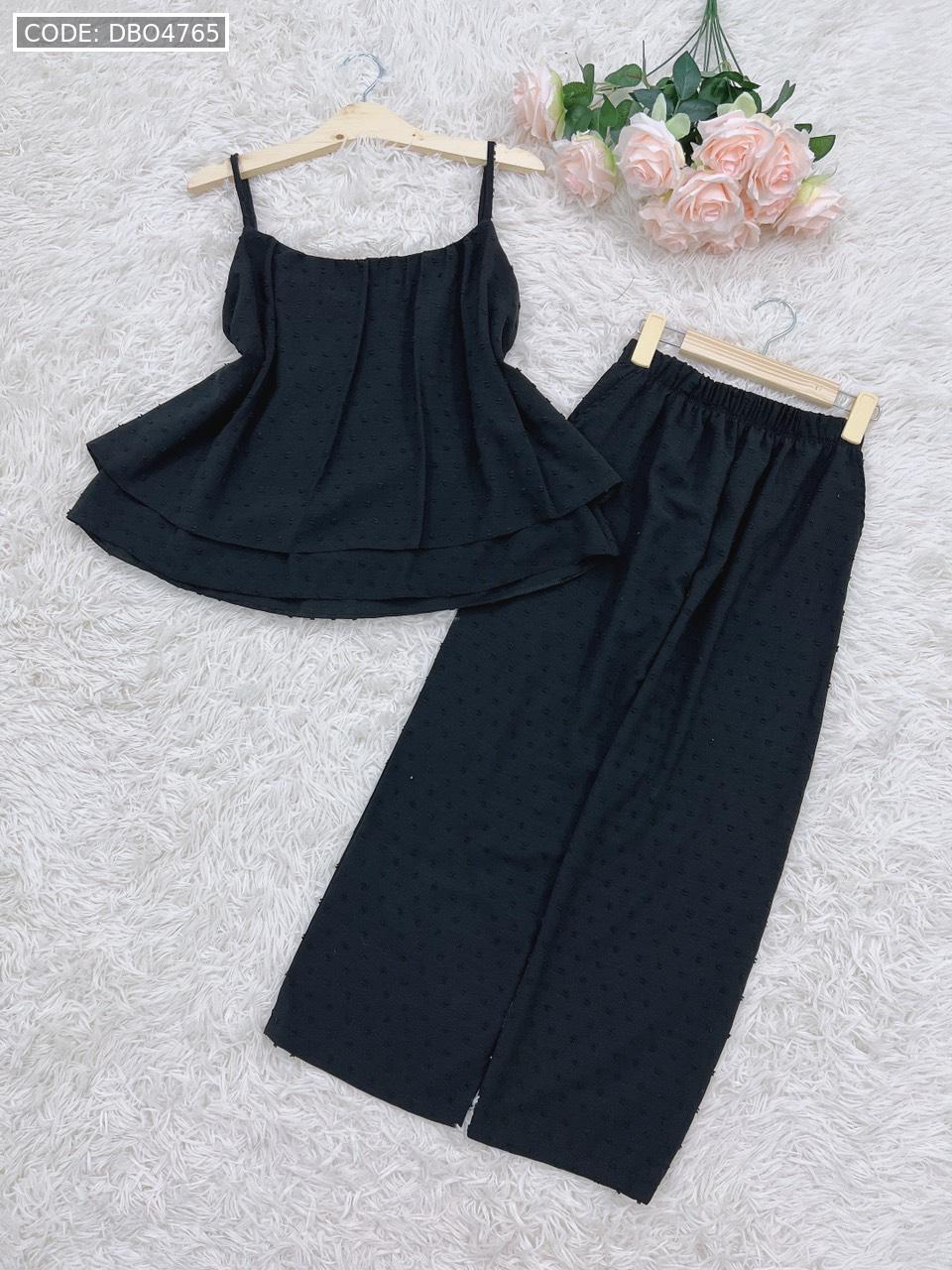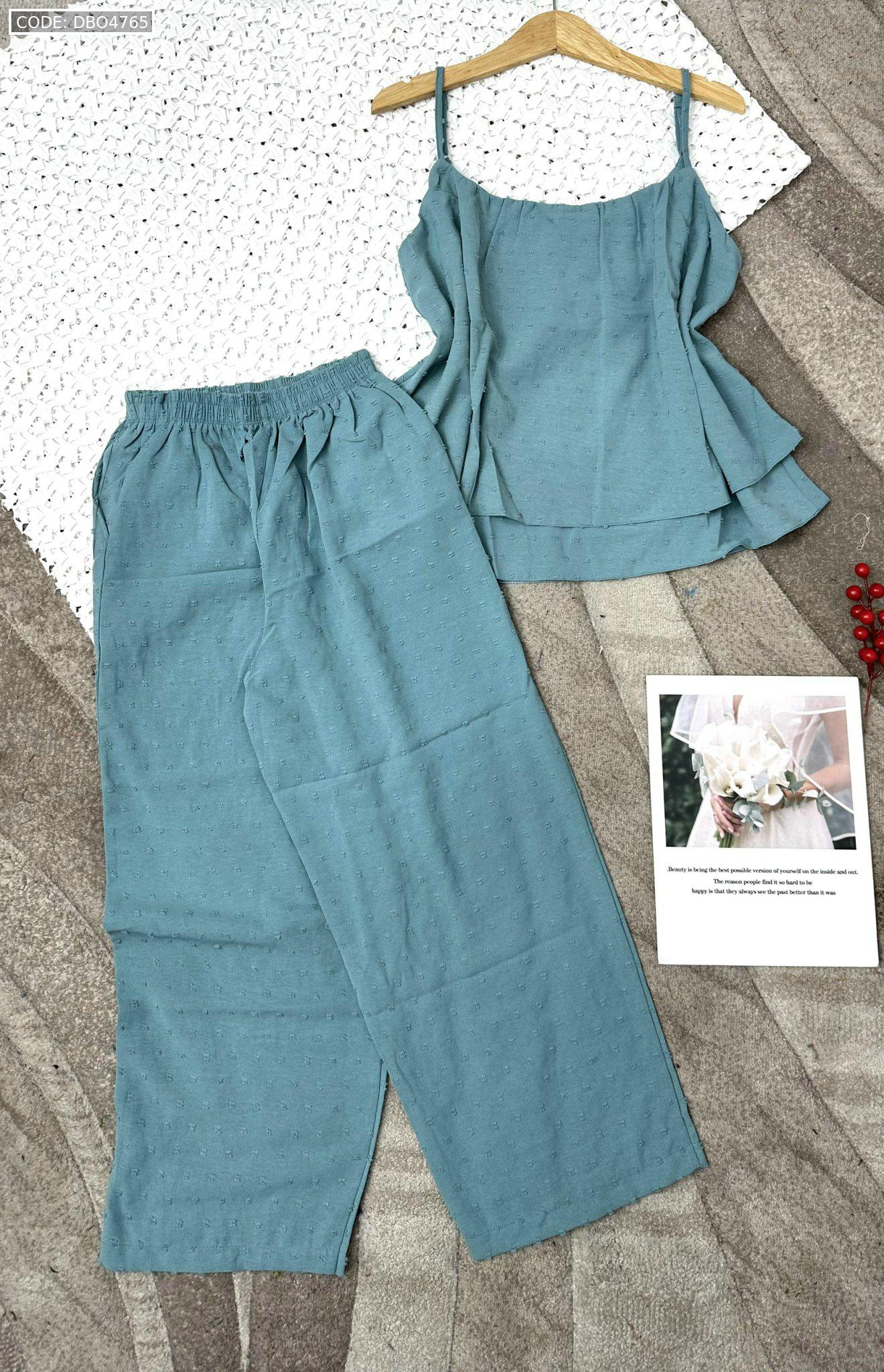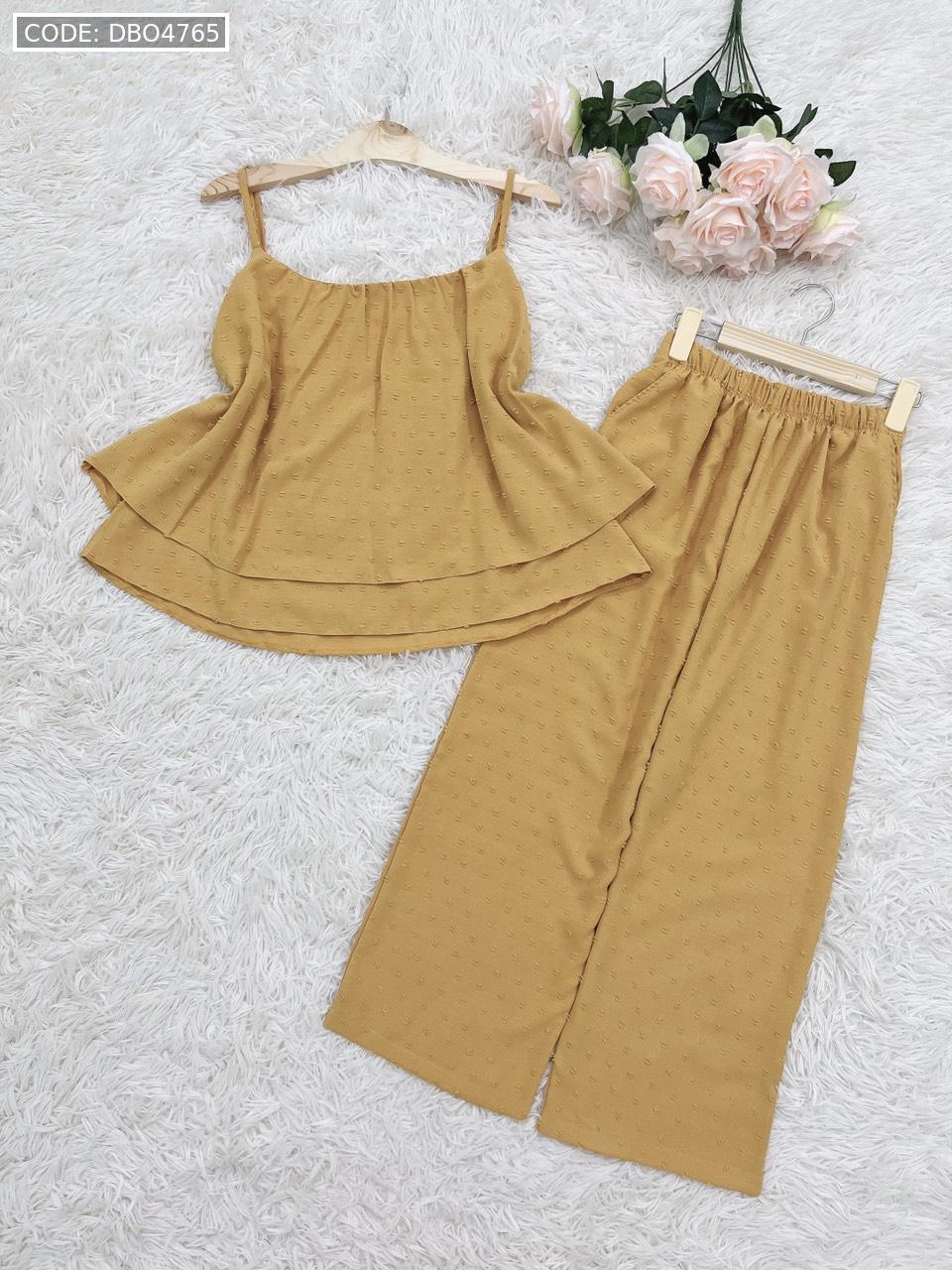 Đồ bộ quần dài áo hai dây đũi hạt trơn