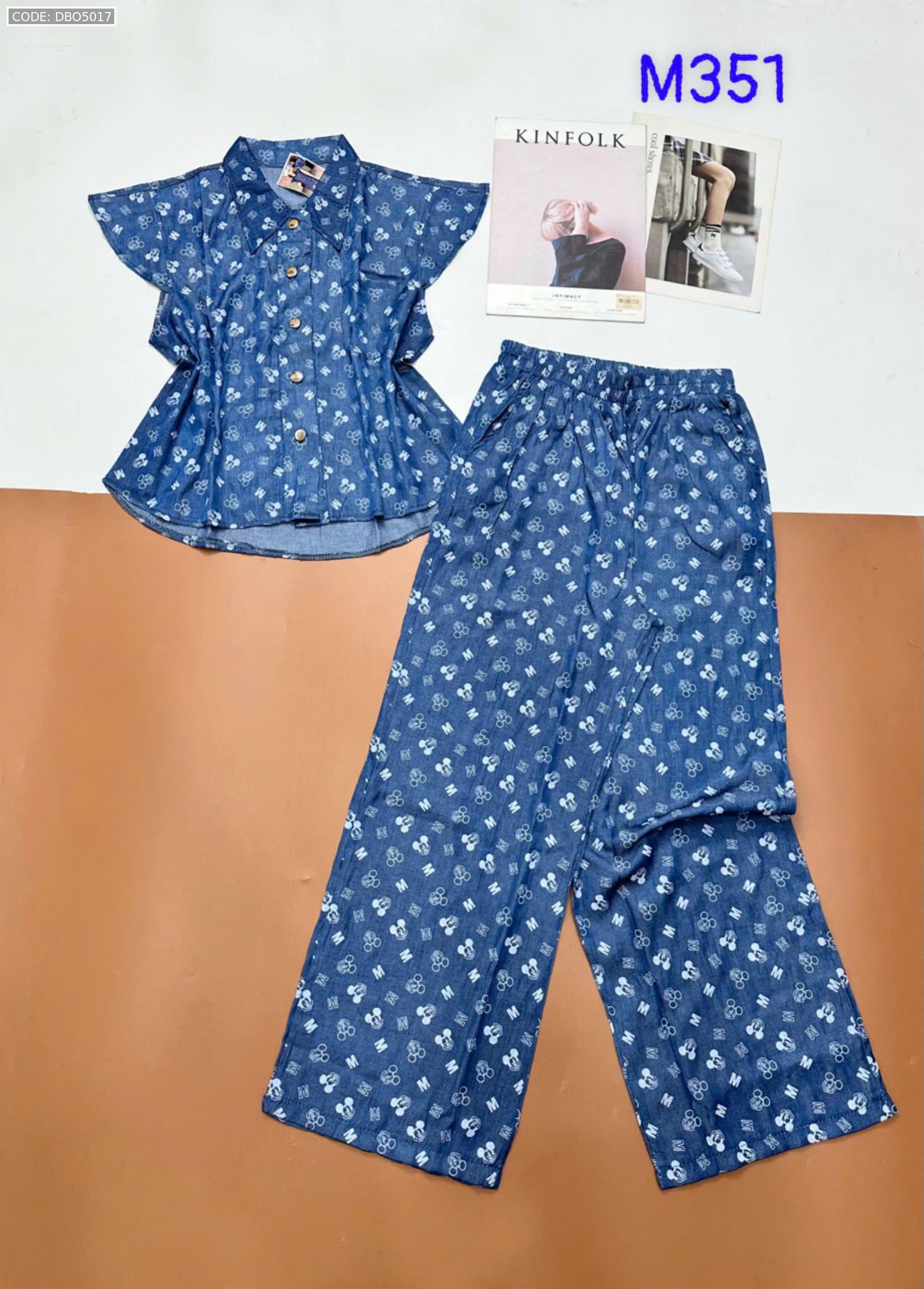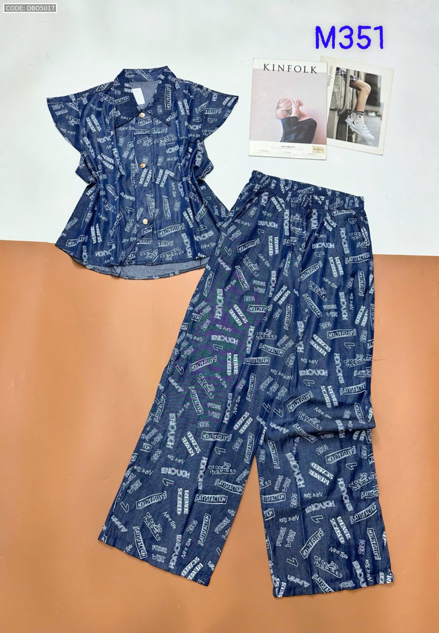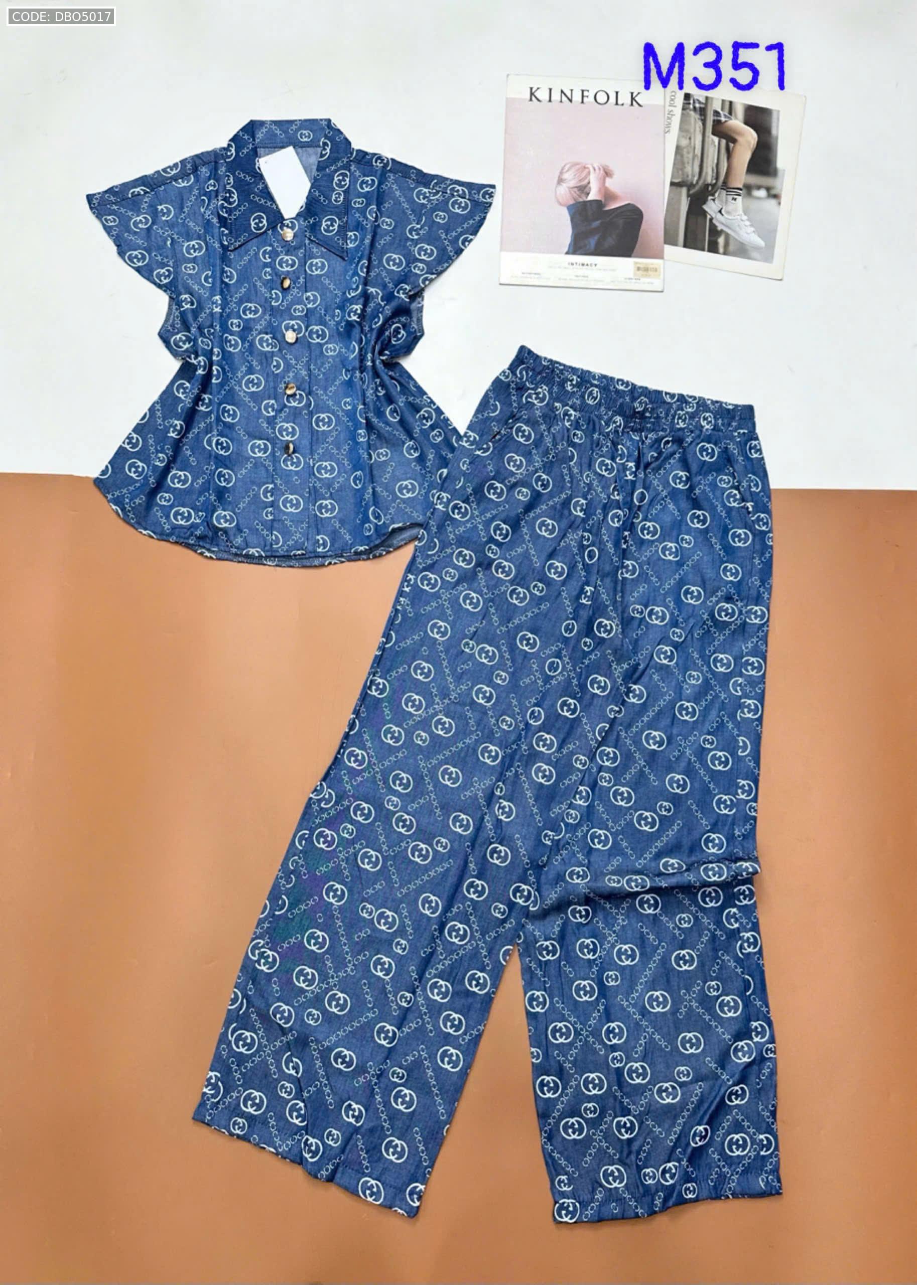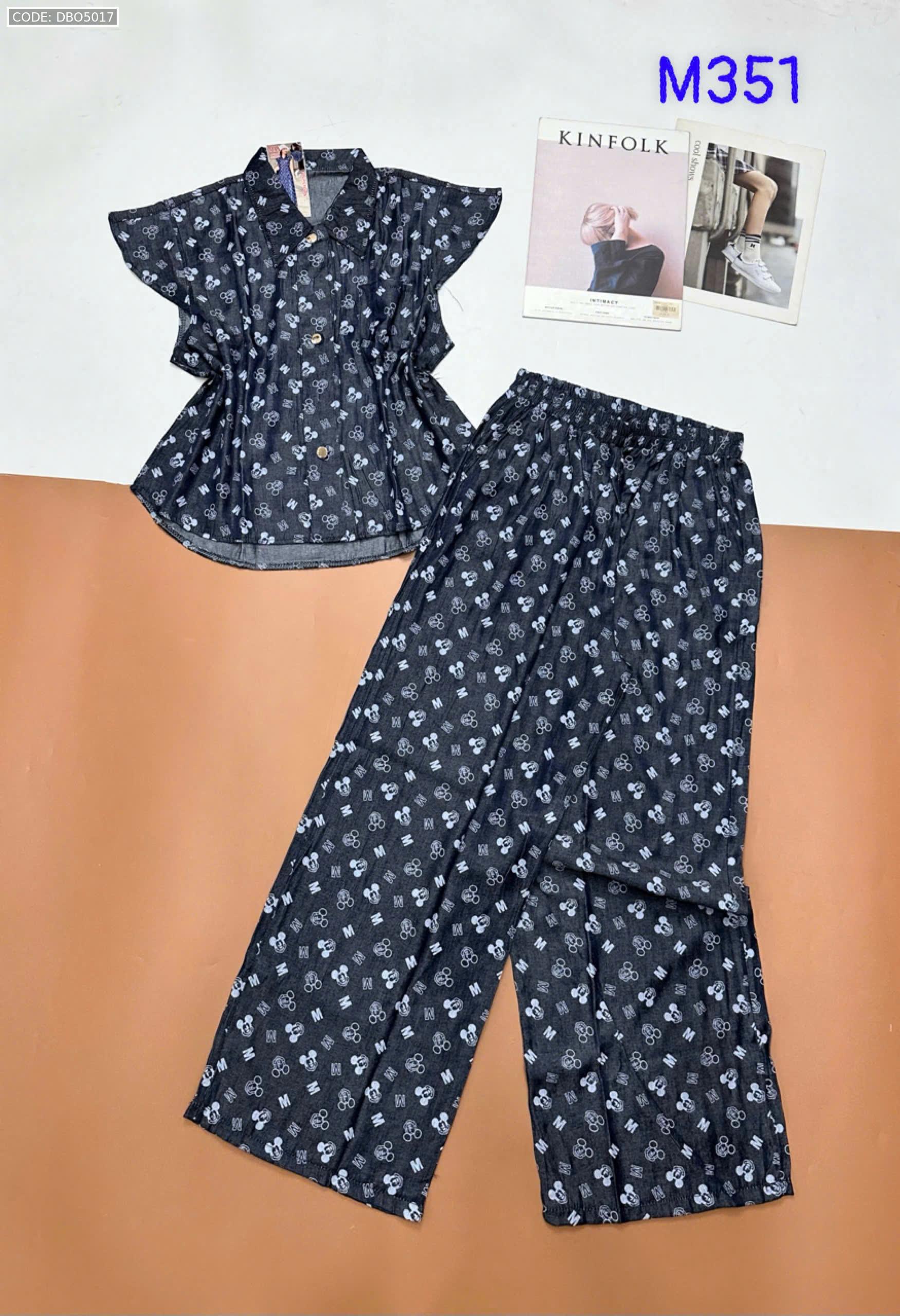 Đồ bộ quần dài áo sát nách bèo cổ sơ mi có nút nhiều hoạ tiết