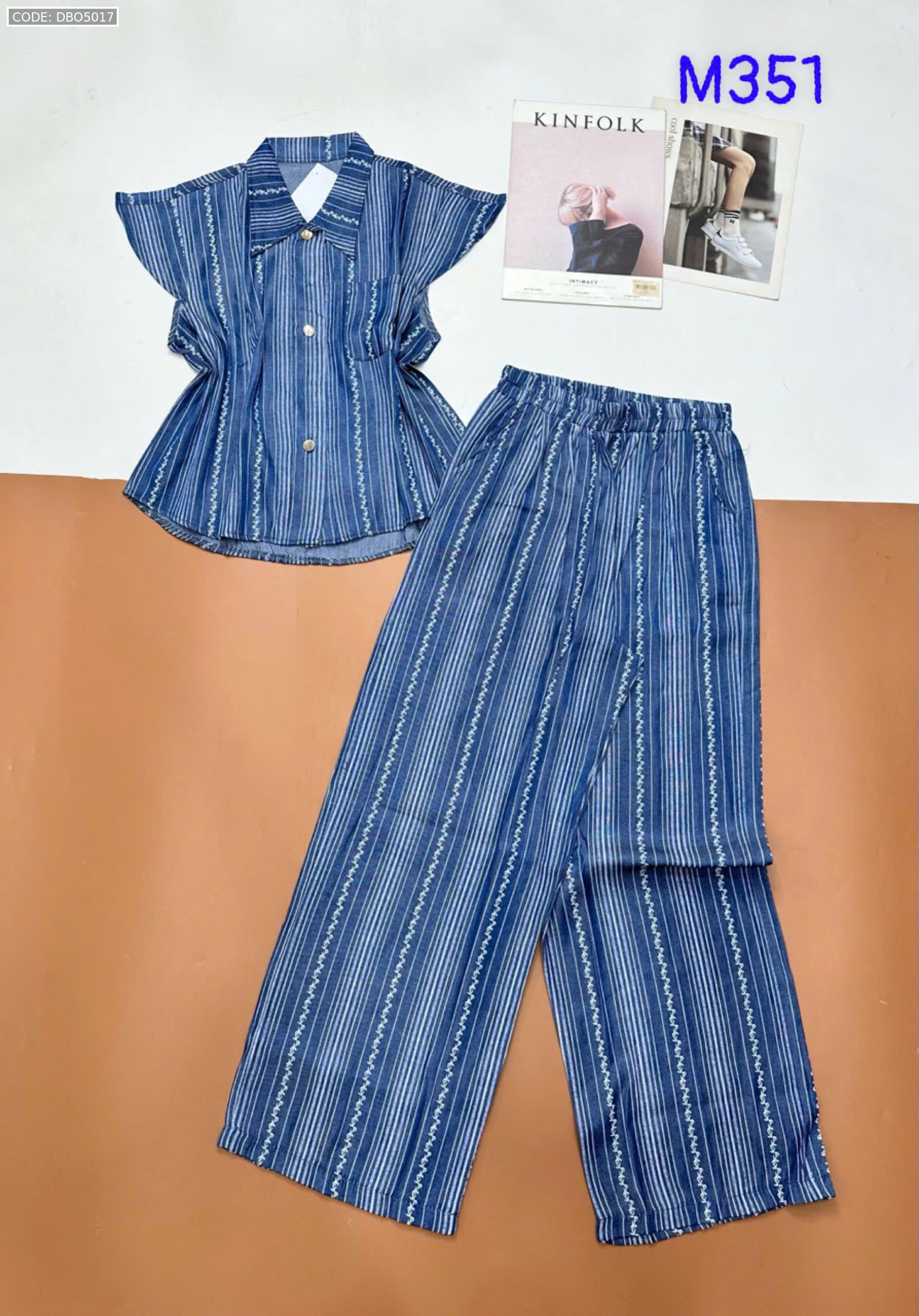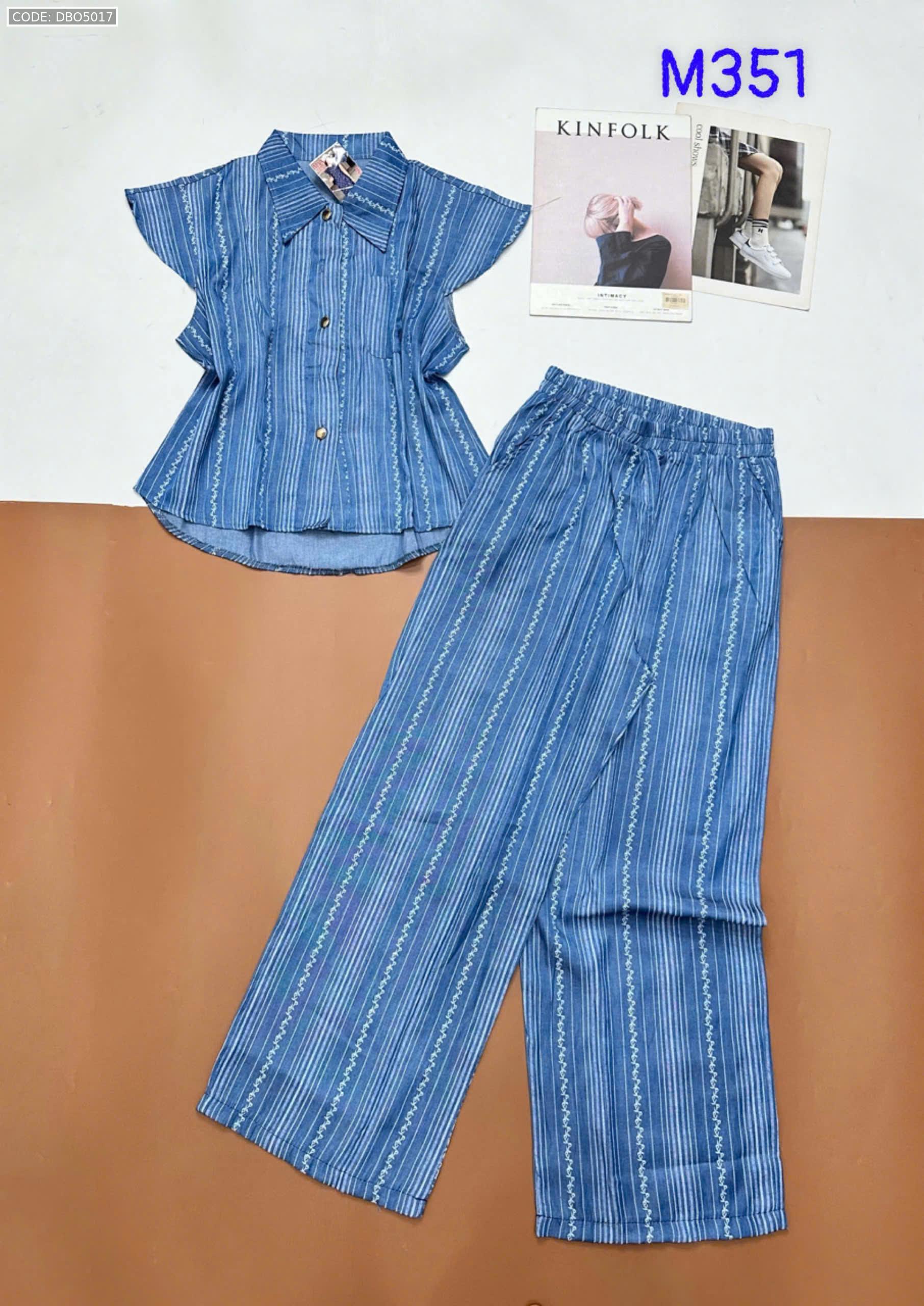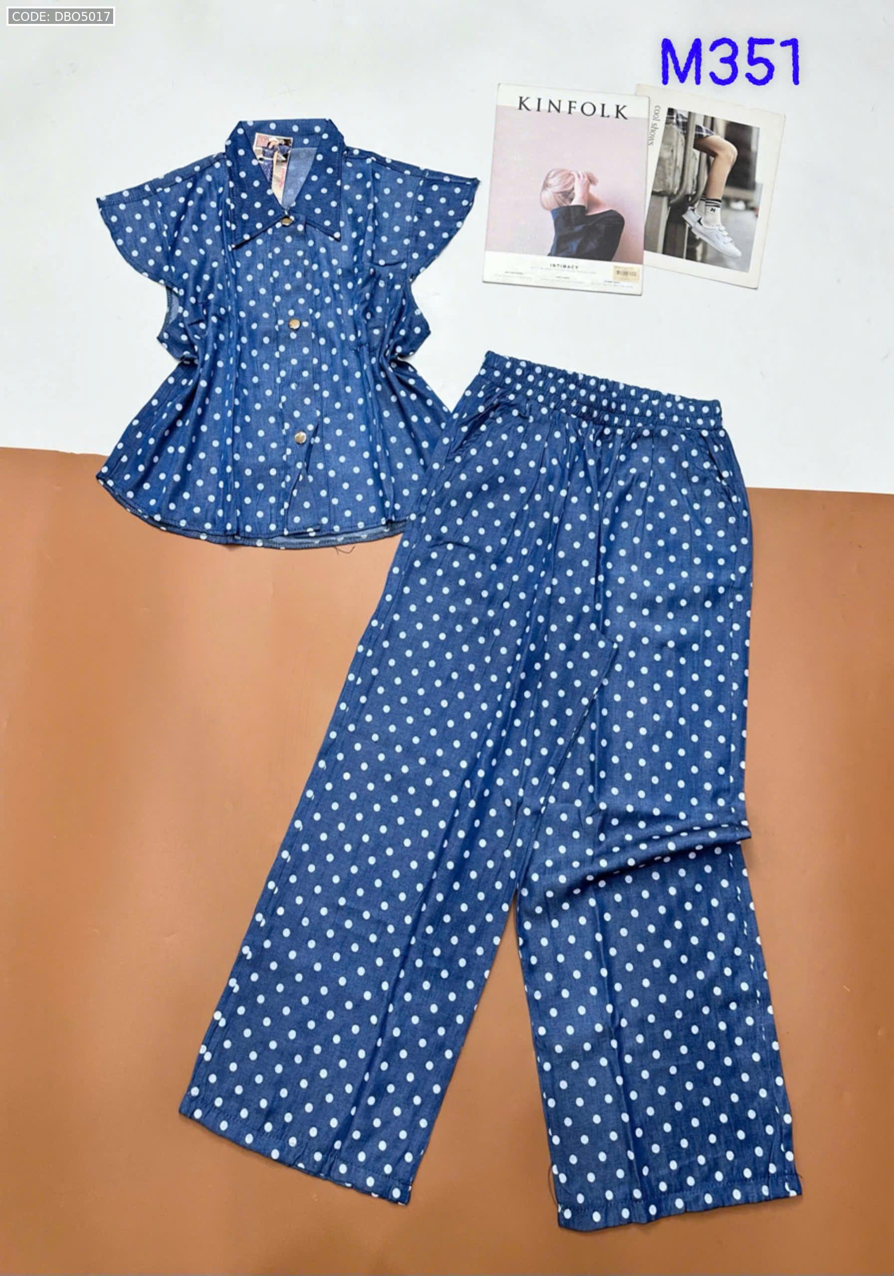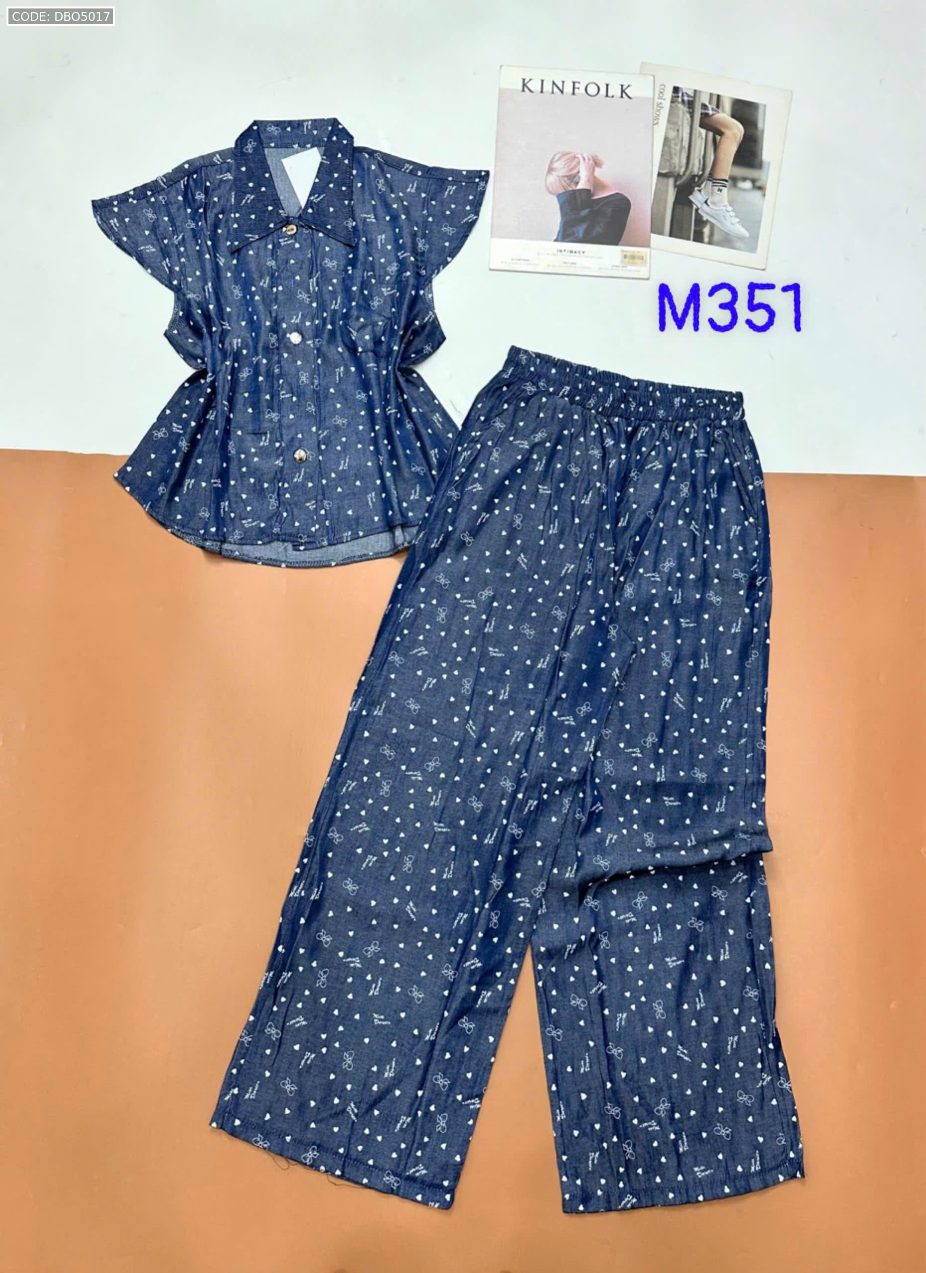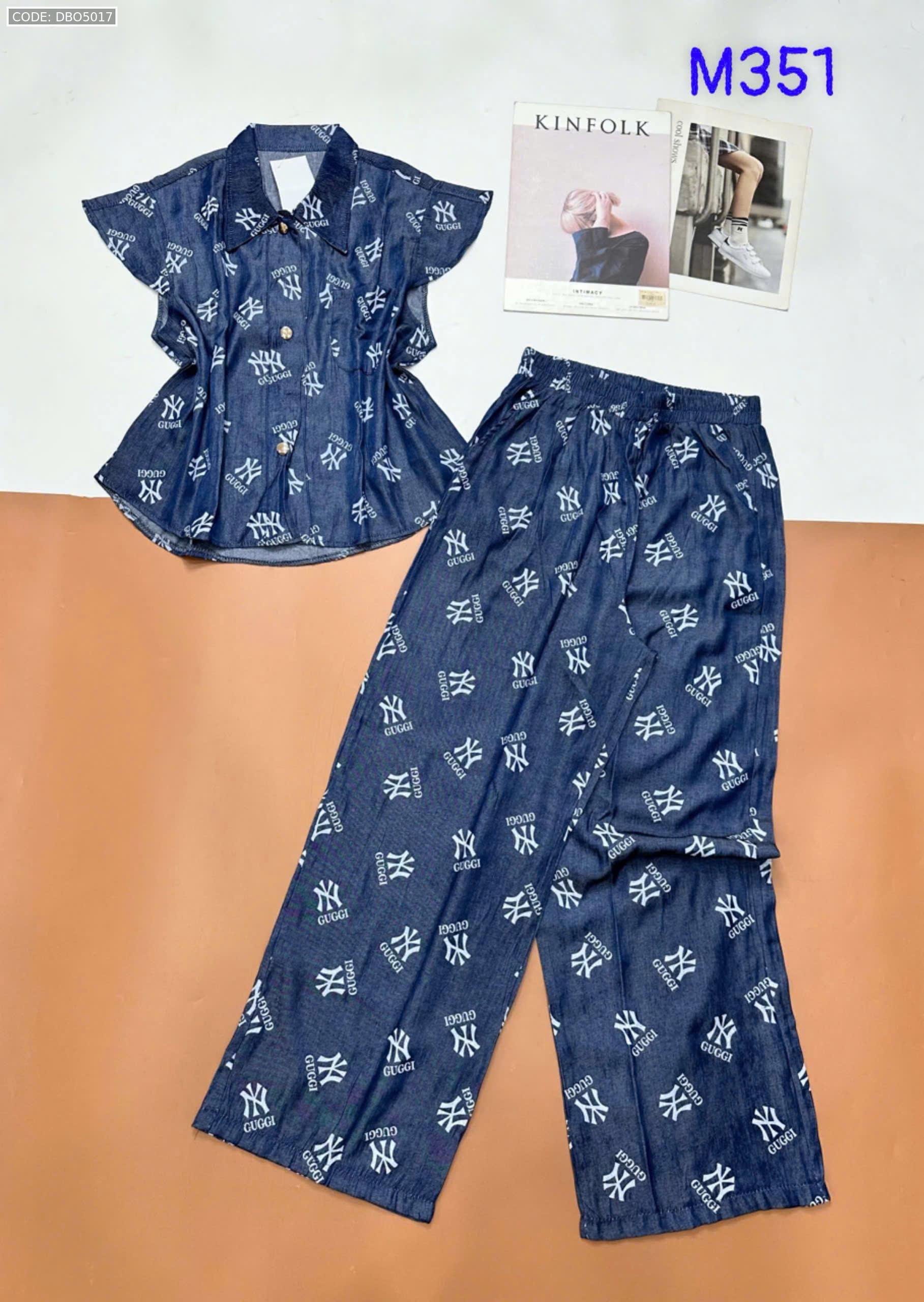 Đồ bộ quần dài áo sát nách bèo cổ sơ mi có nút nhiều hoạ tiết