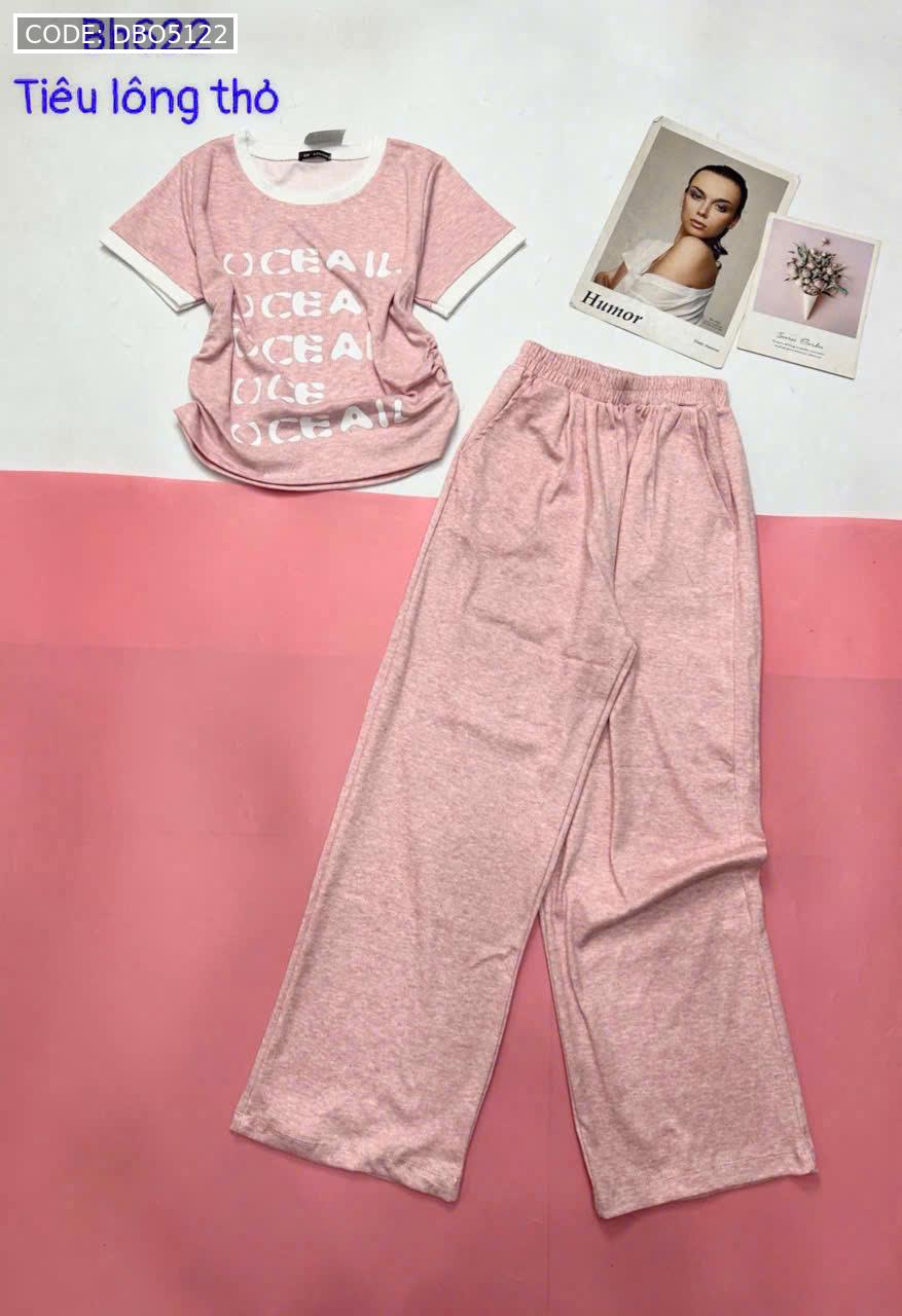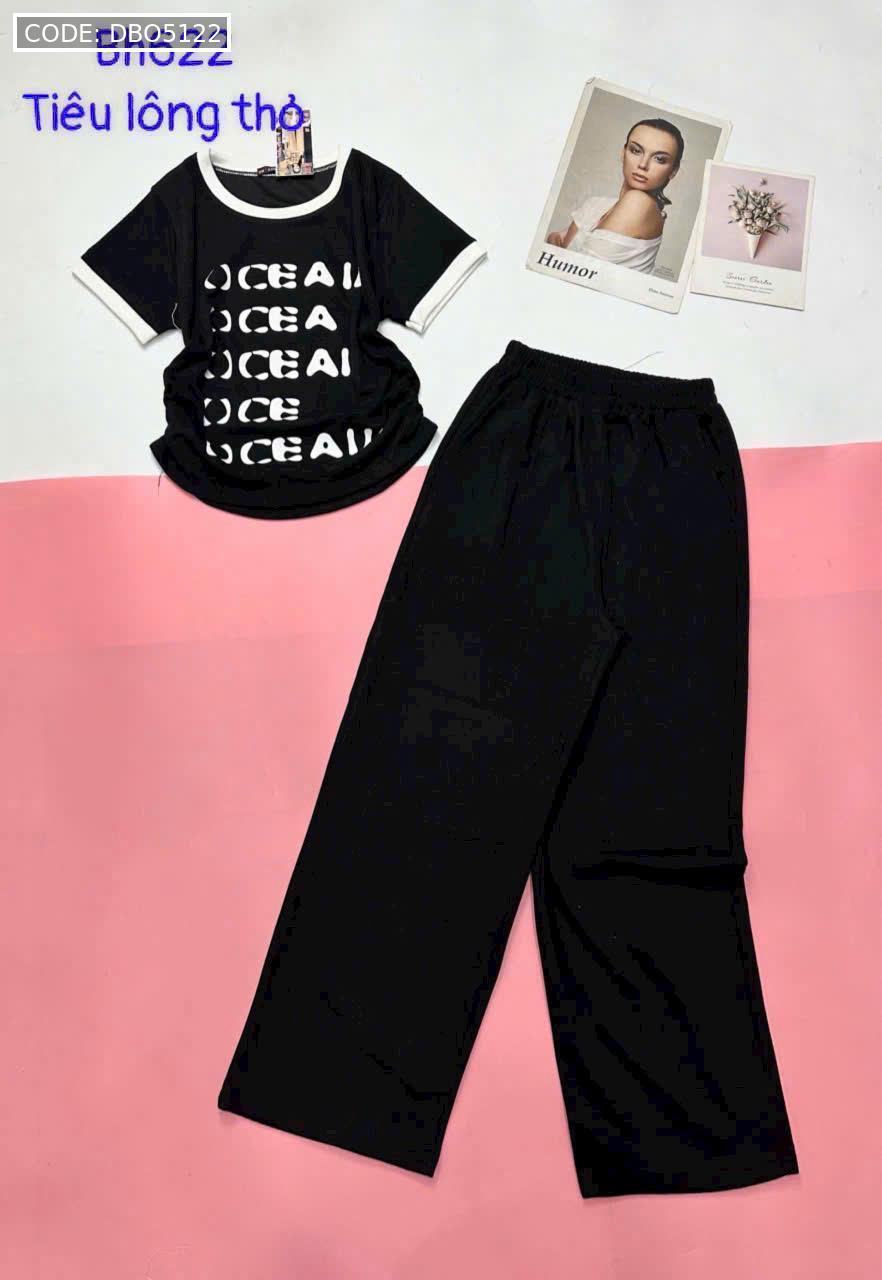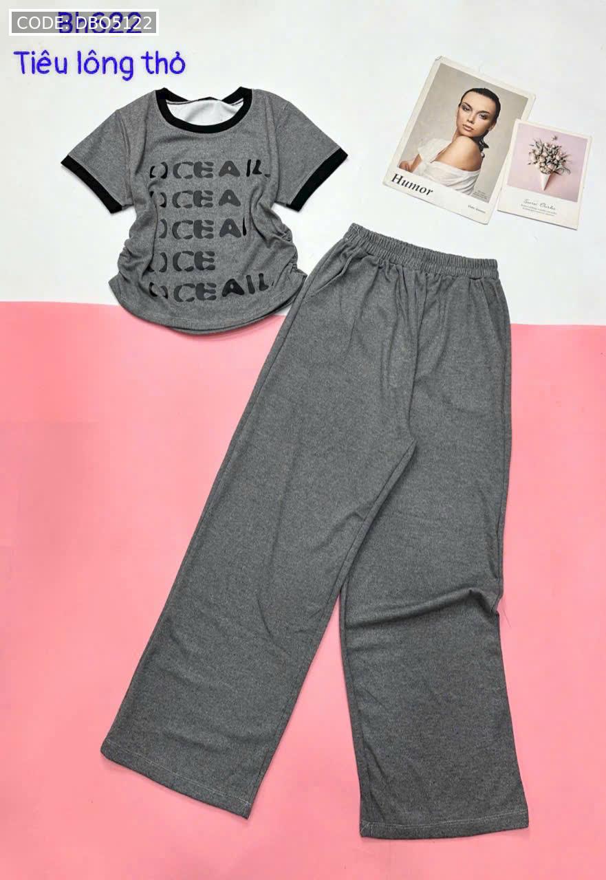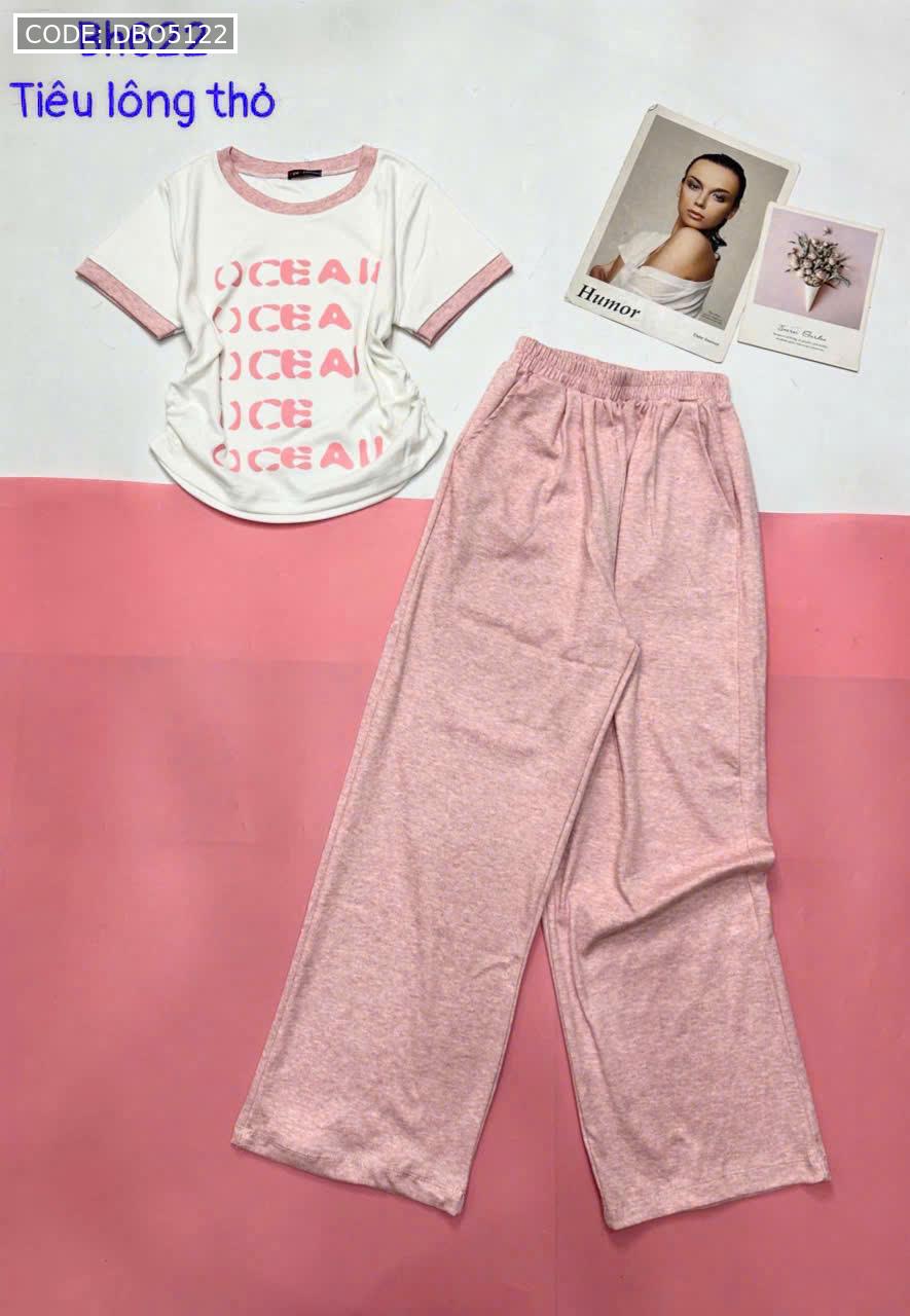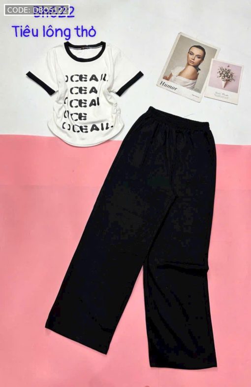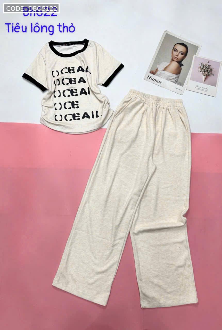 đồ bộ quần dài áo tay ngắn cổ tròn in chữ viền tay áo