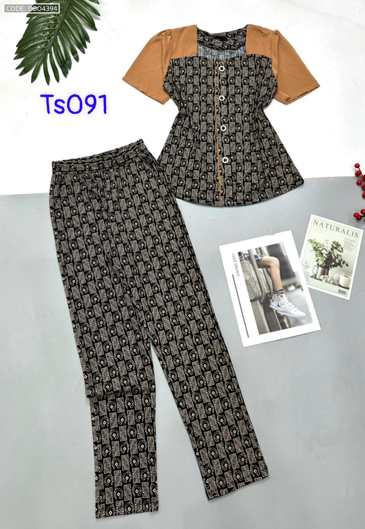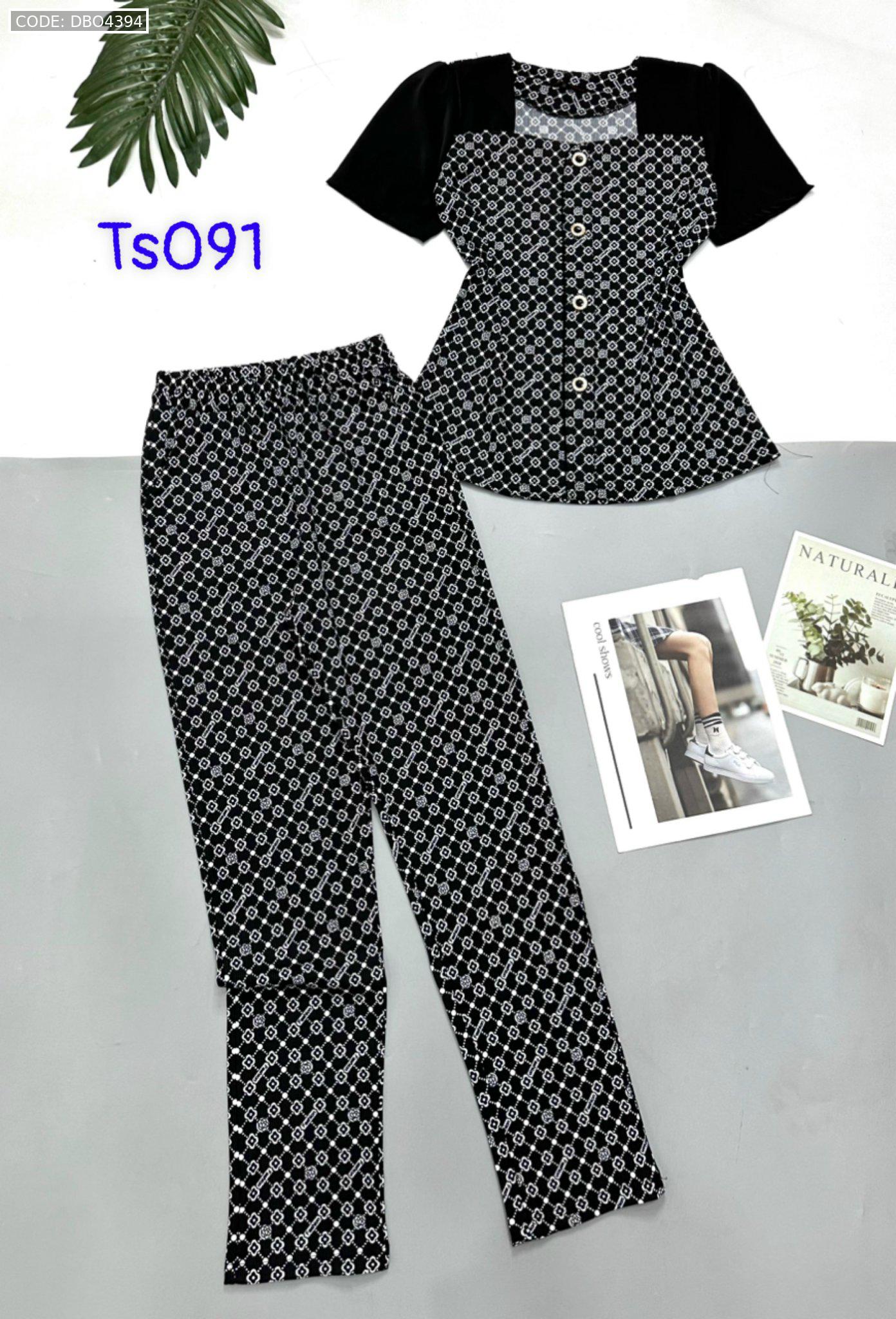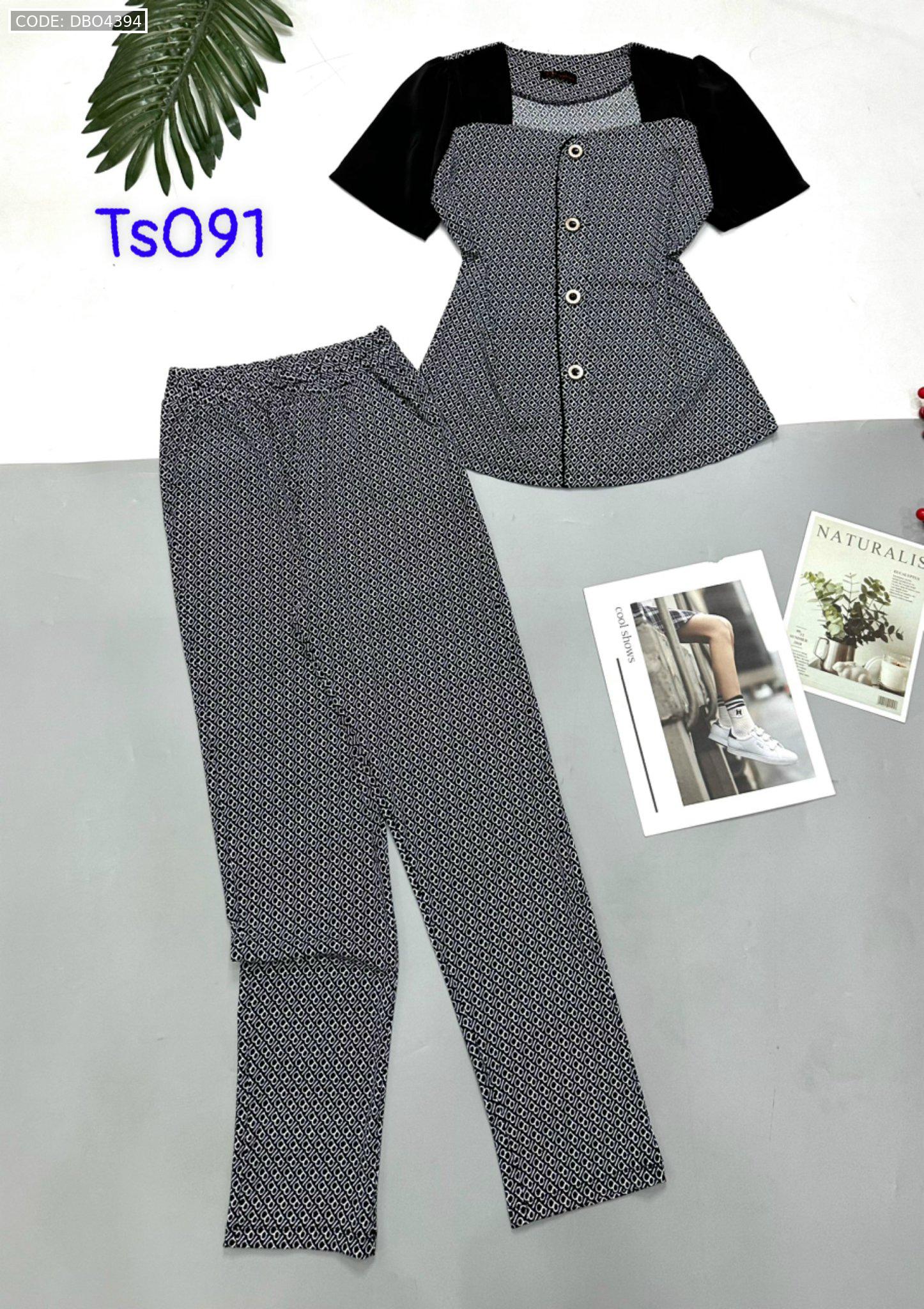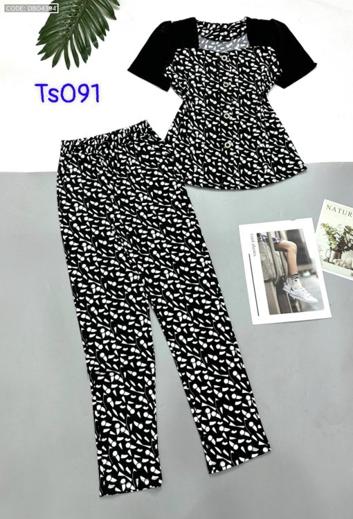 Đồ bộ quần dài áo tay ngắn cổ vuông có nút in hoạ tiết nhỏ