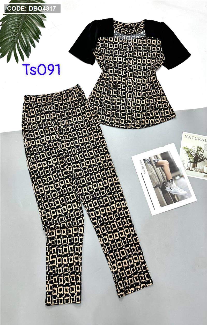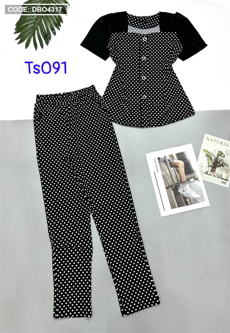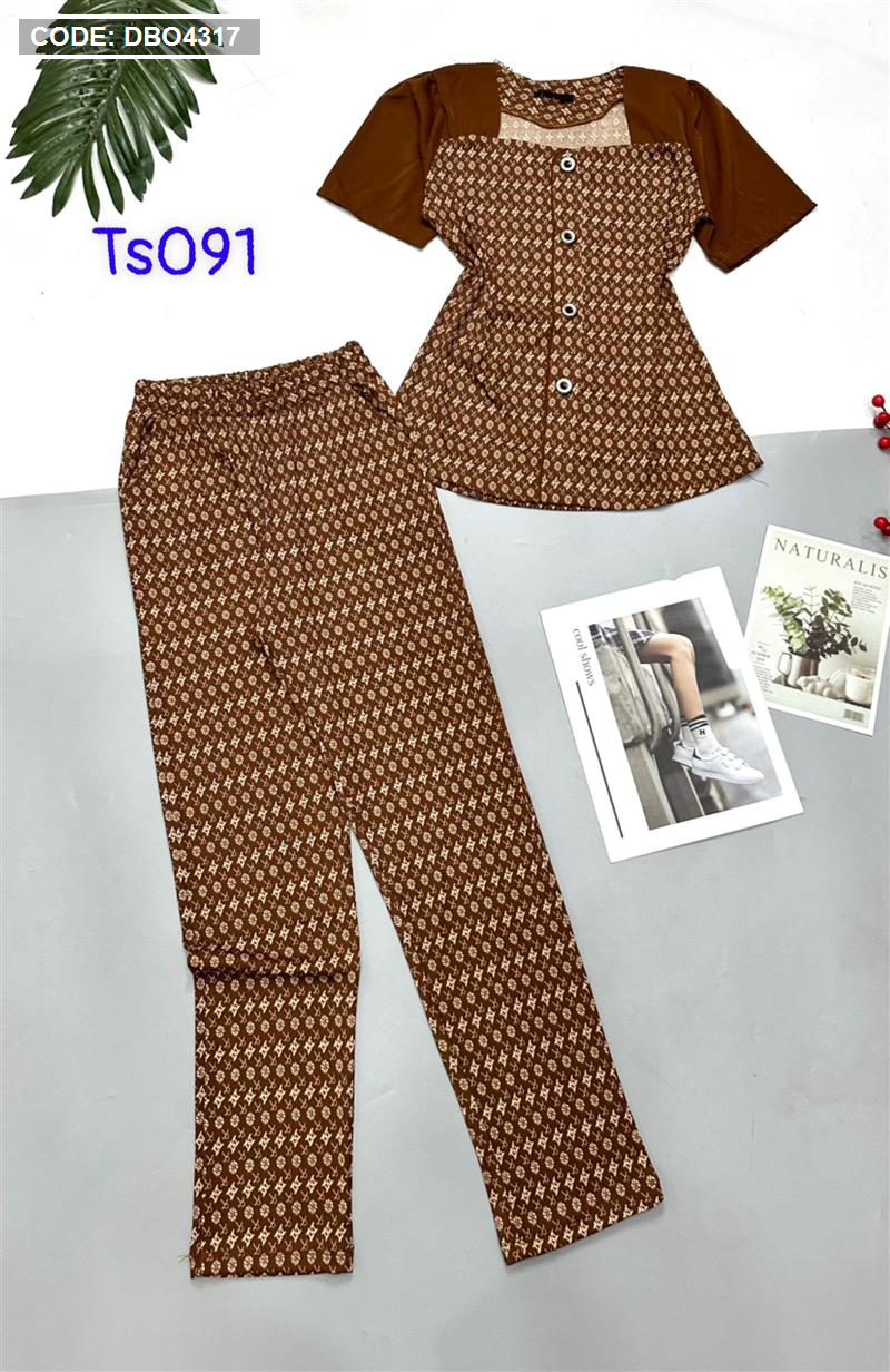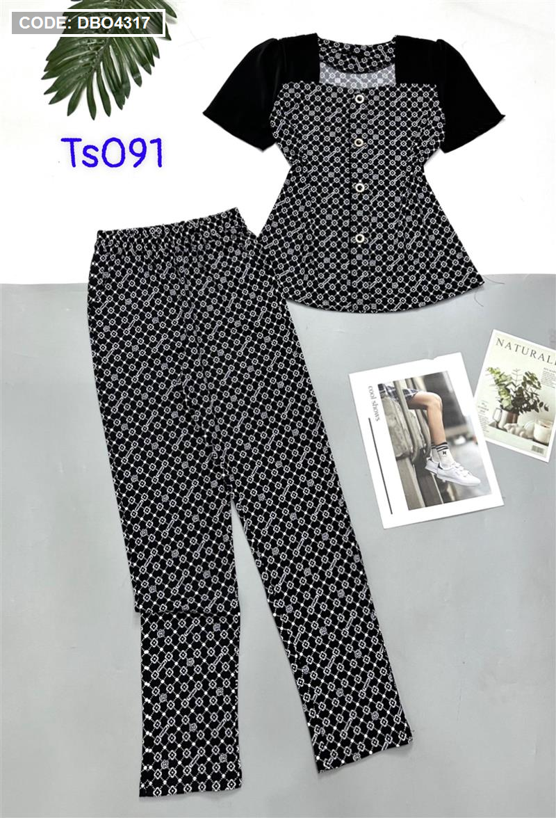 Đồ bộ quần dài áo tay ngắn cổ vuông in hoạ tiết nhỏ
