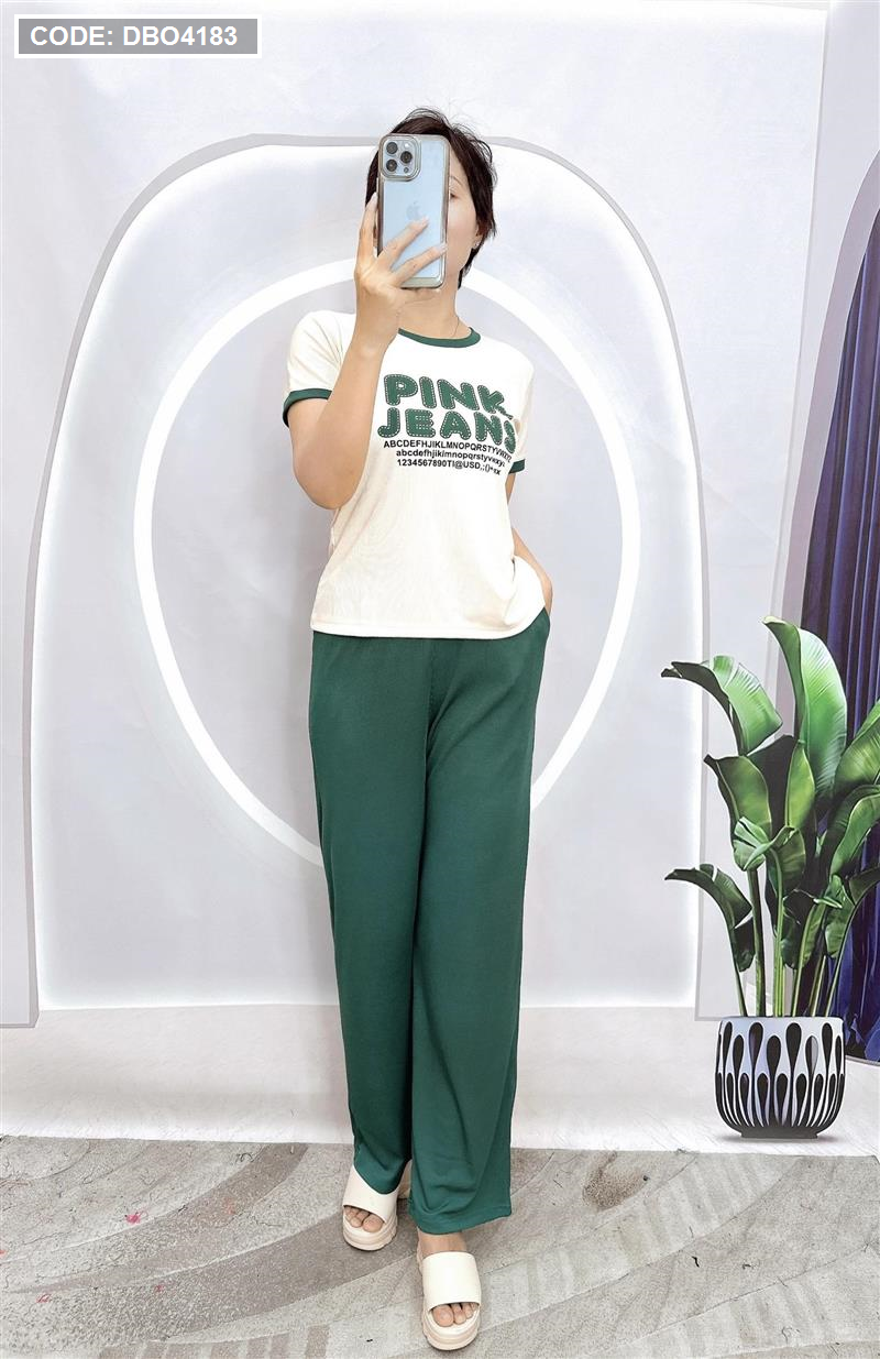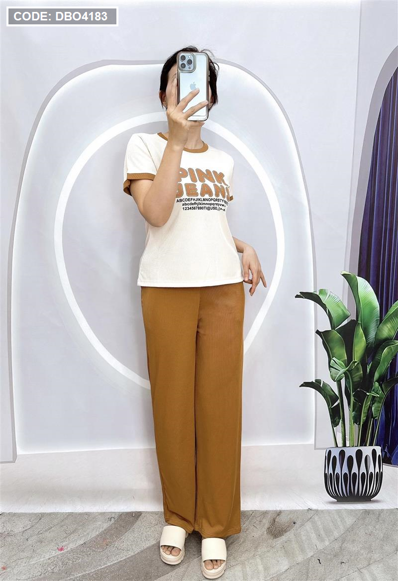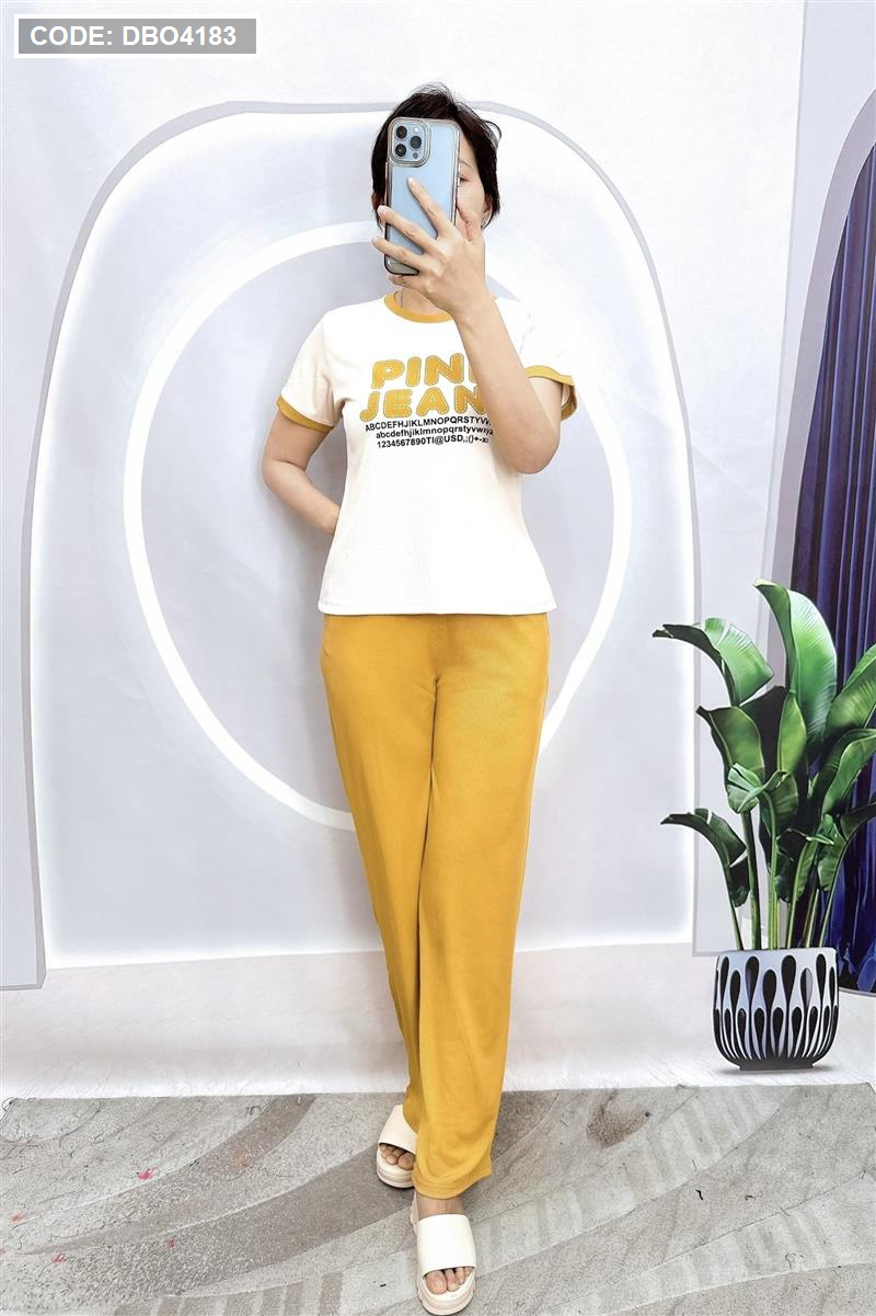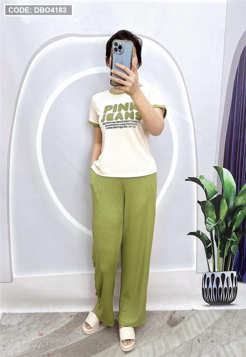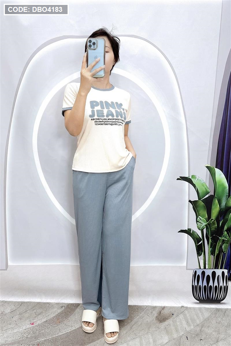 Đồ bộ quần dài áo tay ngắn in chữ