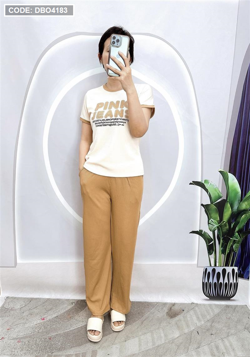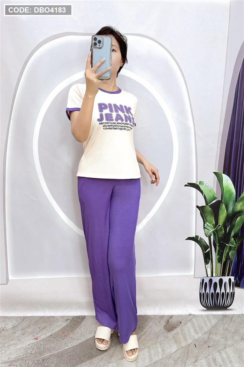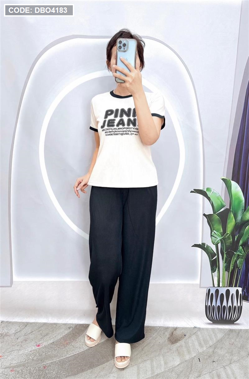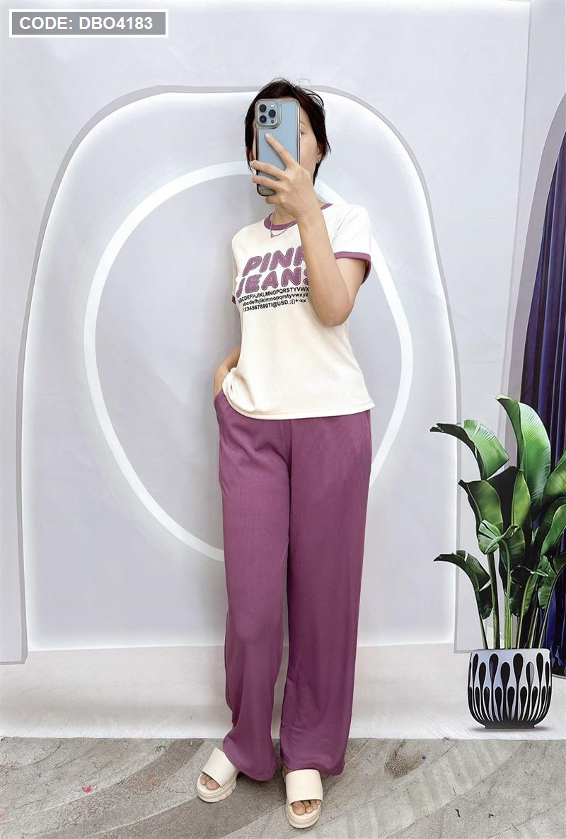 Đồ bộ quần dài áo tay ngắn in chữ