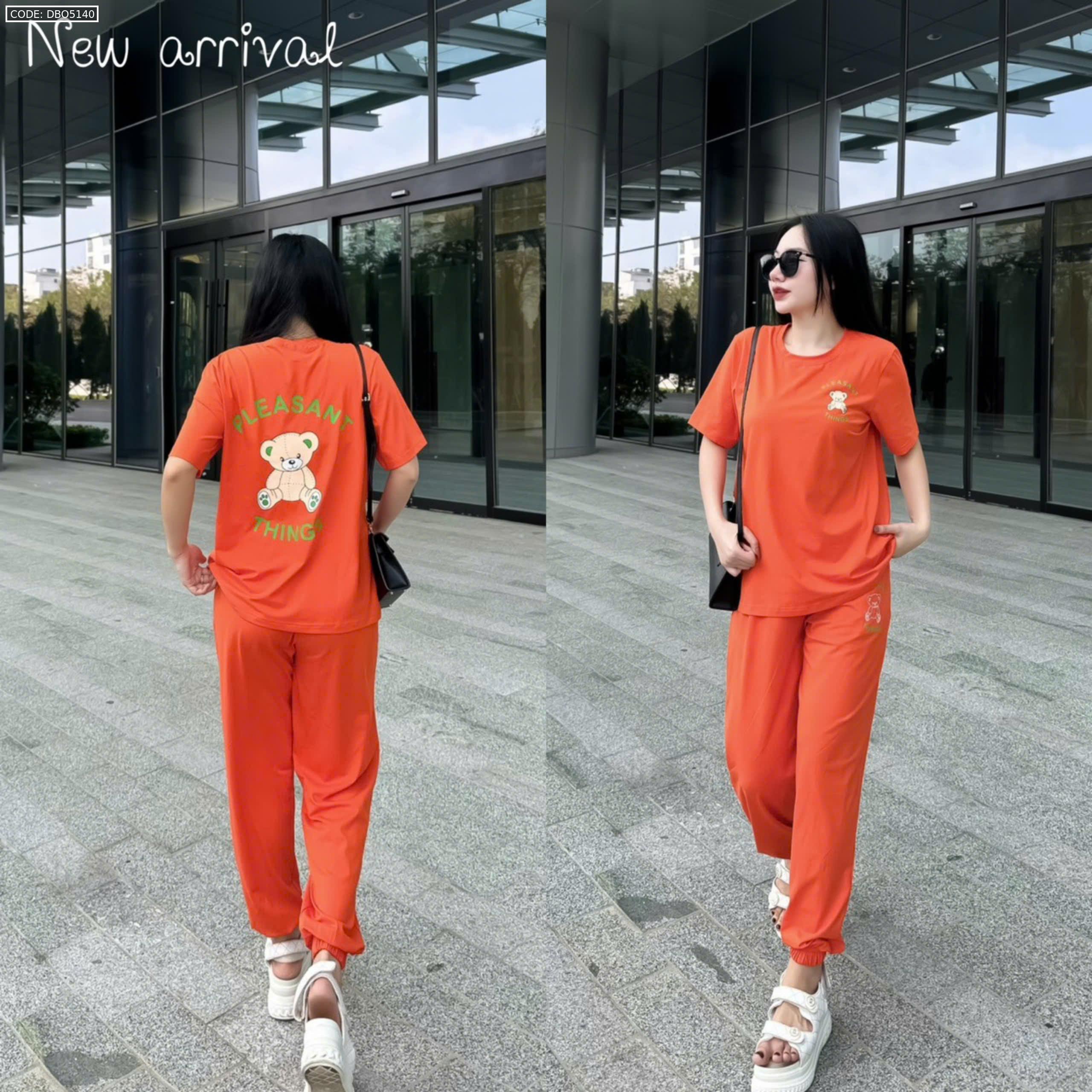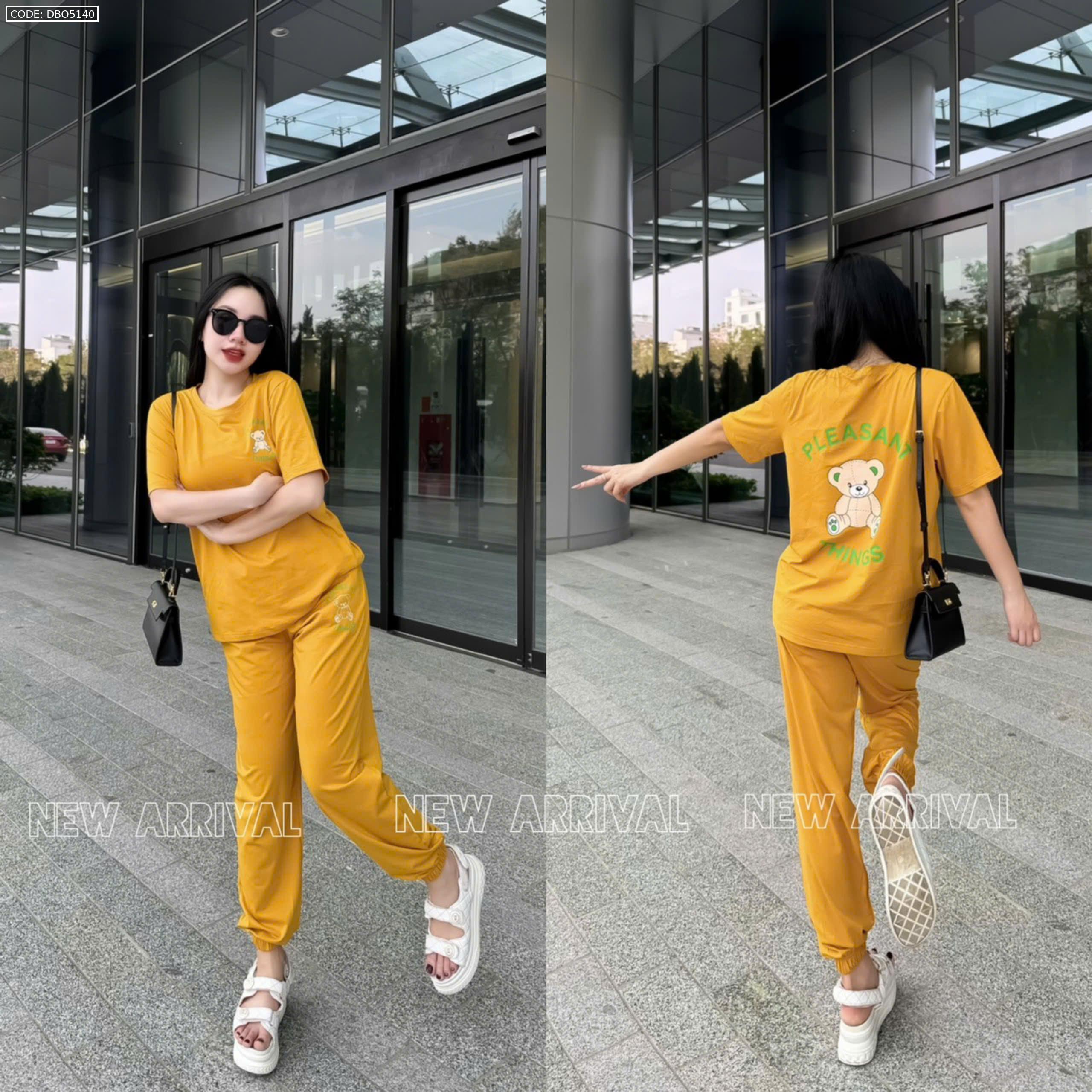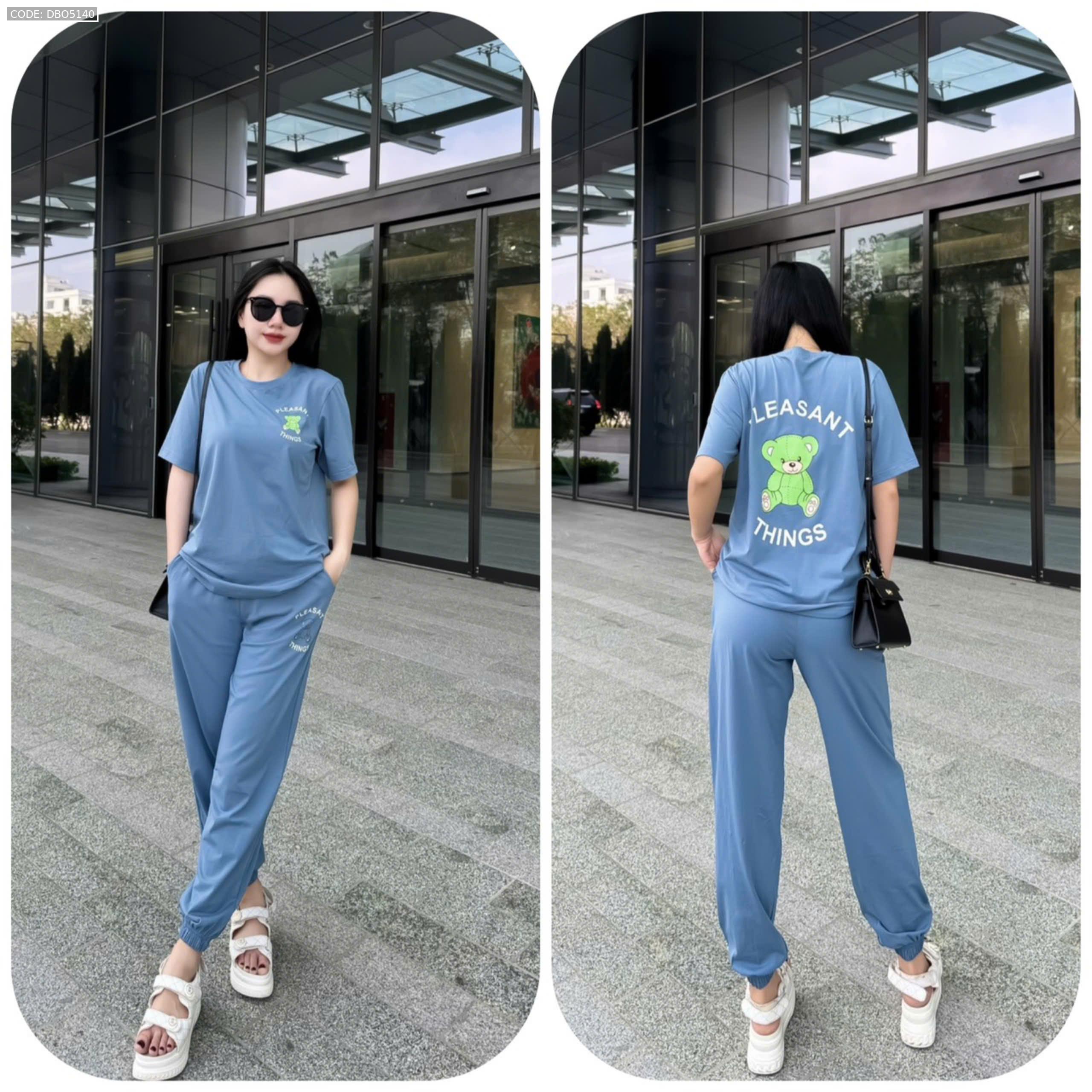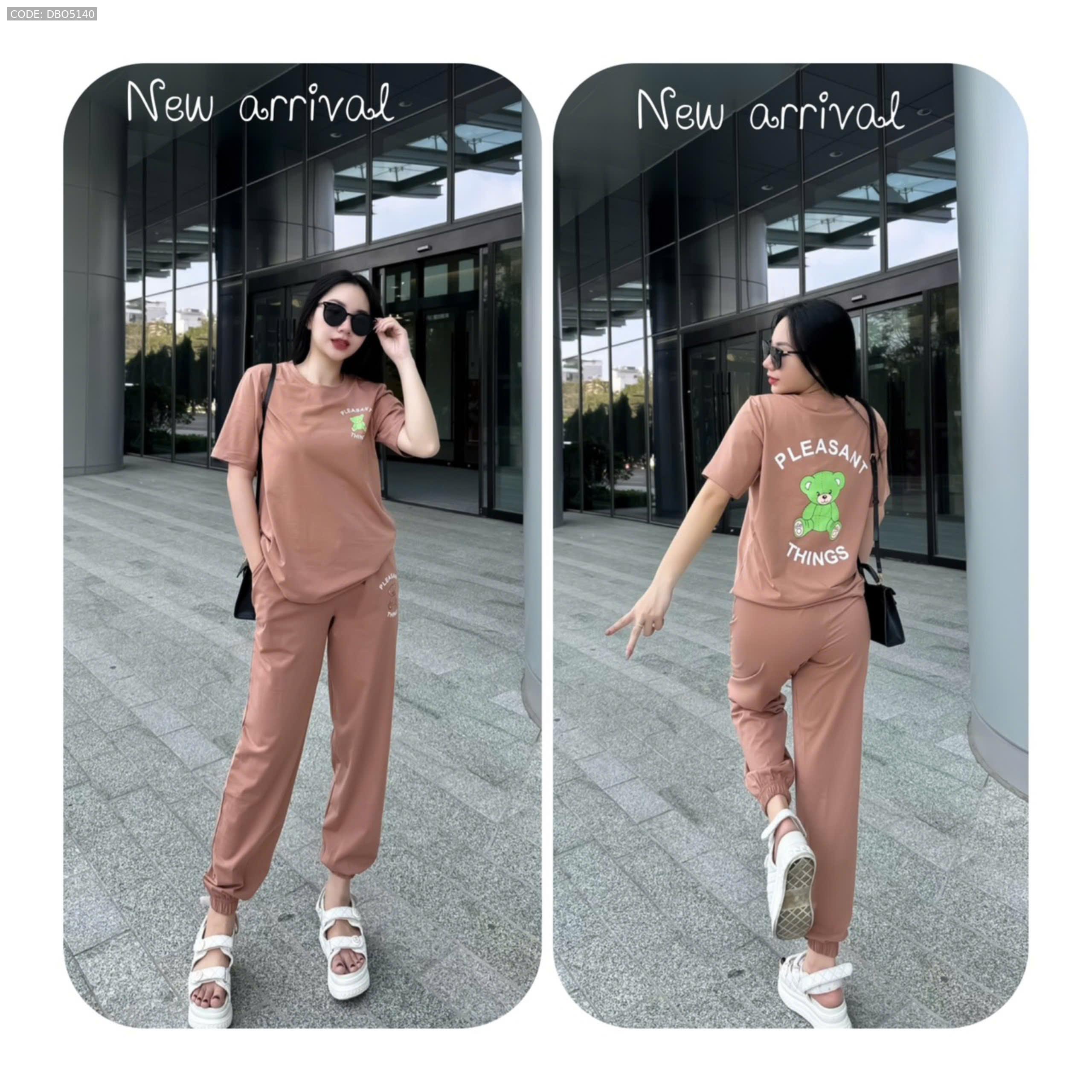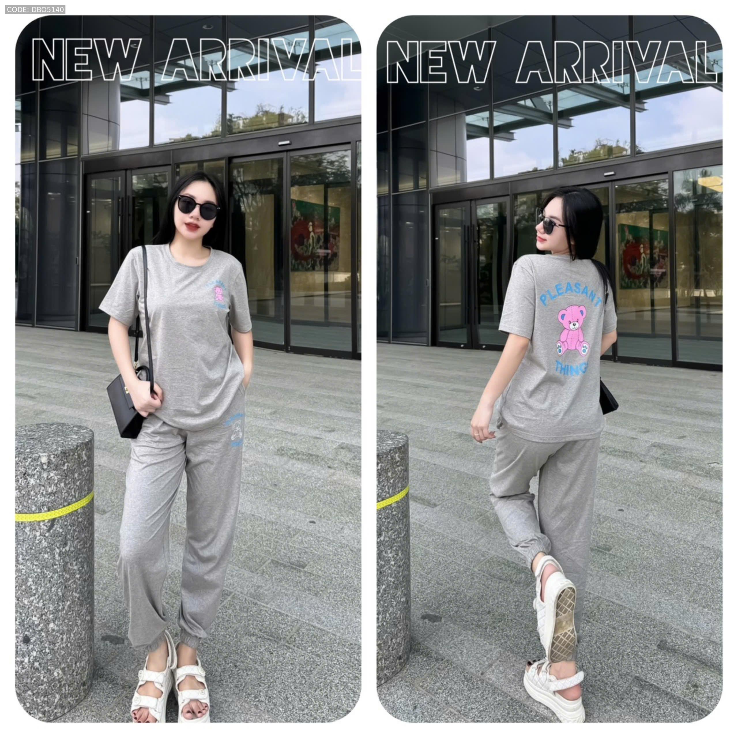 Đồ bộ quần dài áo tay ngắn in chữ và hình gấu