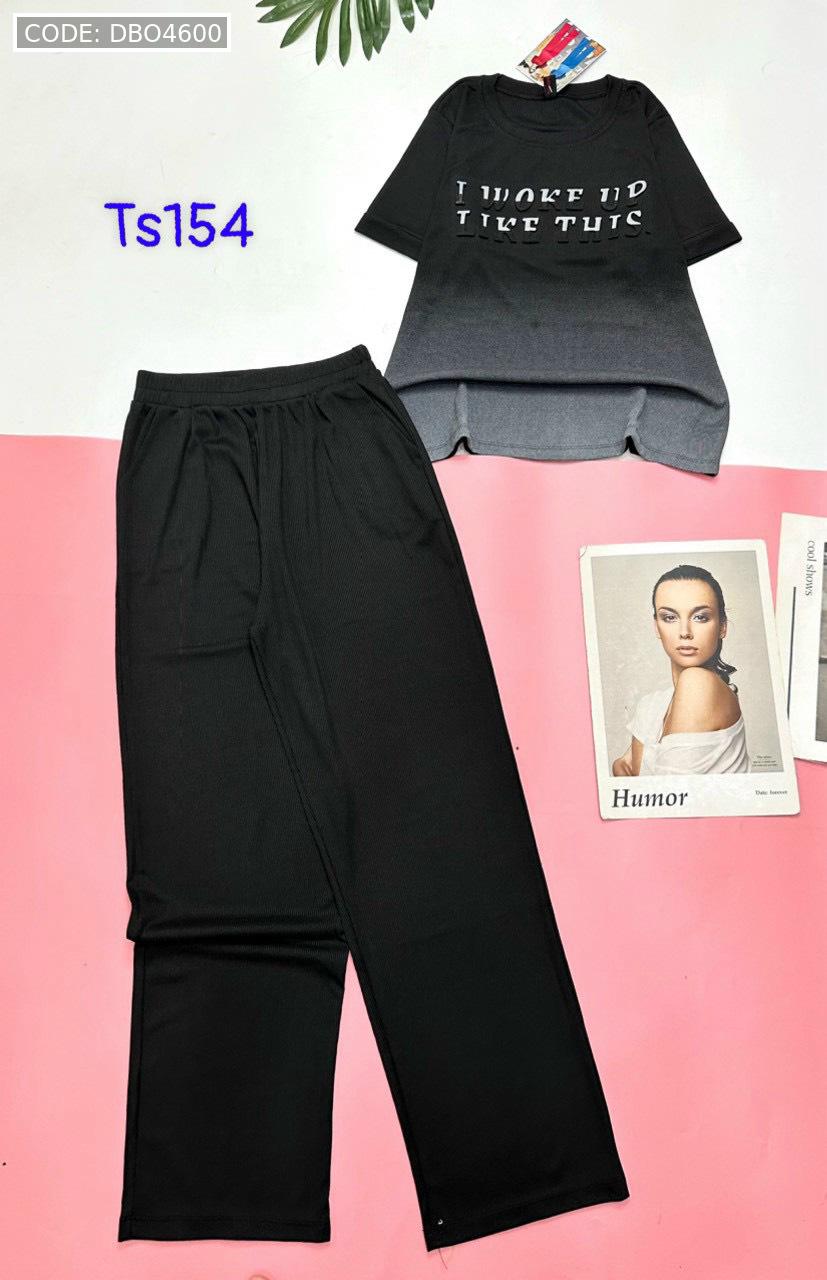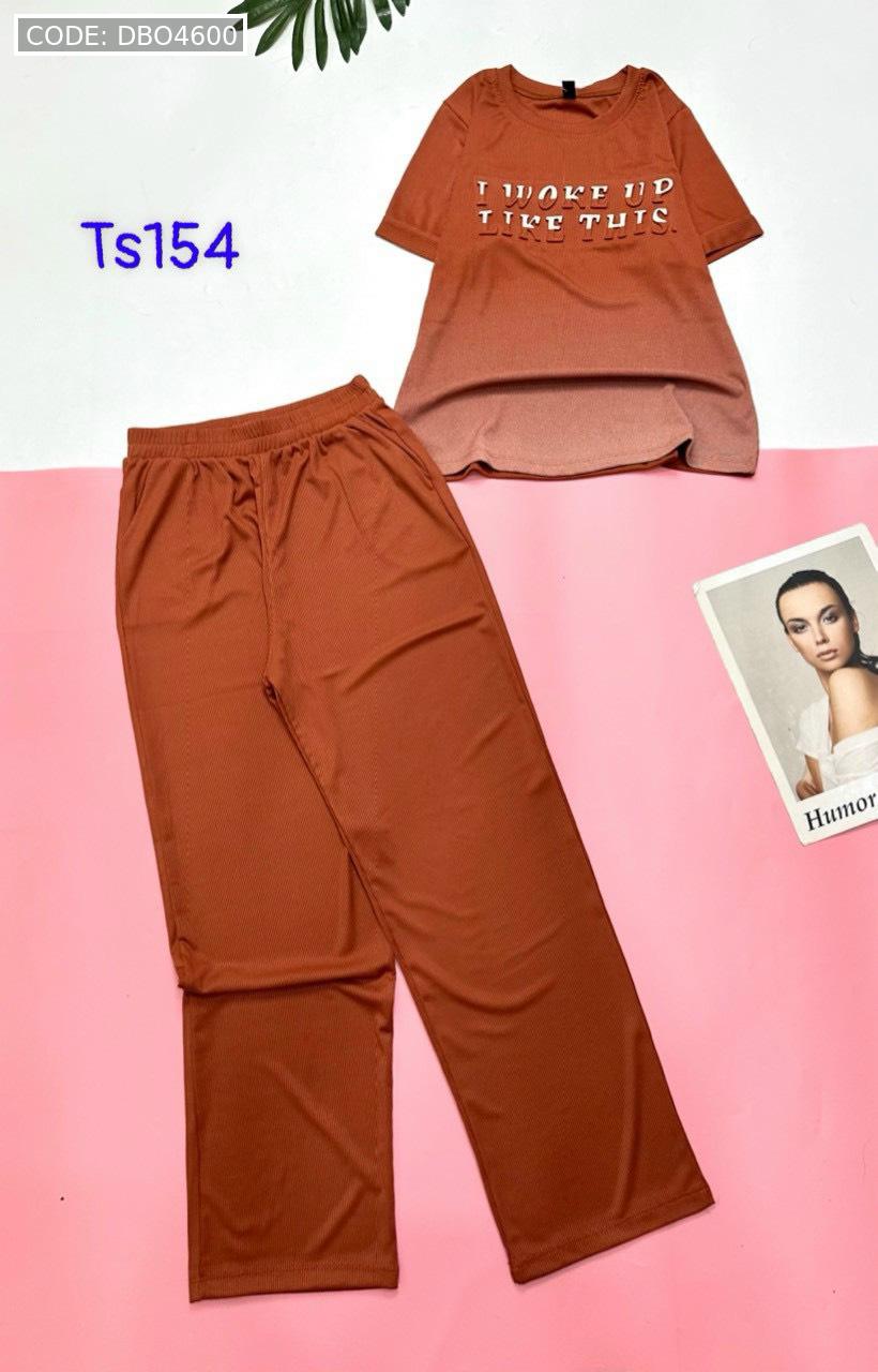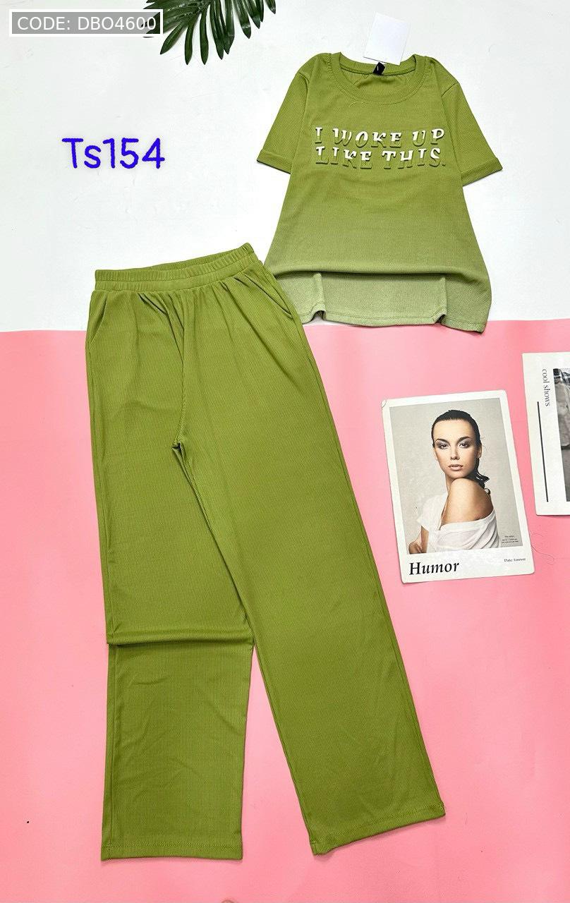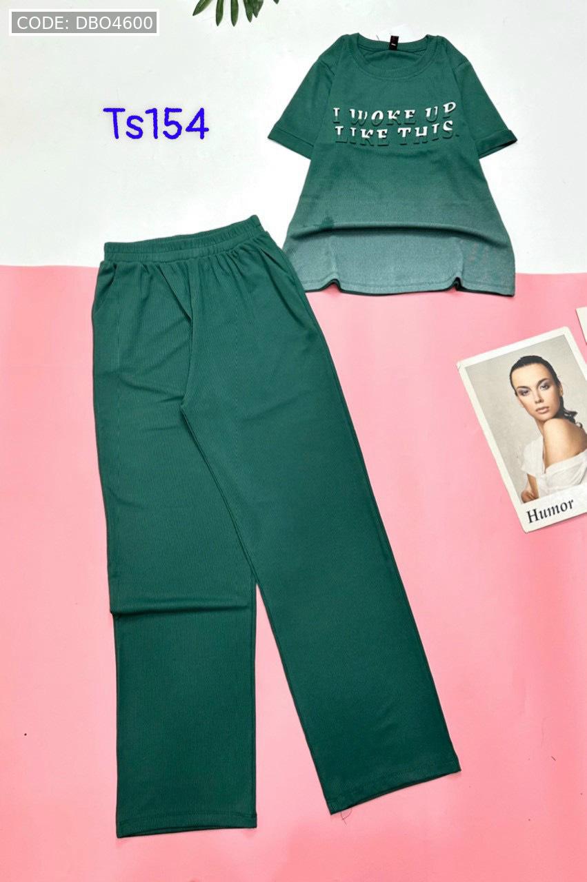 Đồ bộ quần dài áo tay ngắn quần trơn áo in chữ nổi