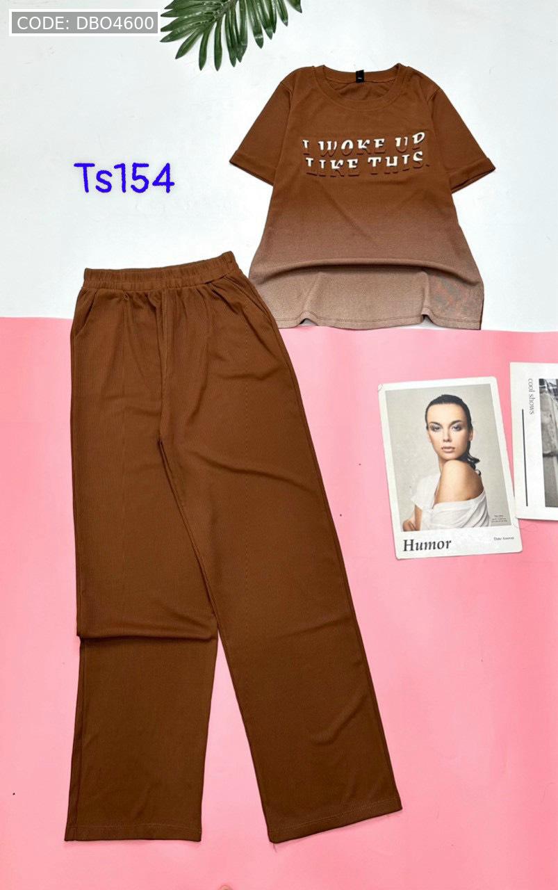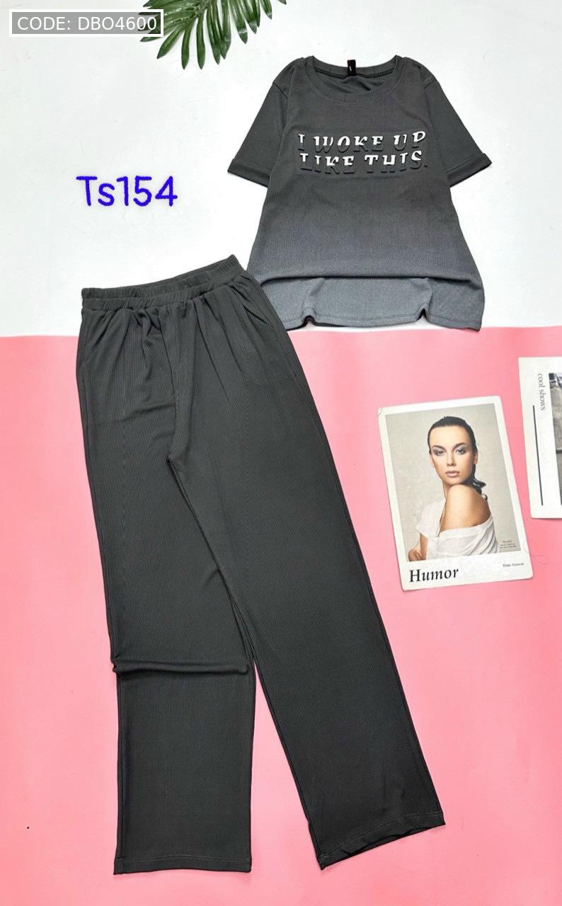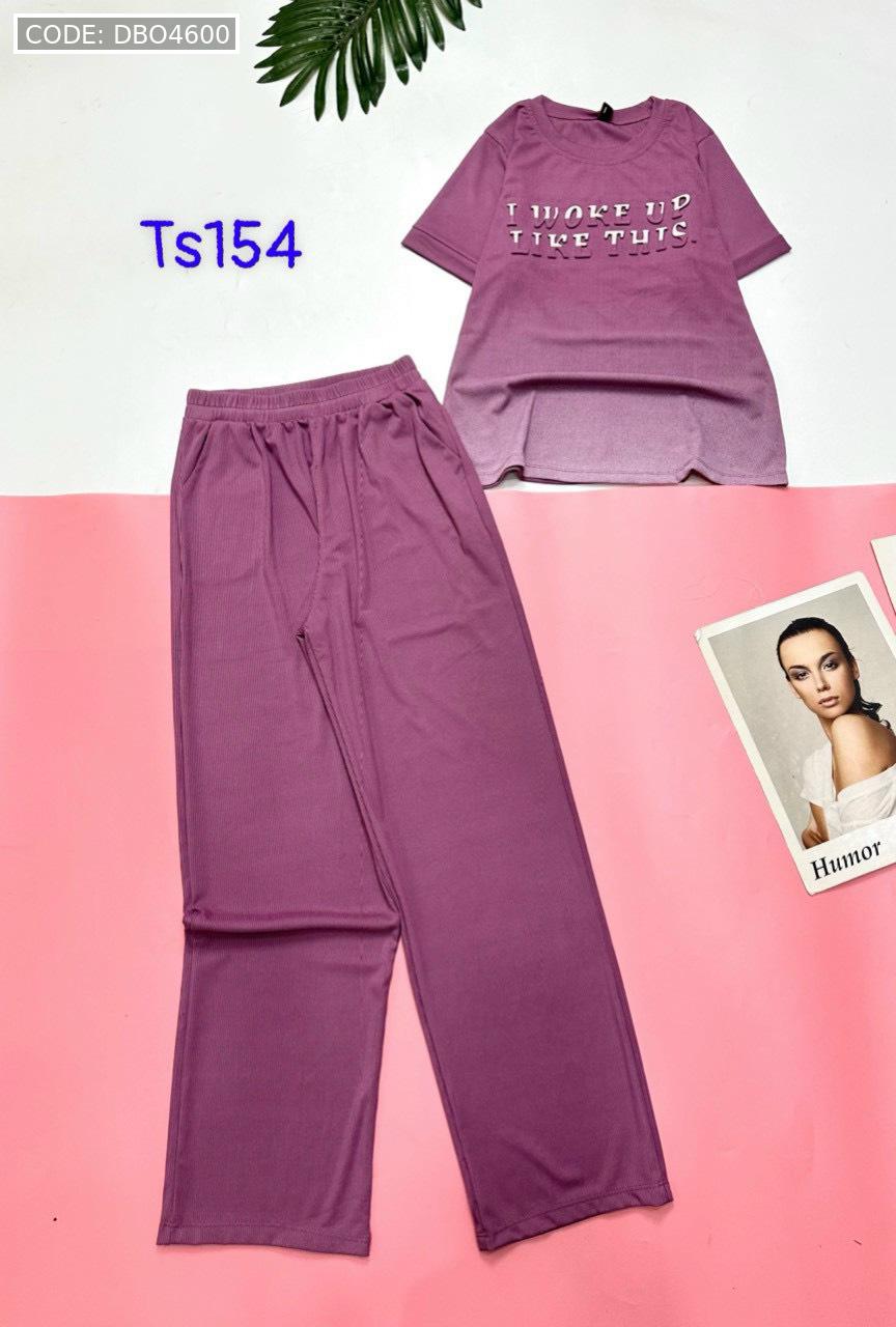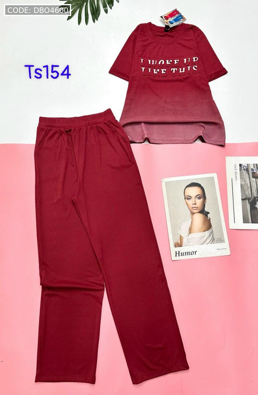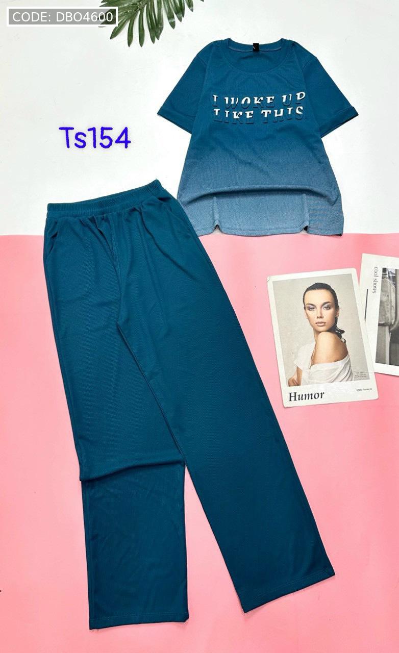 Đồ bộ quần dài áo tay ngắn quần trơn áo in chữ nổi