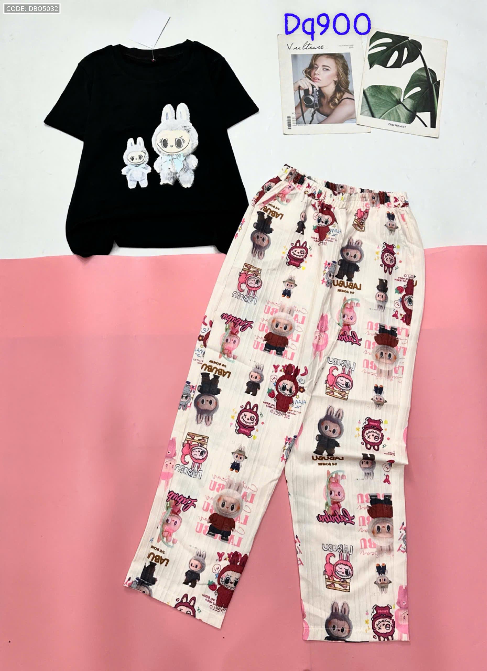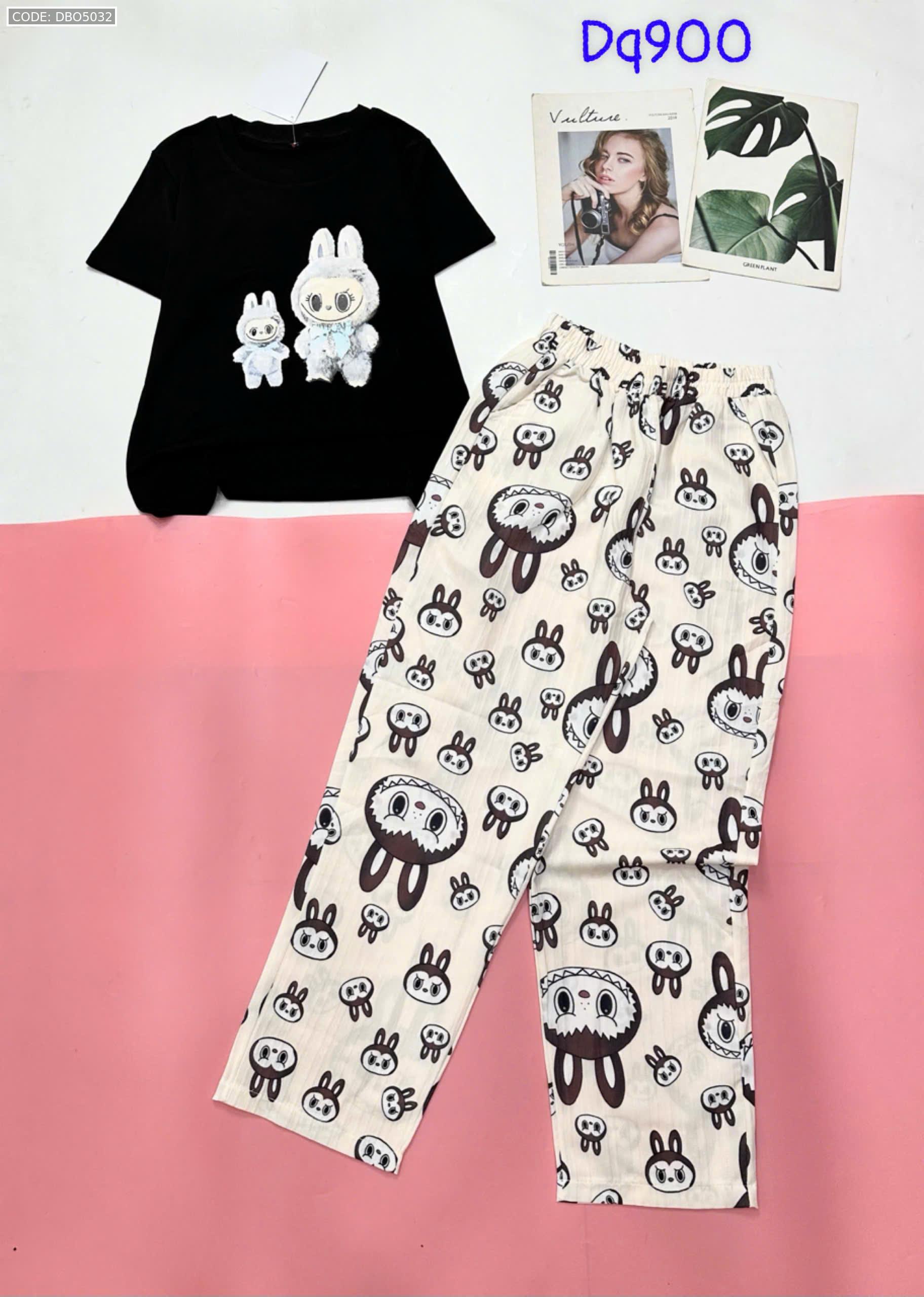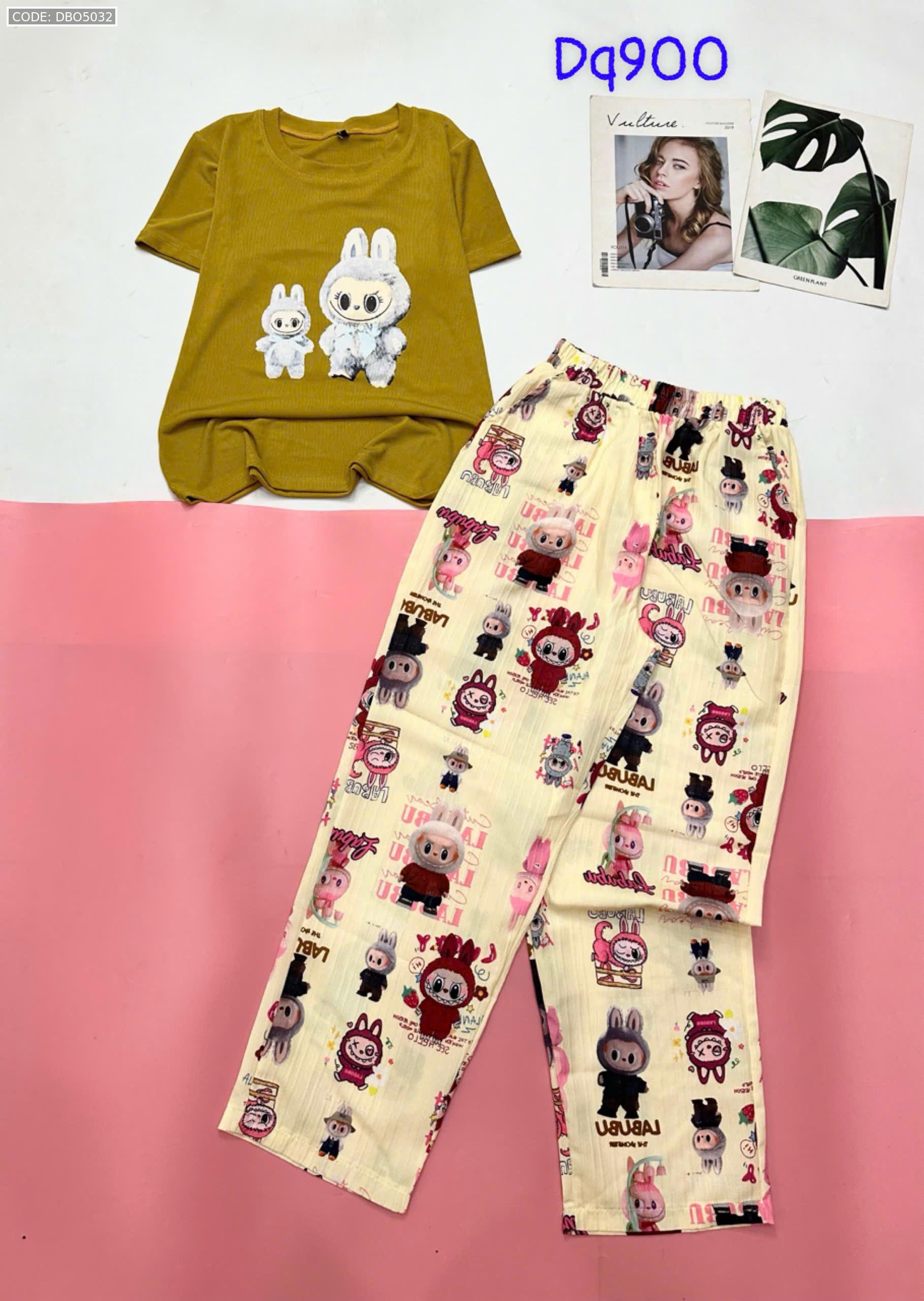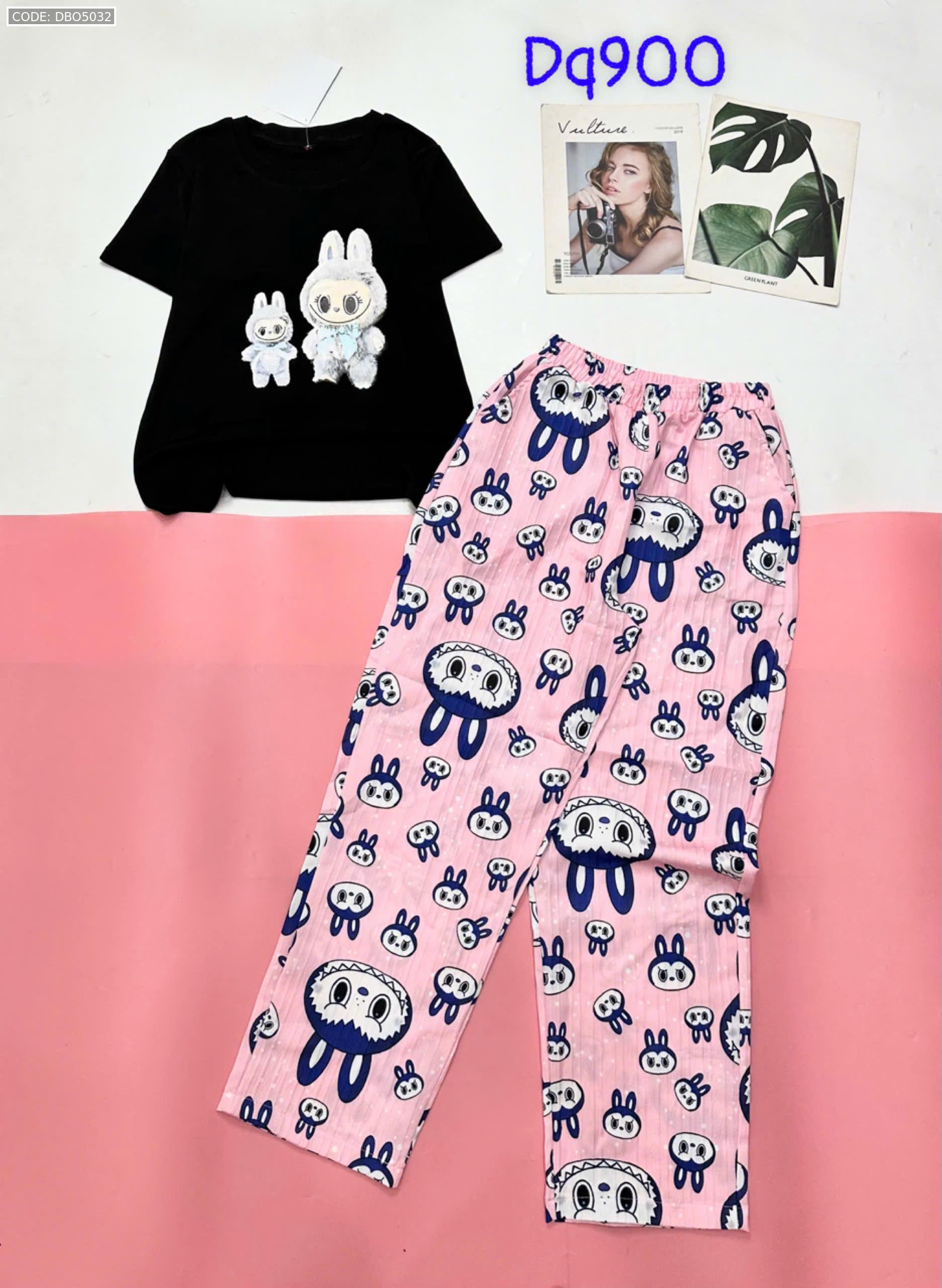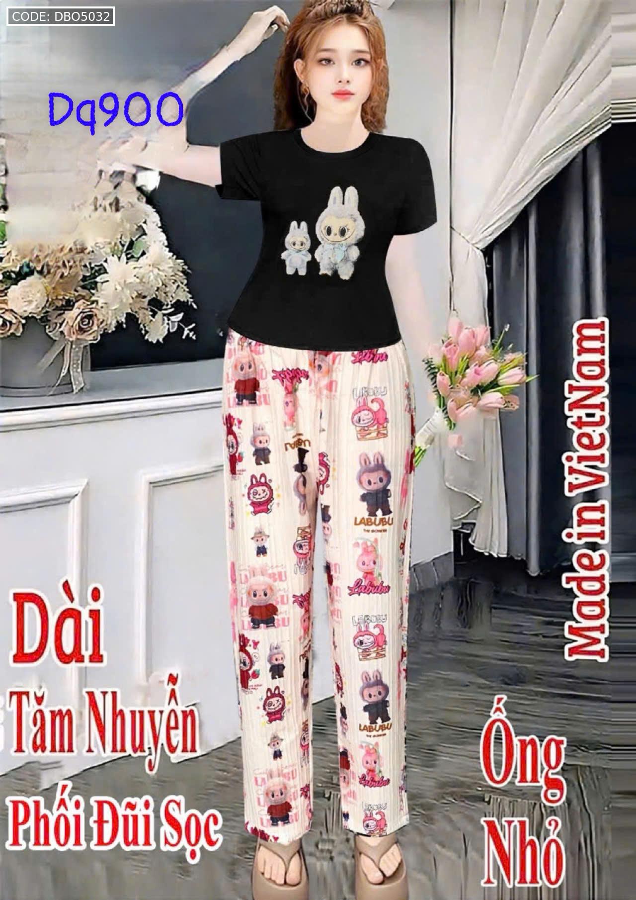 Đồ bộ quần dài áo tay ngắn tăm nhuyễn phối đũi sọc ống nhỏ