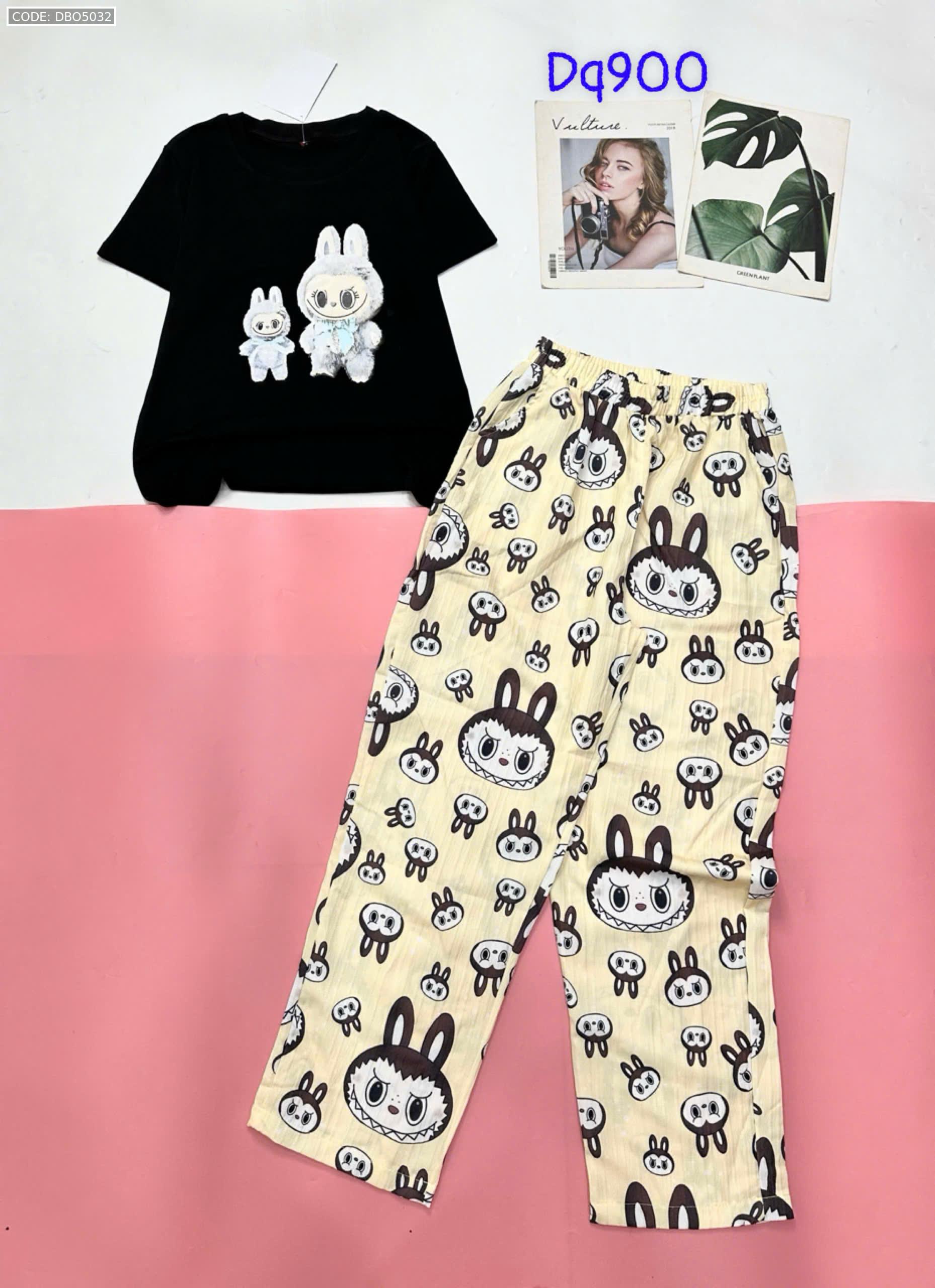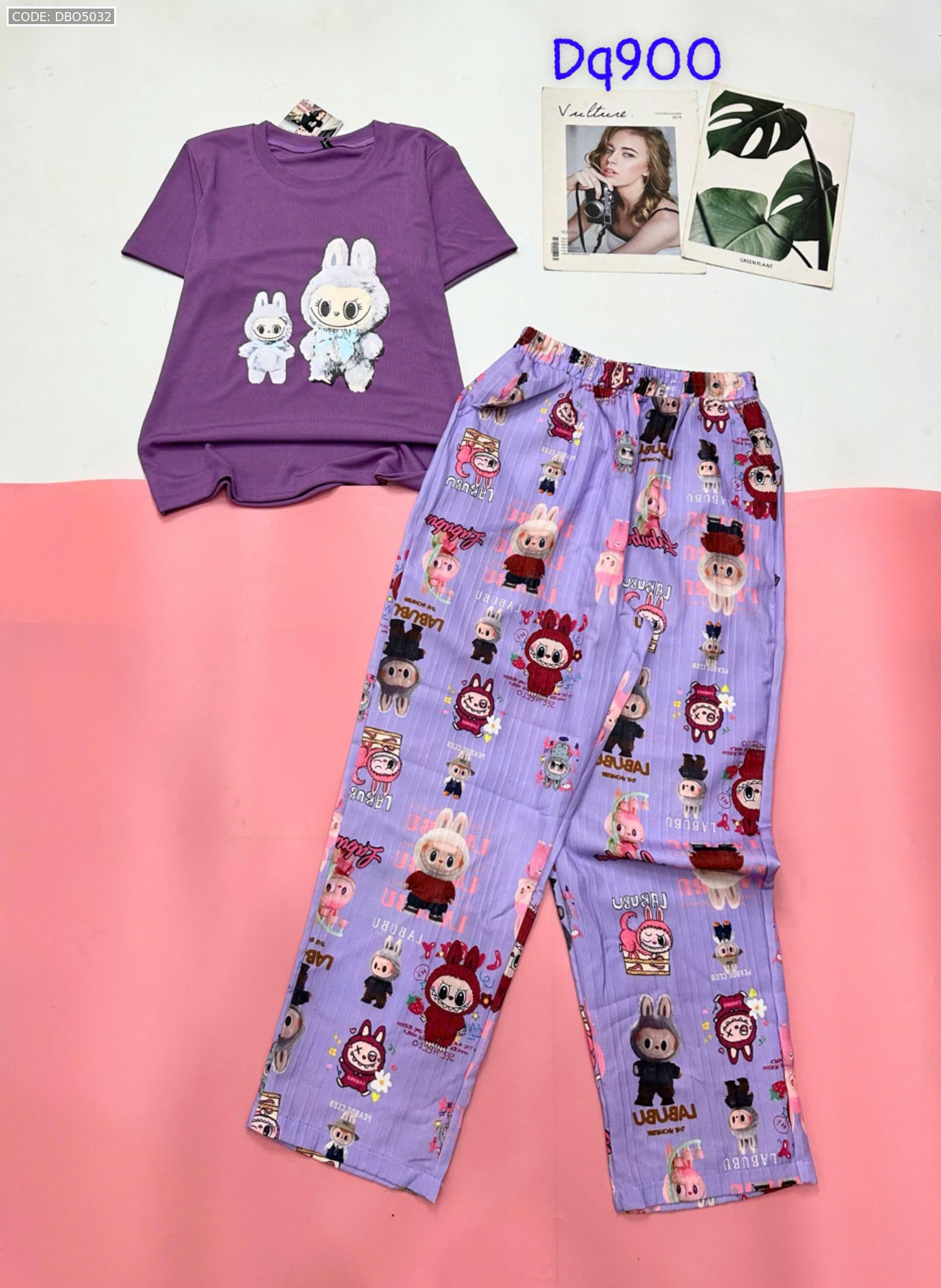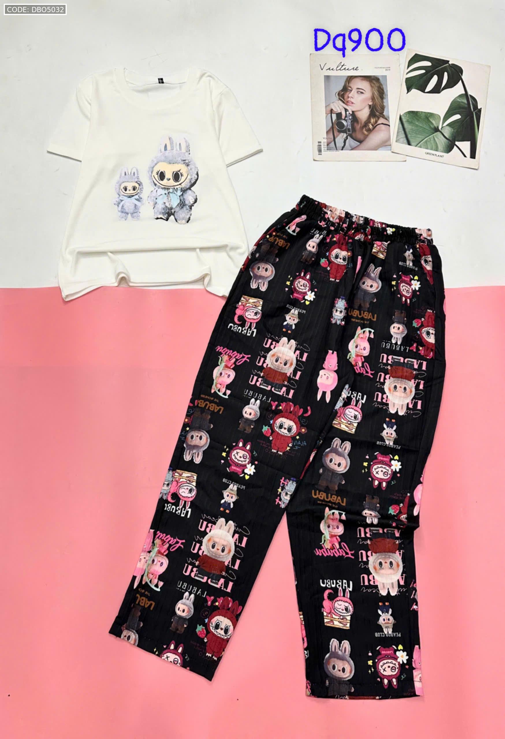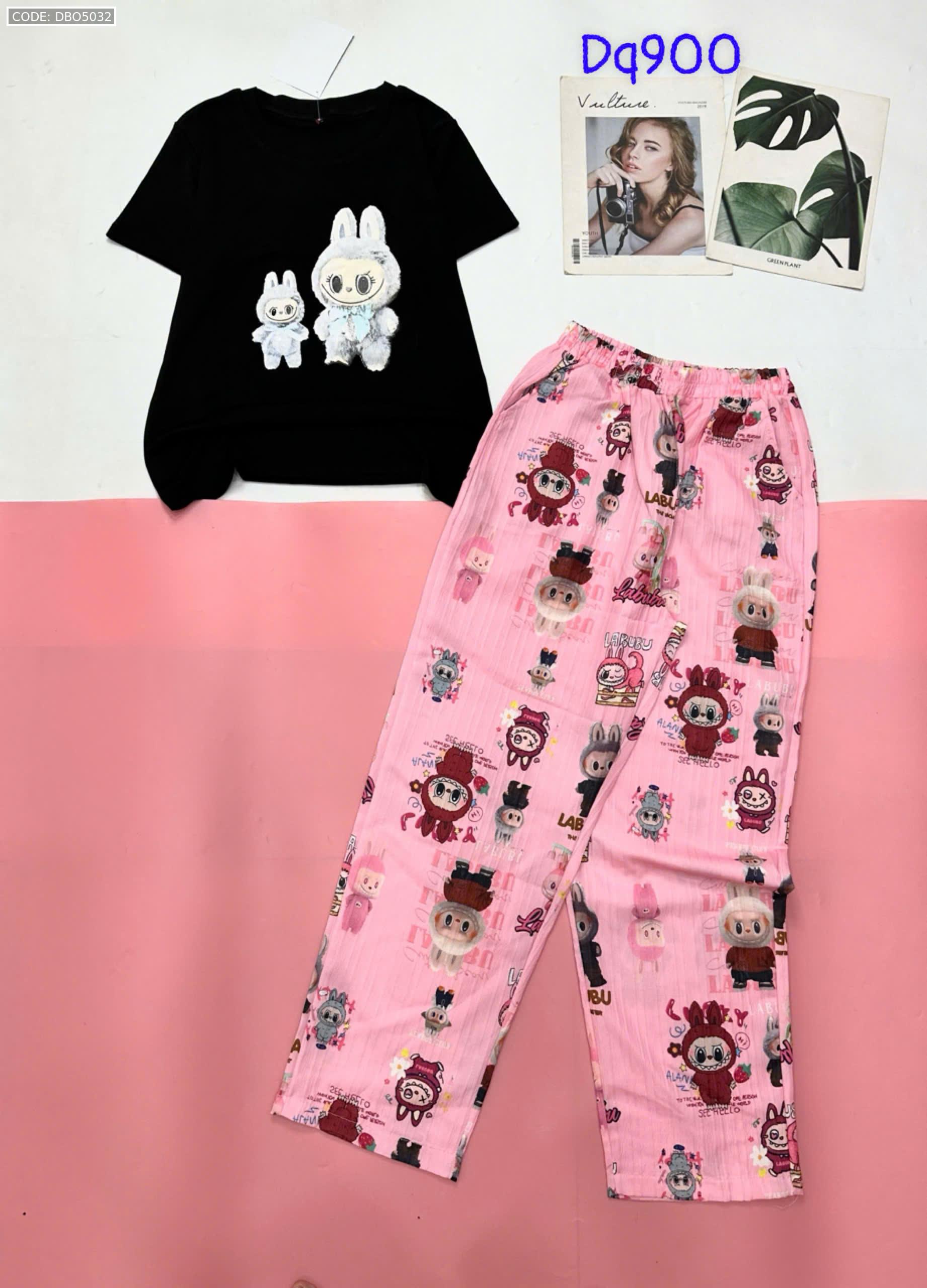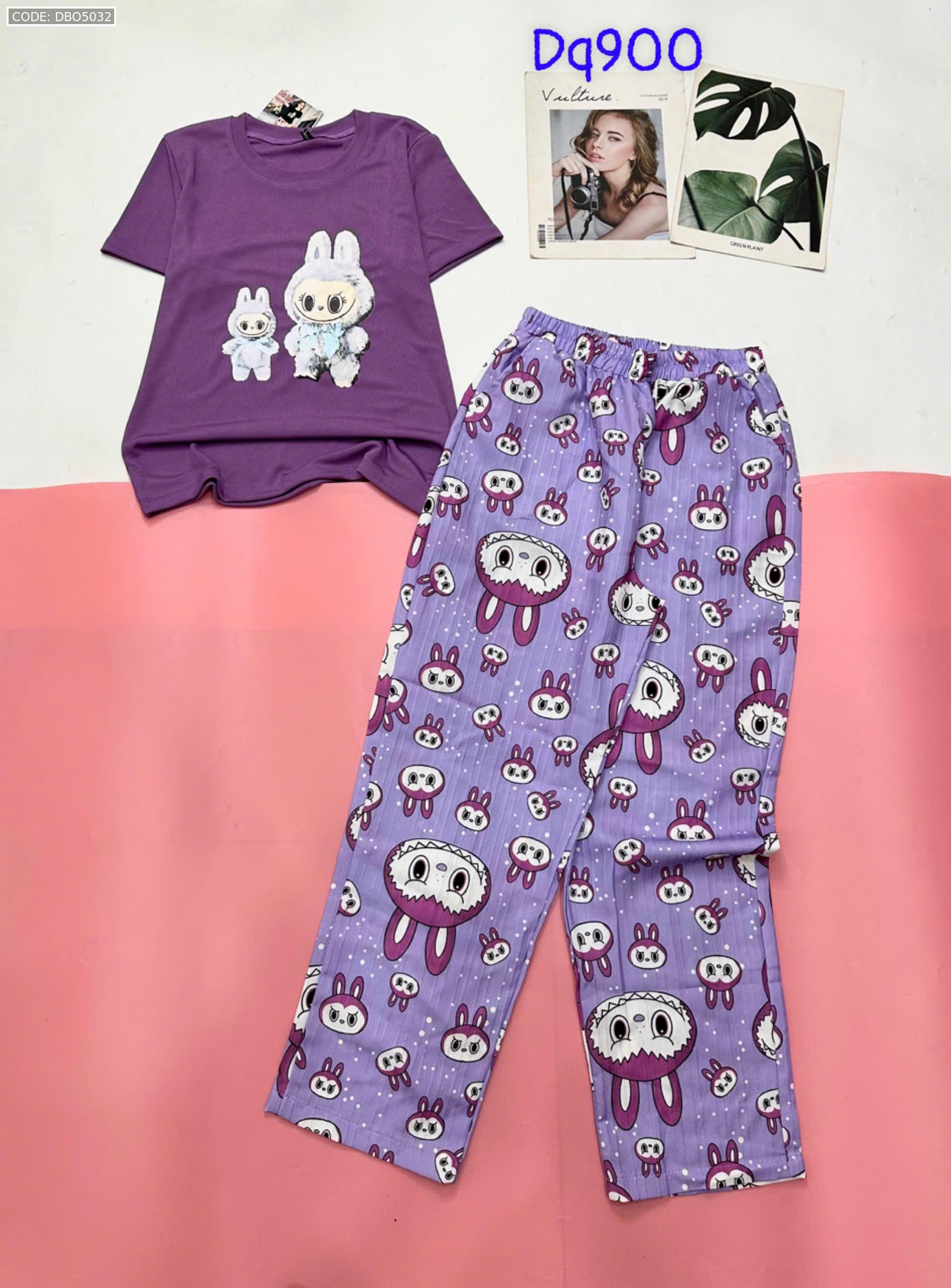 Đồ bộ quần dài áo tay ngắn tăm nhuyễn phối đũi sọc ống nhỏ